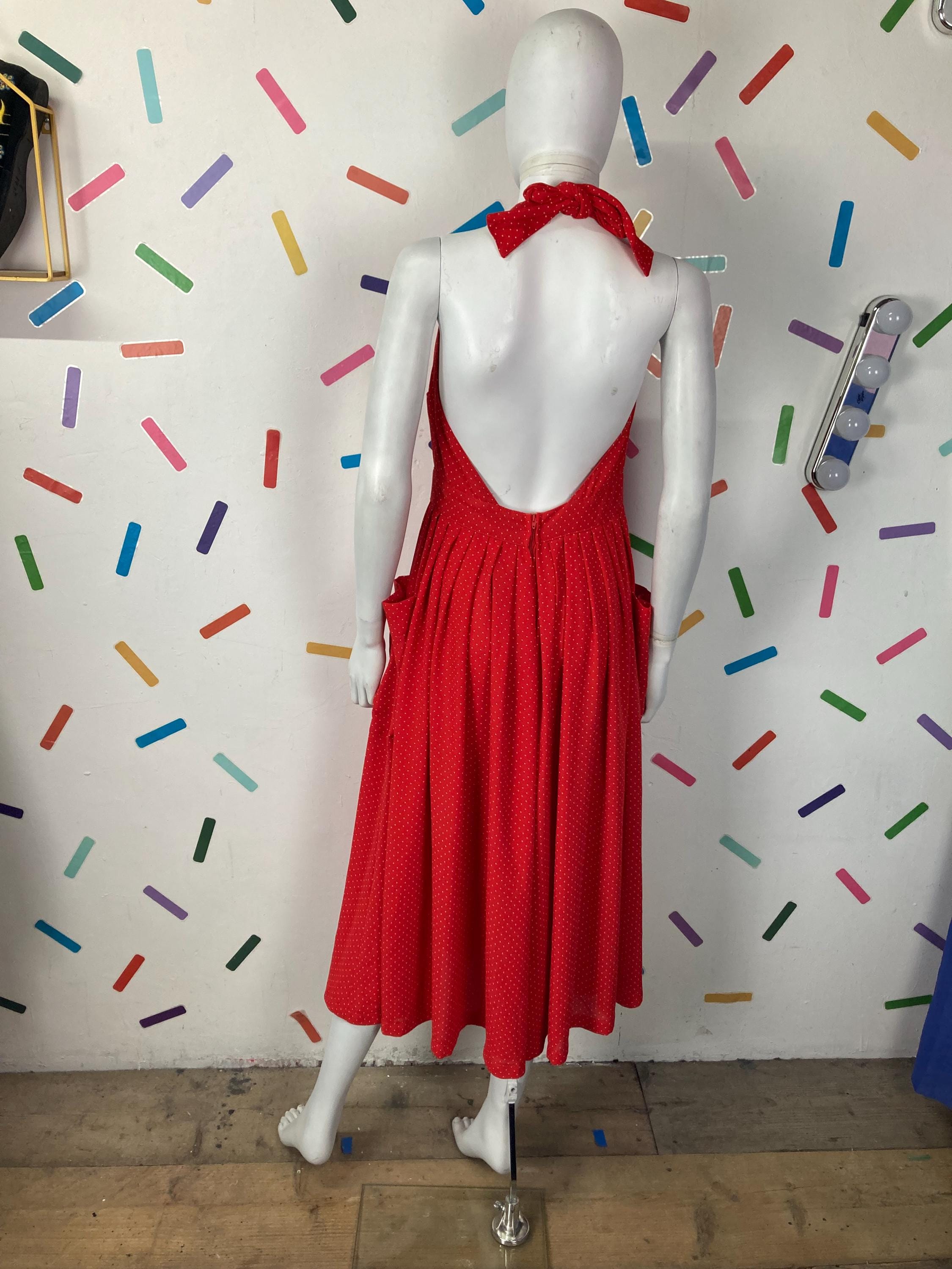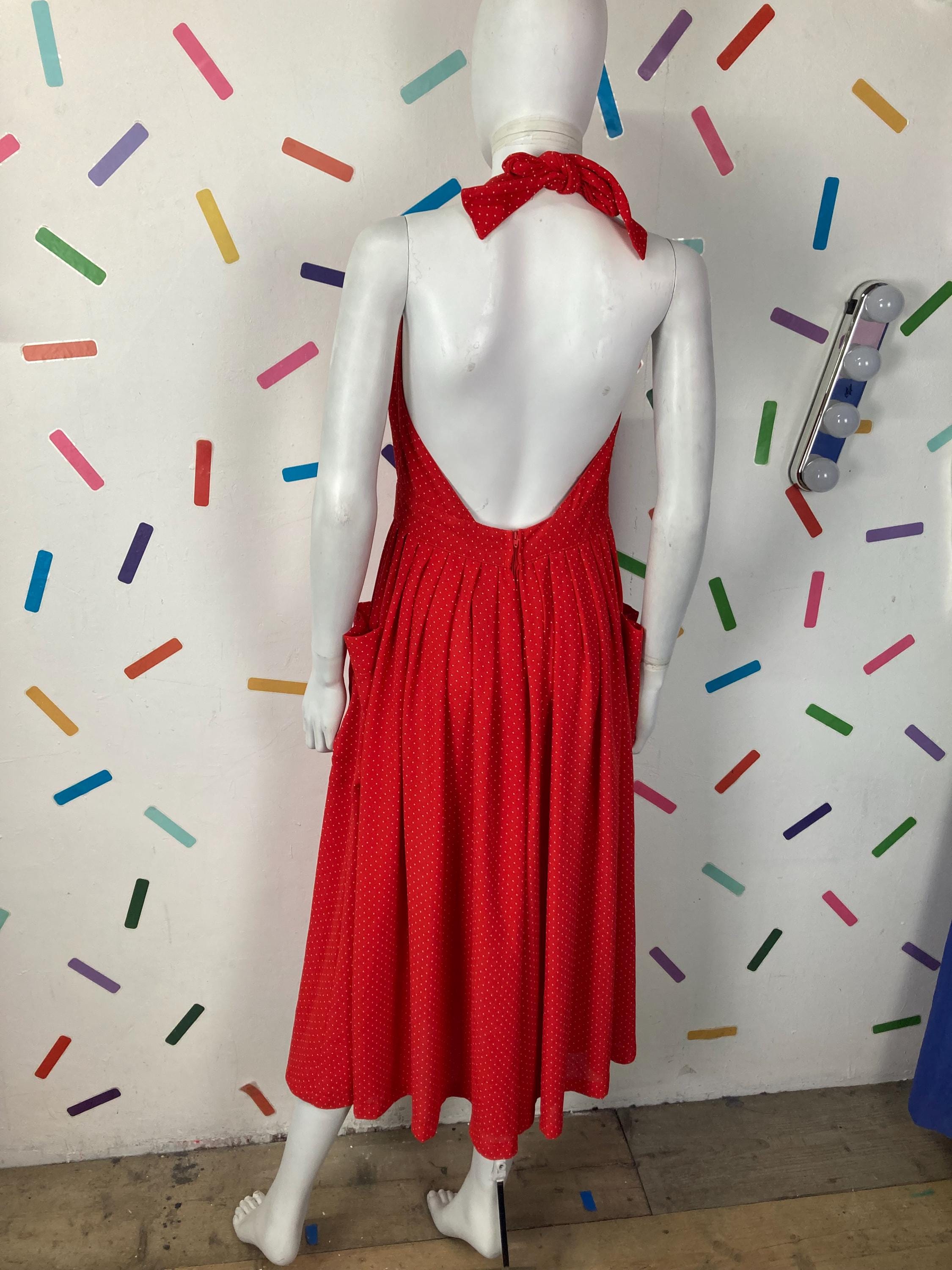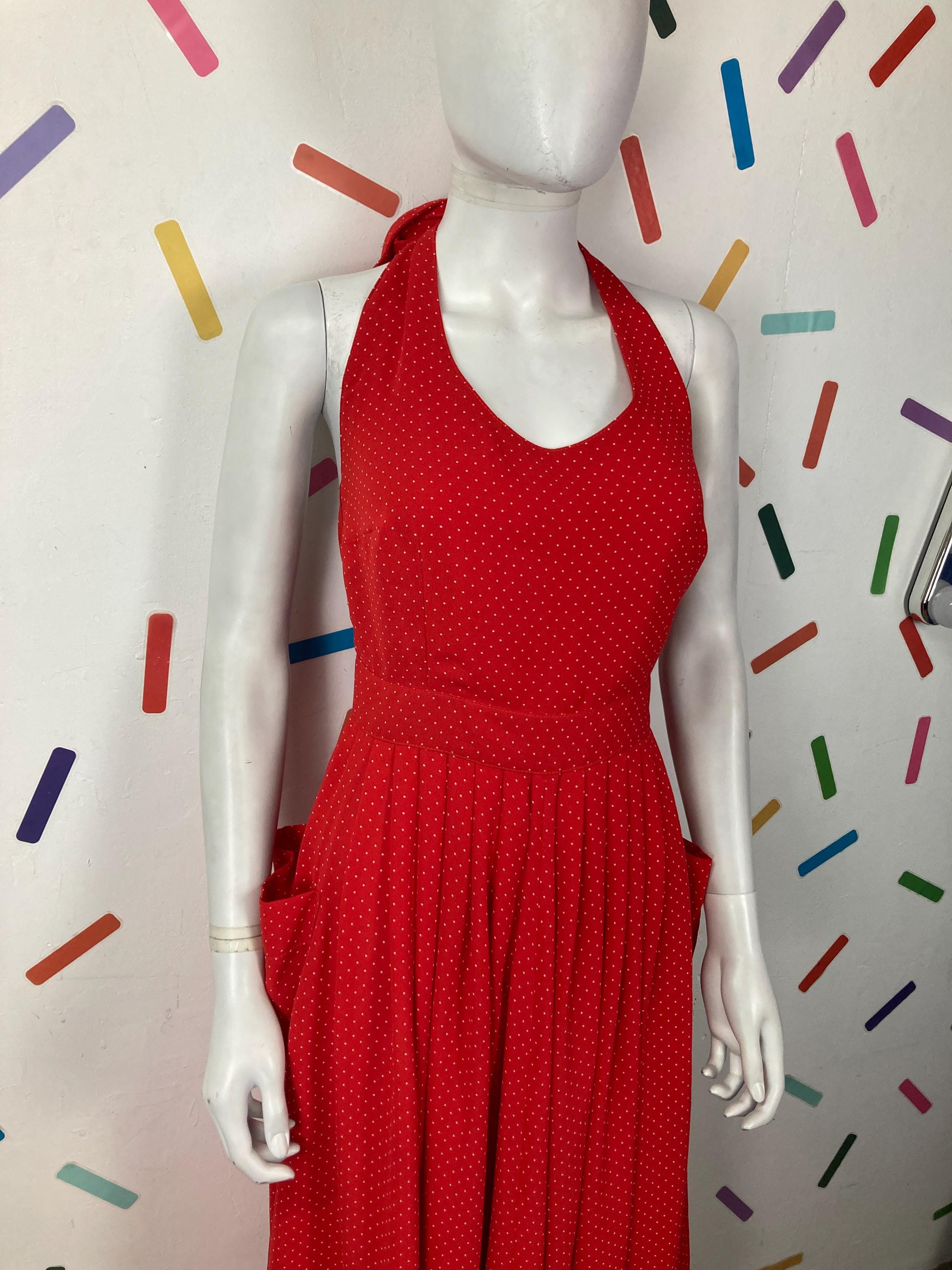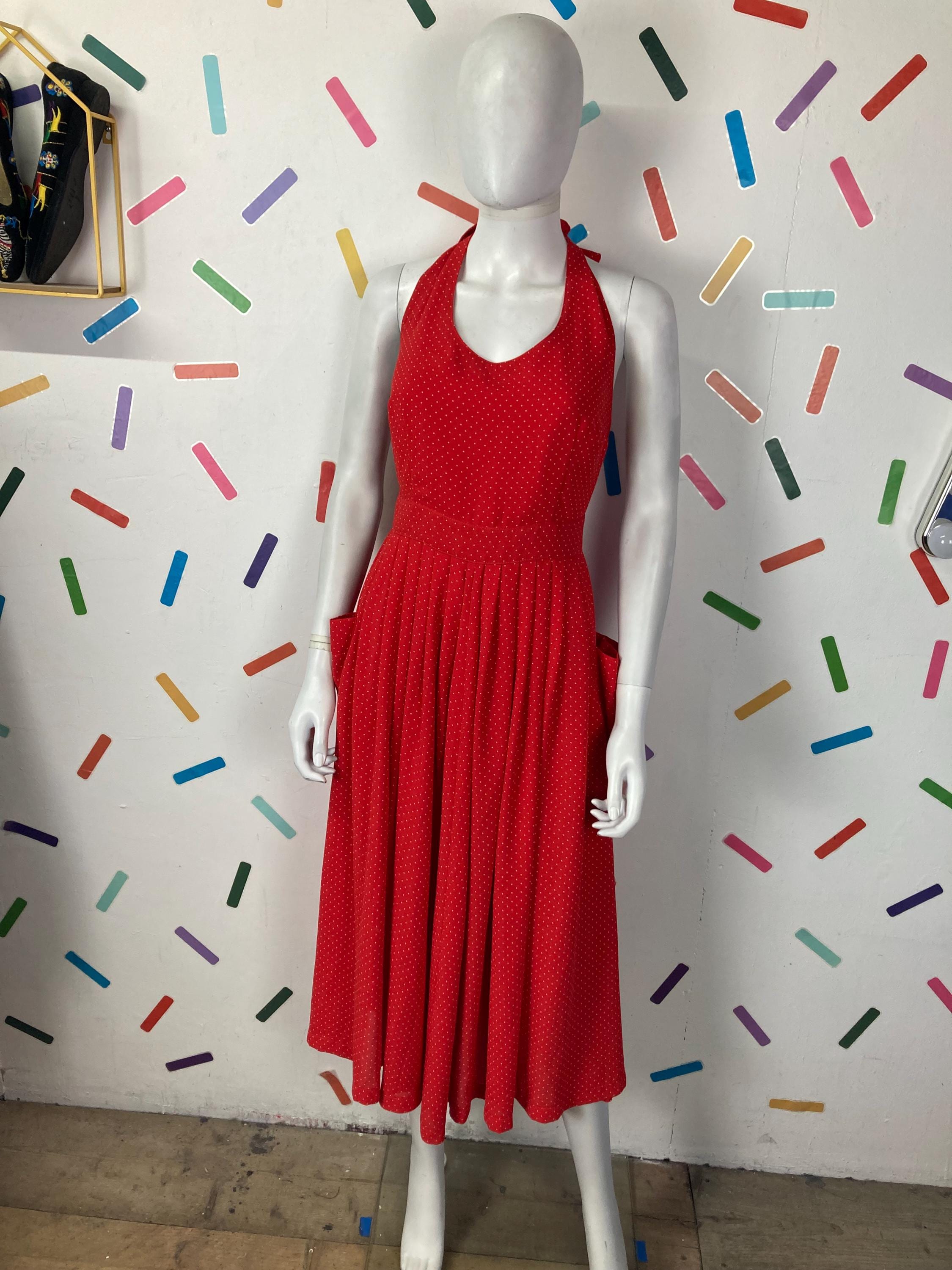 Other: This is an amazing red halter neck midi dress with bucket pockets and flower detail.