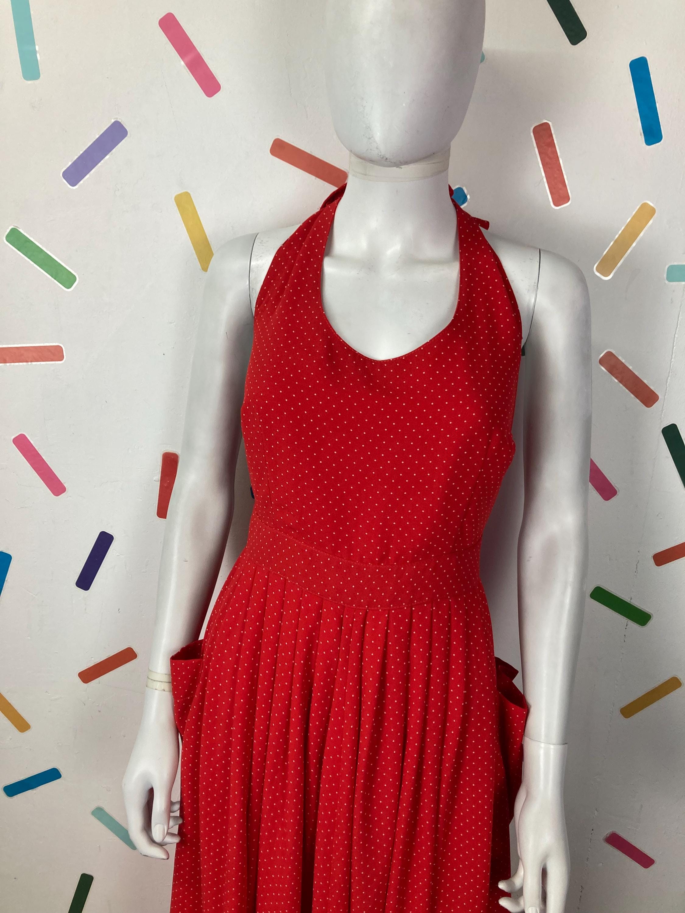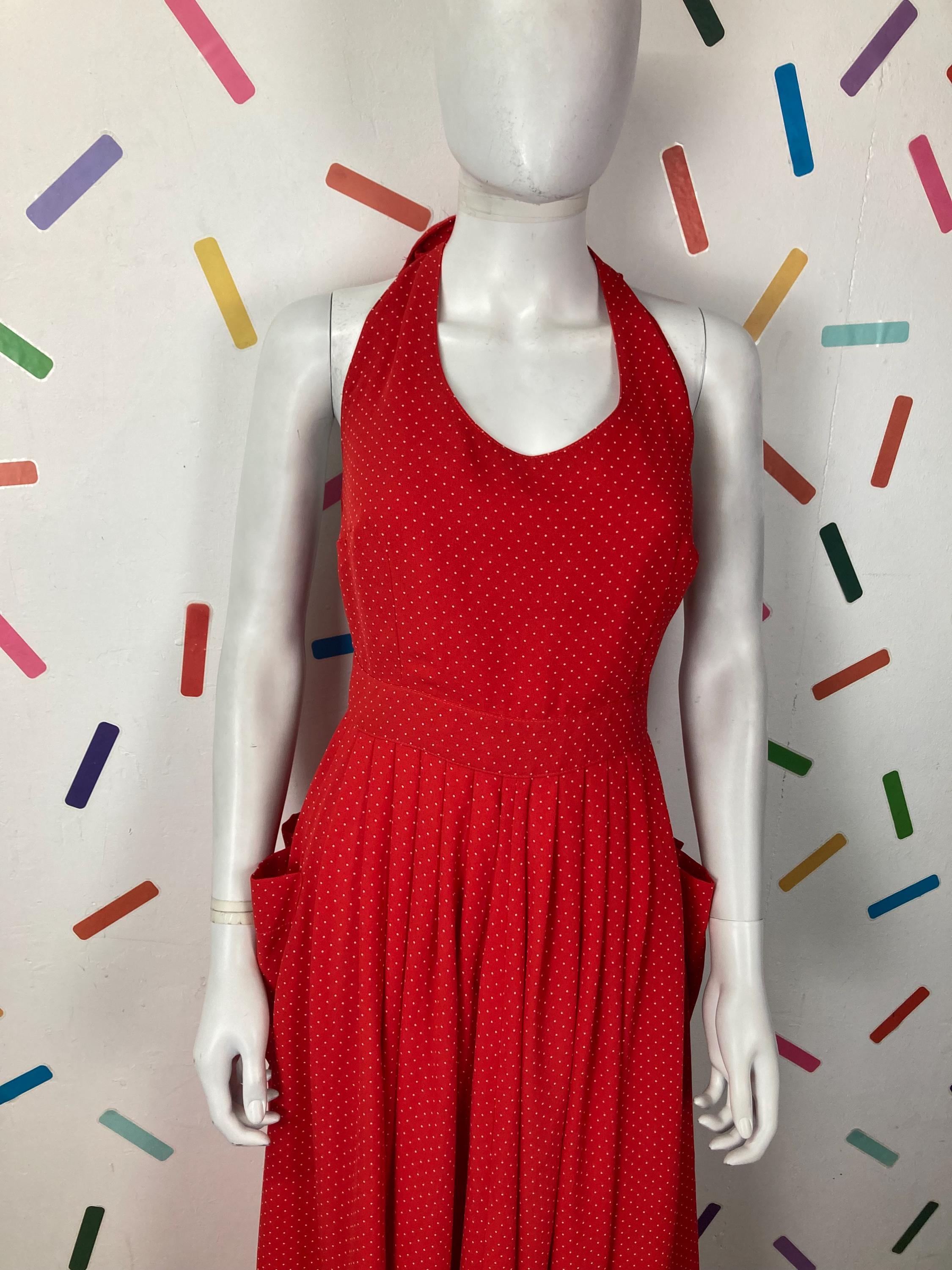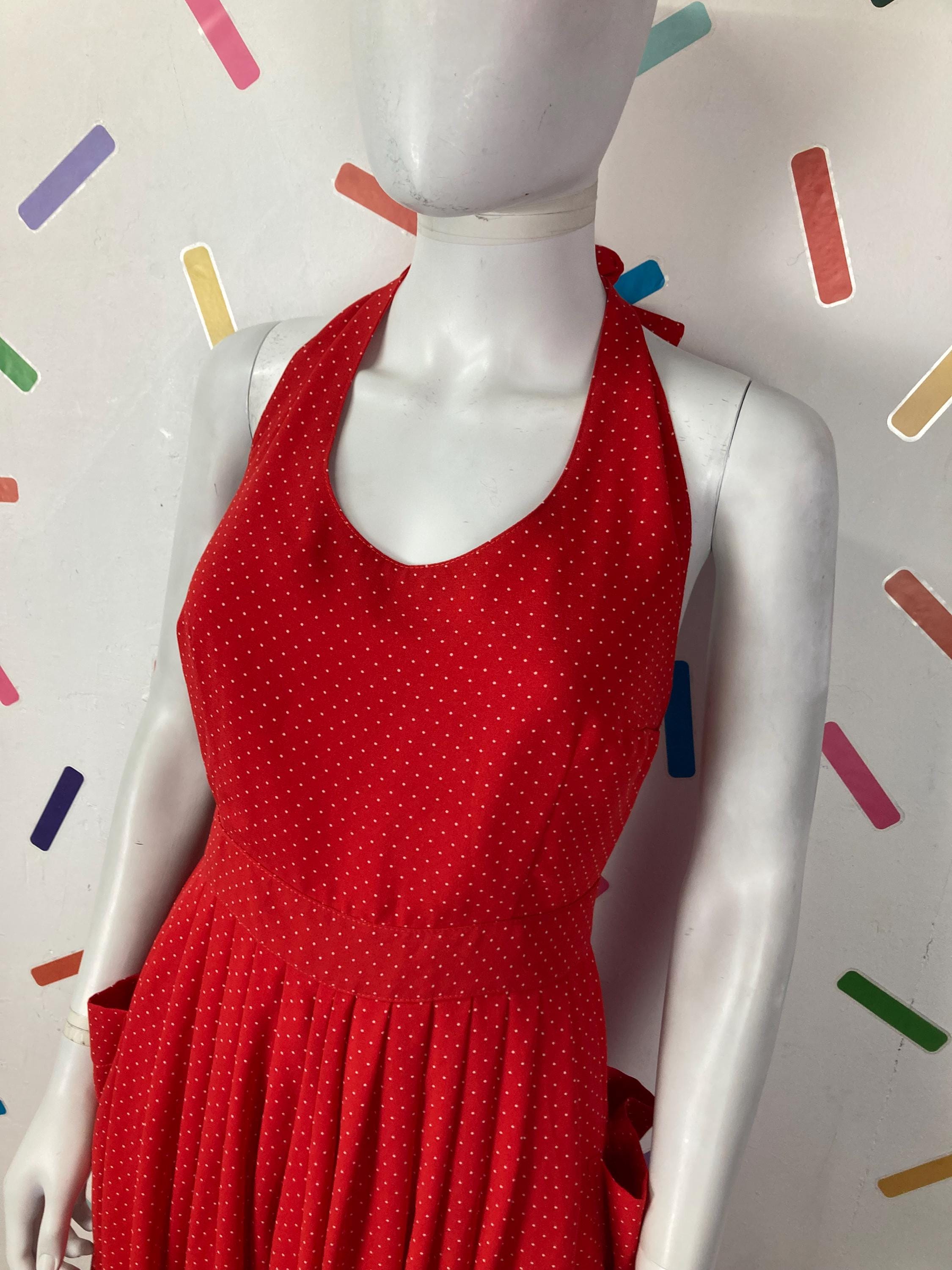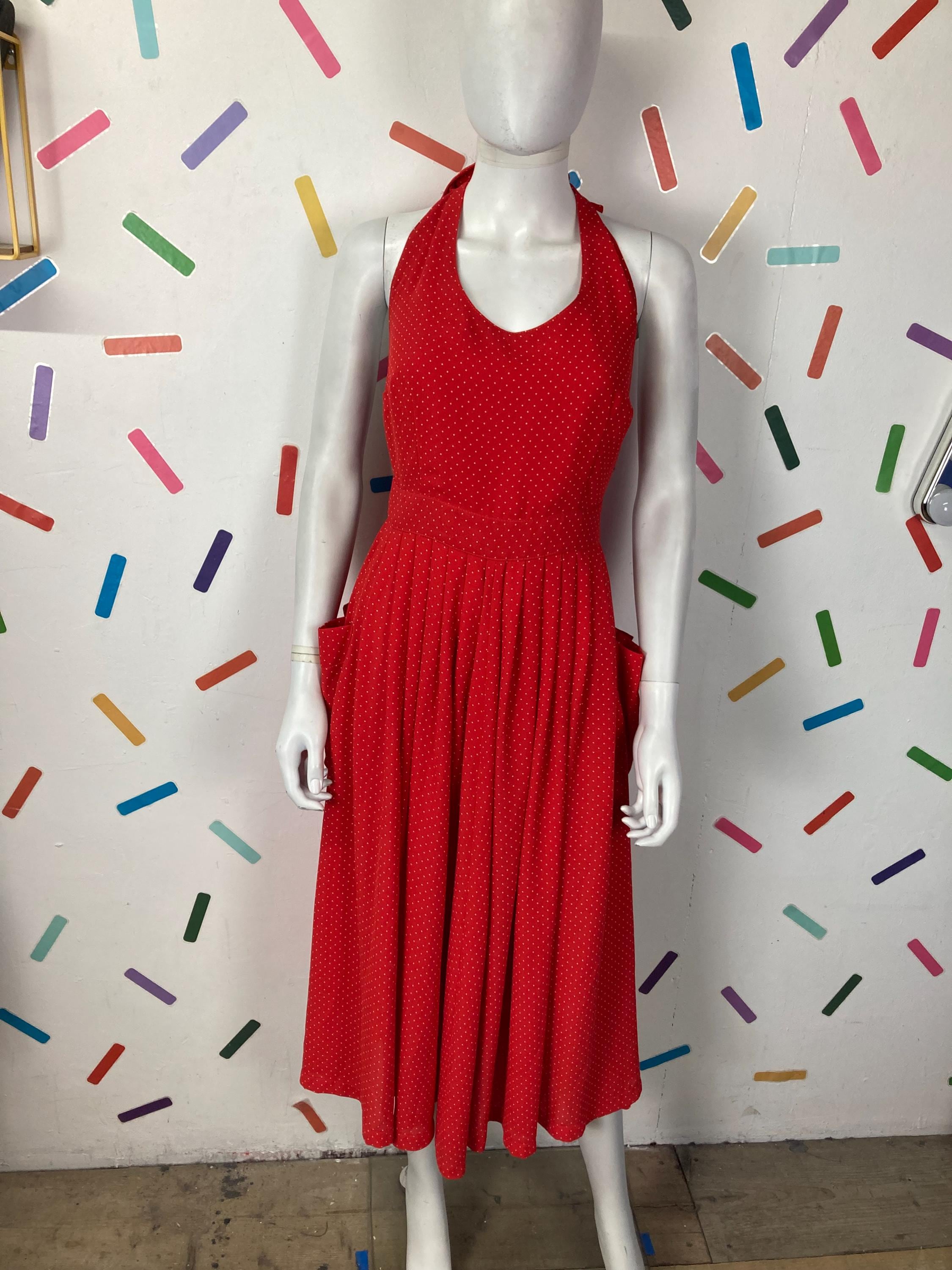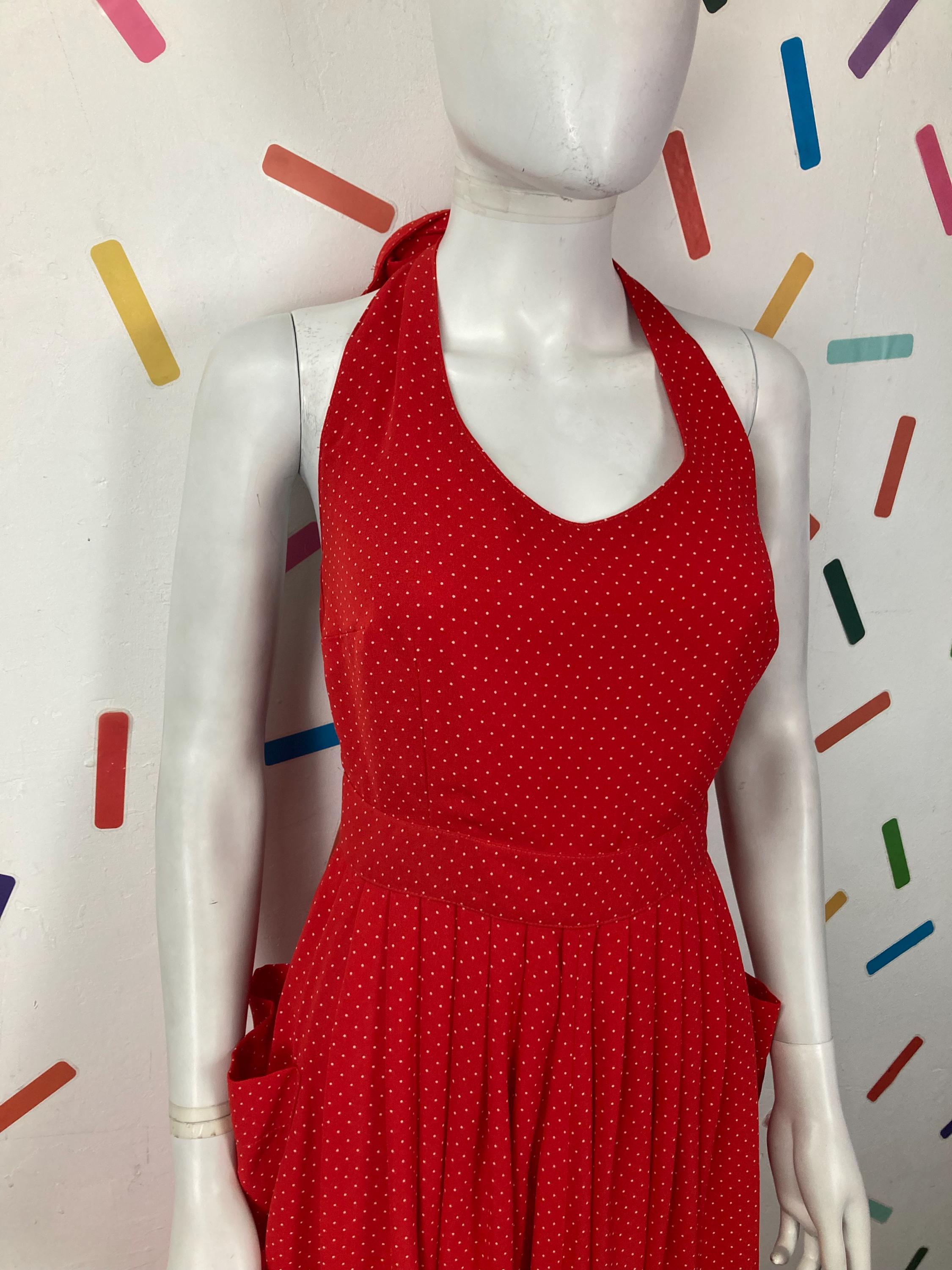 Other: This is an amazing red halter neck midi dress with bucket pockets and flower detail.