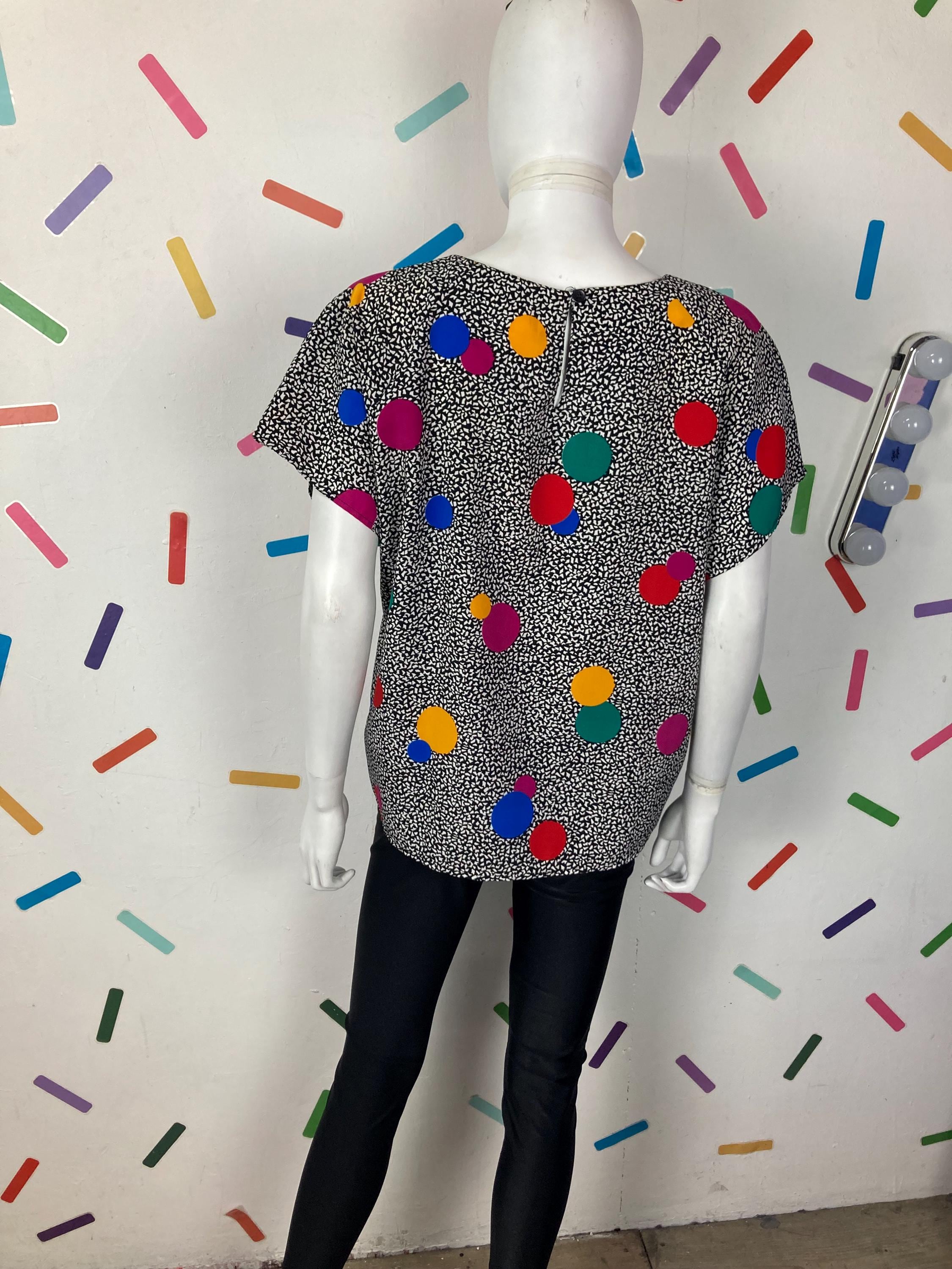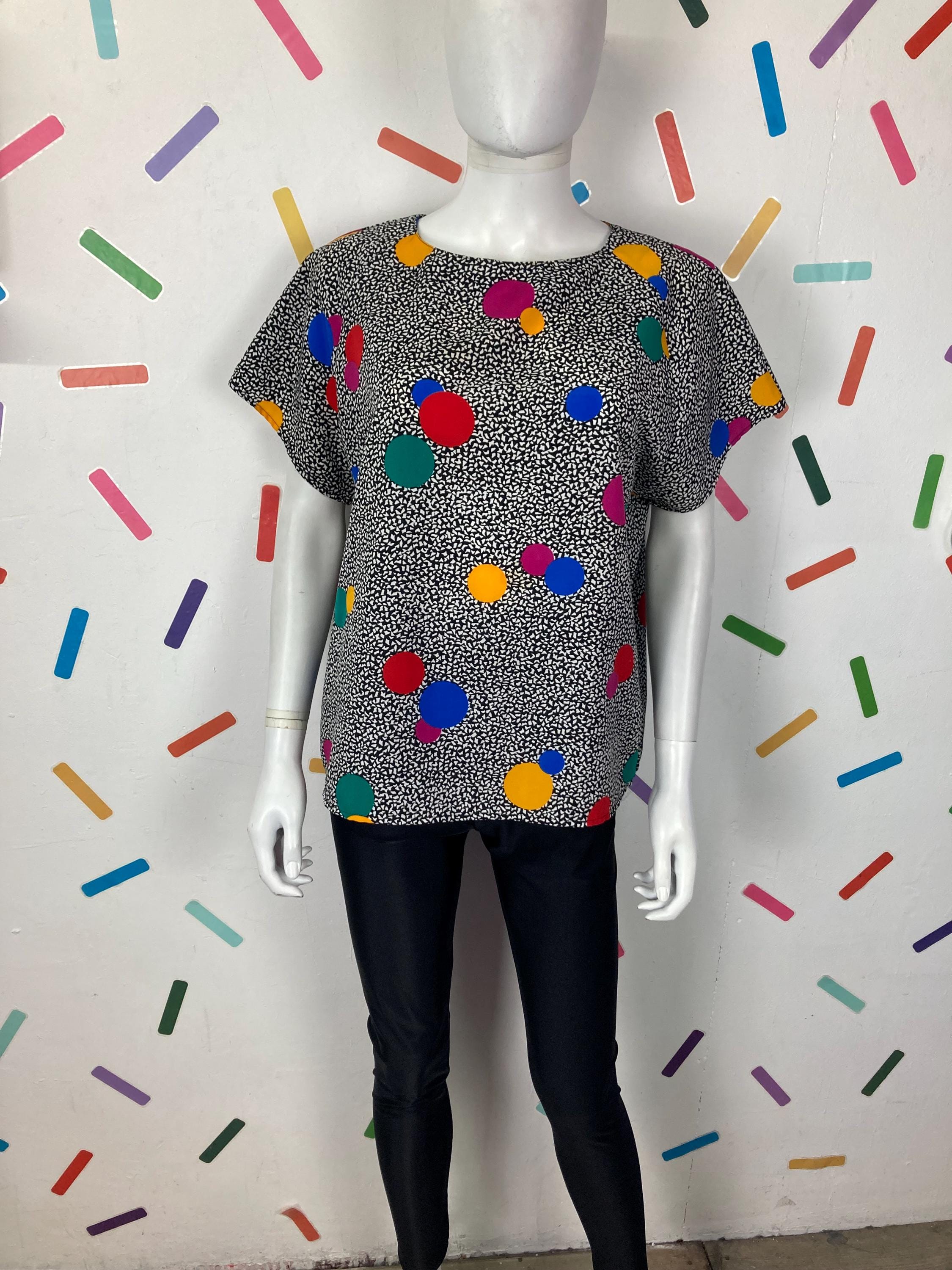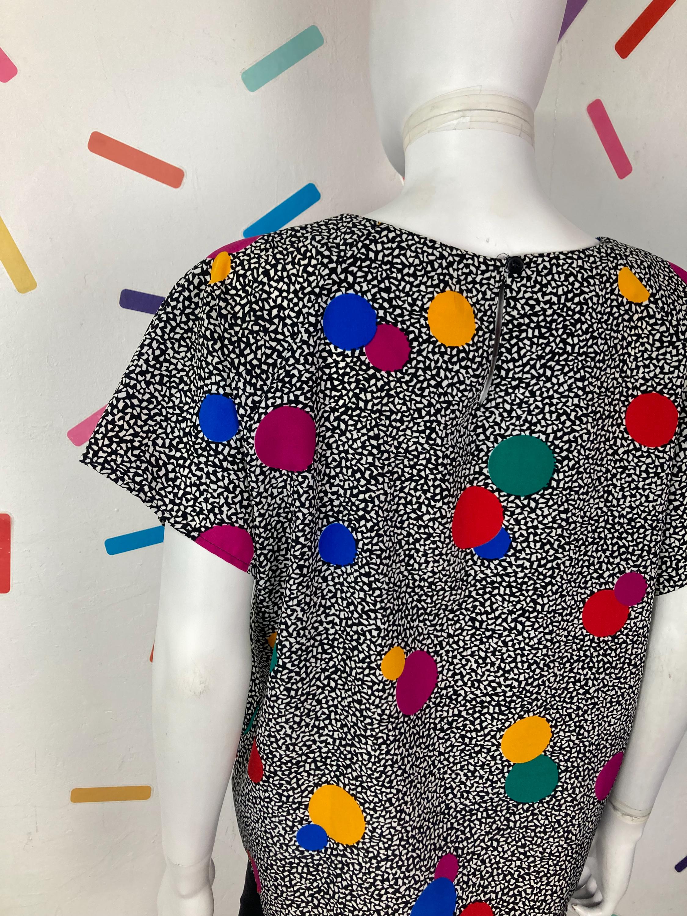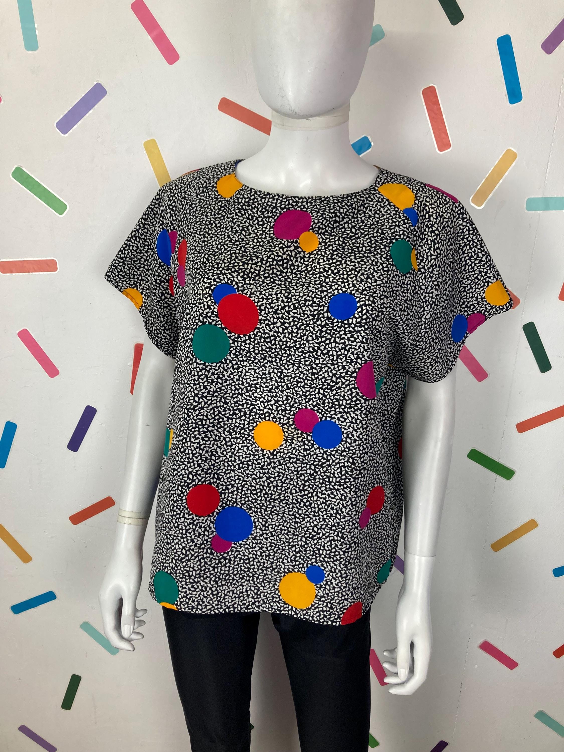 Other: This is an amazing spot design short sleeve blouse. Overhead design with neck button fastening at neck.
