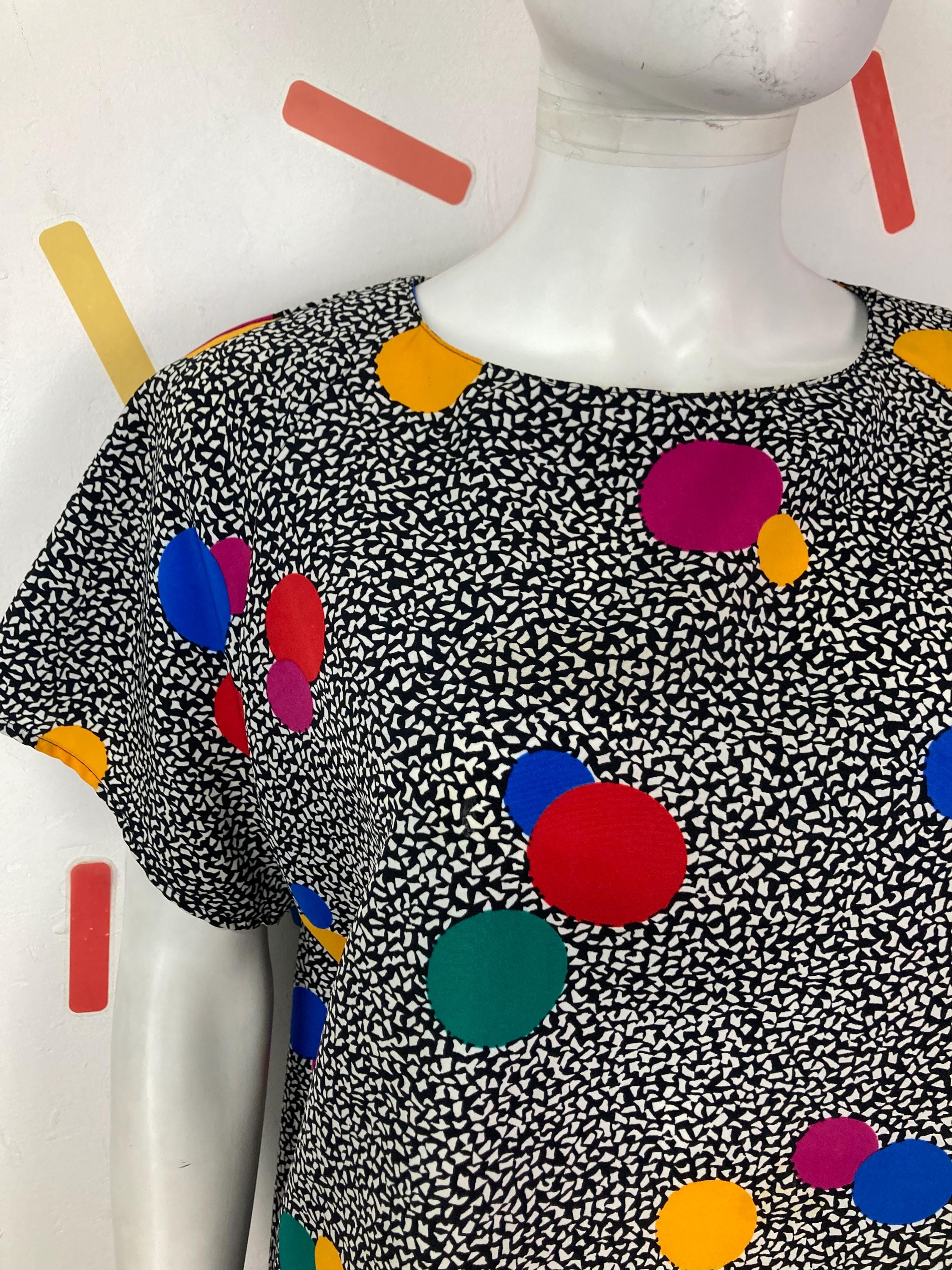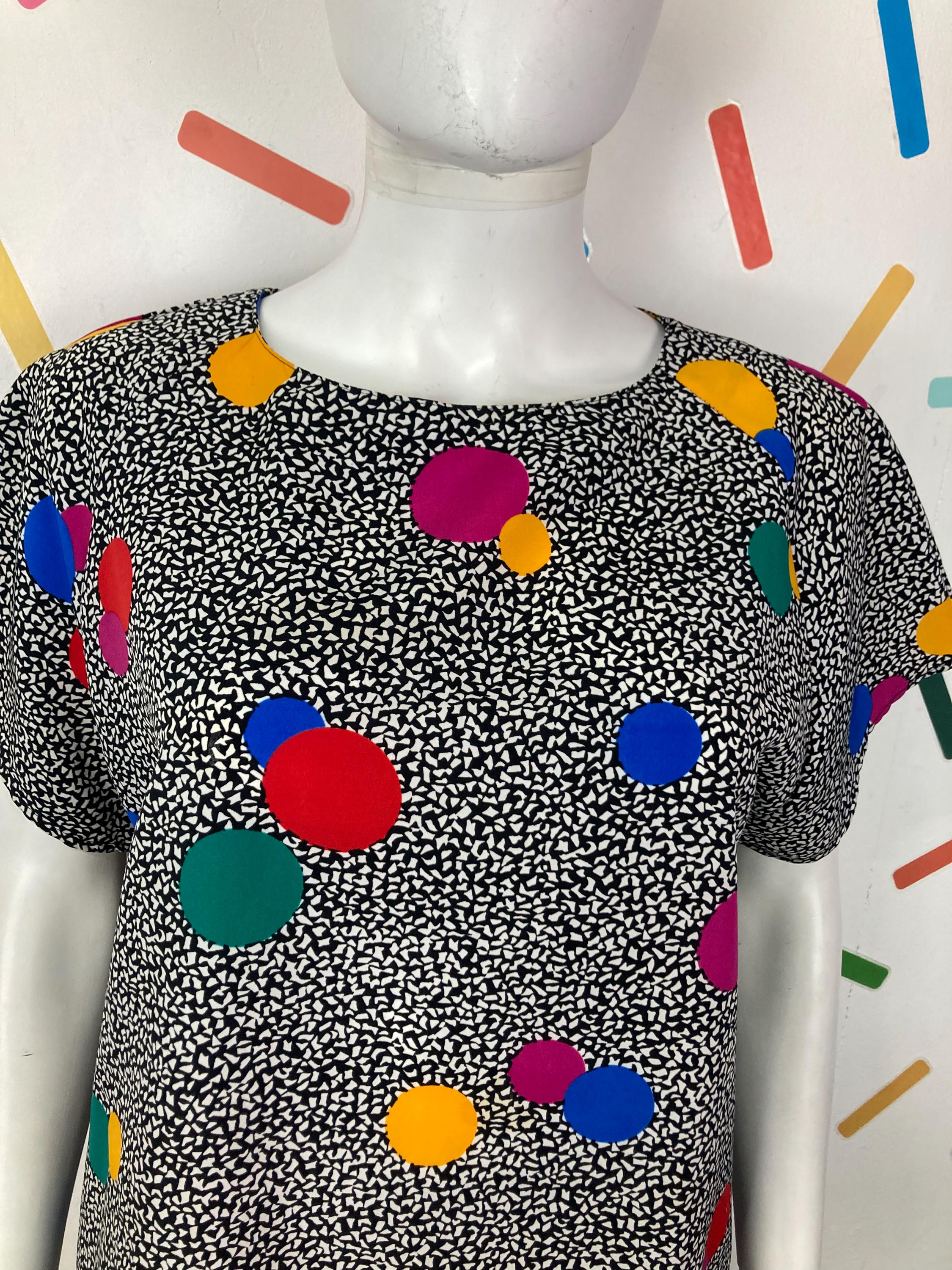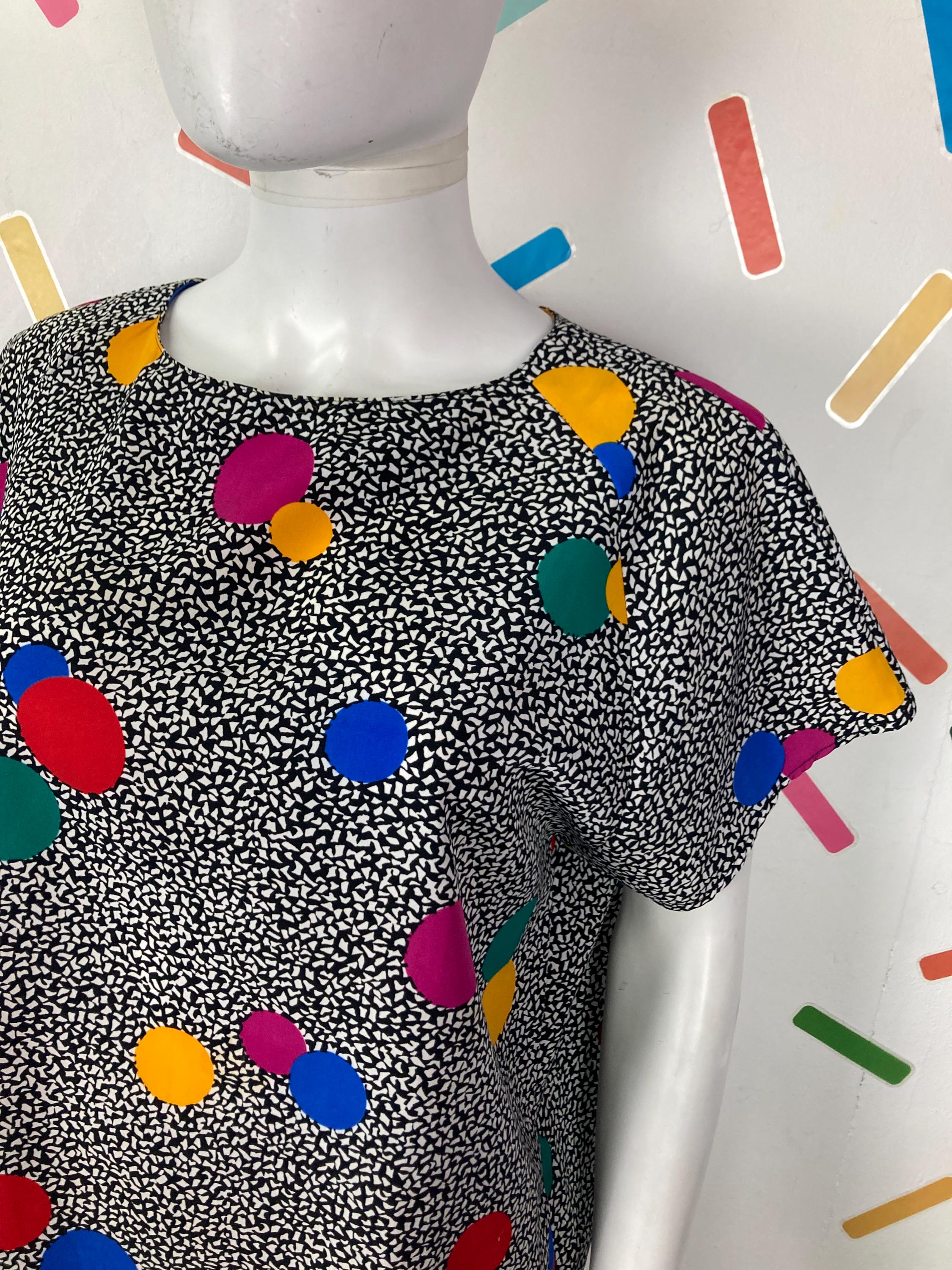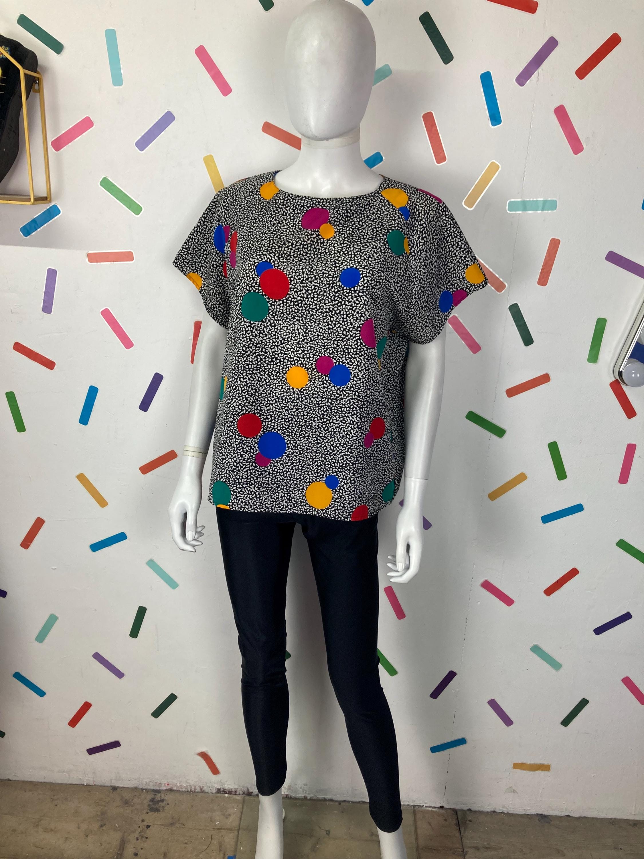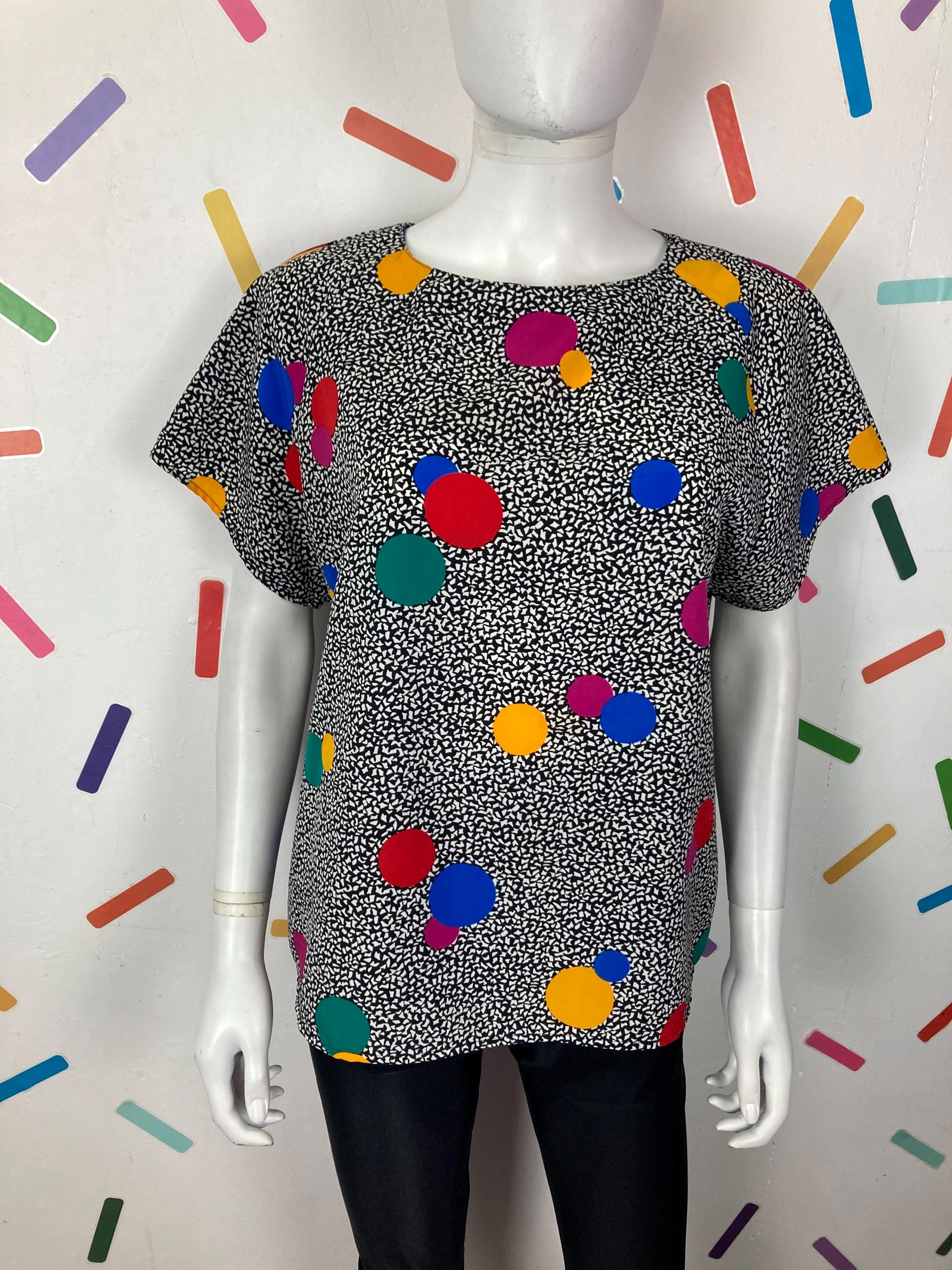 Other: This is an amazing spot design short sleeve blouse. Overhead design with neck button fastening at neck.