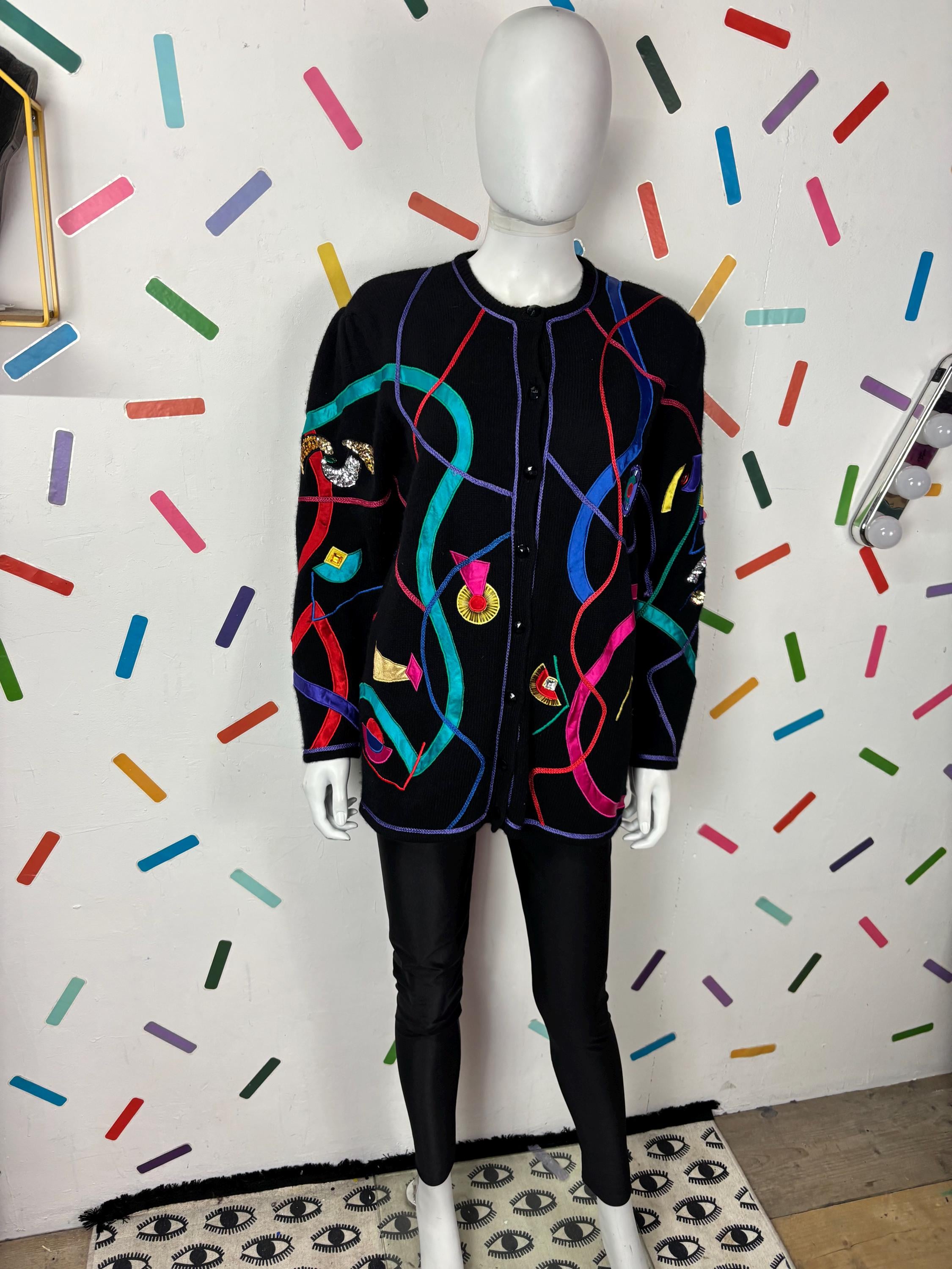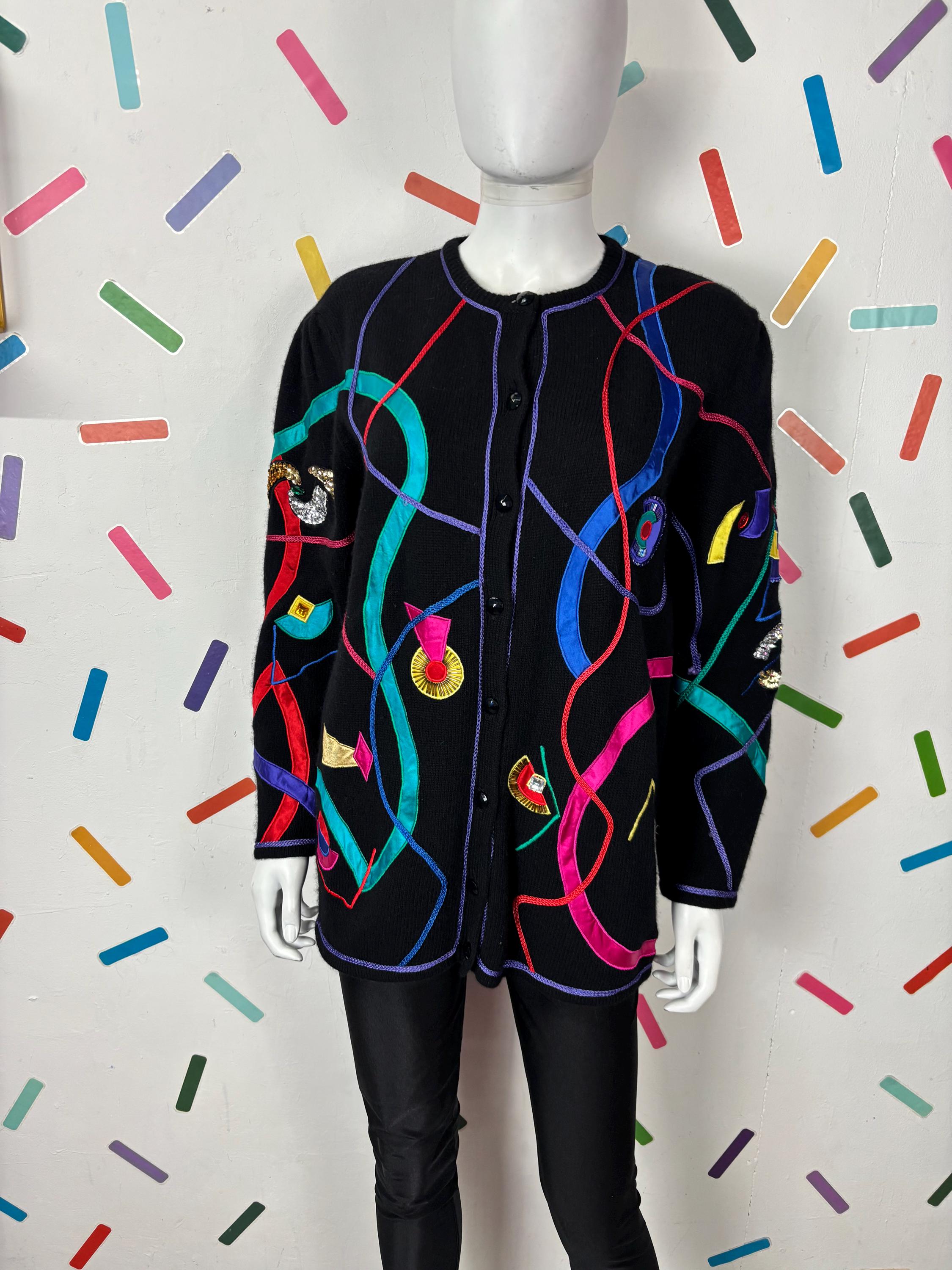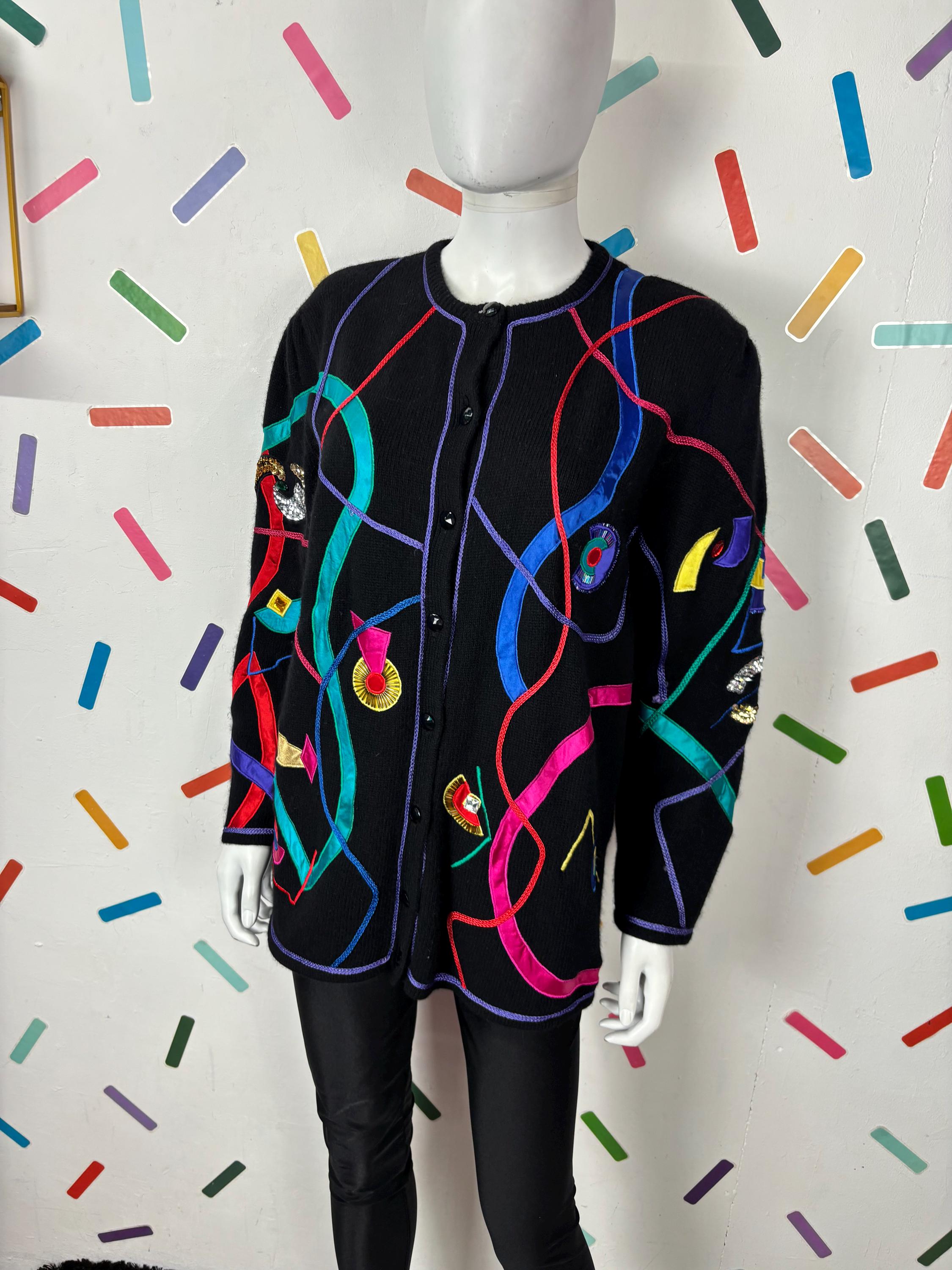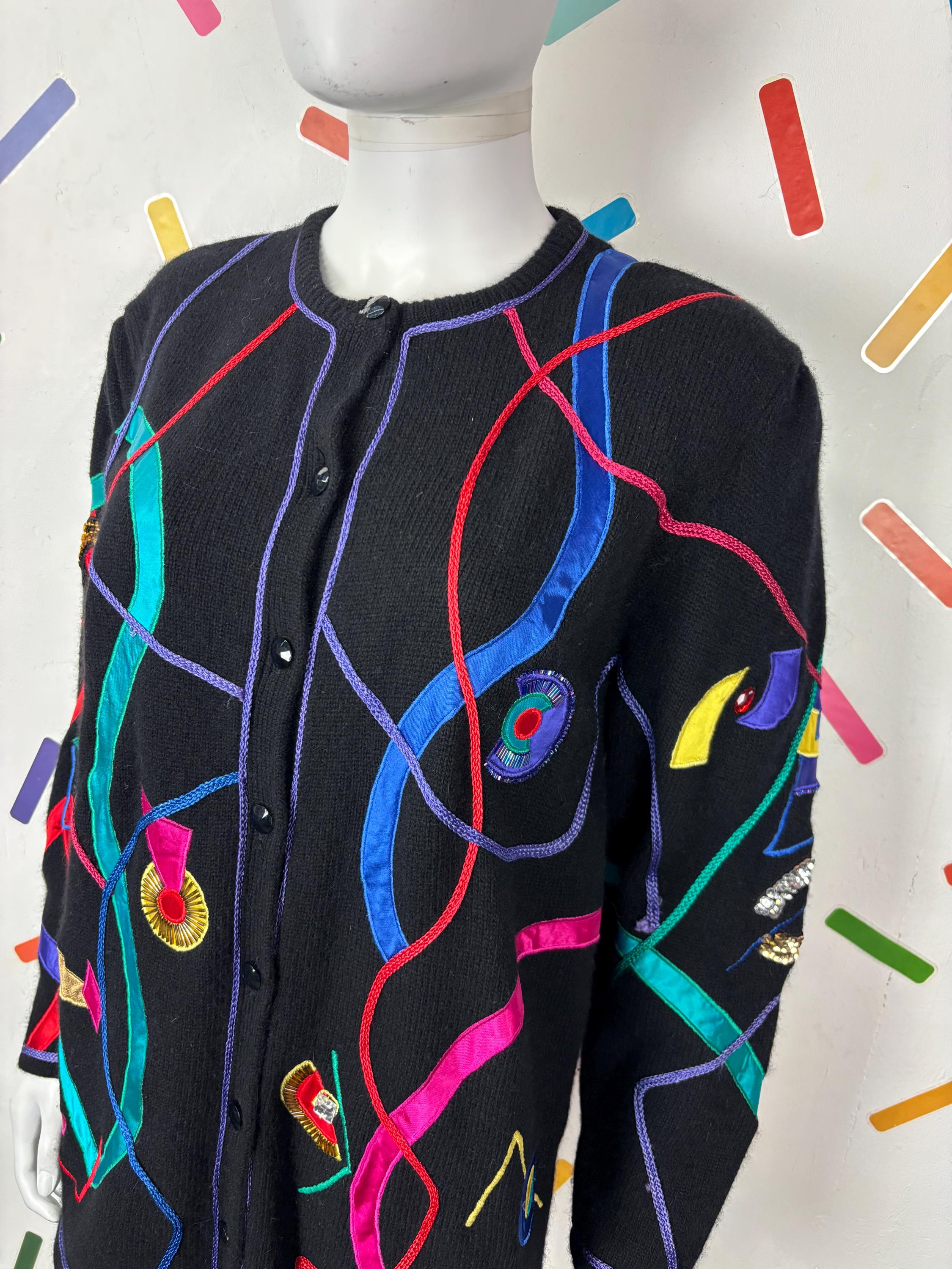 Other: This is a great 80s 3D design cardigan with jewel and ribbon design.