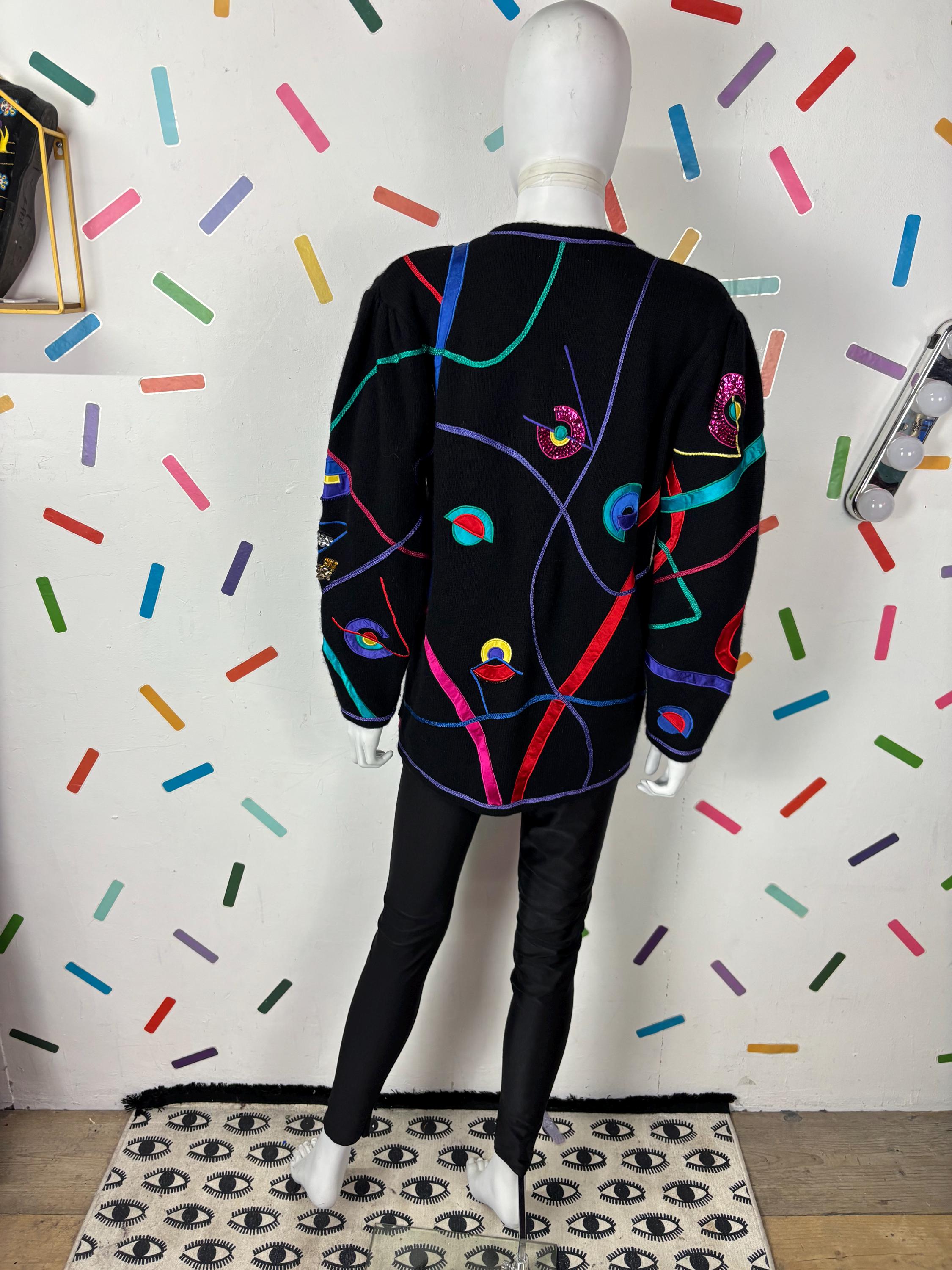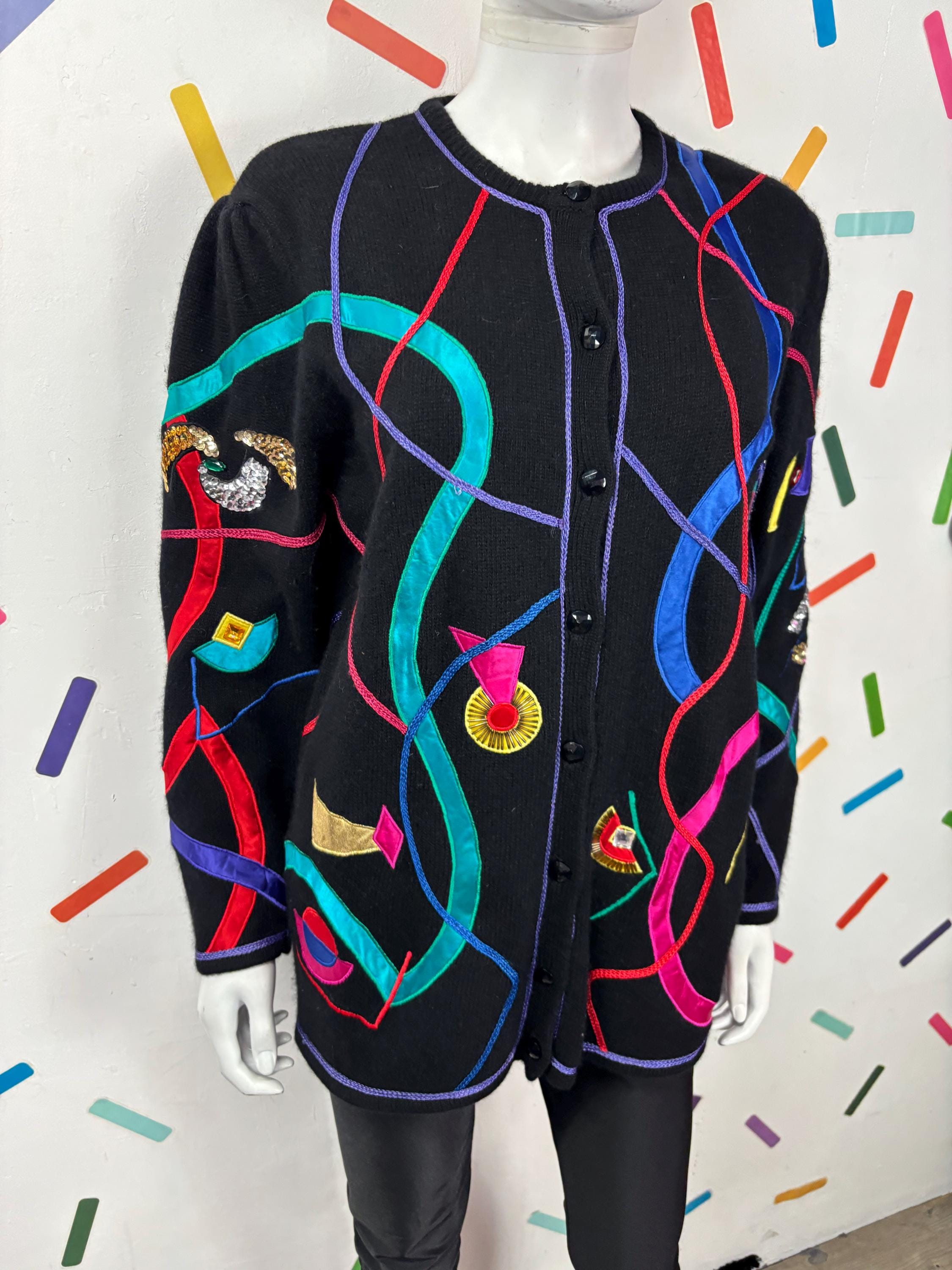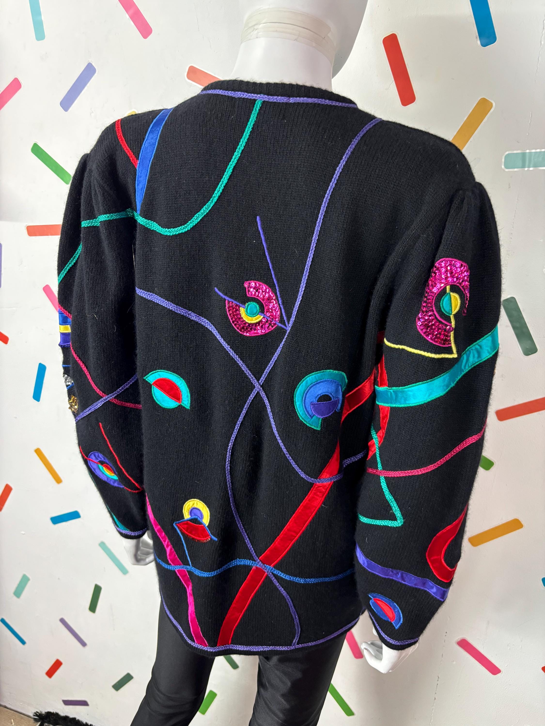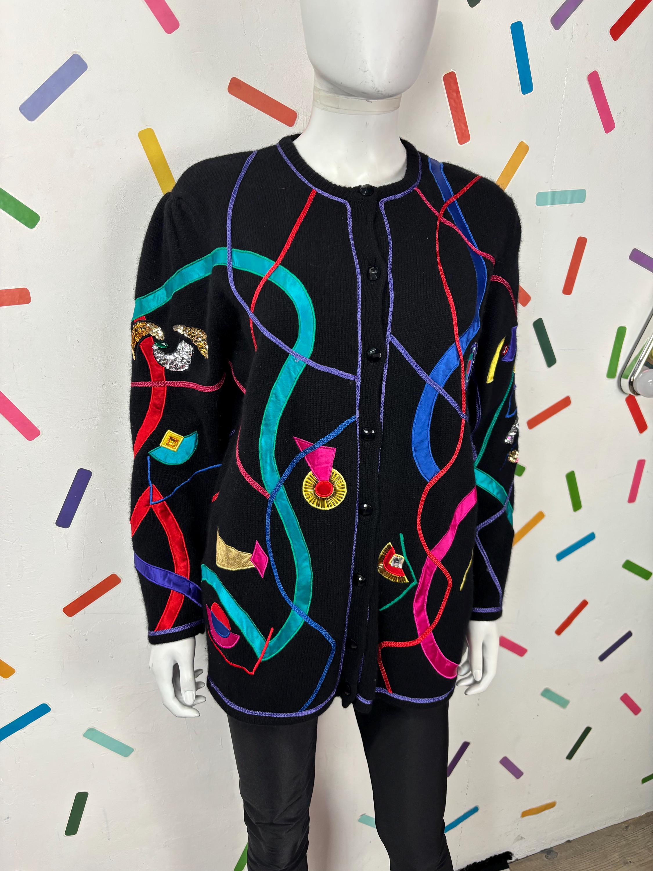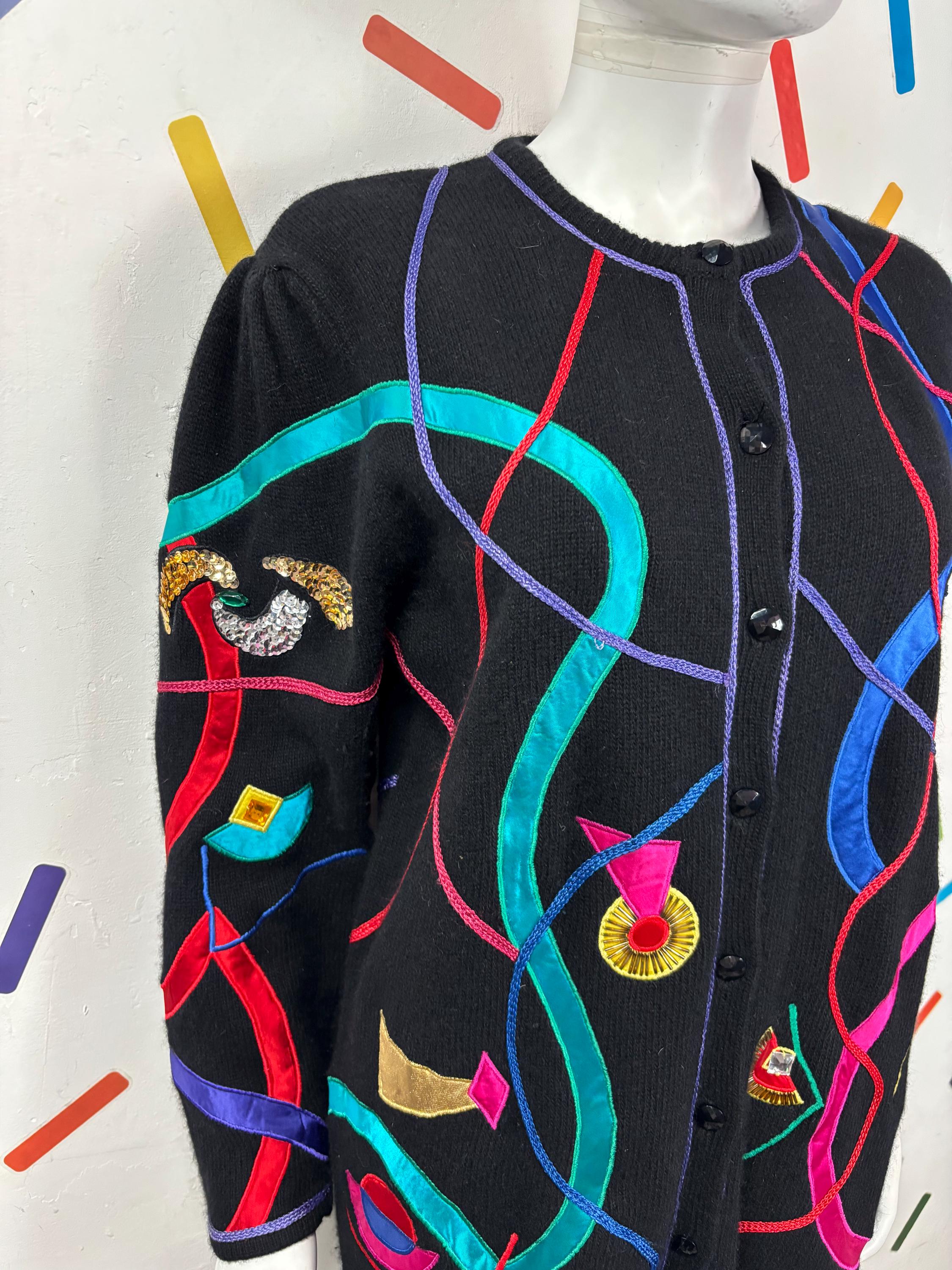 Other: This is a great 80s 3D design cardigan with jewel and ribbon design.