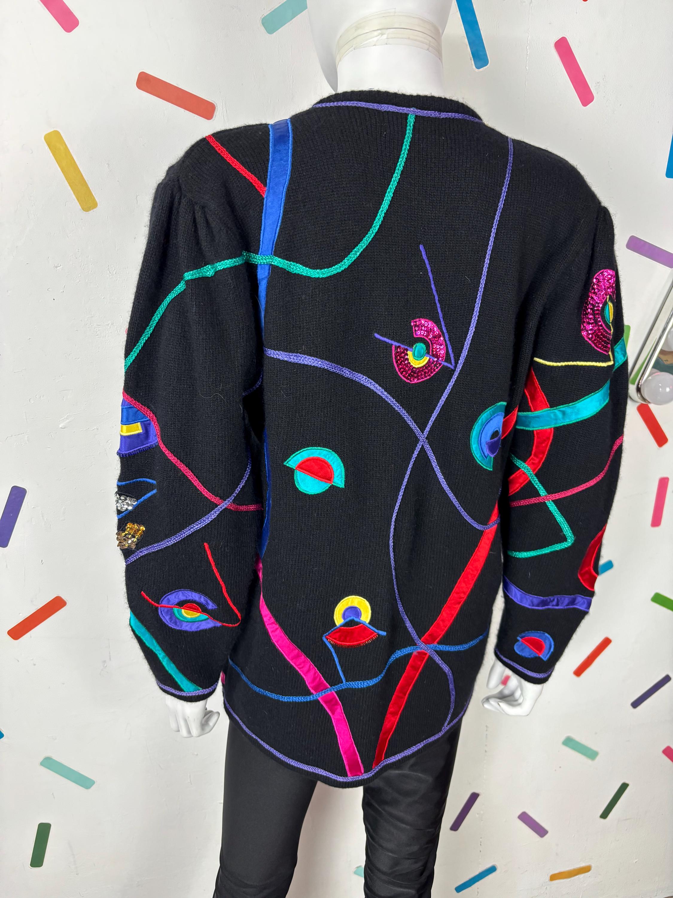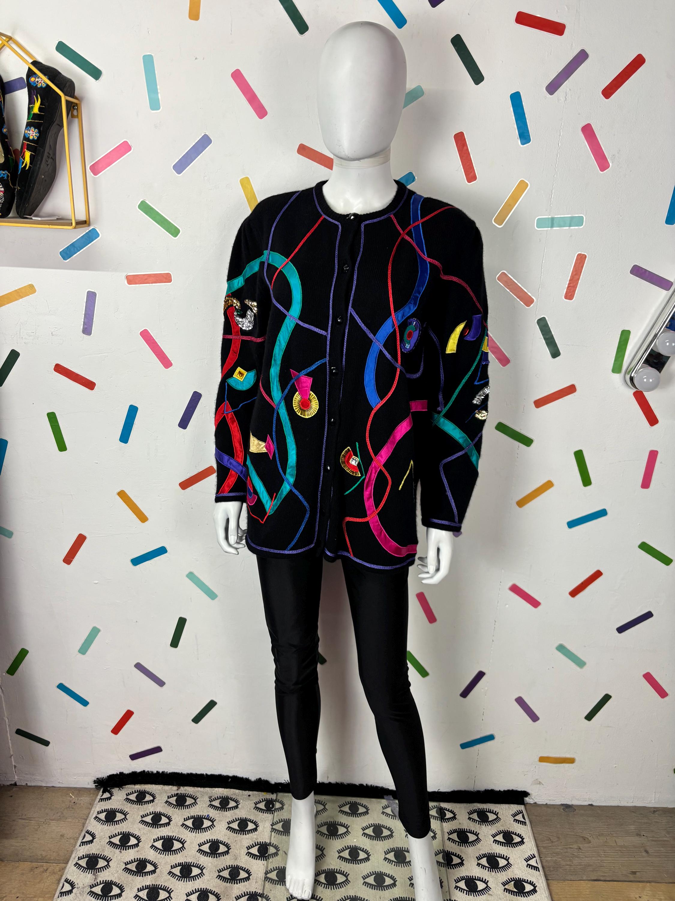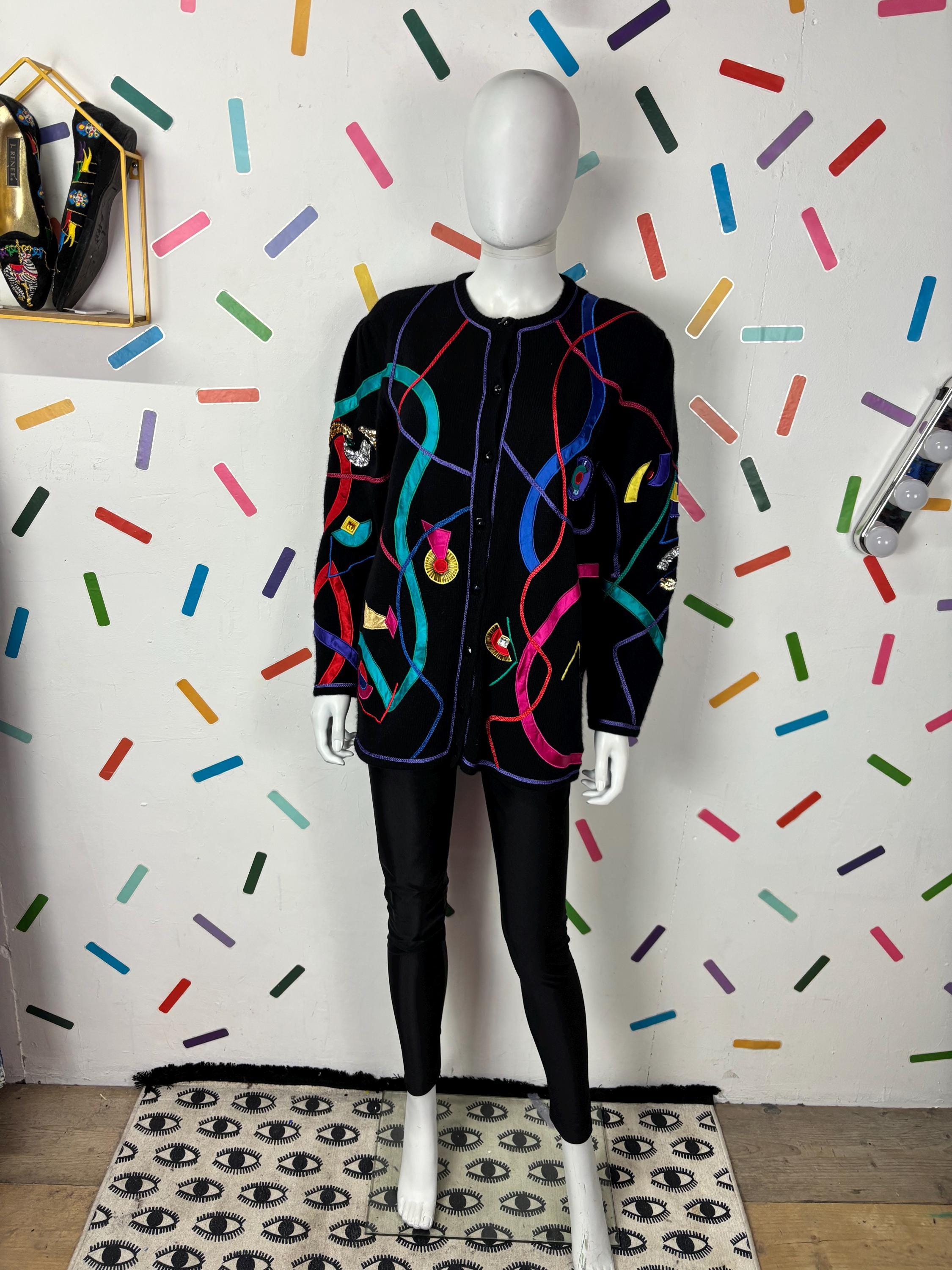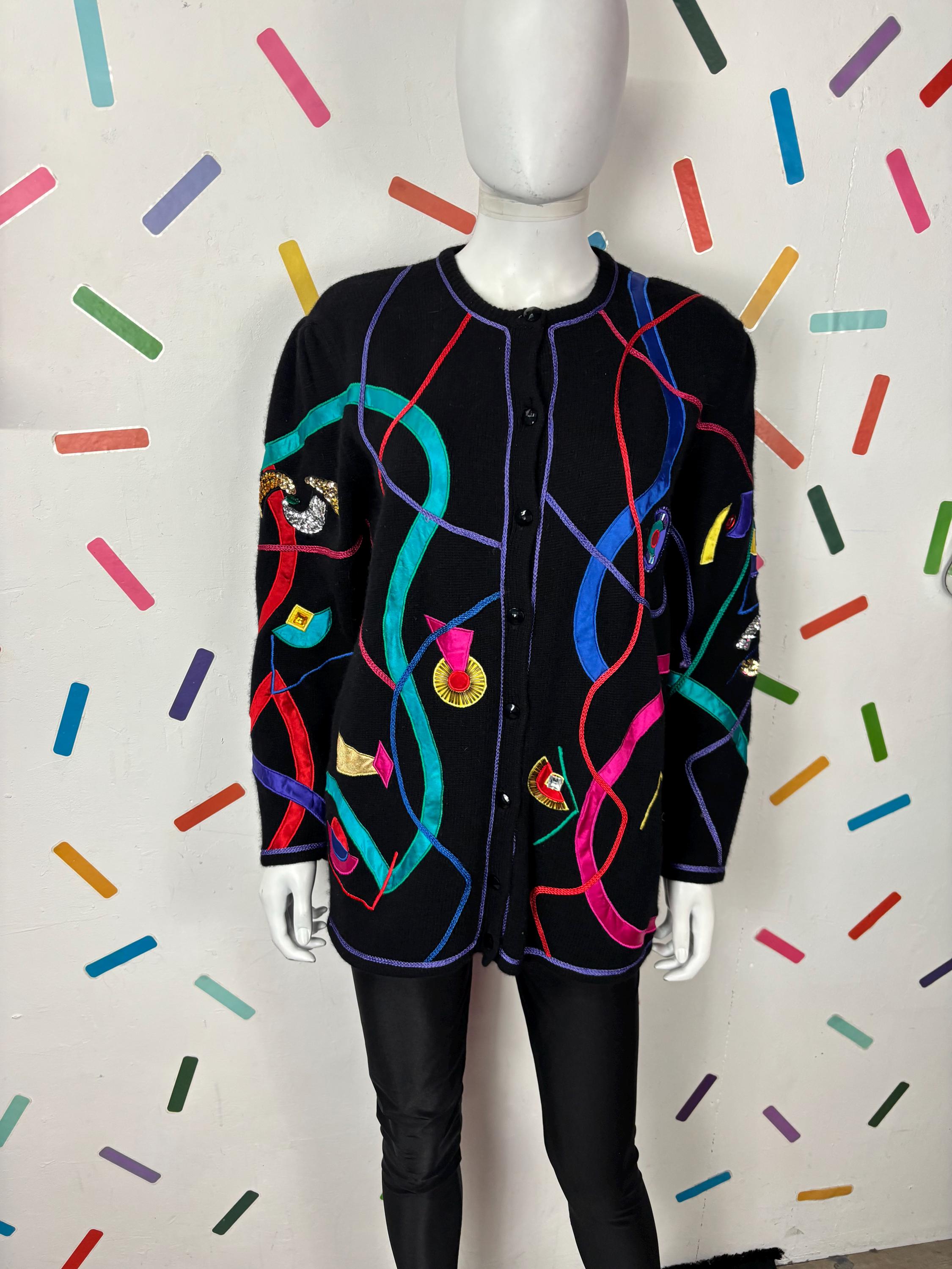 Other: This is a great 80s 3D design cardigan with jewel and ribbon design.