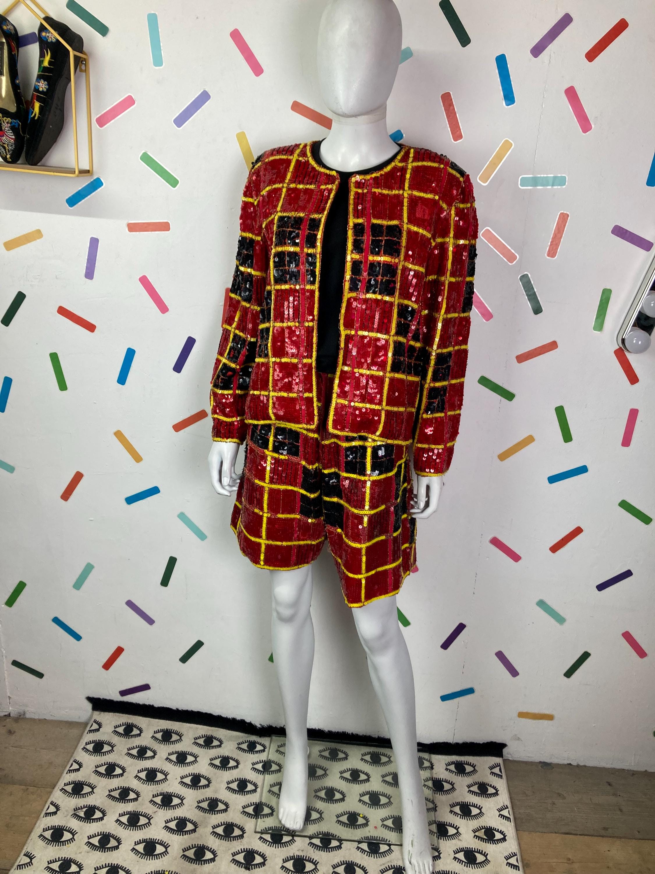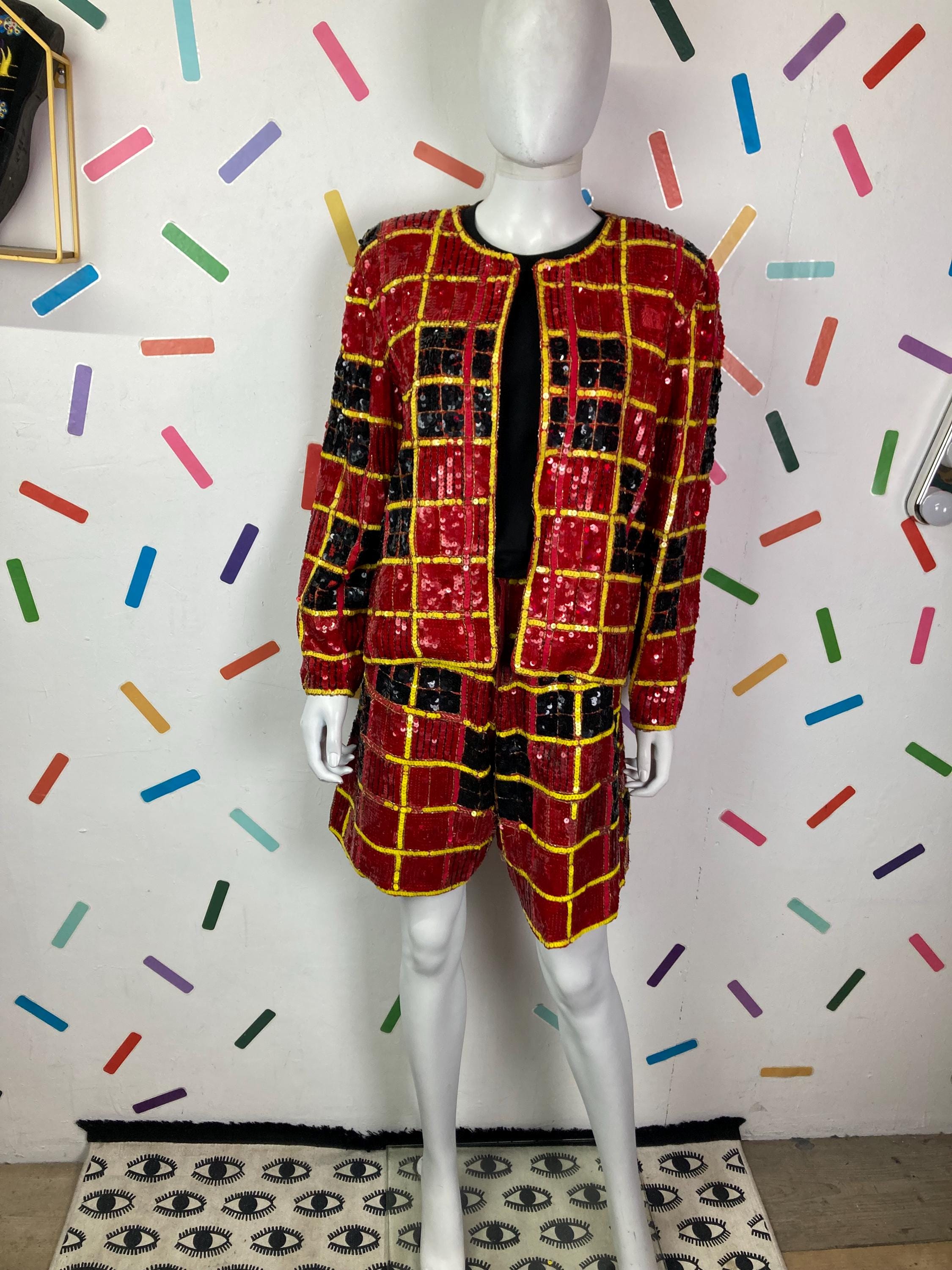 Other: This is a fabulous 80s sequin 2 piece set. Tartan check design. These are in used condition. They do have so battle damage and they have been worn, but they are still show stopping.