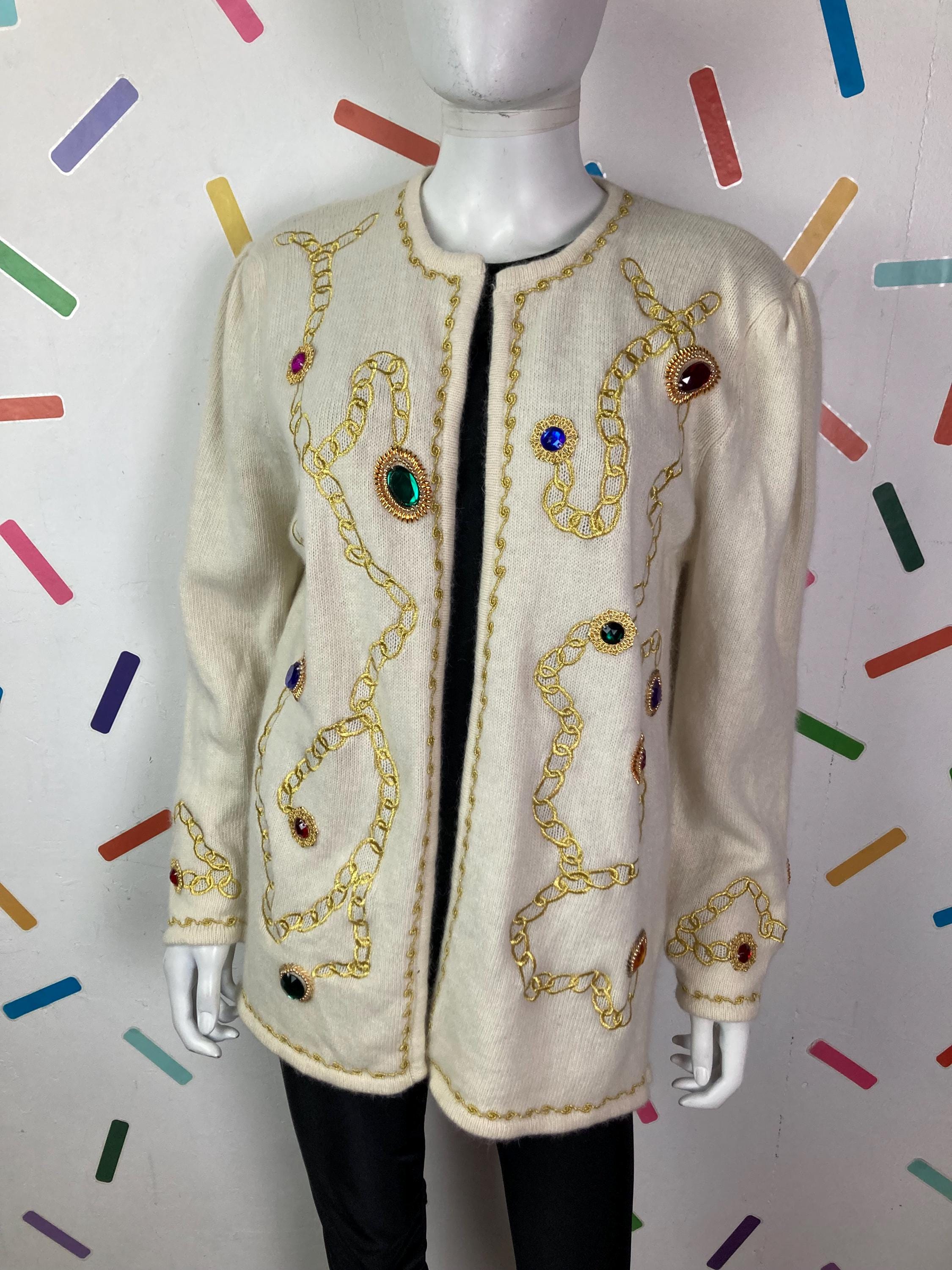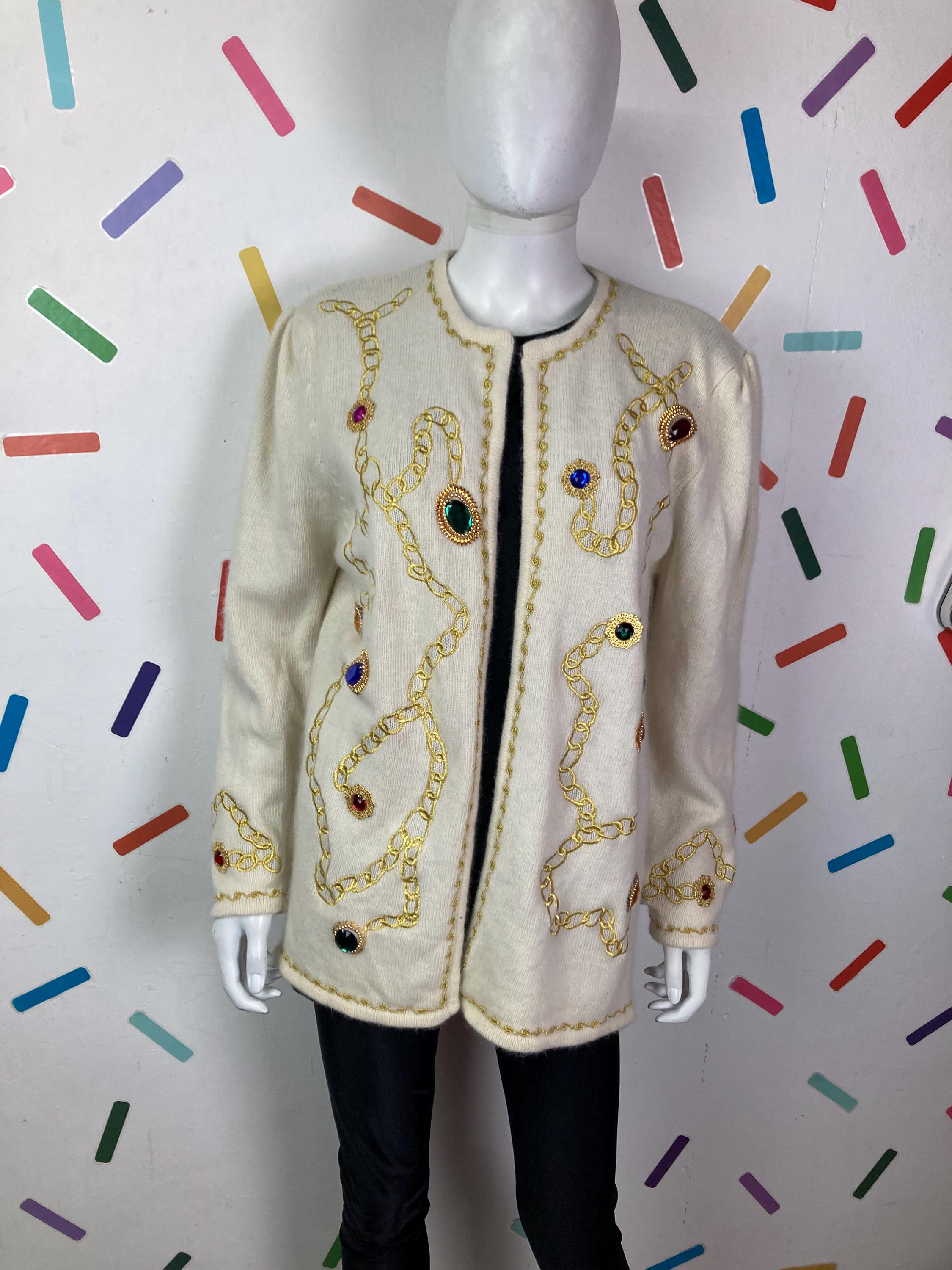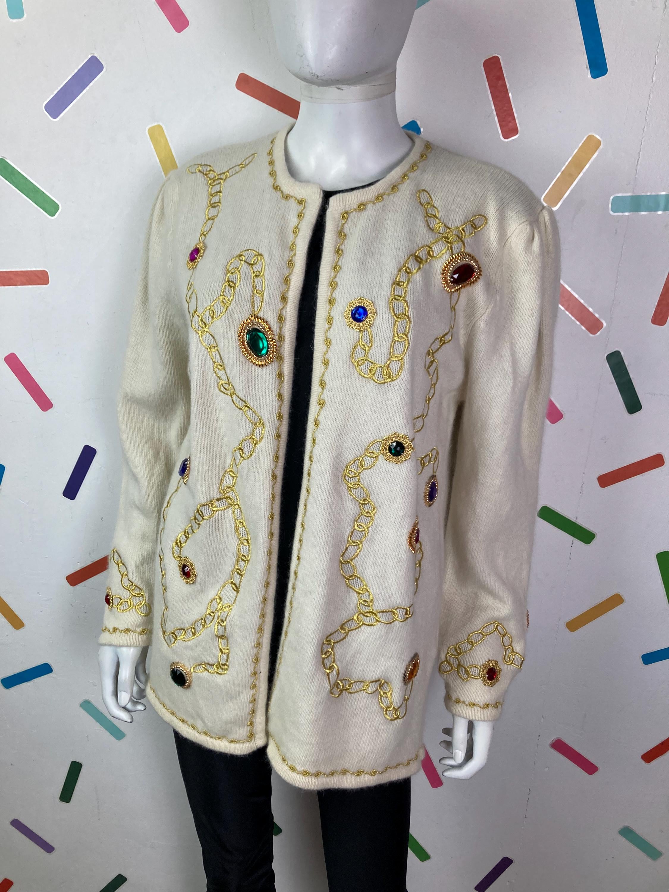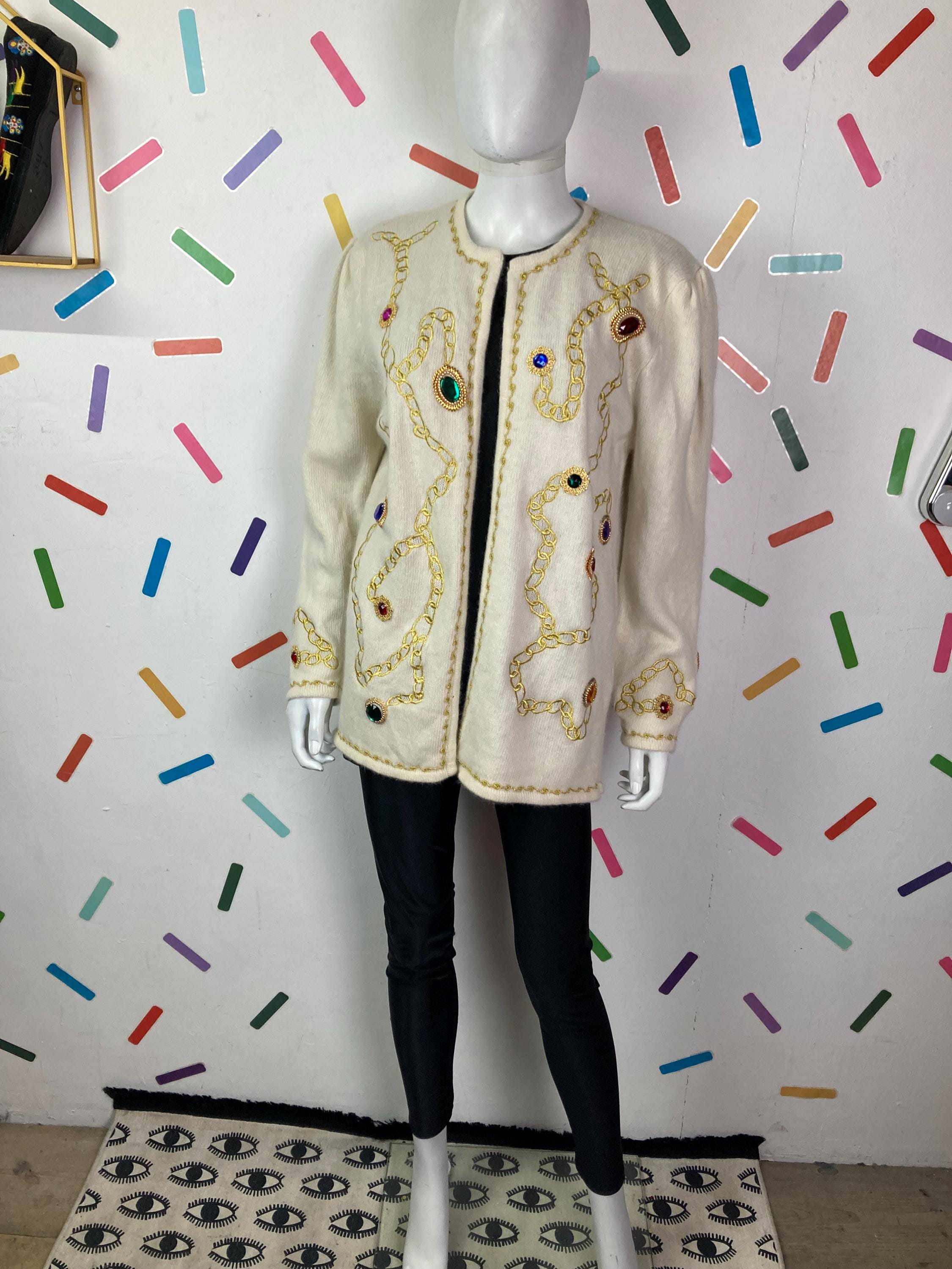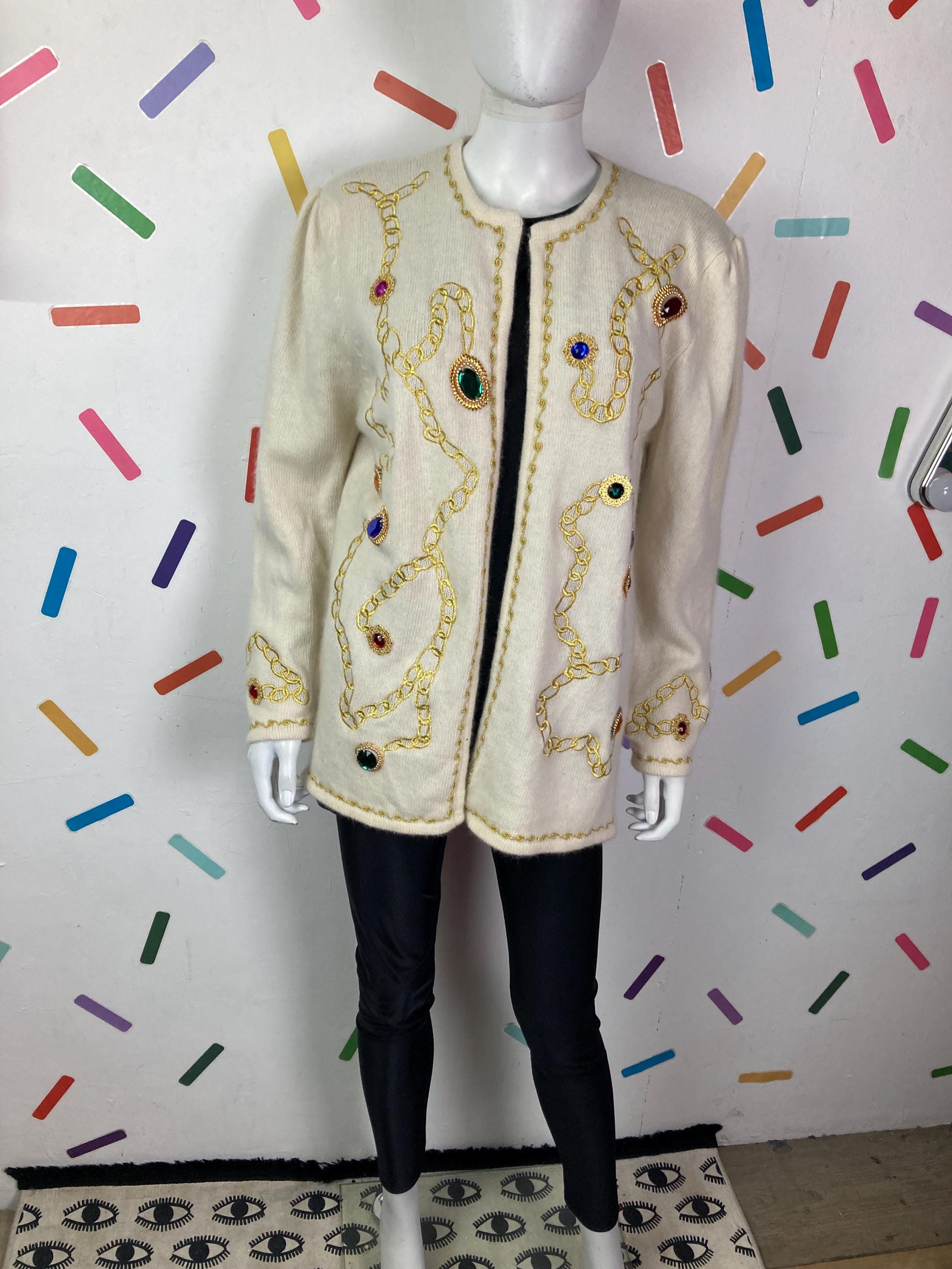 Other: This is a fabulous 80s cream knitted cardigan with the most amazing jewel design.