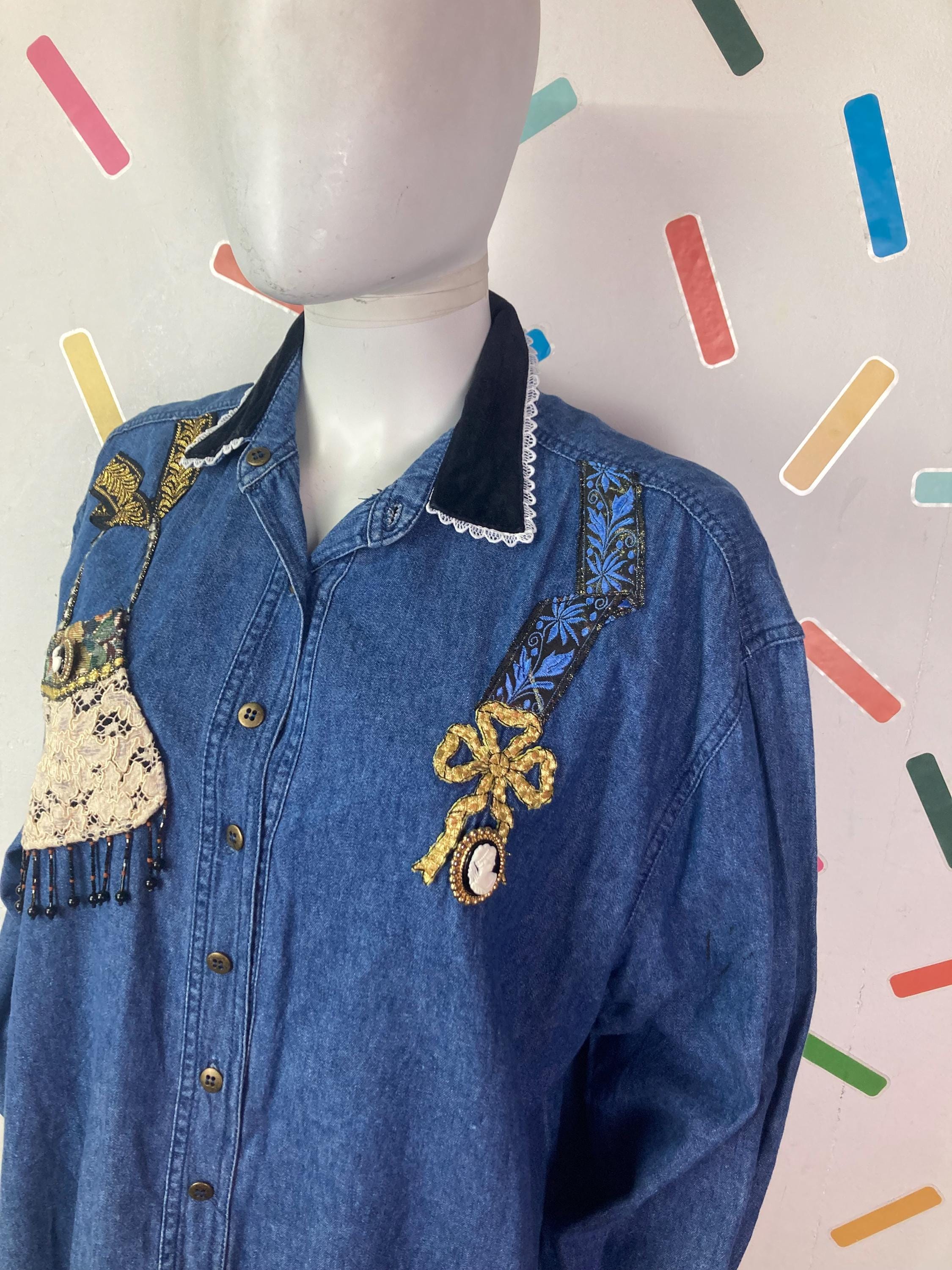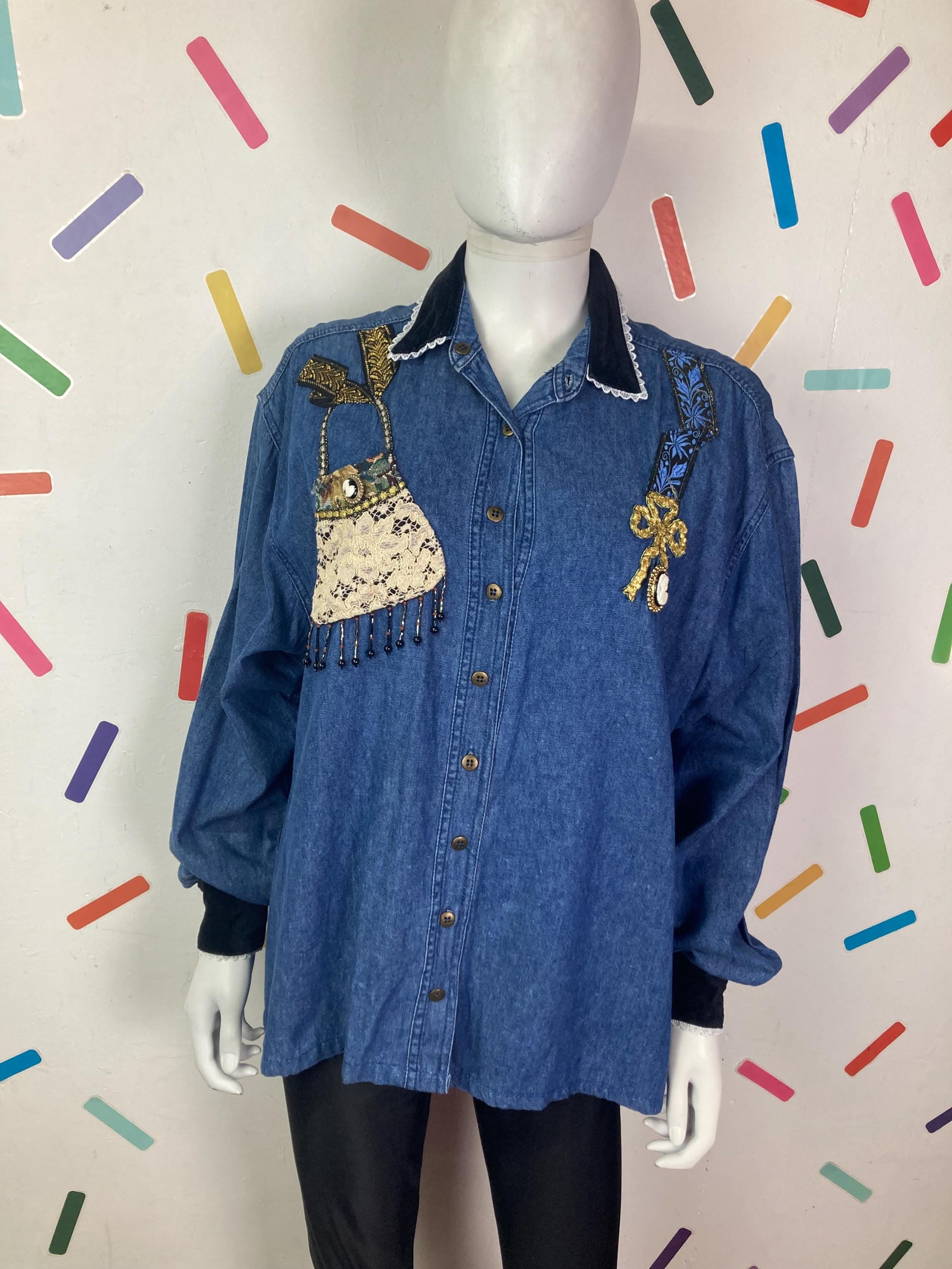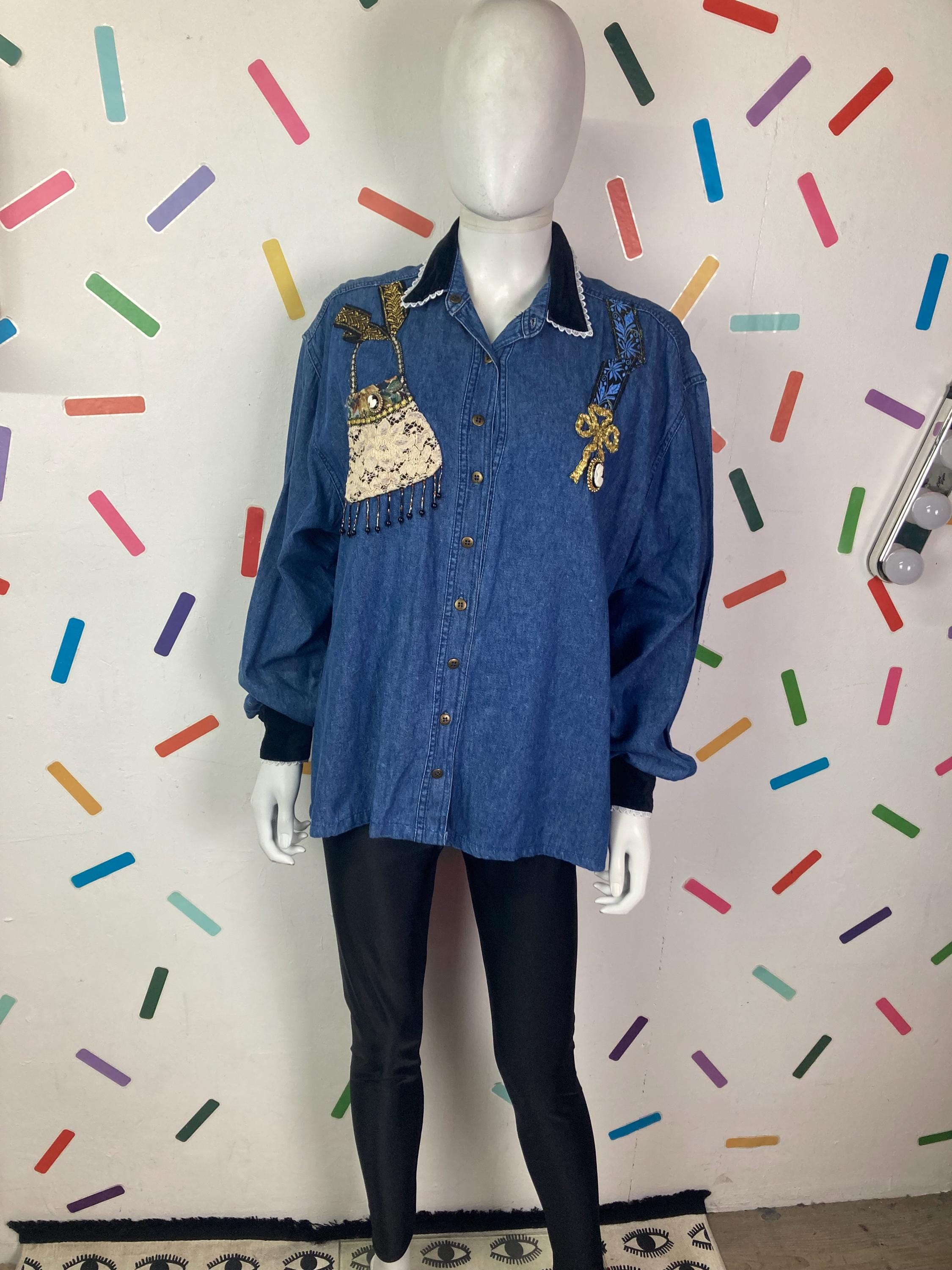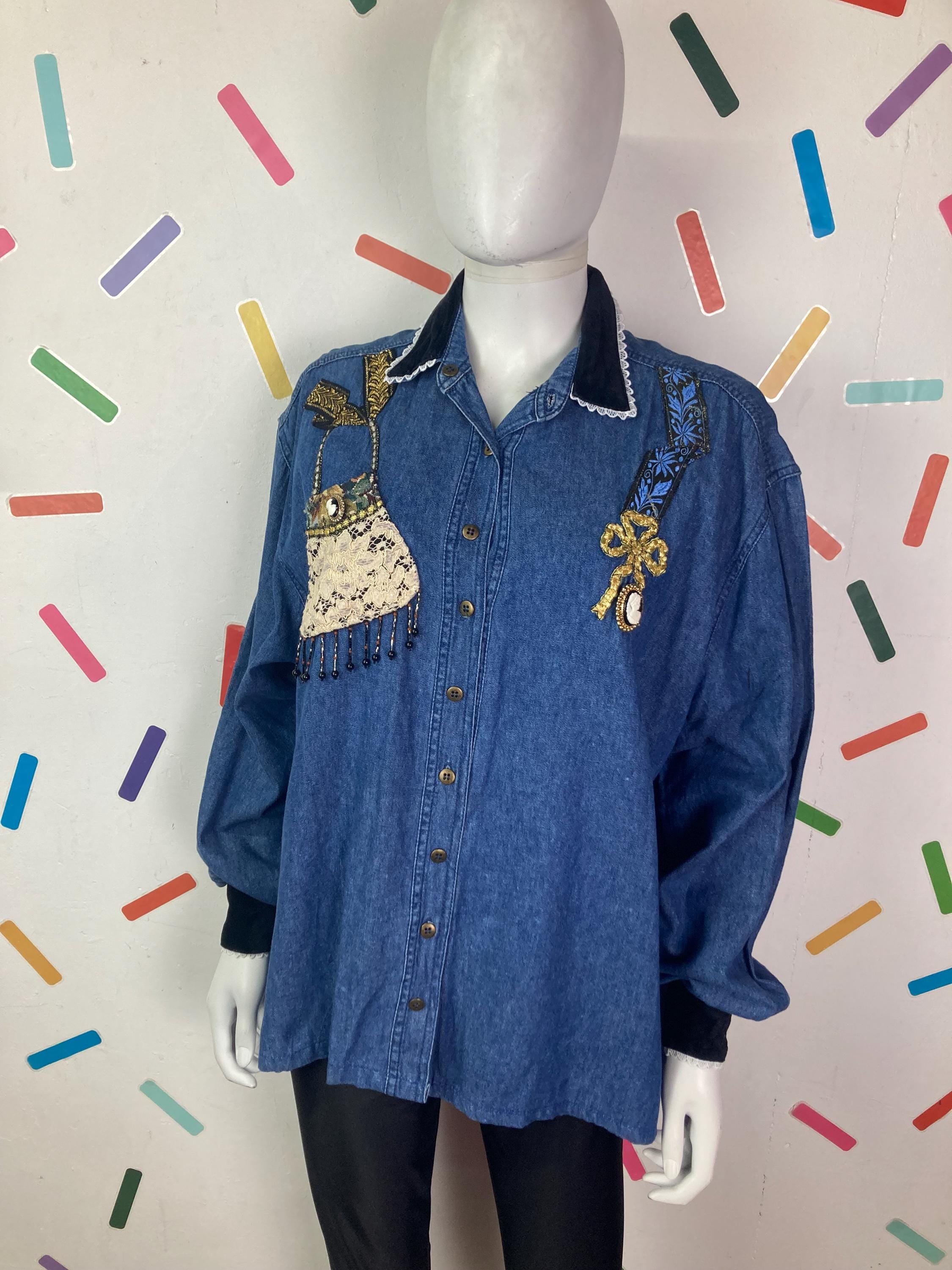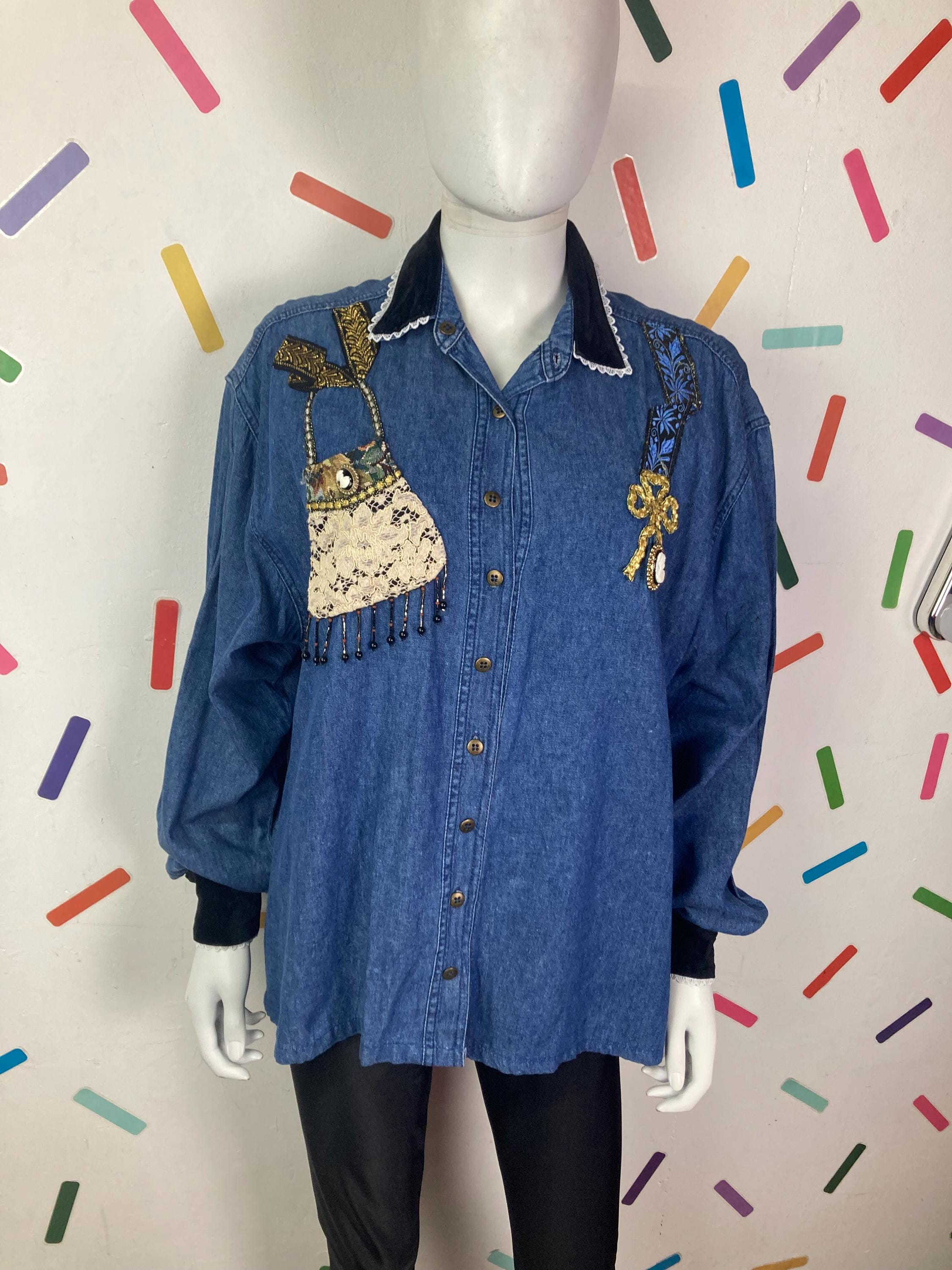 Other: This is a fabulous 80s denim shirt with the most amazing applique details and velvet collar and cuffs.