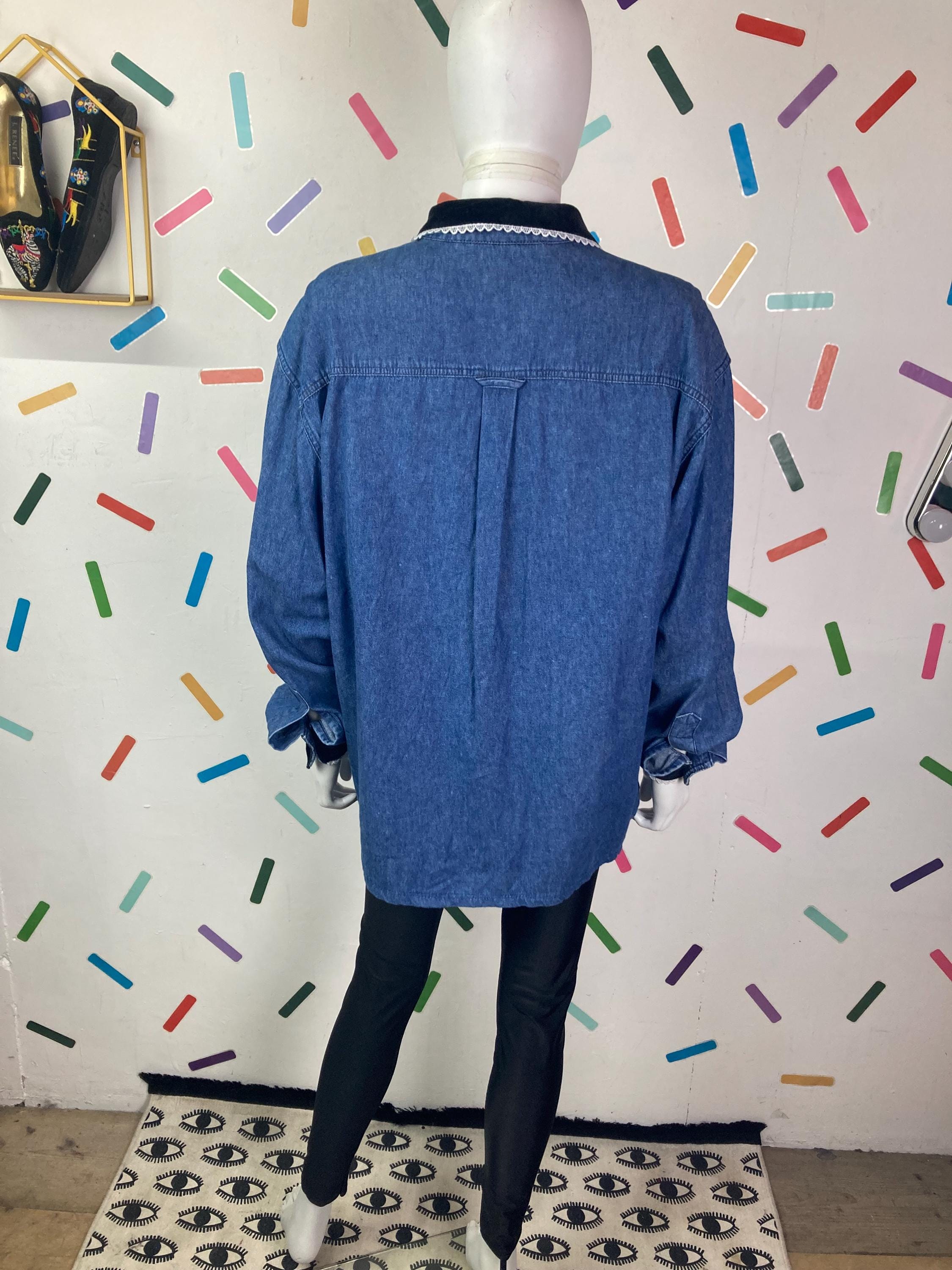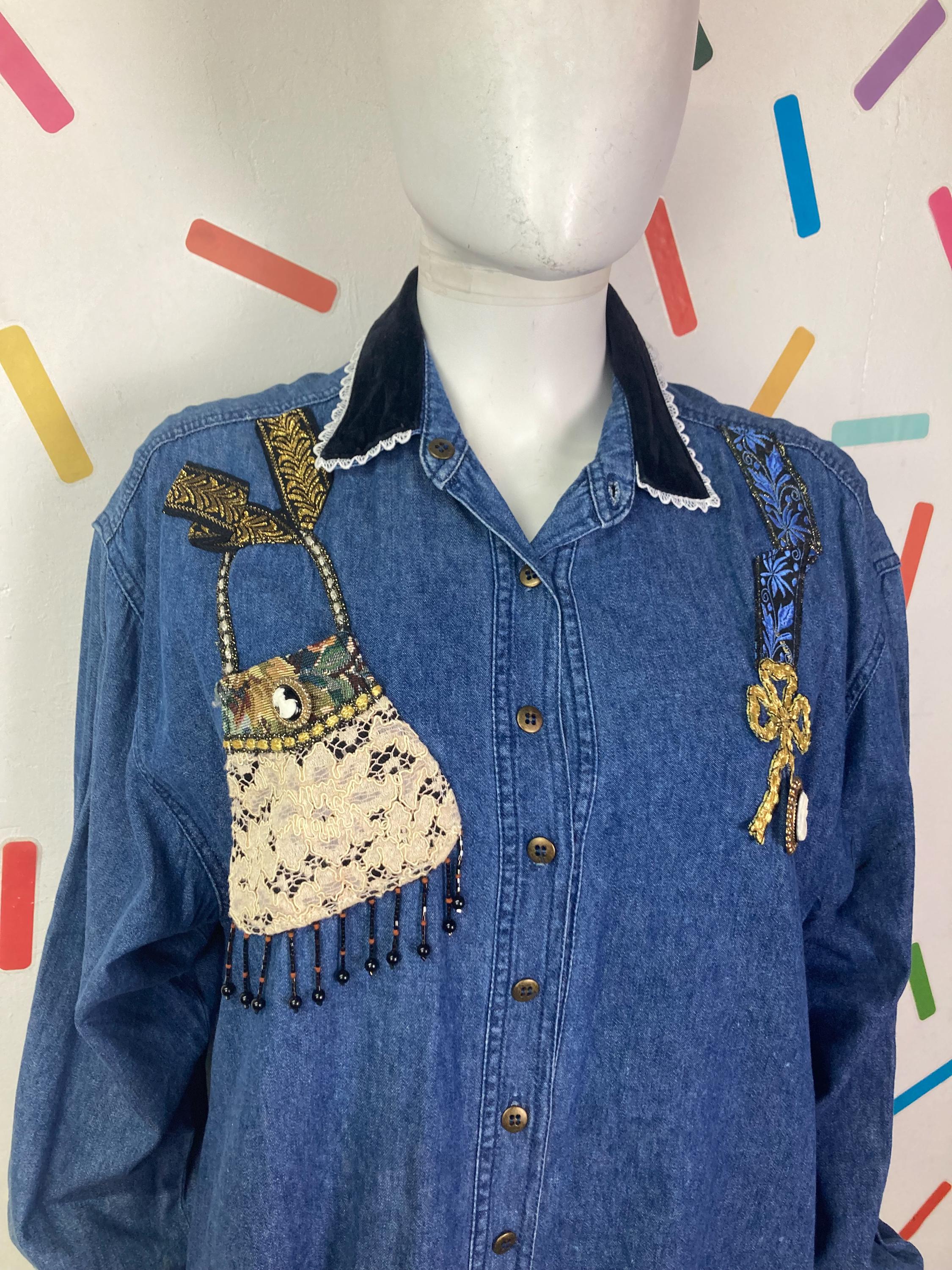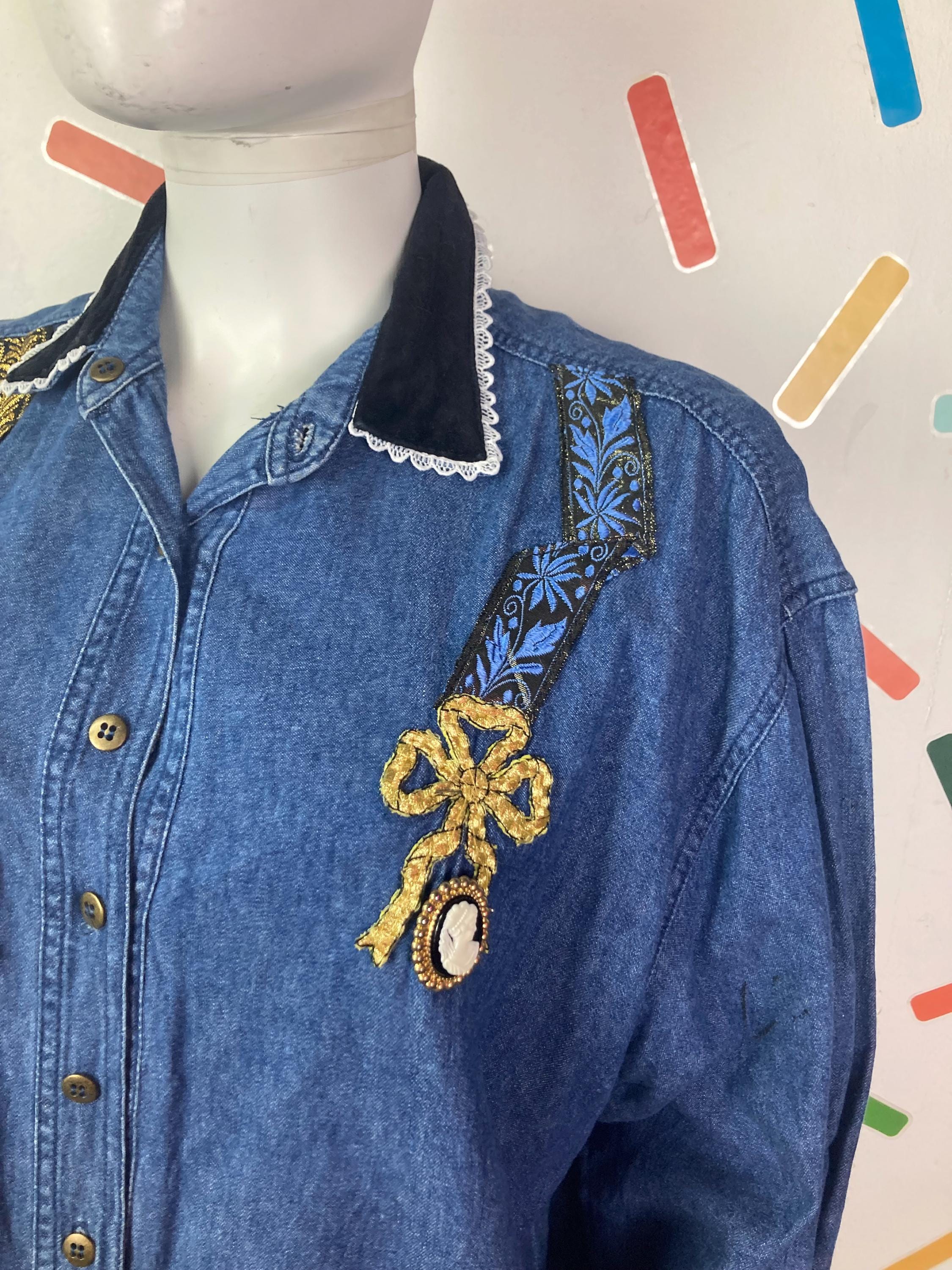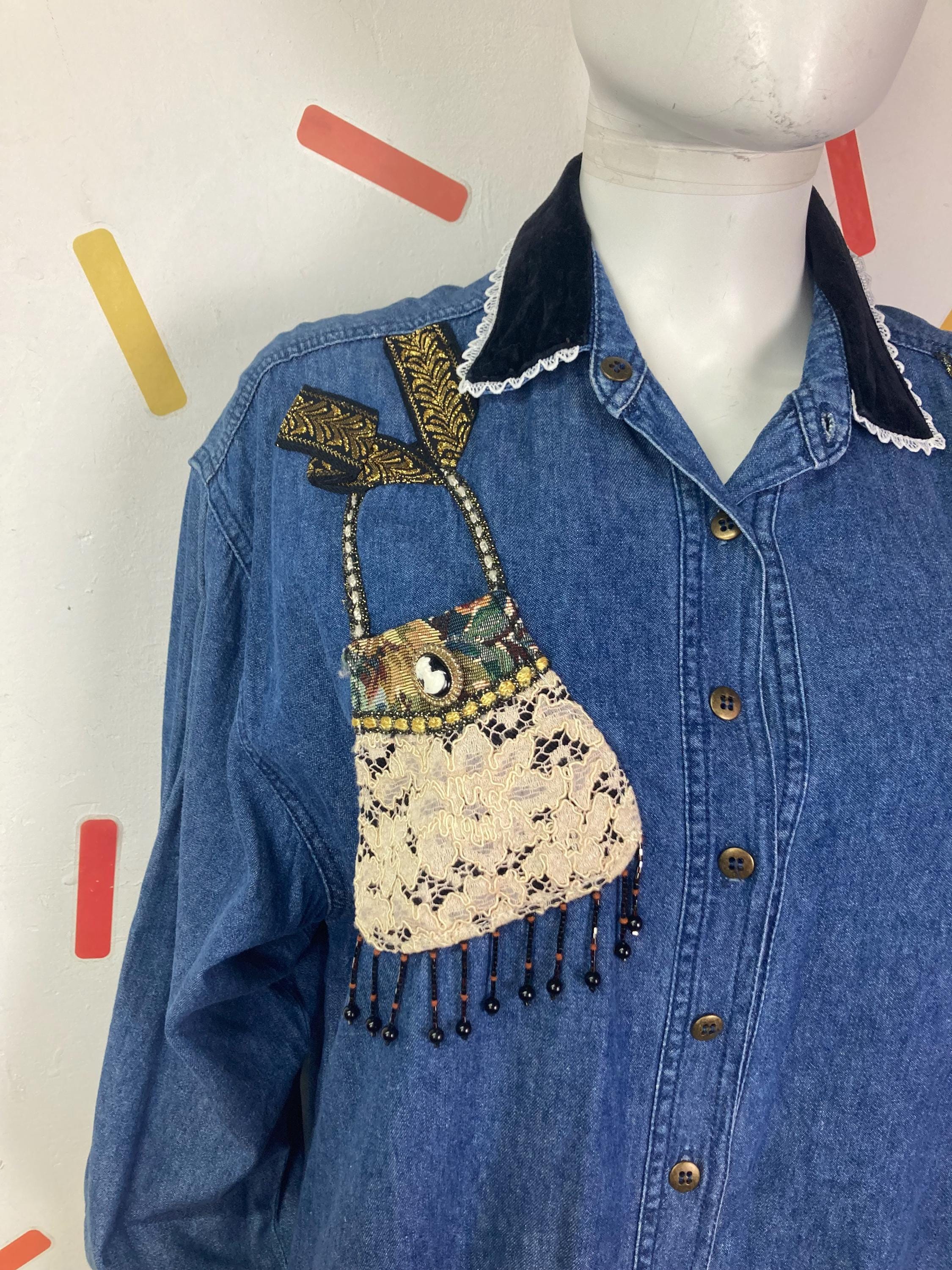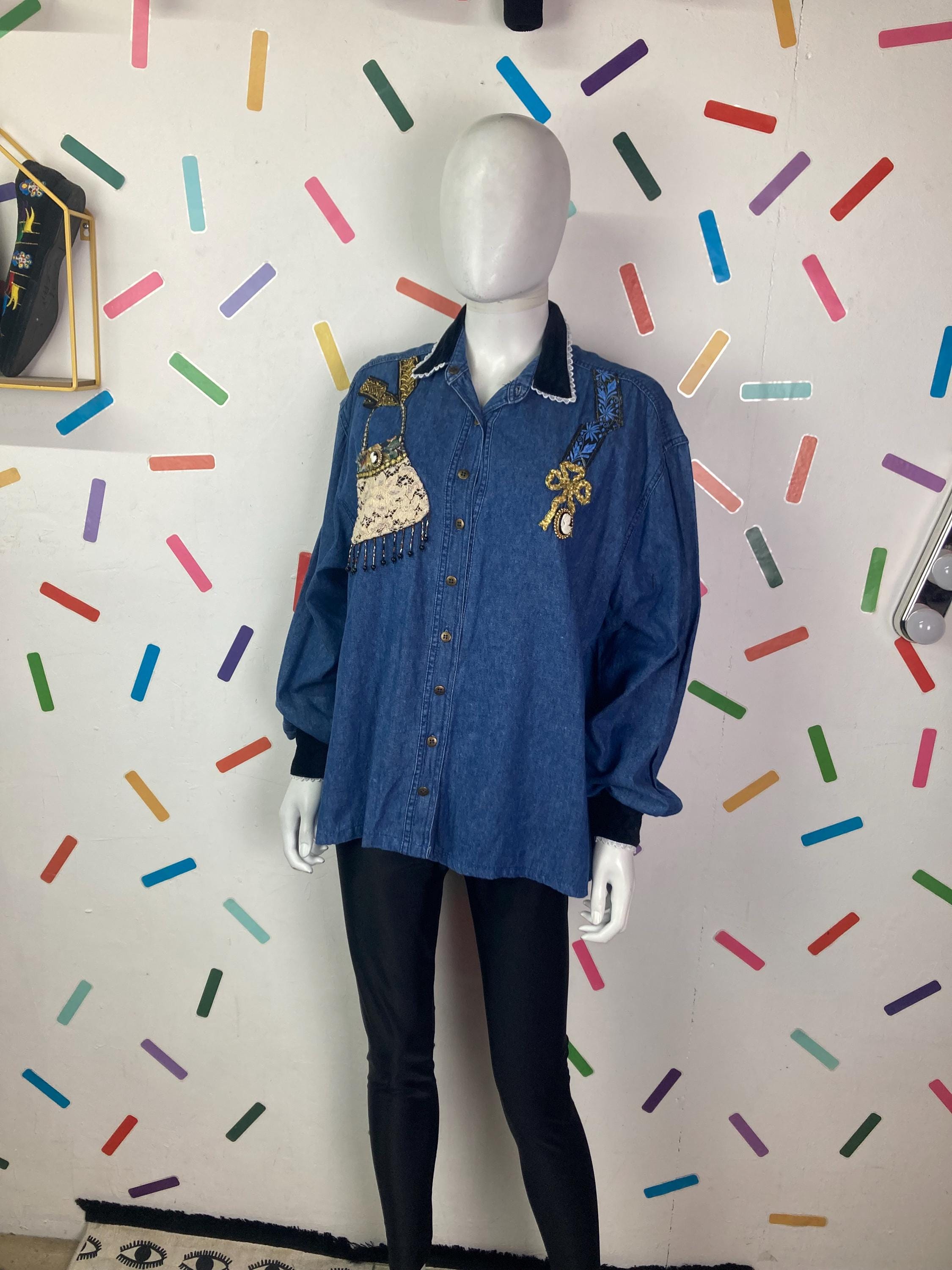 Other: This is a fabulous 80s denim shirt with the most amazing applique details and velvet collar and cuffs.