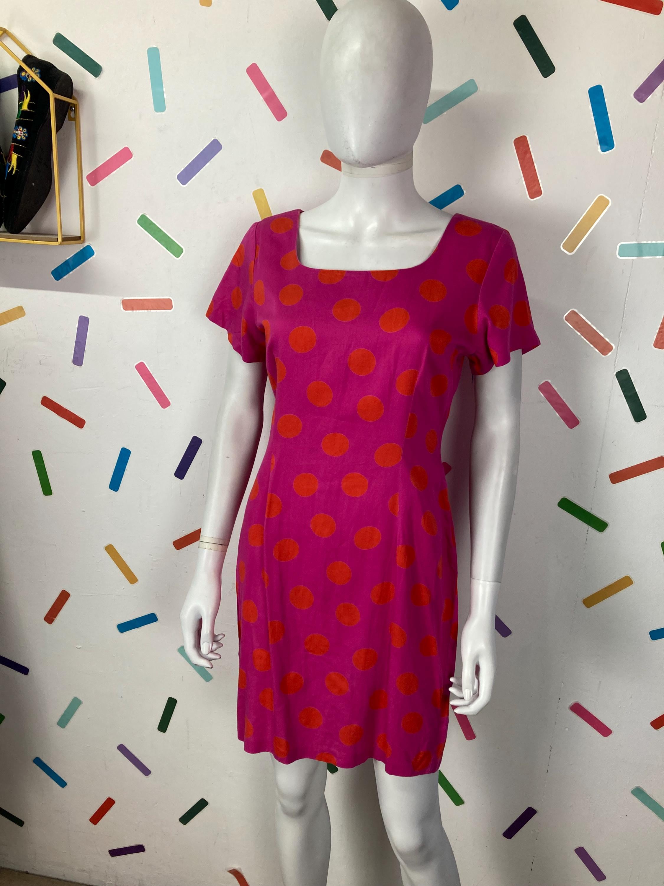 Other: This is an amazing bright pink short sleeve dress with bright orange sports.