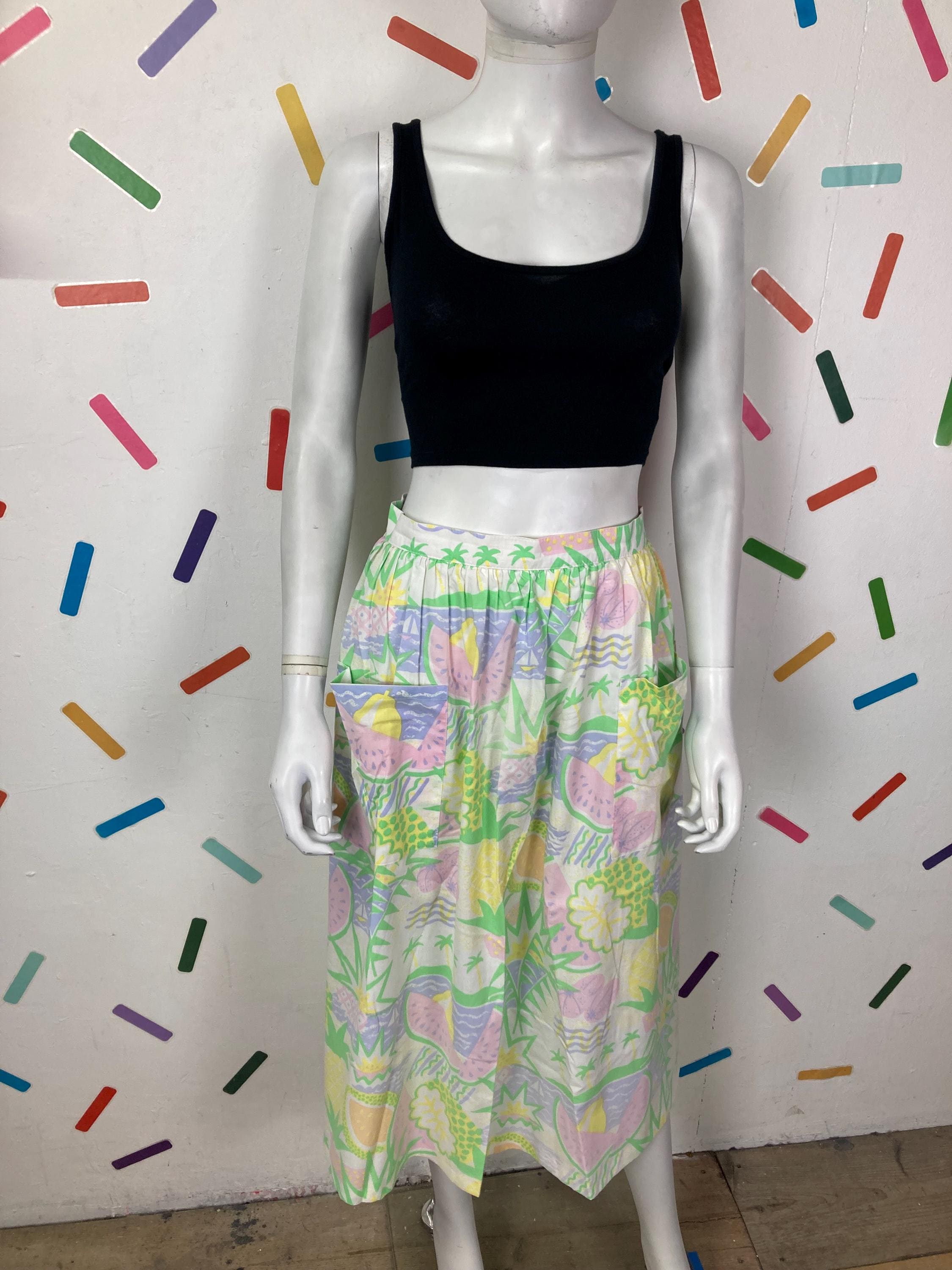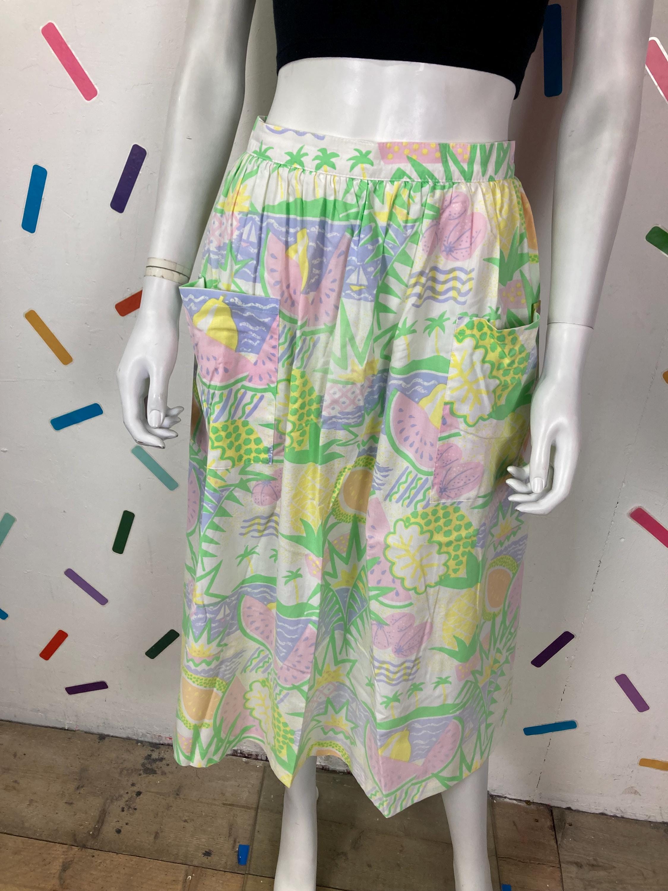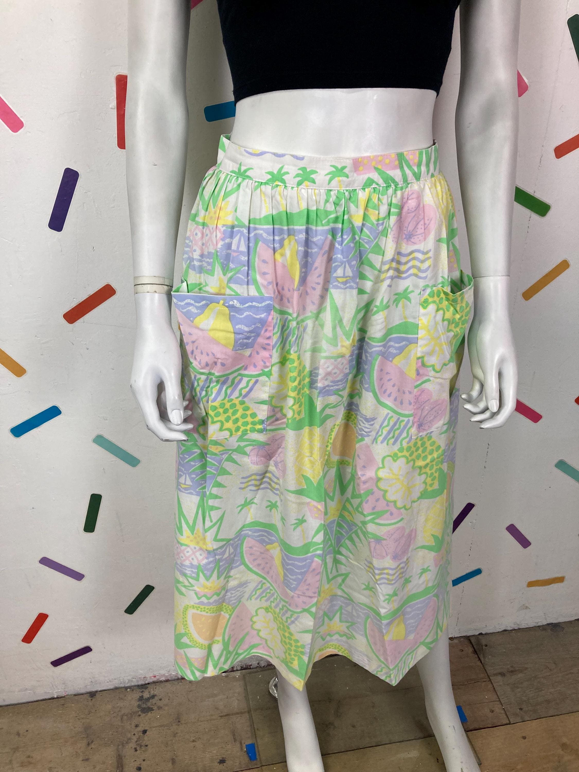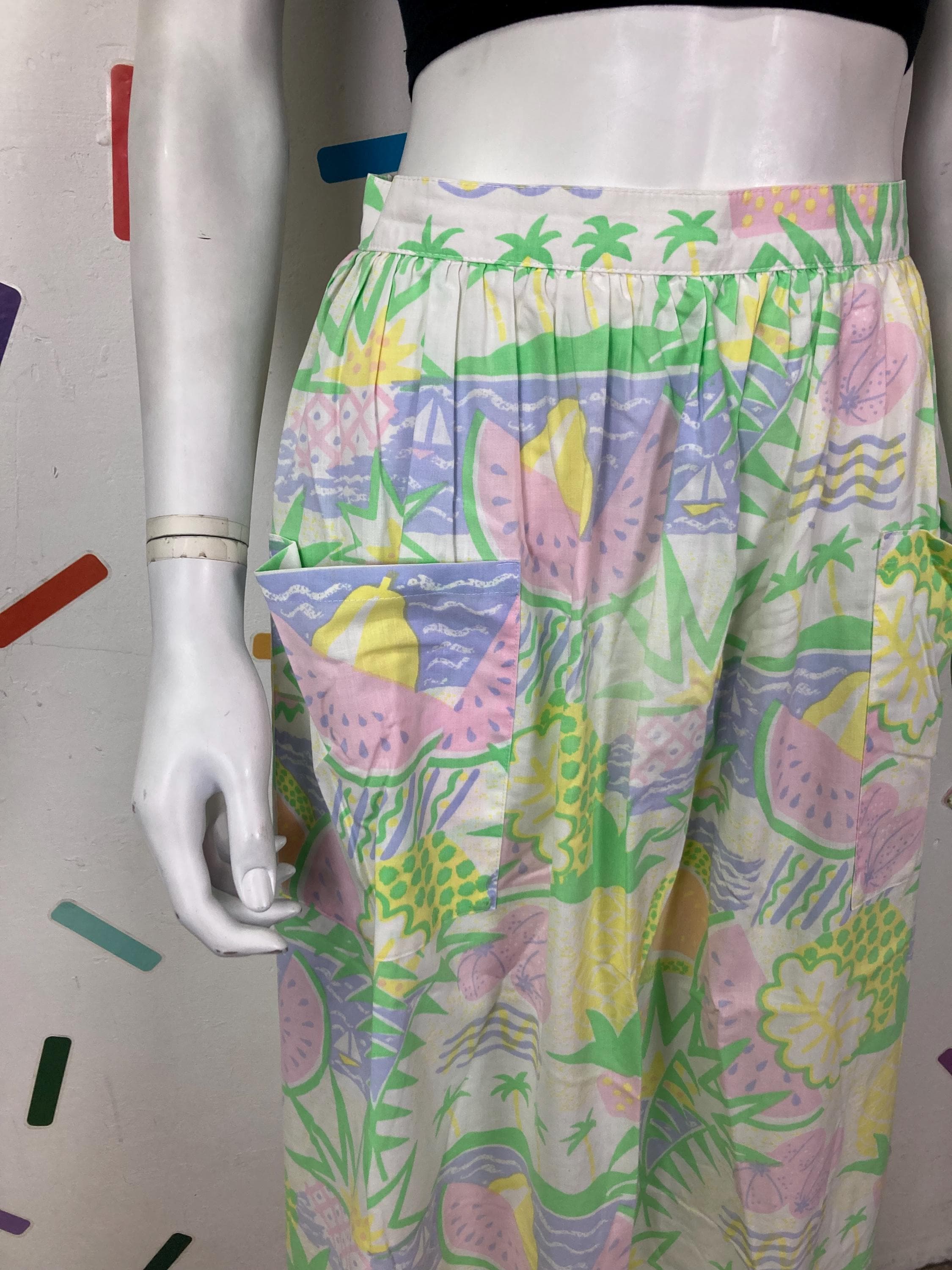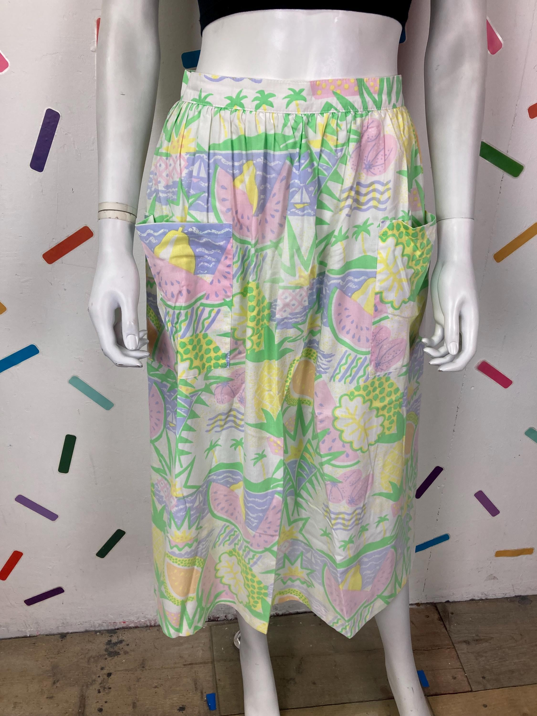 Other: This is an amazing vintage pastel fruit design skirt with bucket pockets.