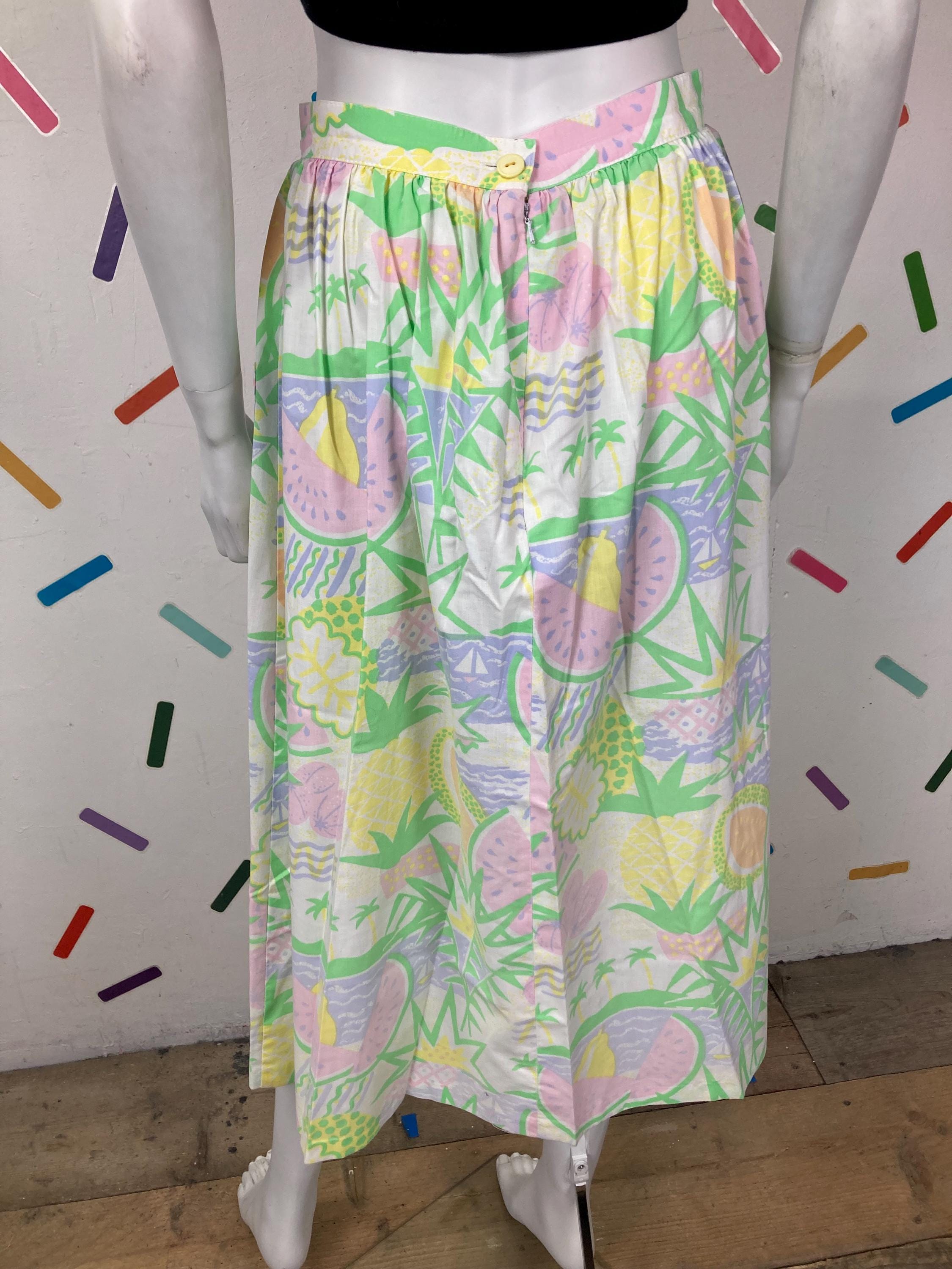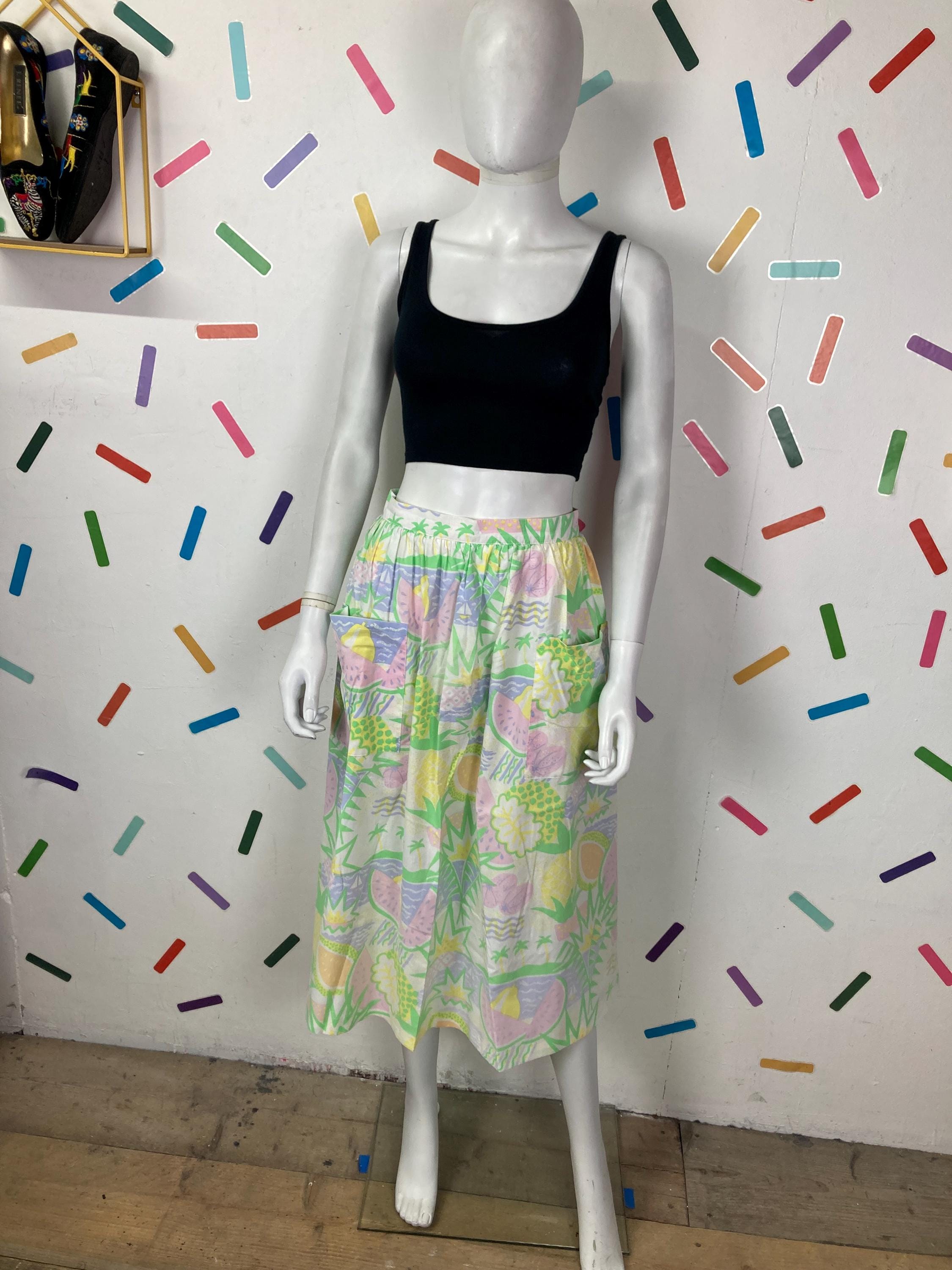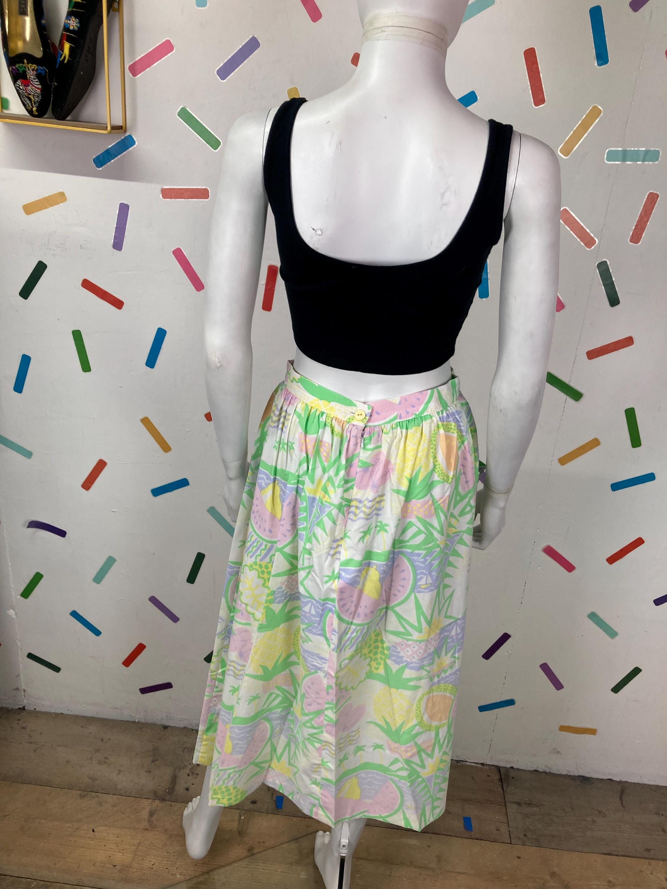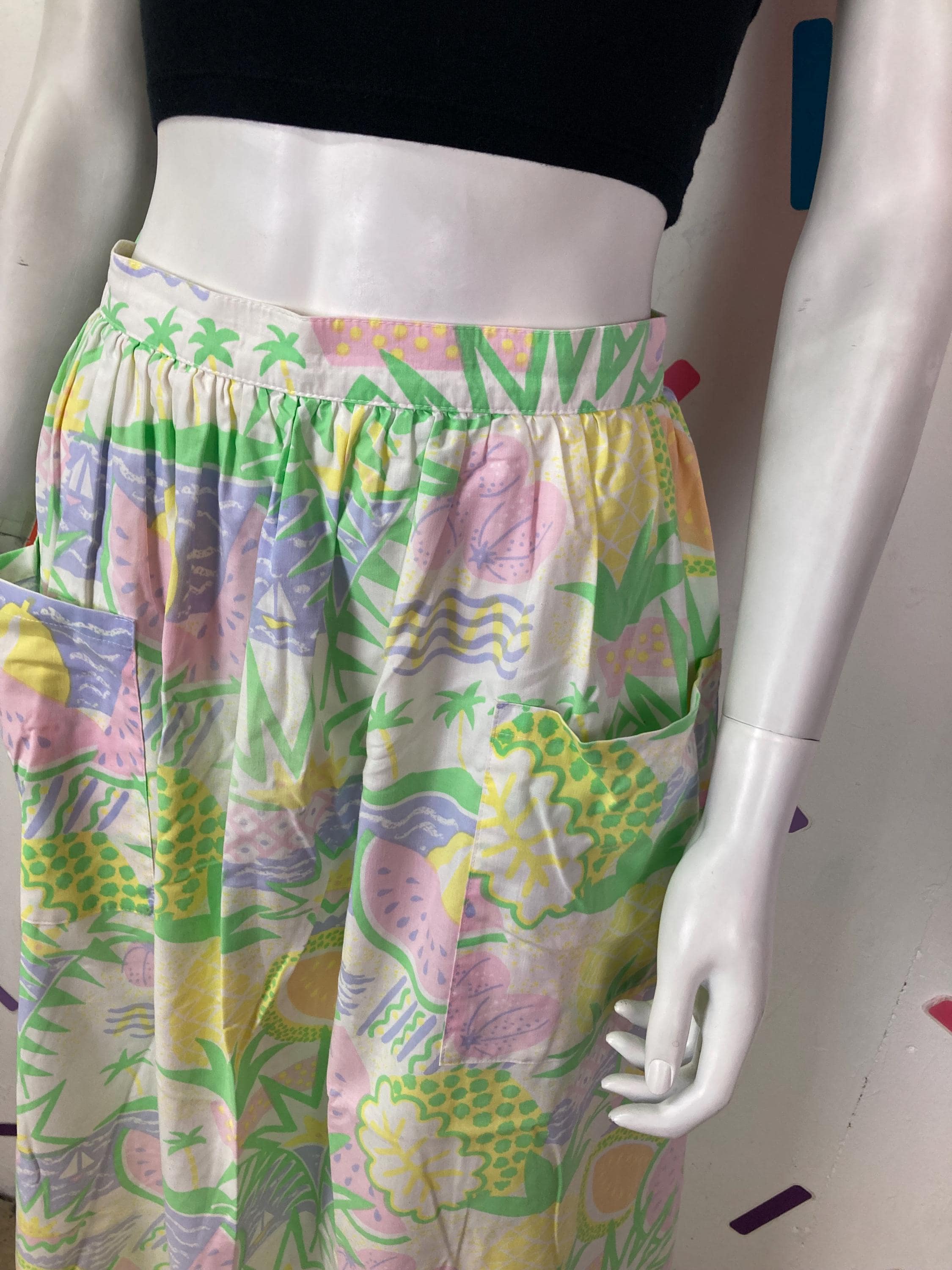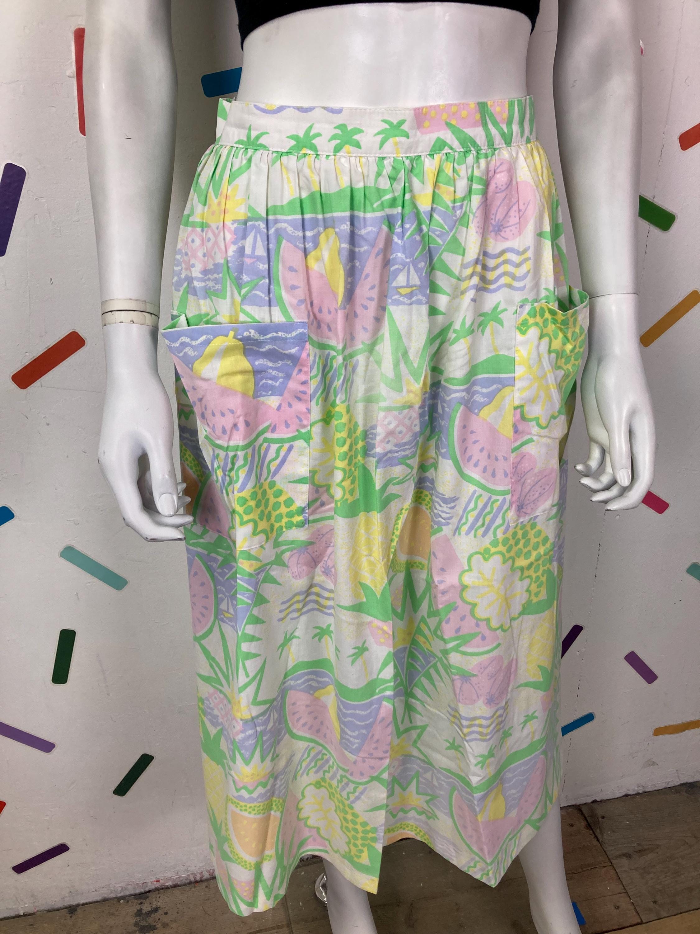 Other: This is an amazing vintage pastel fruit design skirt with bucket pockets.