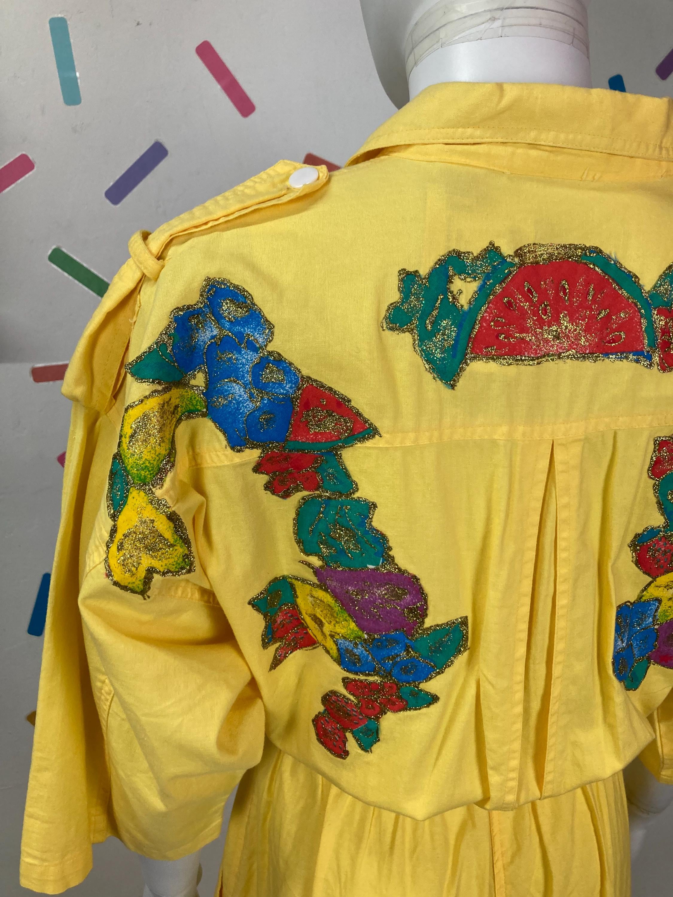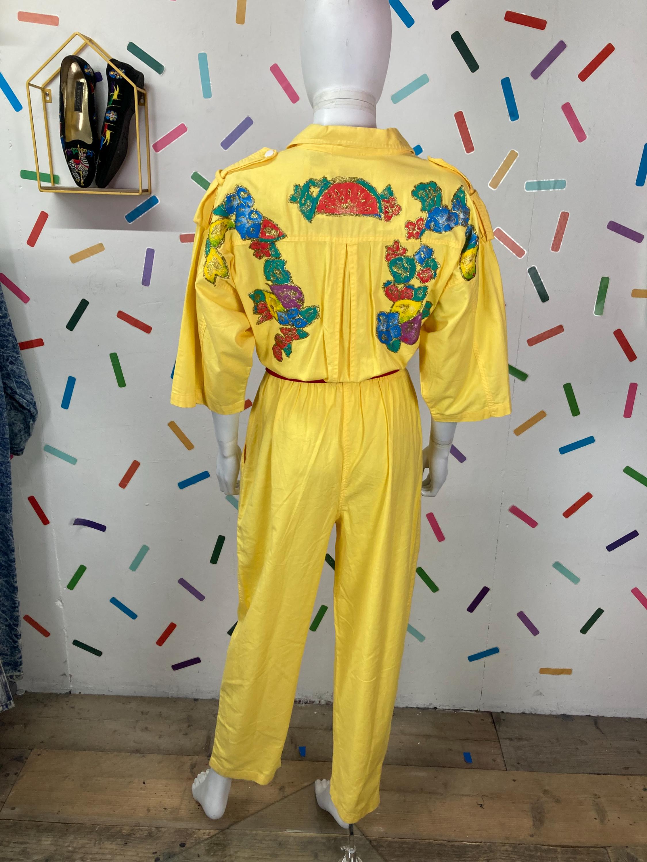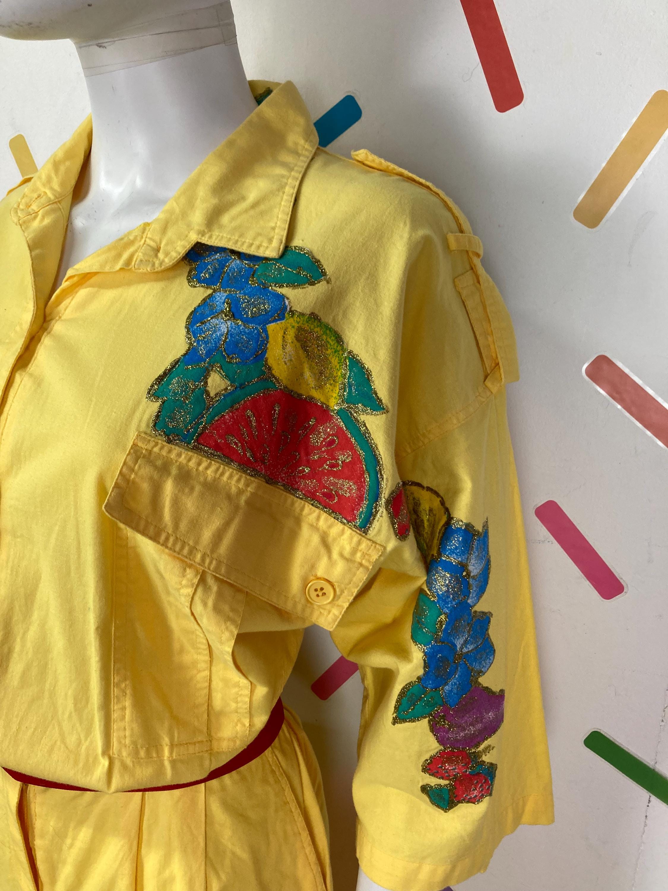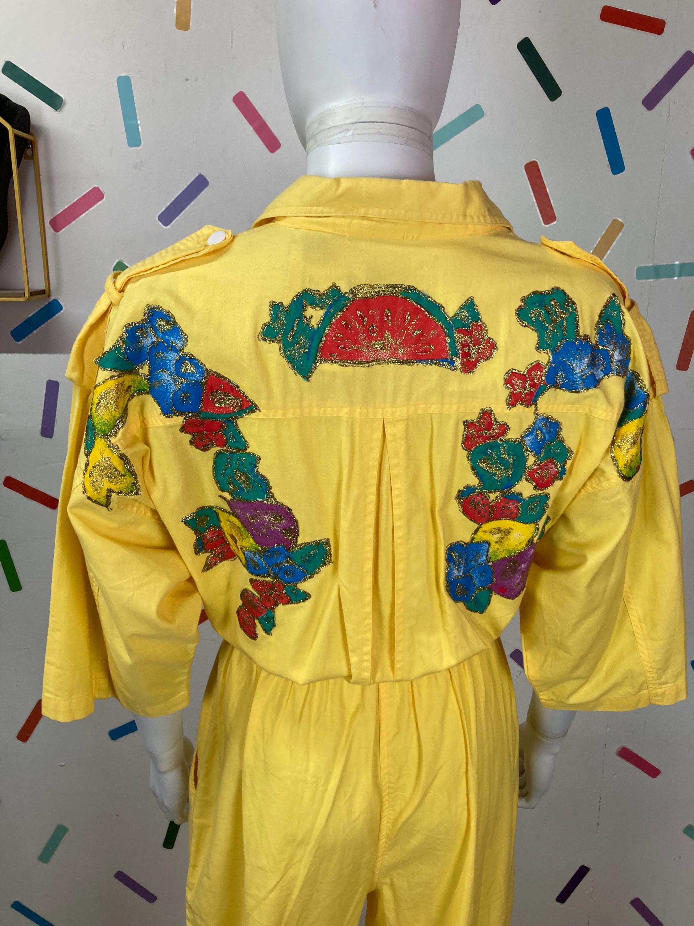 Other: A fab bright yellow jumpsuit with glitter fruit design. Pockets