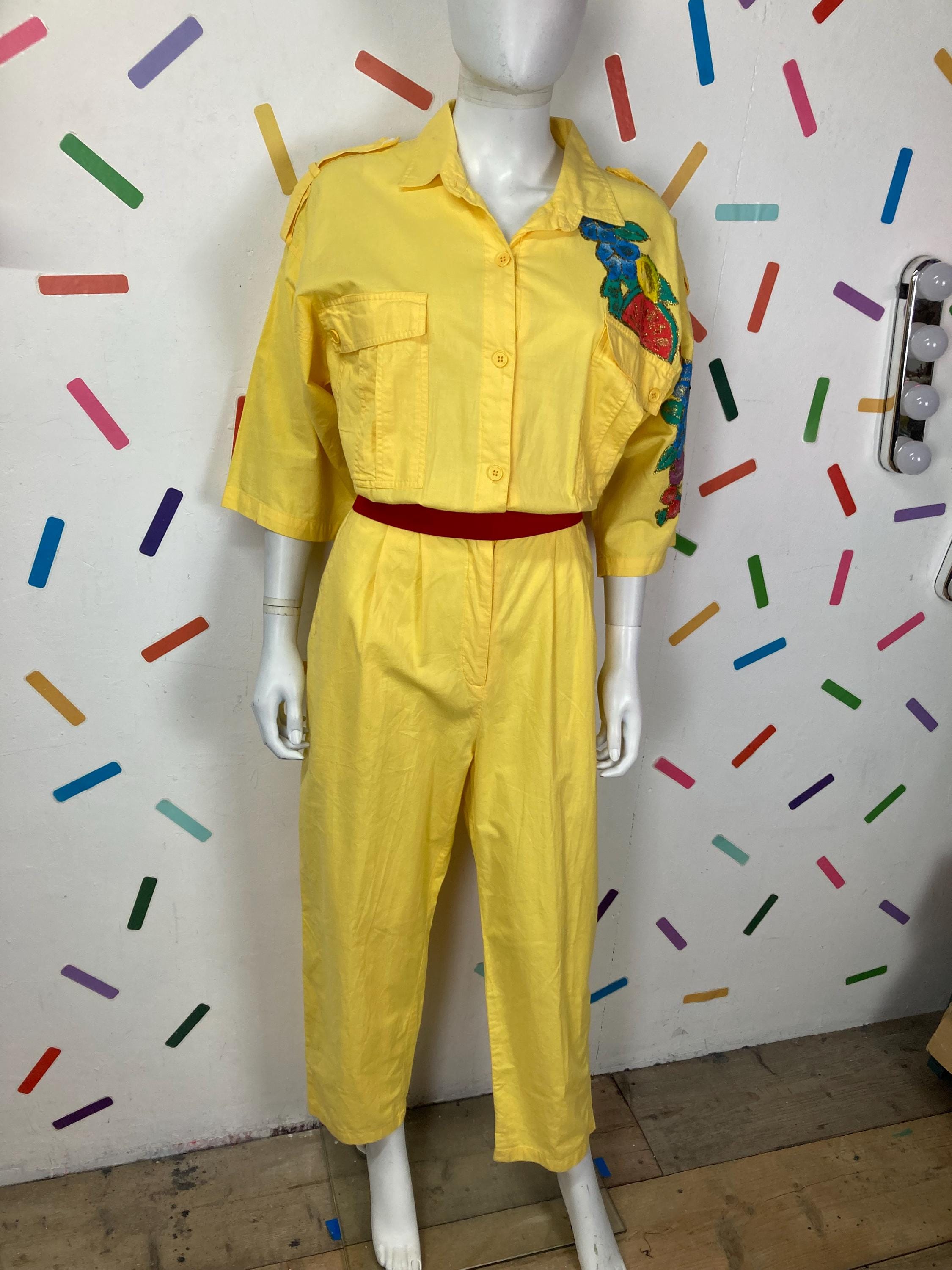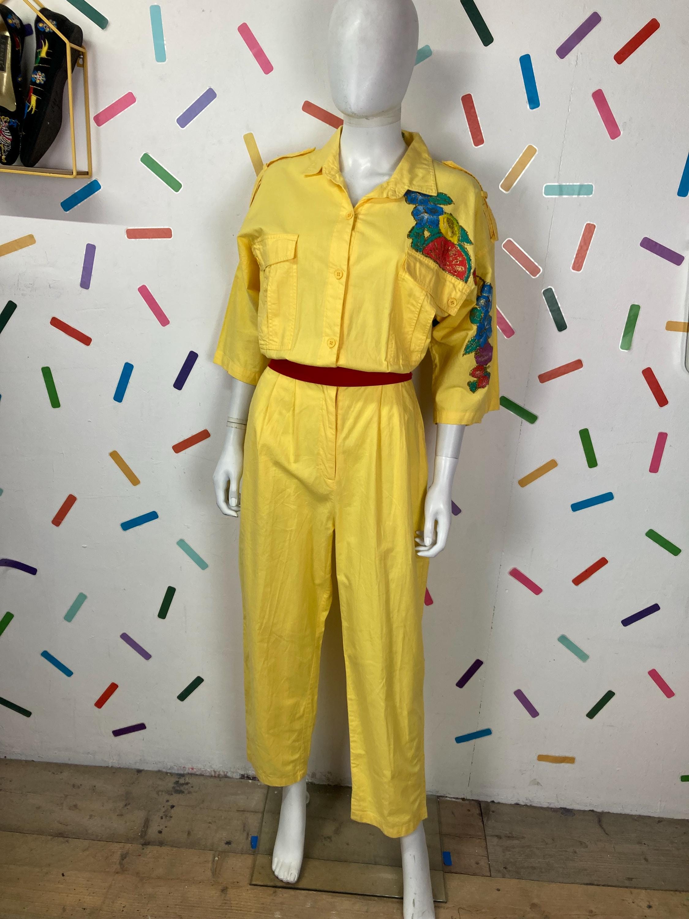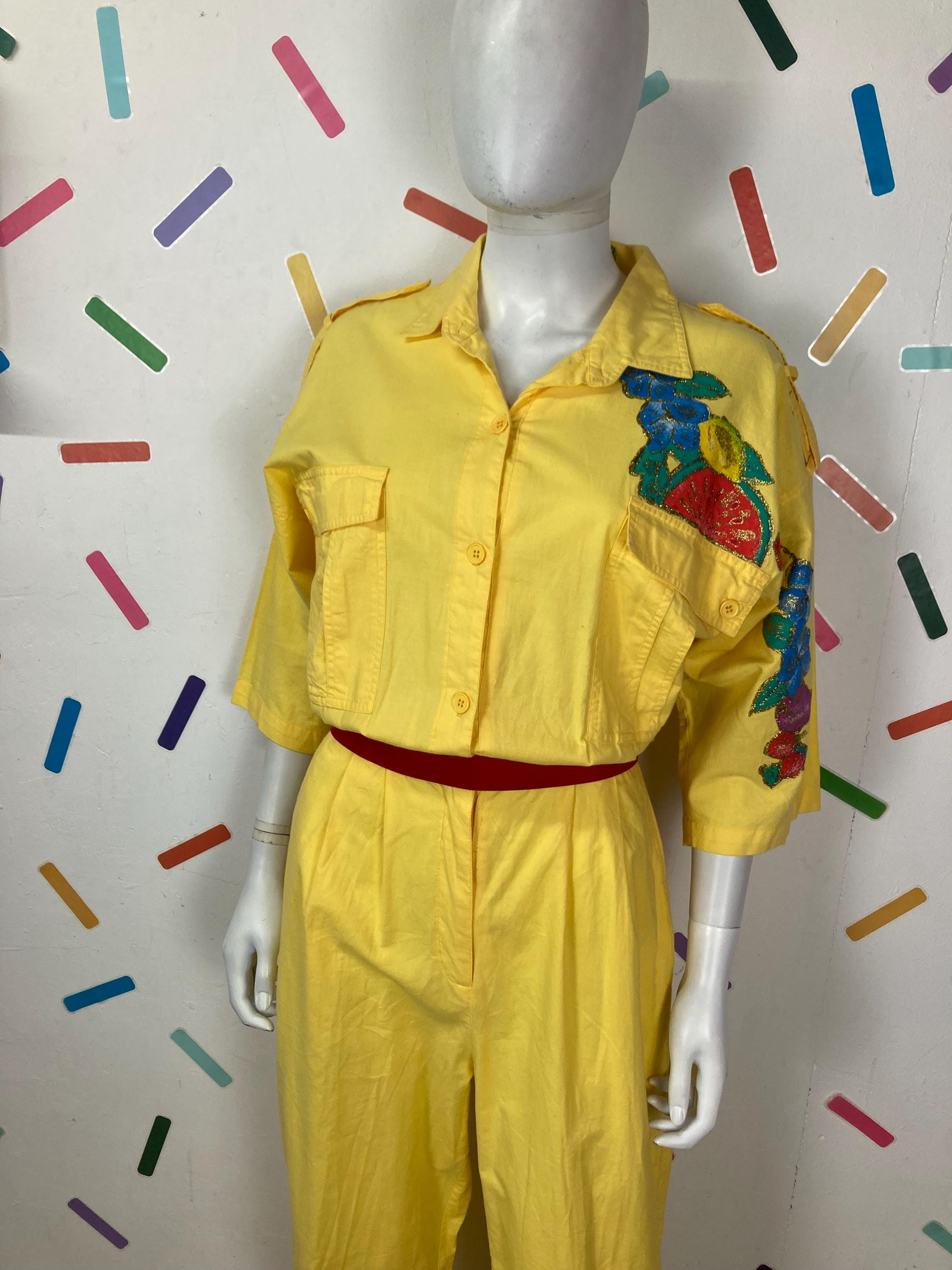 Other: A fab bright yellow jumpsuit with glitter fruit design. Pockets