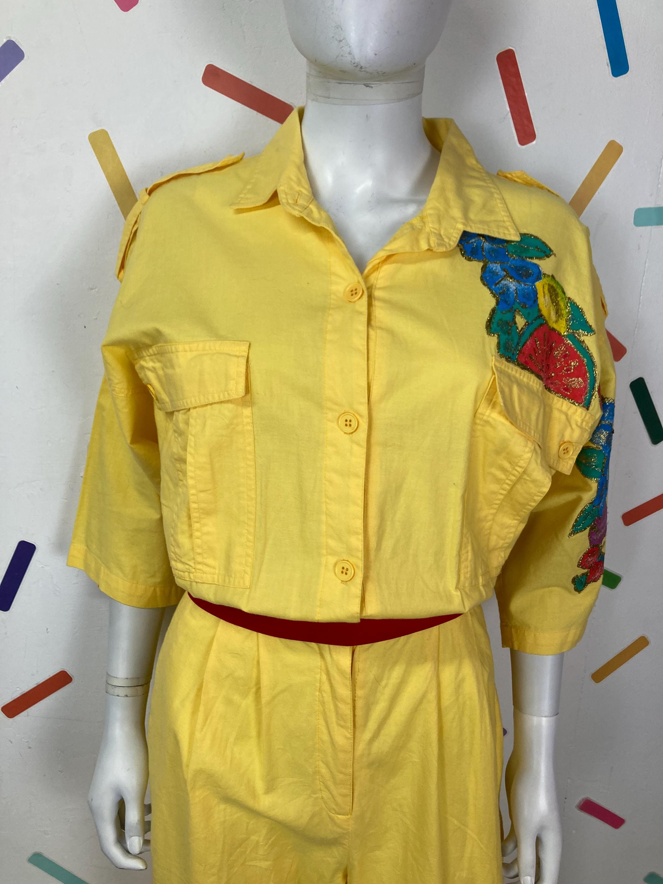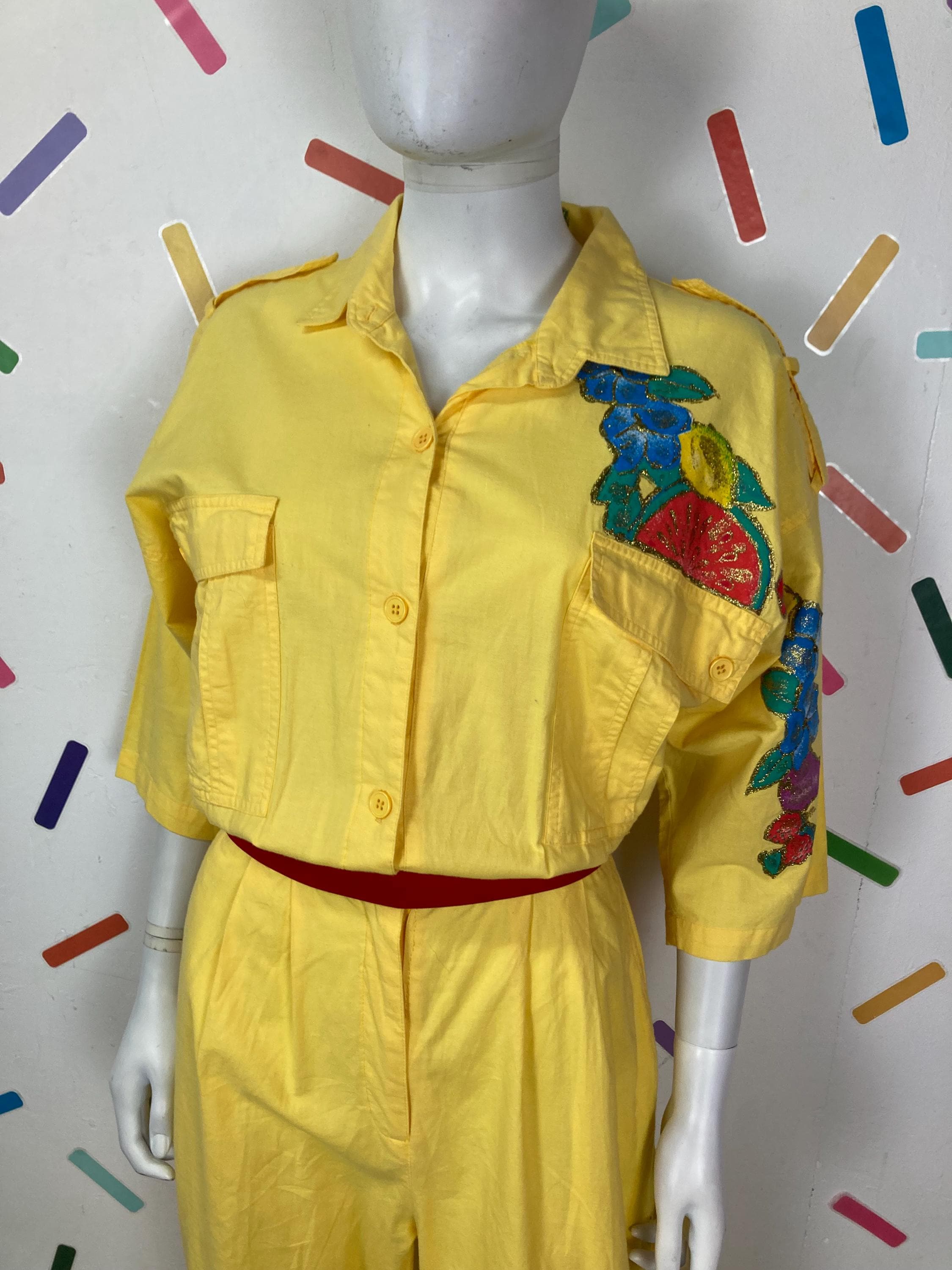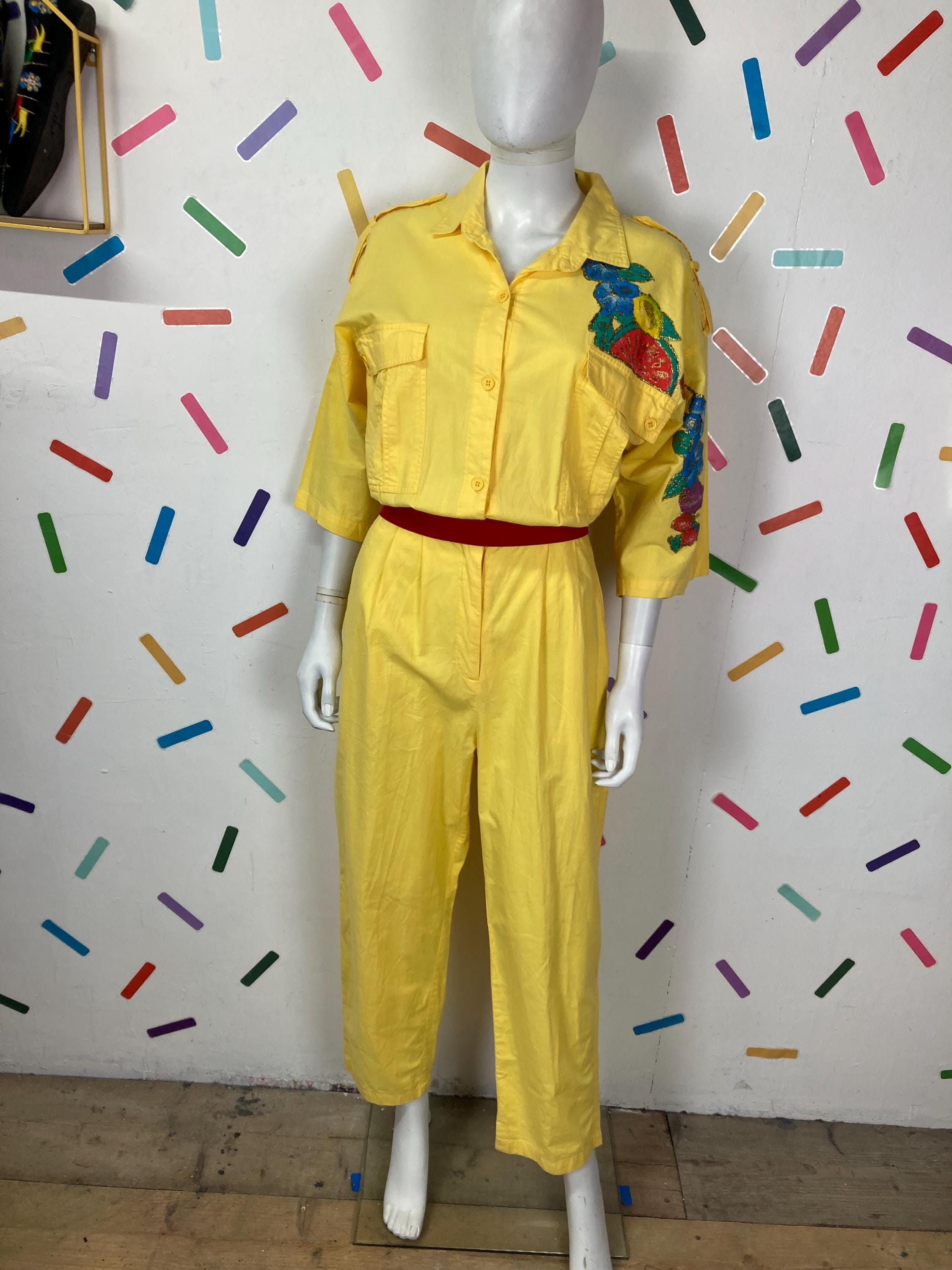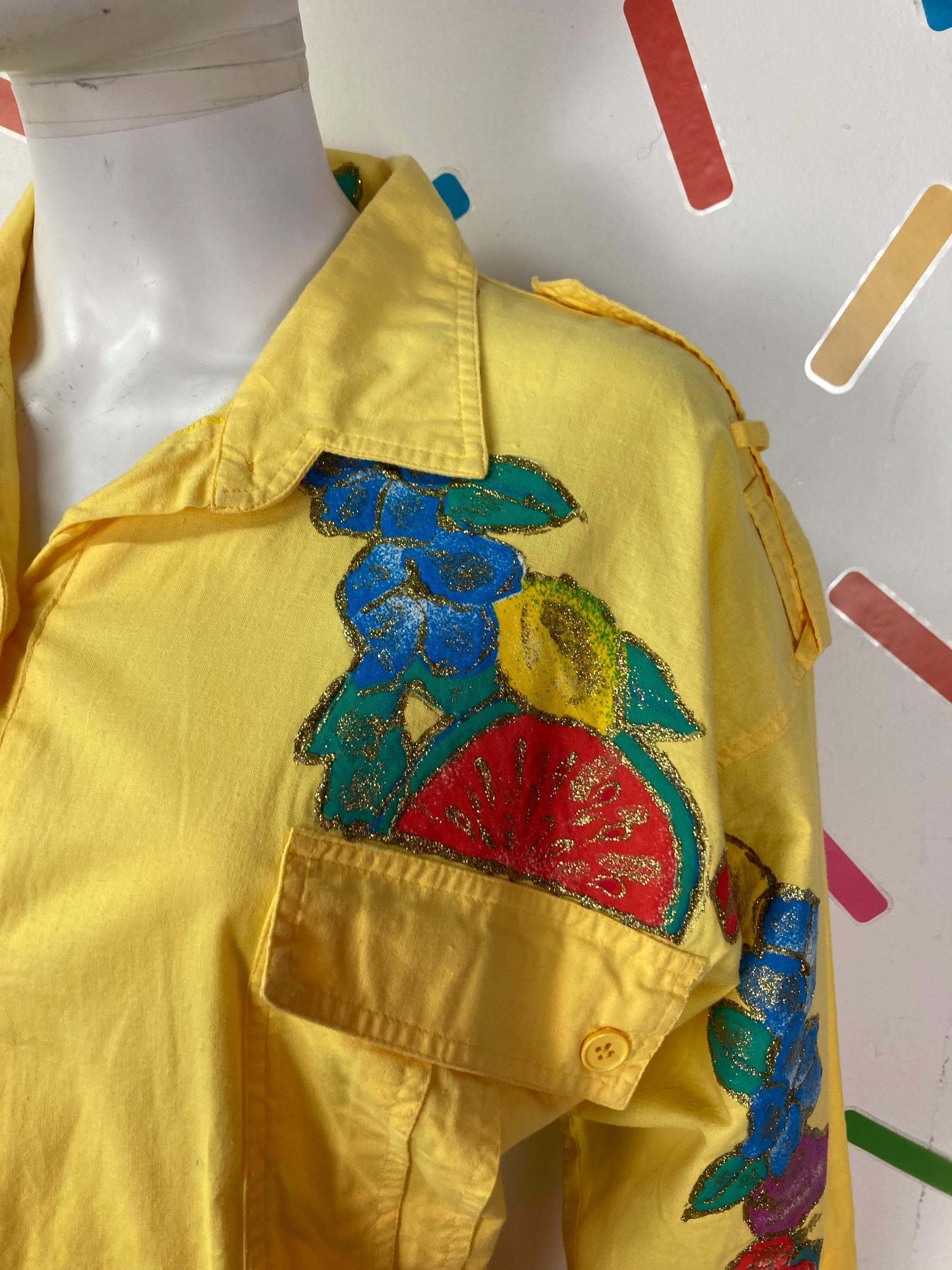 Other: A fab bright yellow jumpsuit with glitter fruit design. Pockets