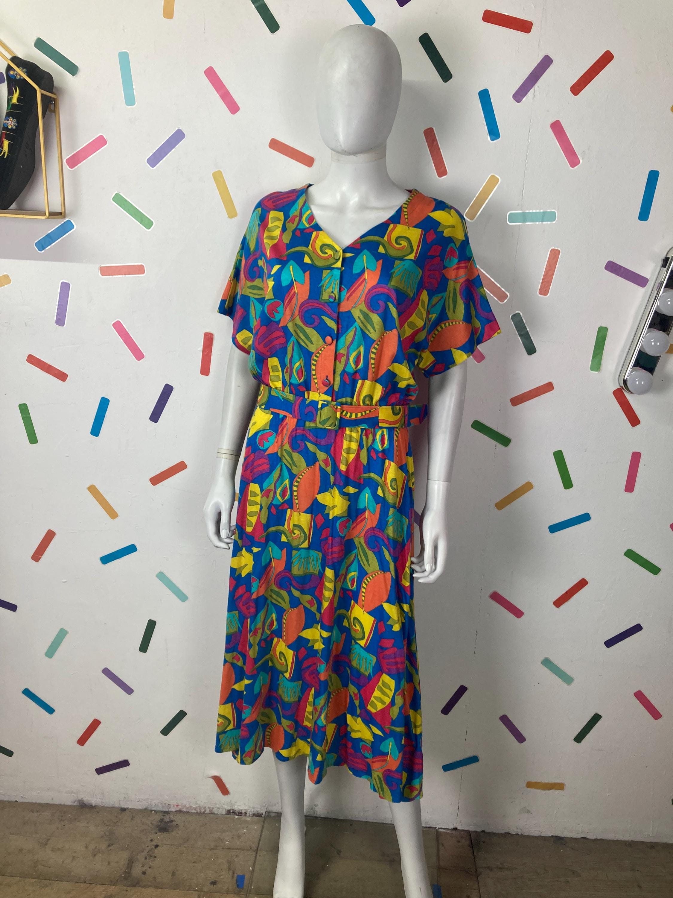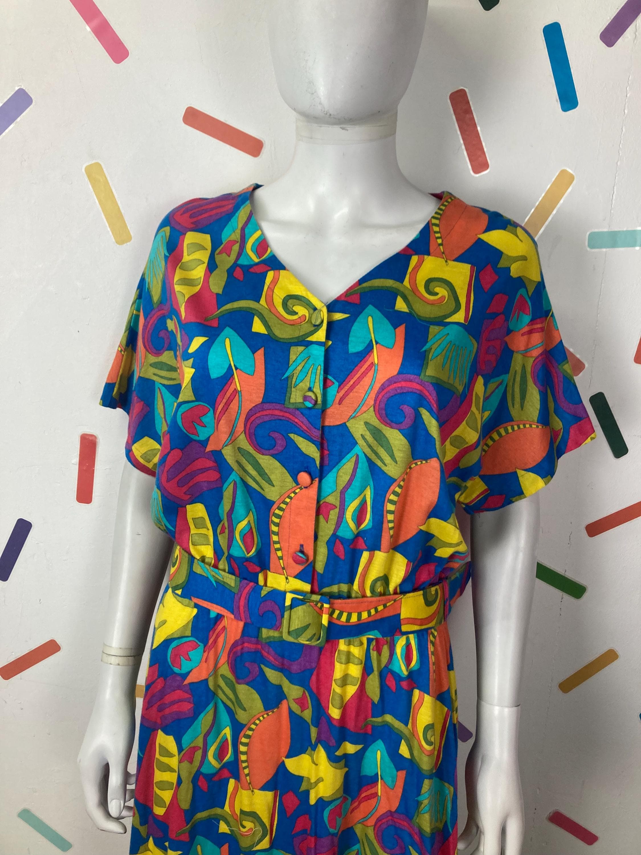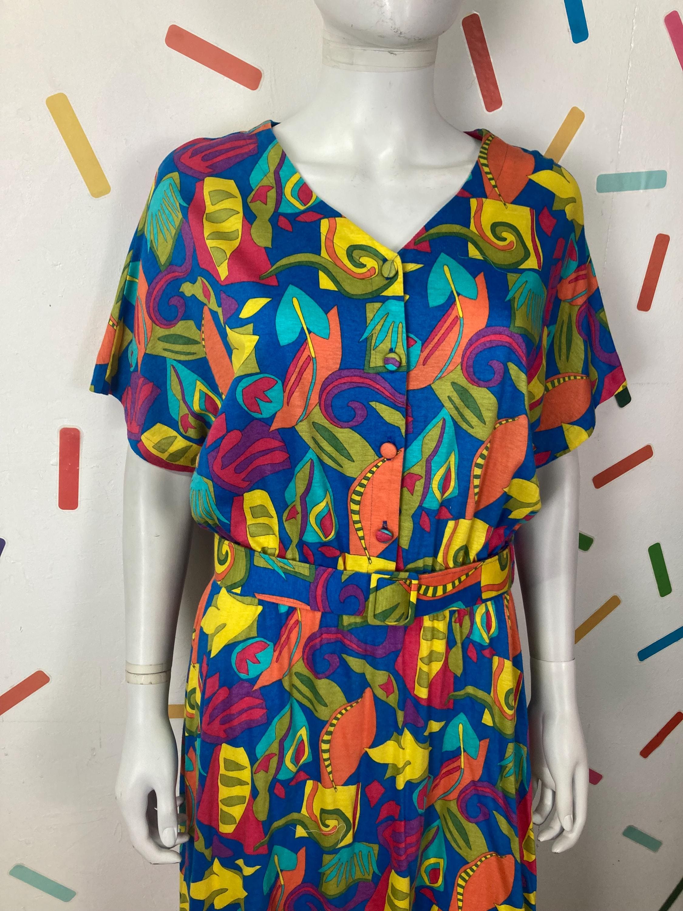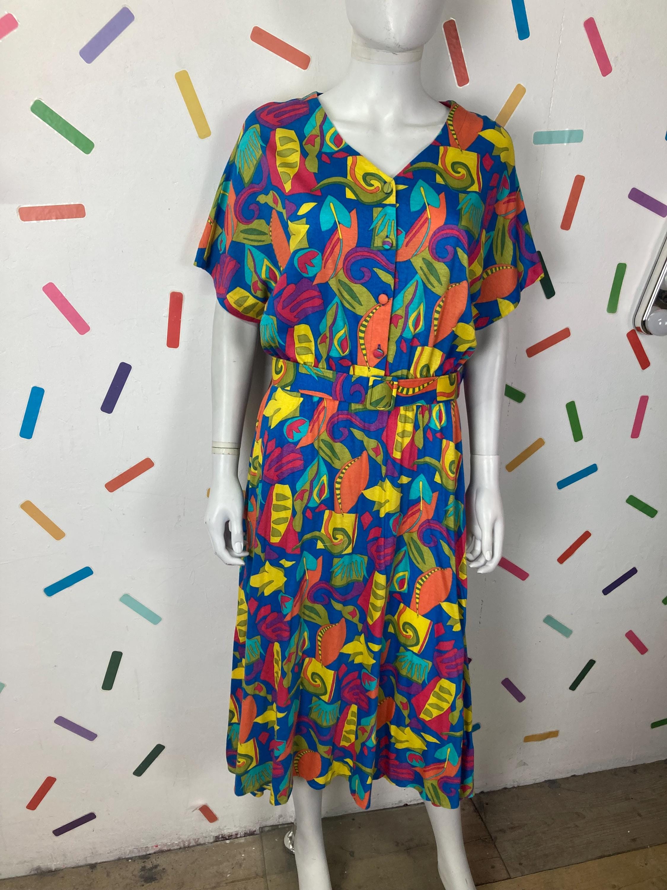 Other: This is a fab vintage 80s abstract design dress with matching belt. Button fastening.
