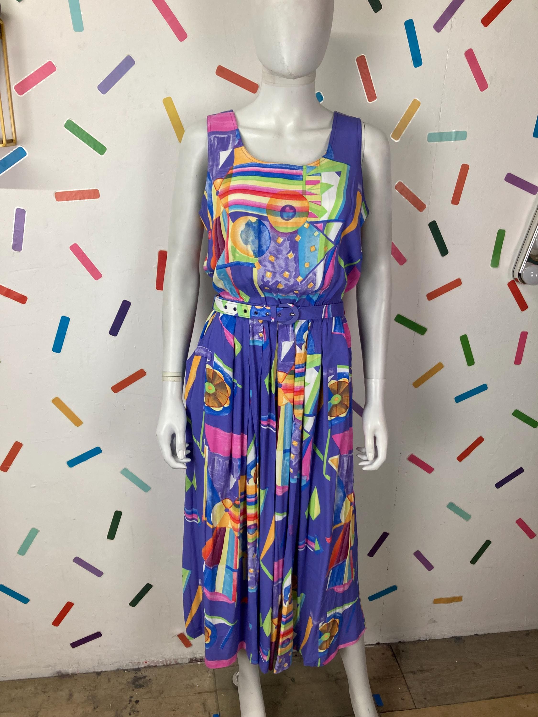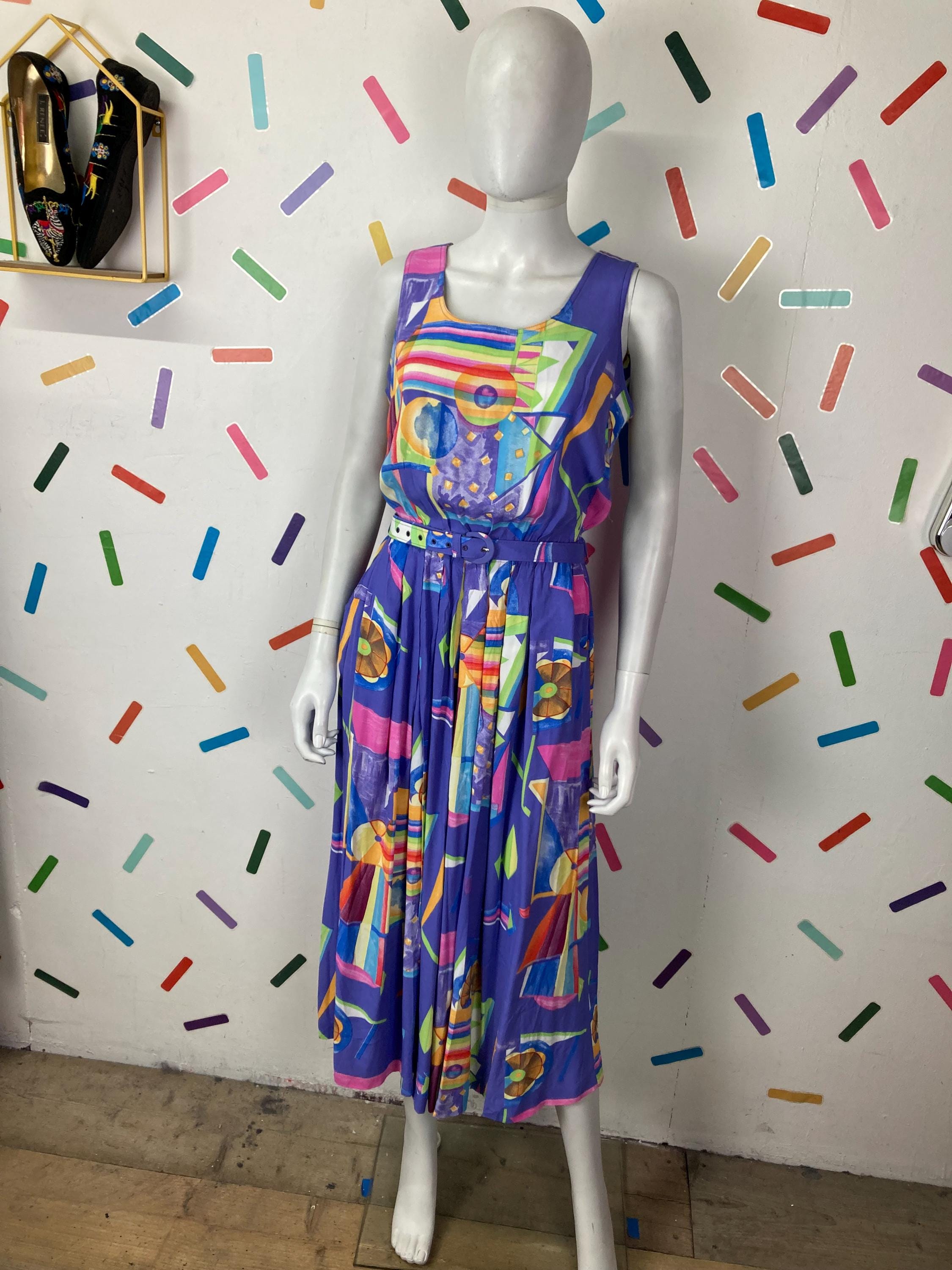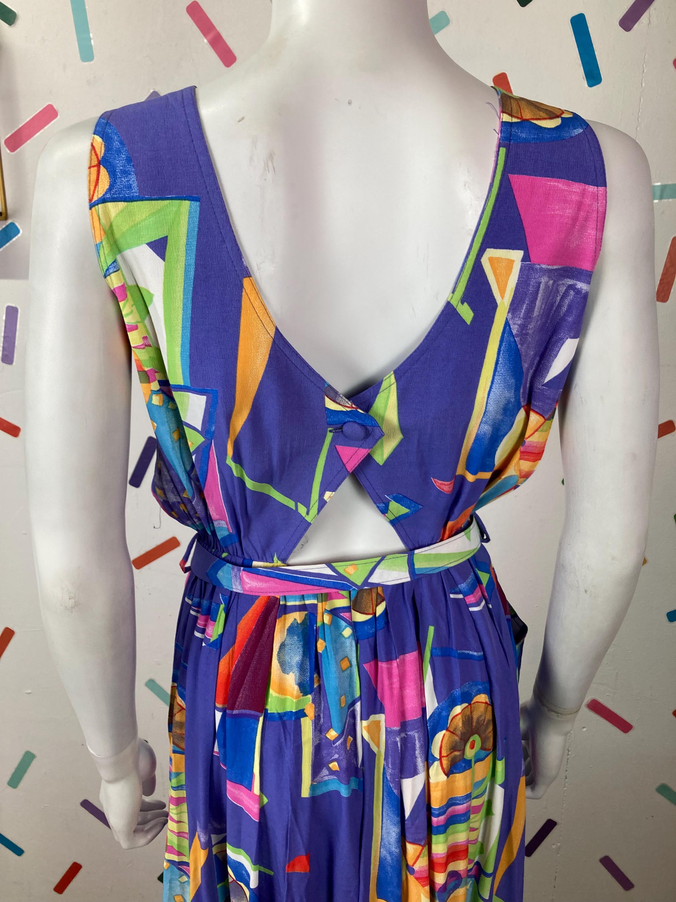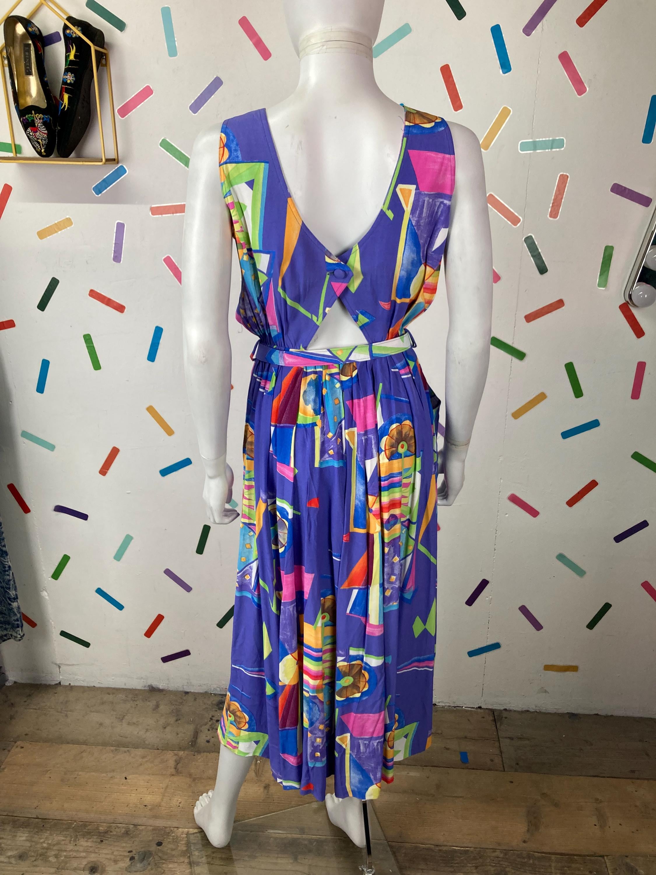 1980s true vintage abstract geo design cut out midi dress Size up to 12/14