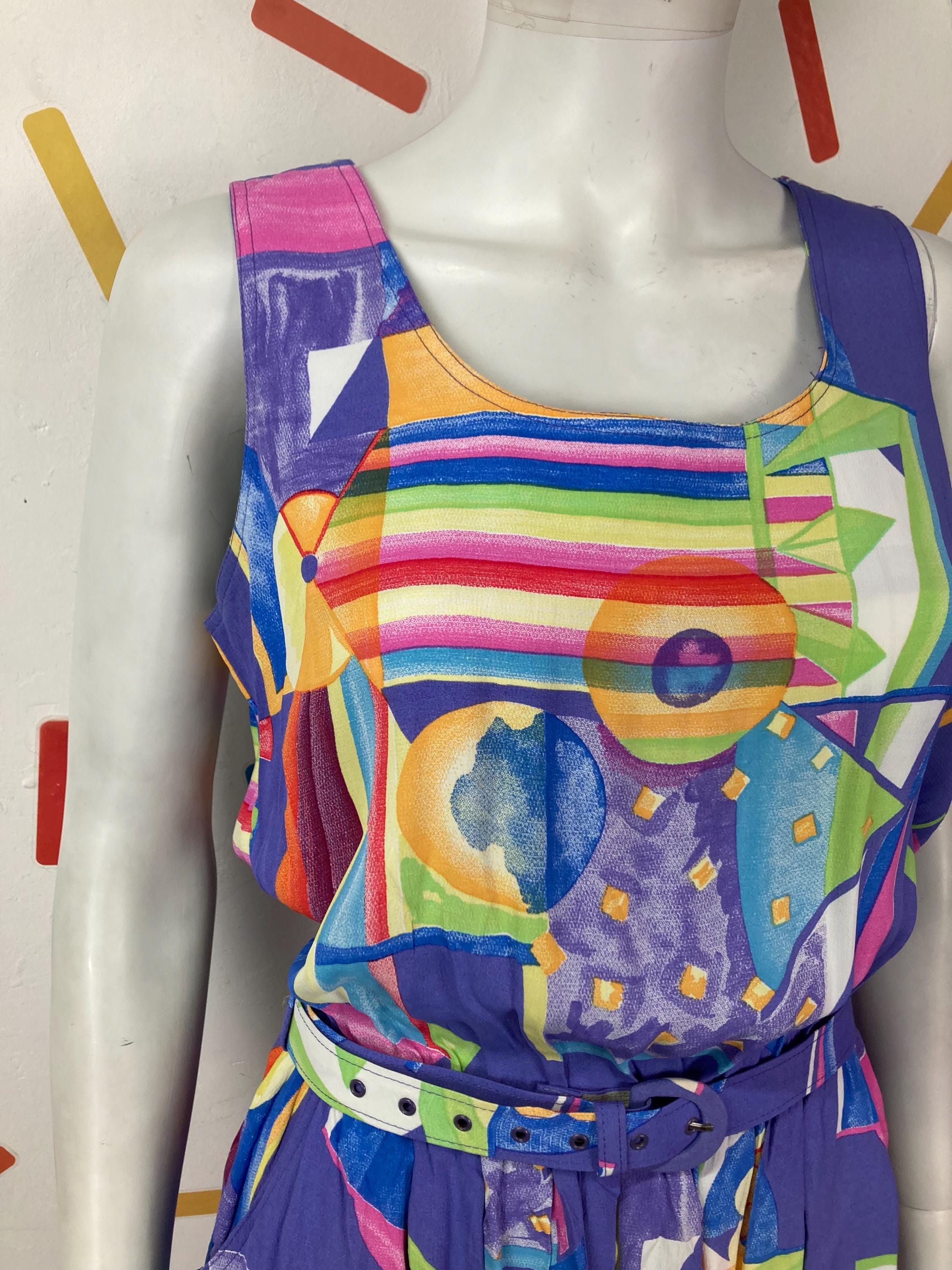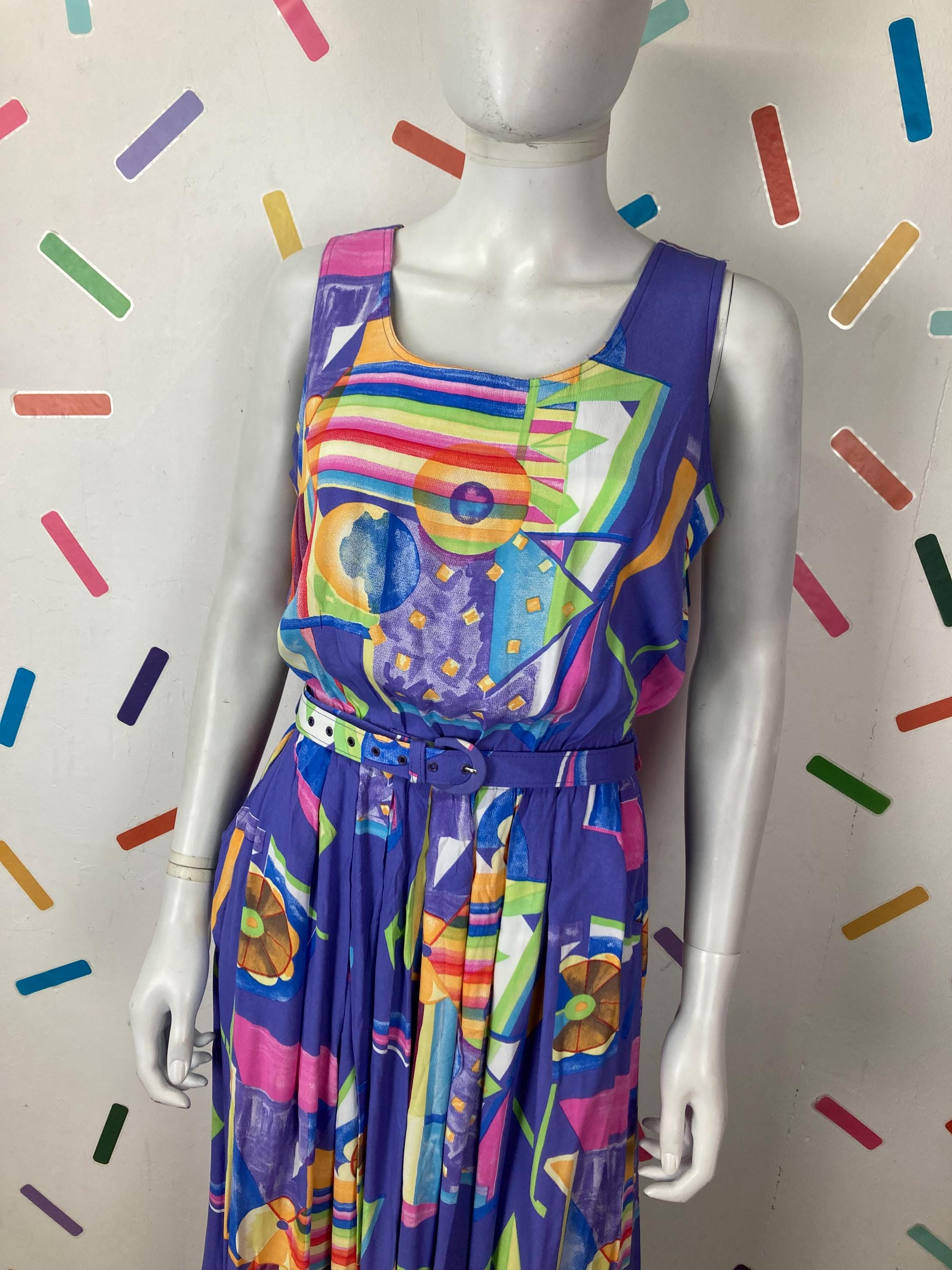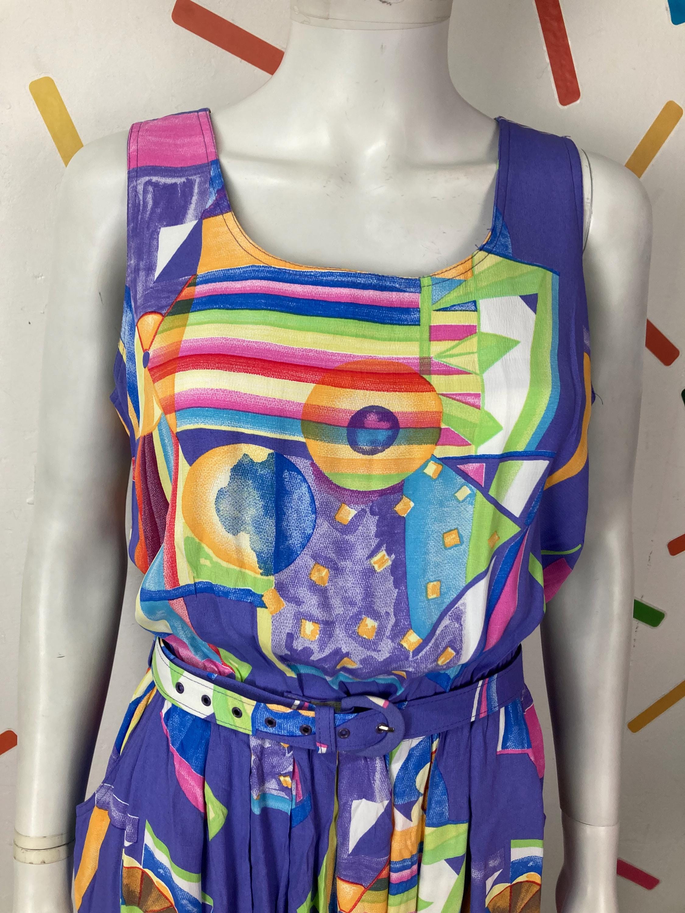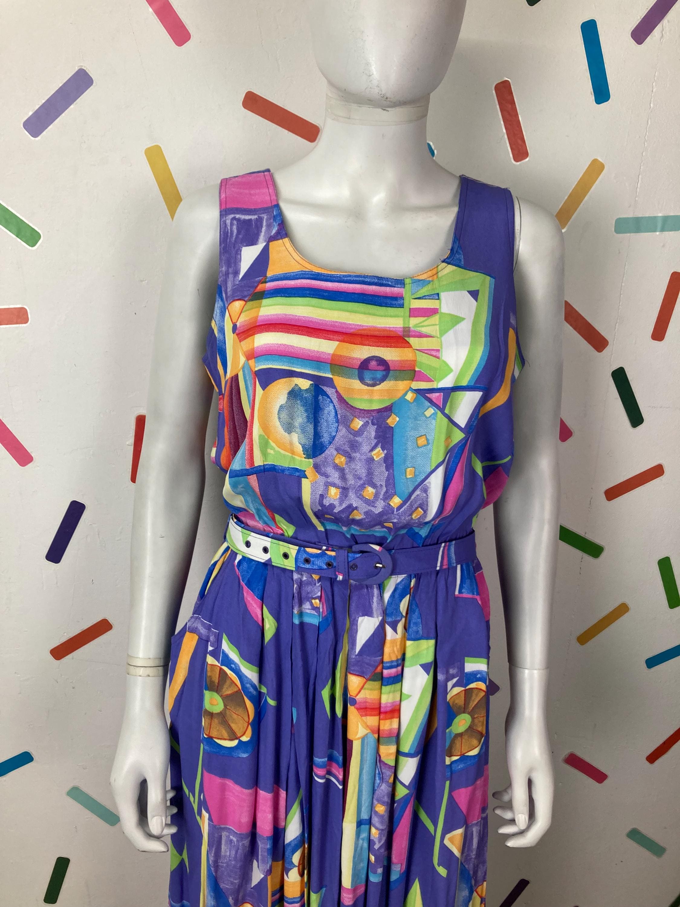 1980s true vintage abstract geo design cut out midi dress Size up to 12/14
