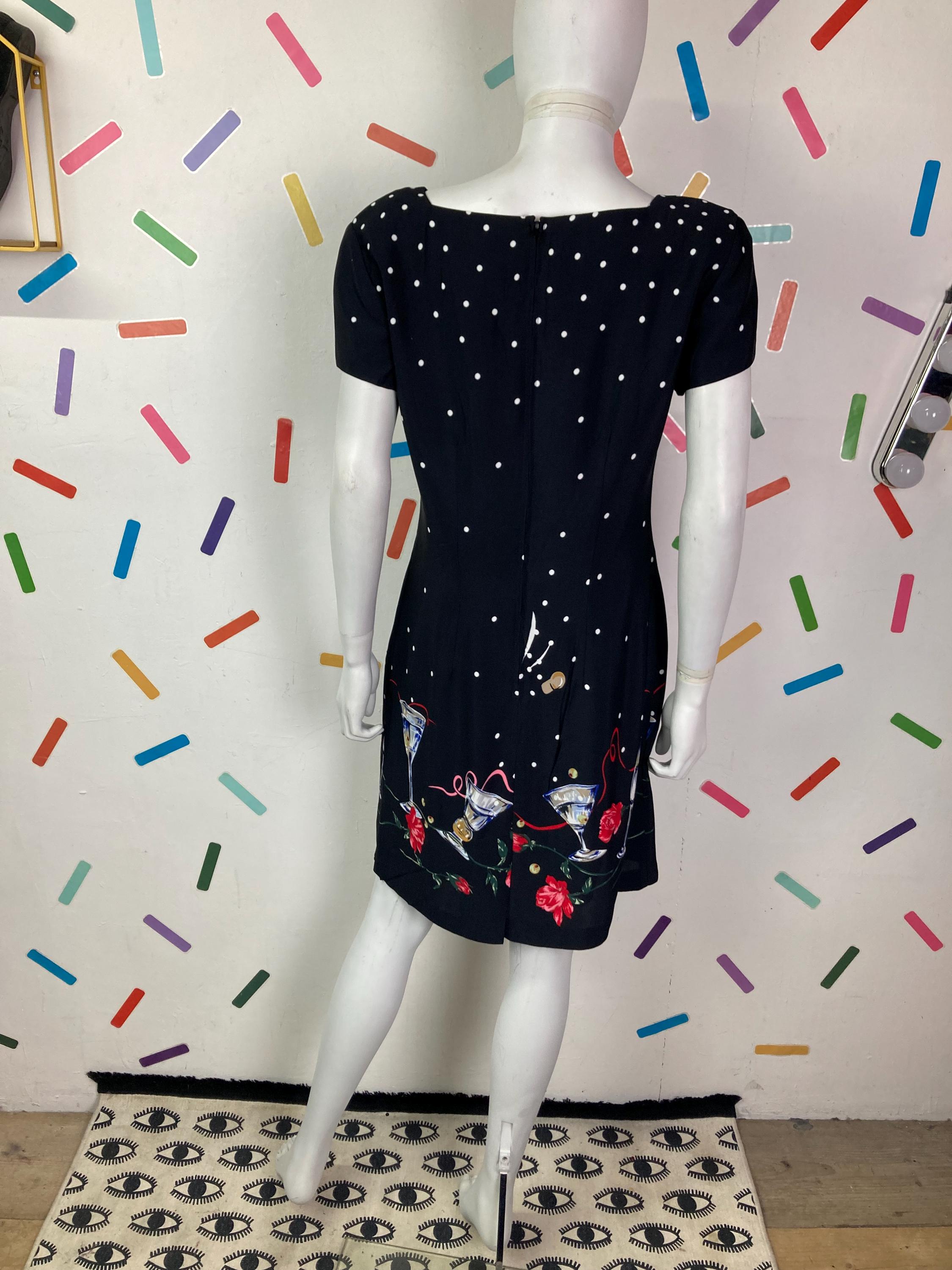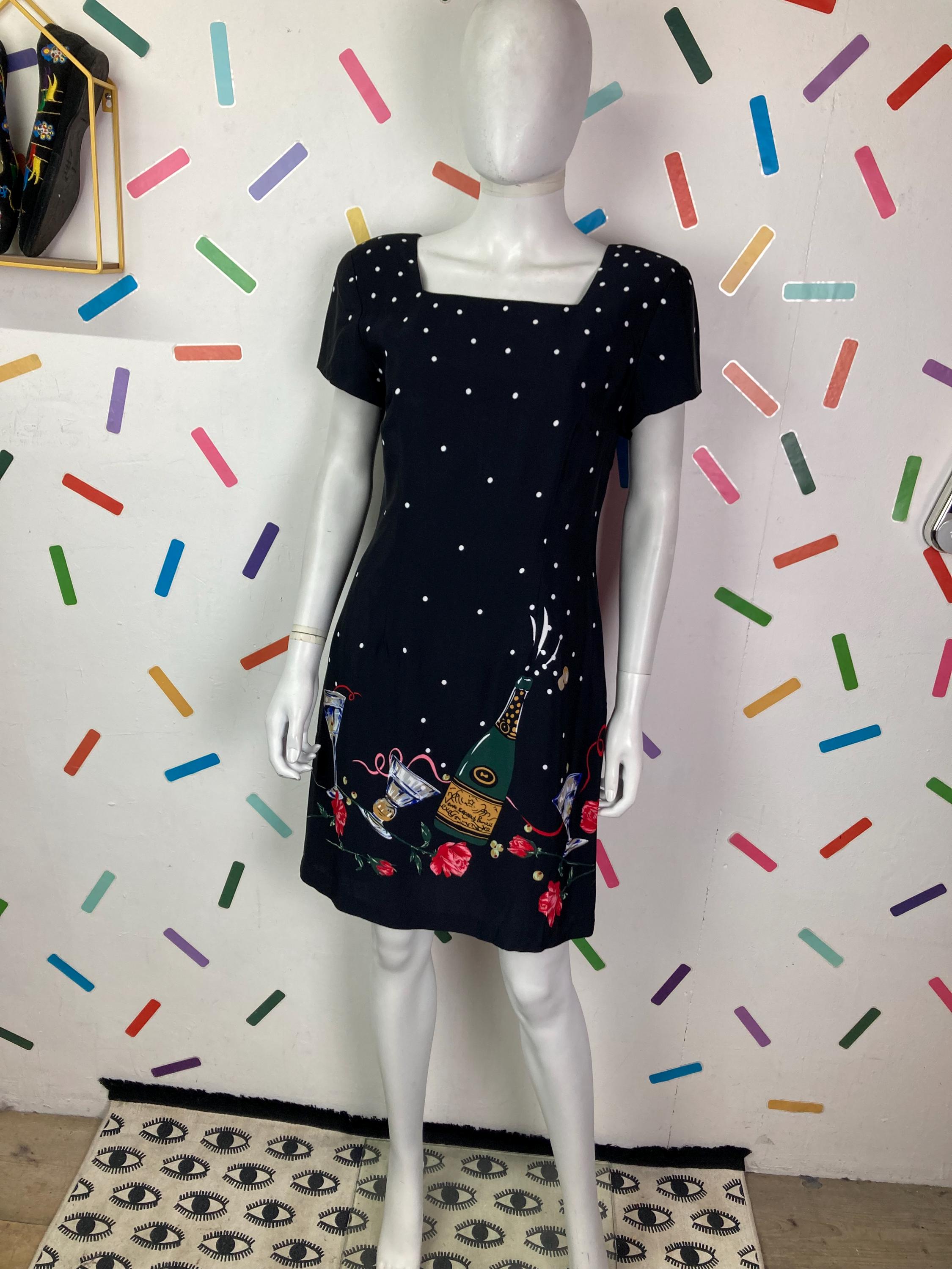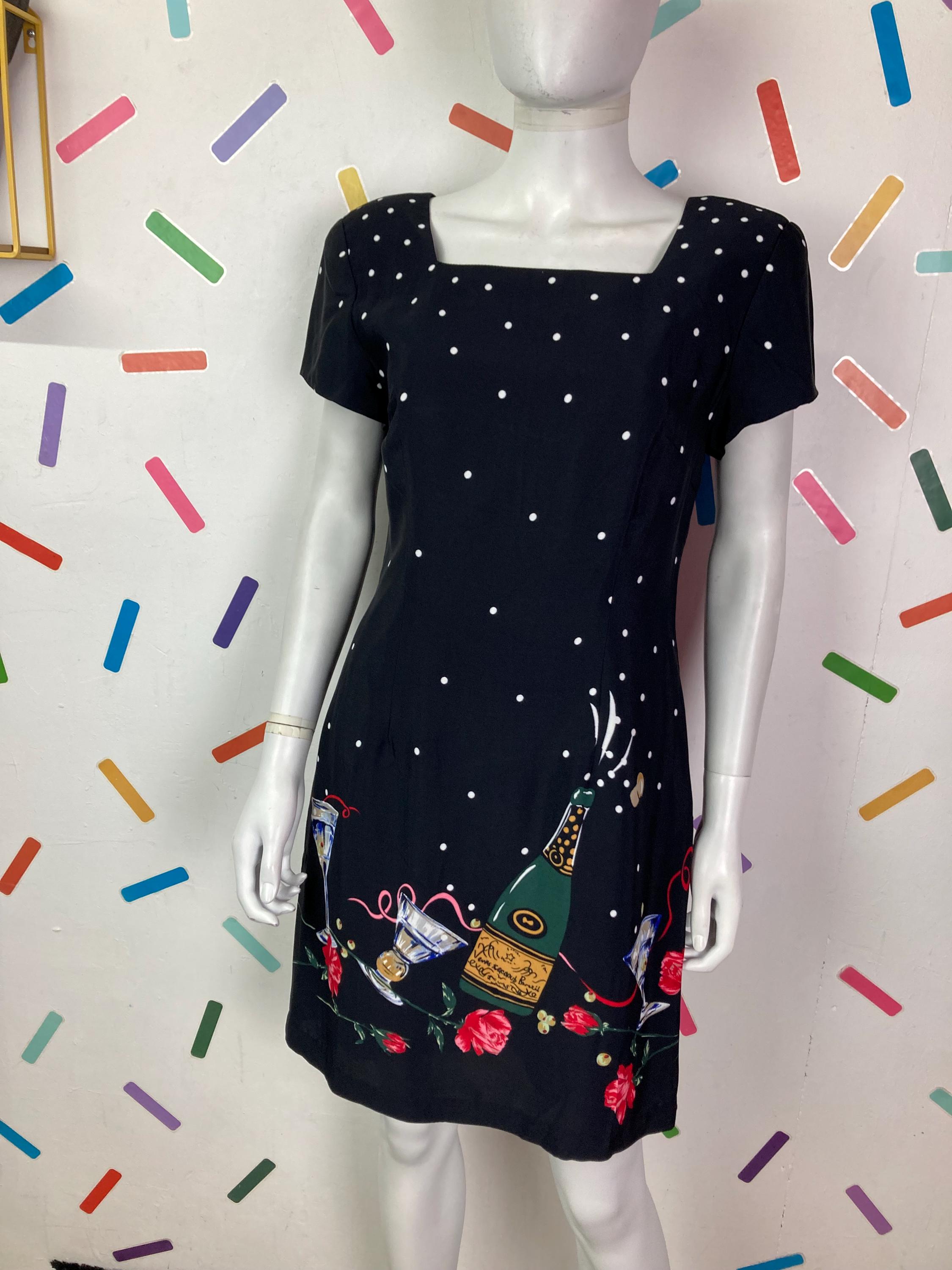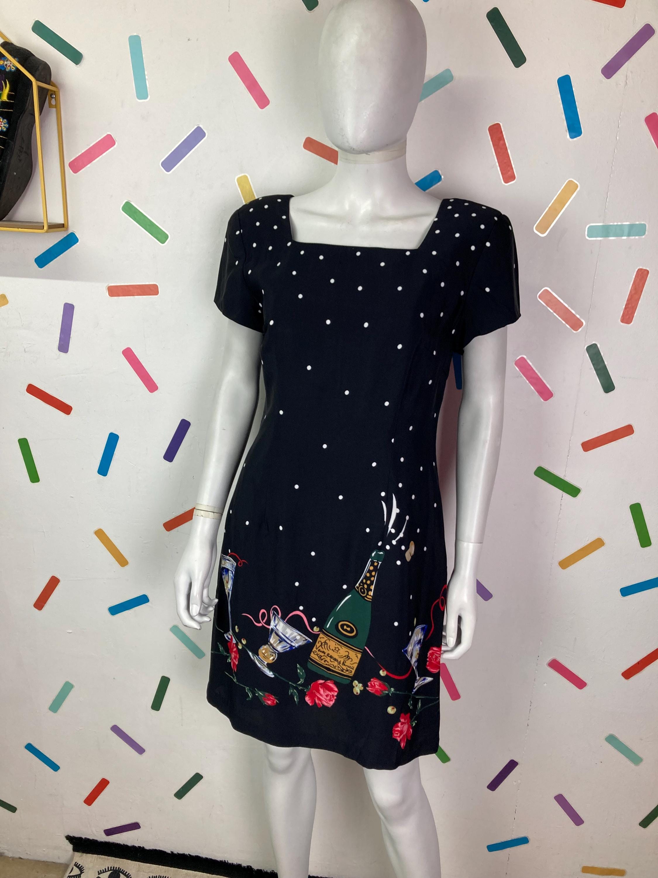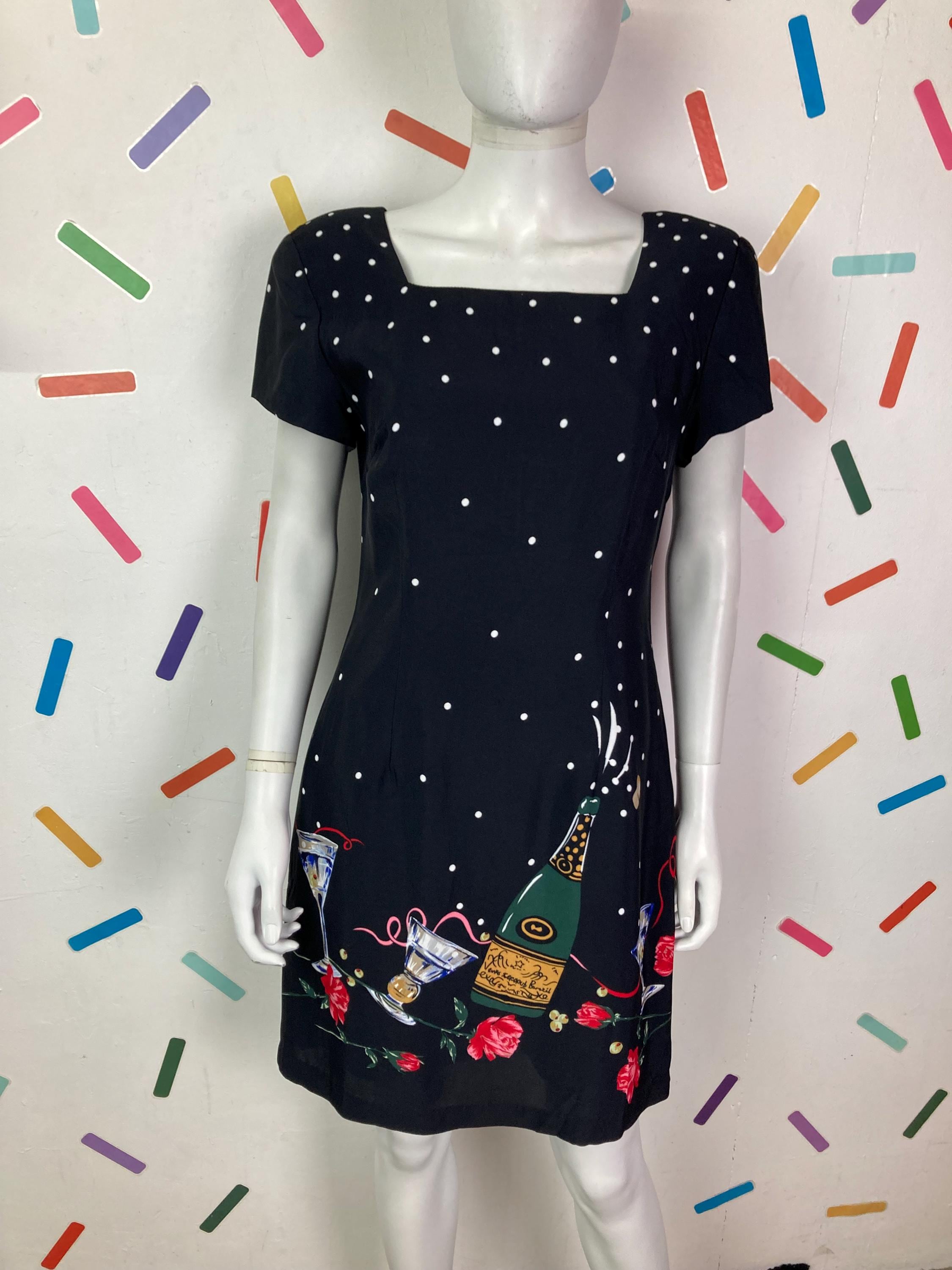 Other: This is a fabulous 80s dress with the most amazing party celebration design along the bottom.