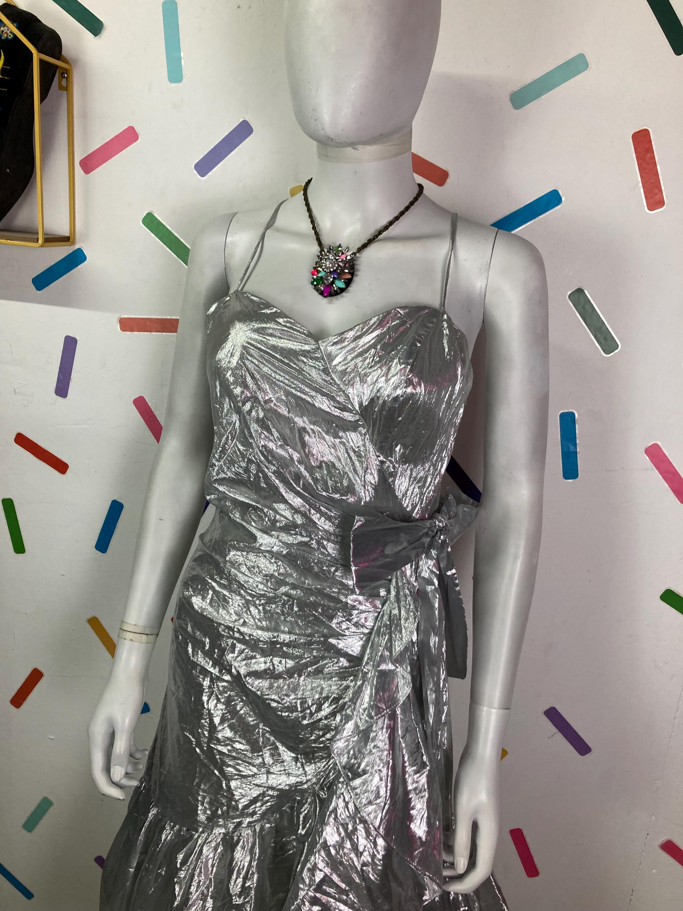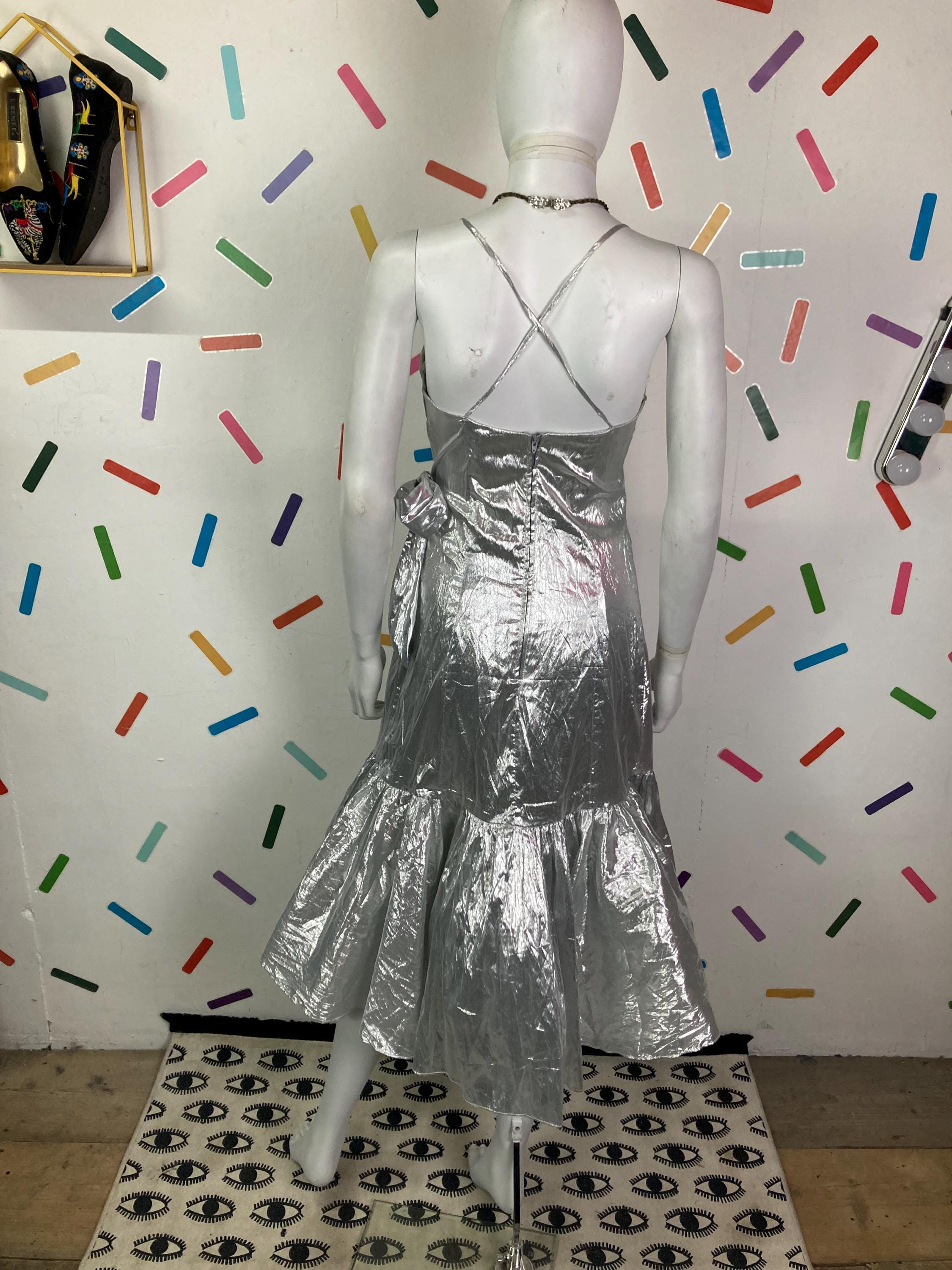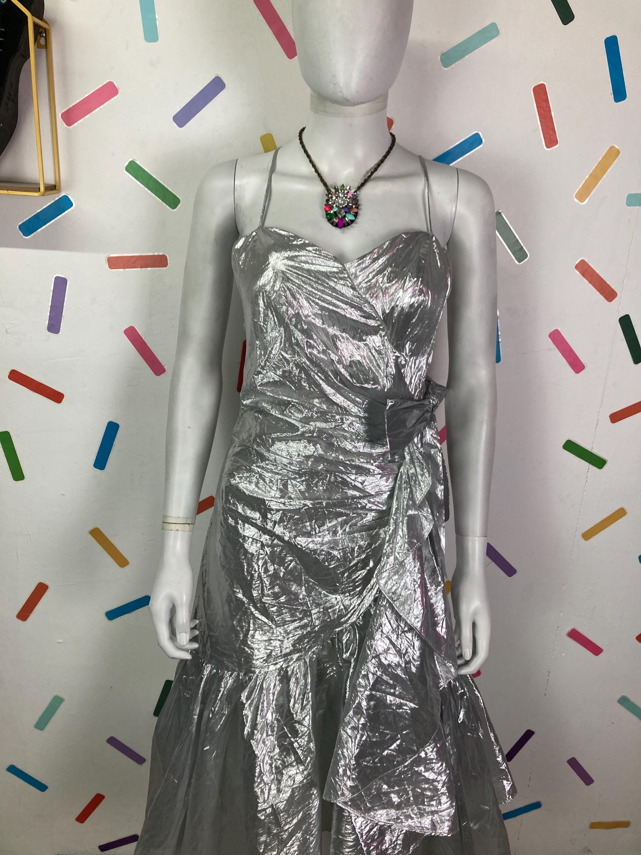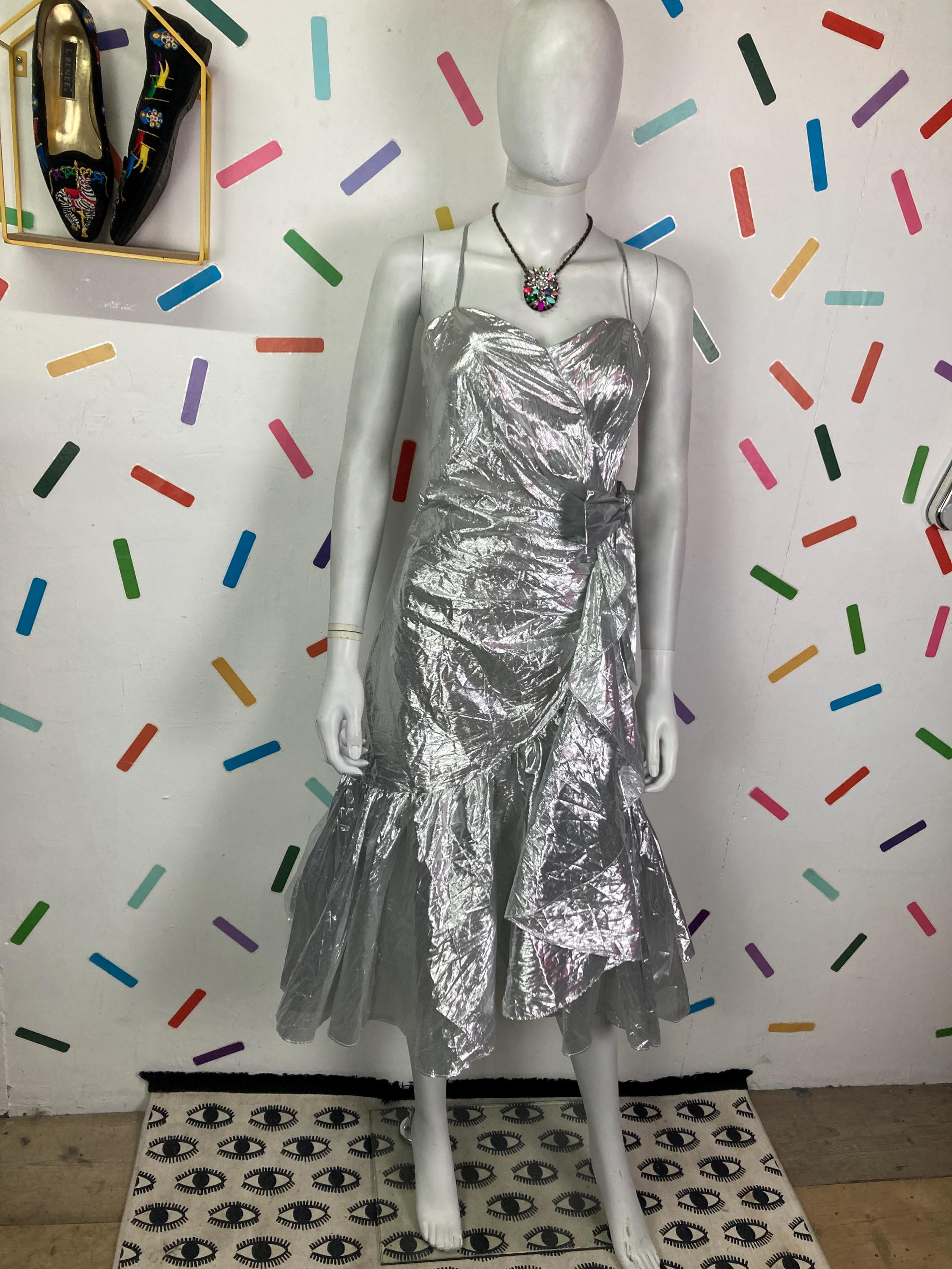 Other: This is a great 80s silver prom dress with bow detail. Zip back fastening.