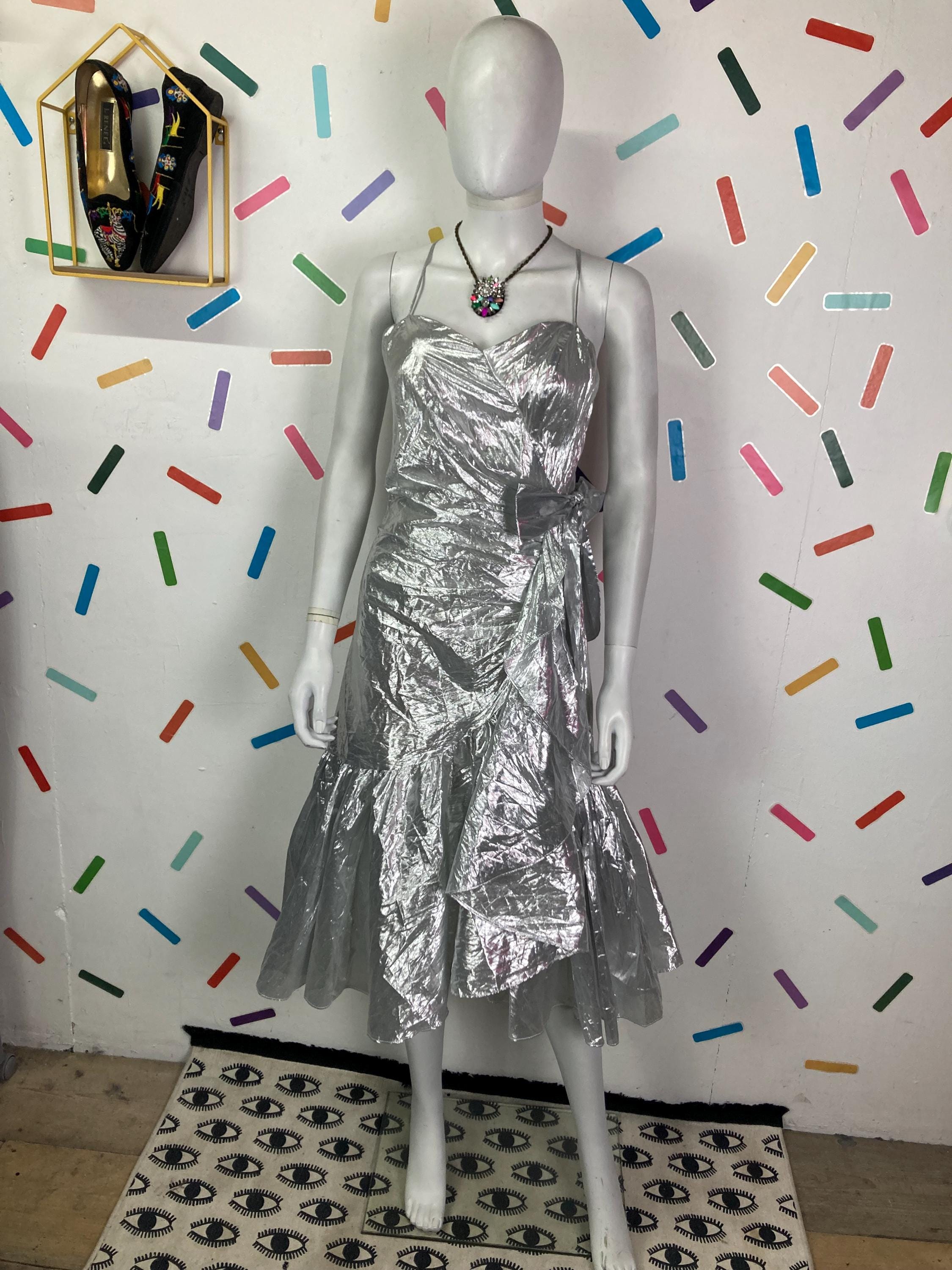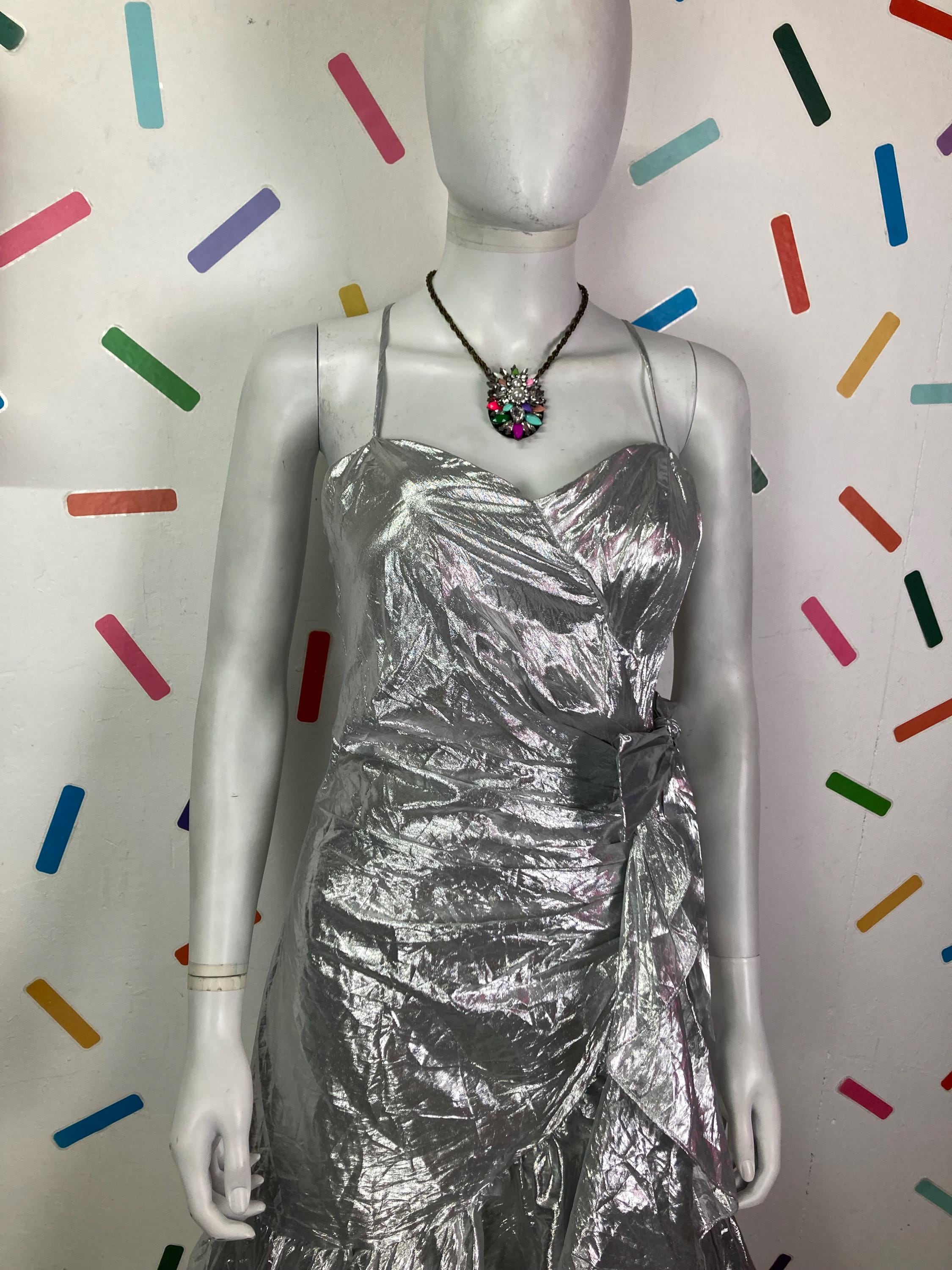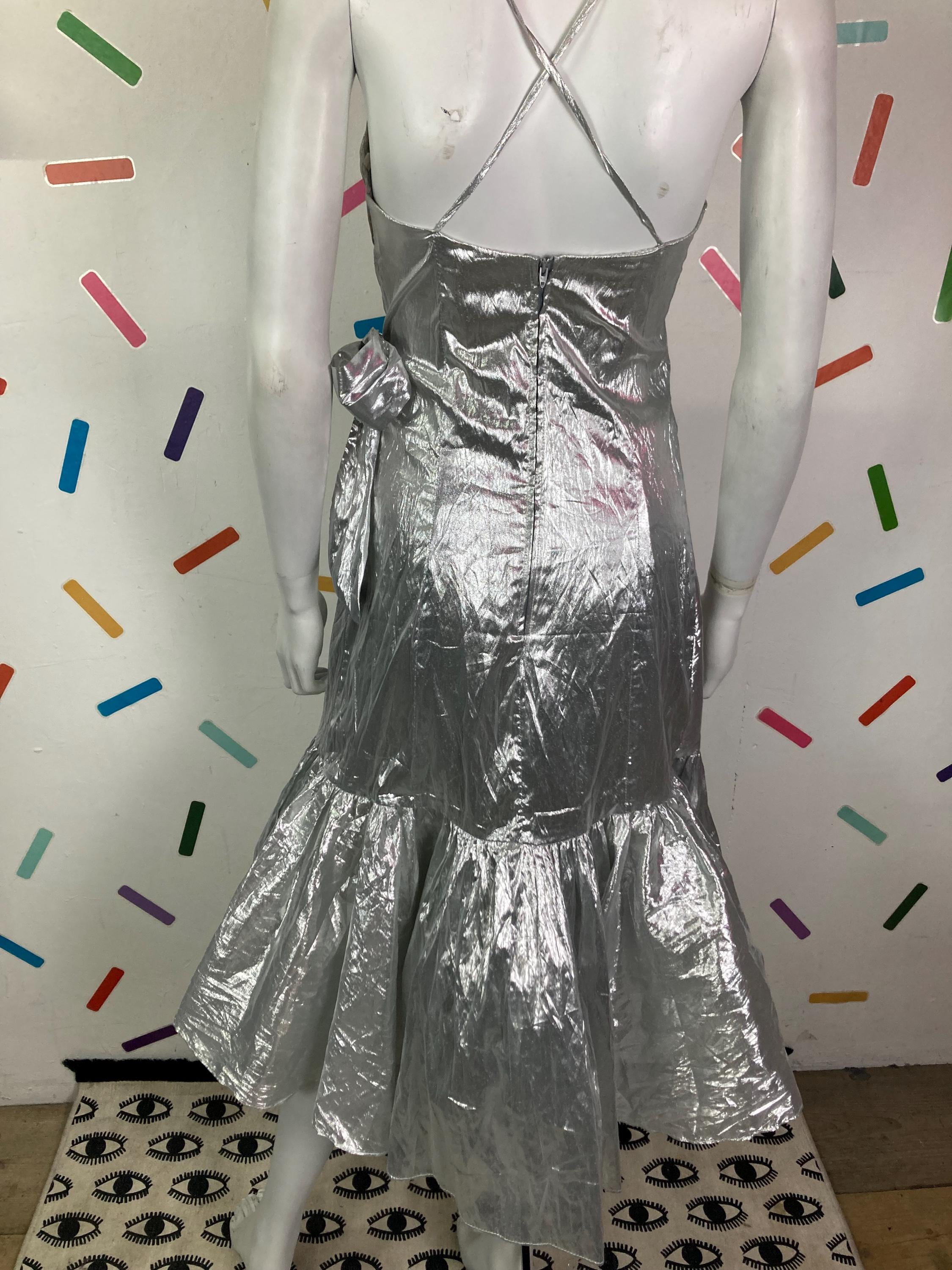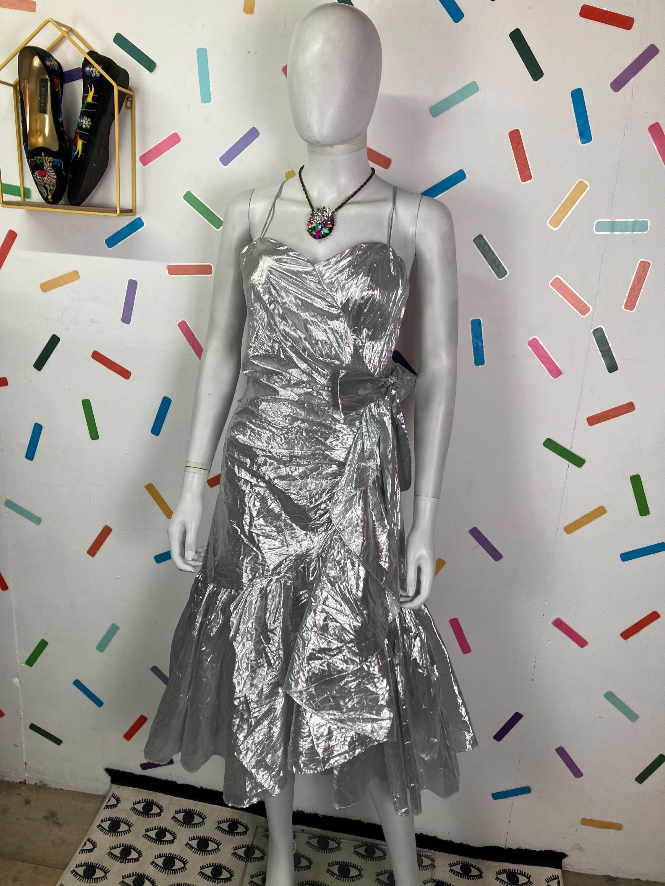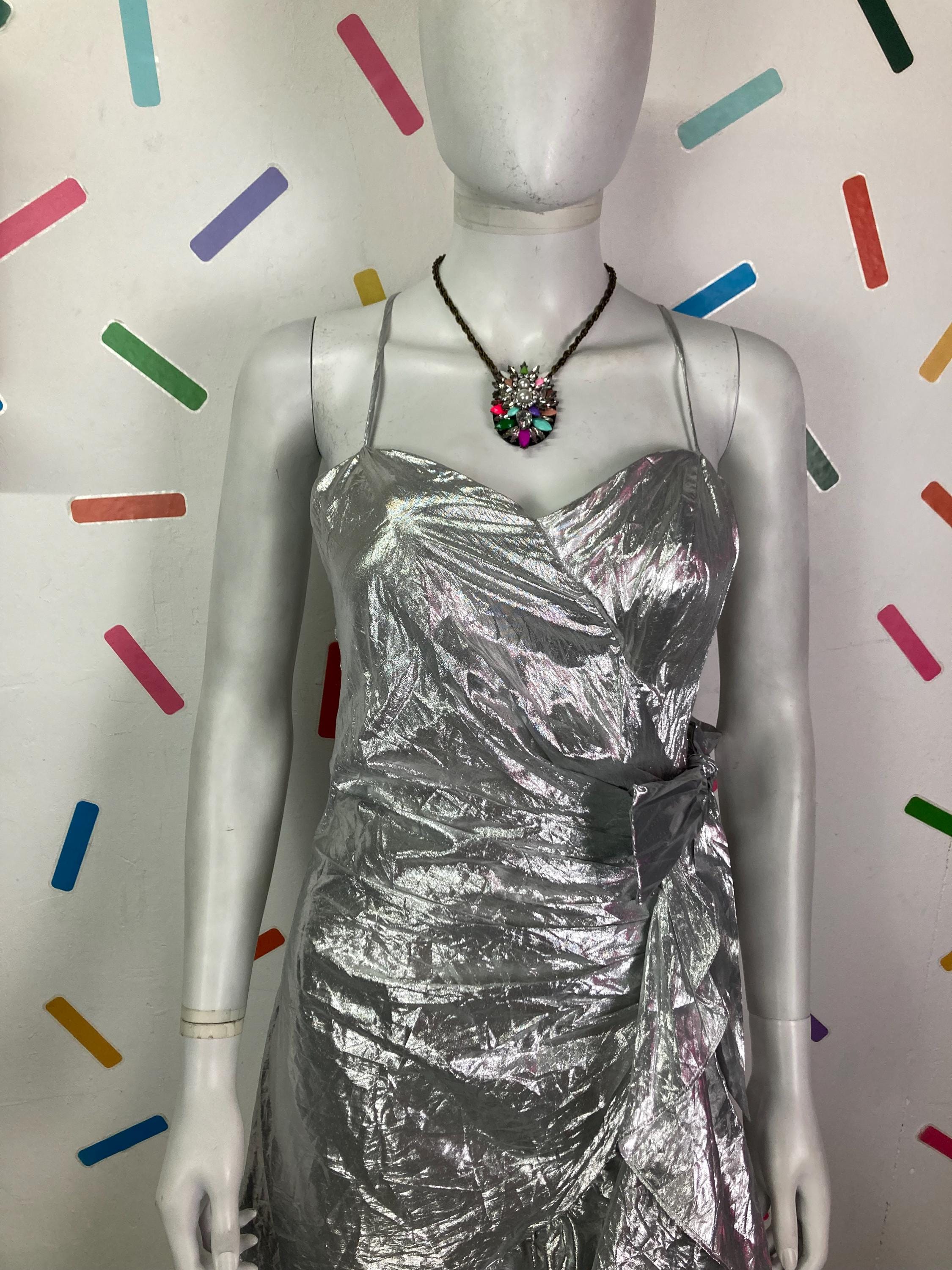 Other: This is a great 80s silver prom dress with bow detail. Zip back fastening.