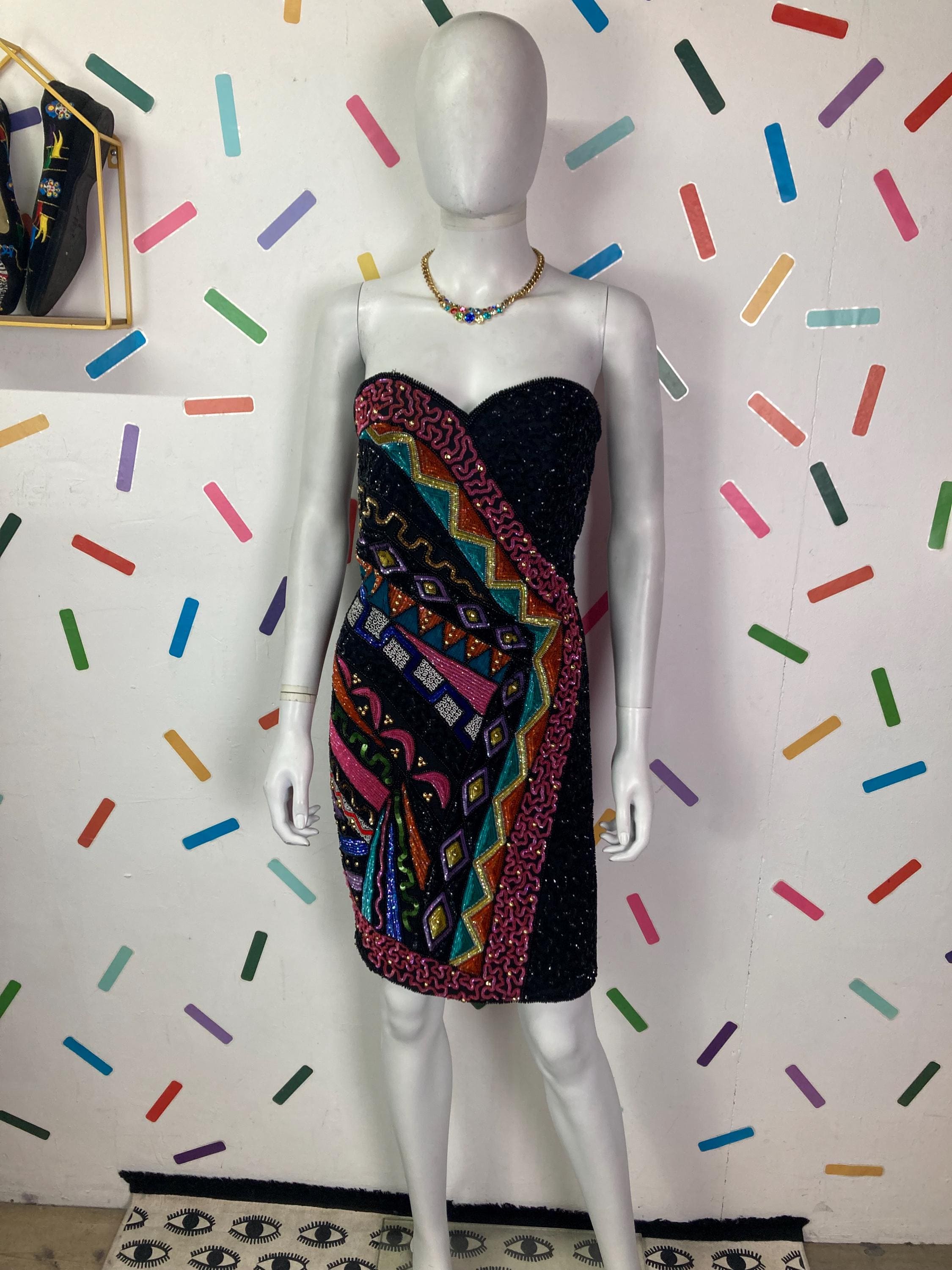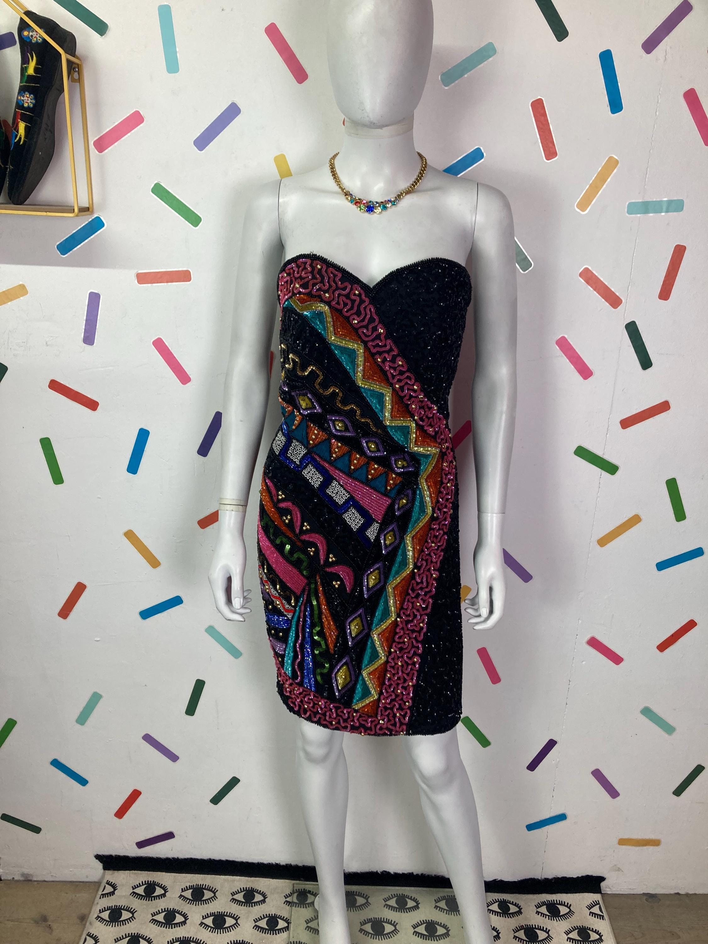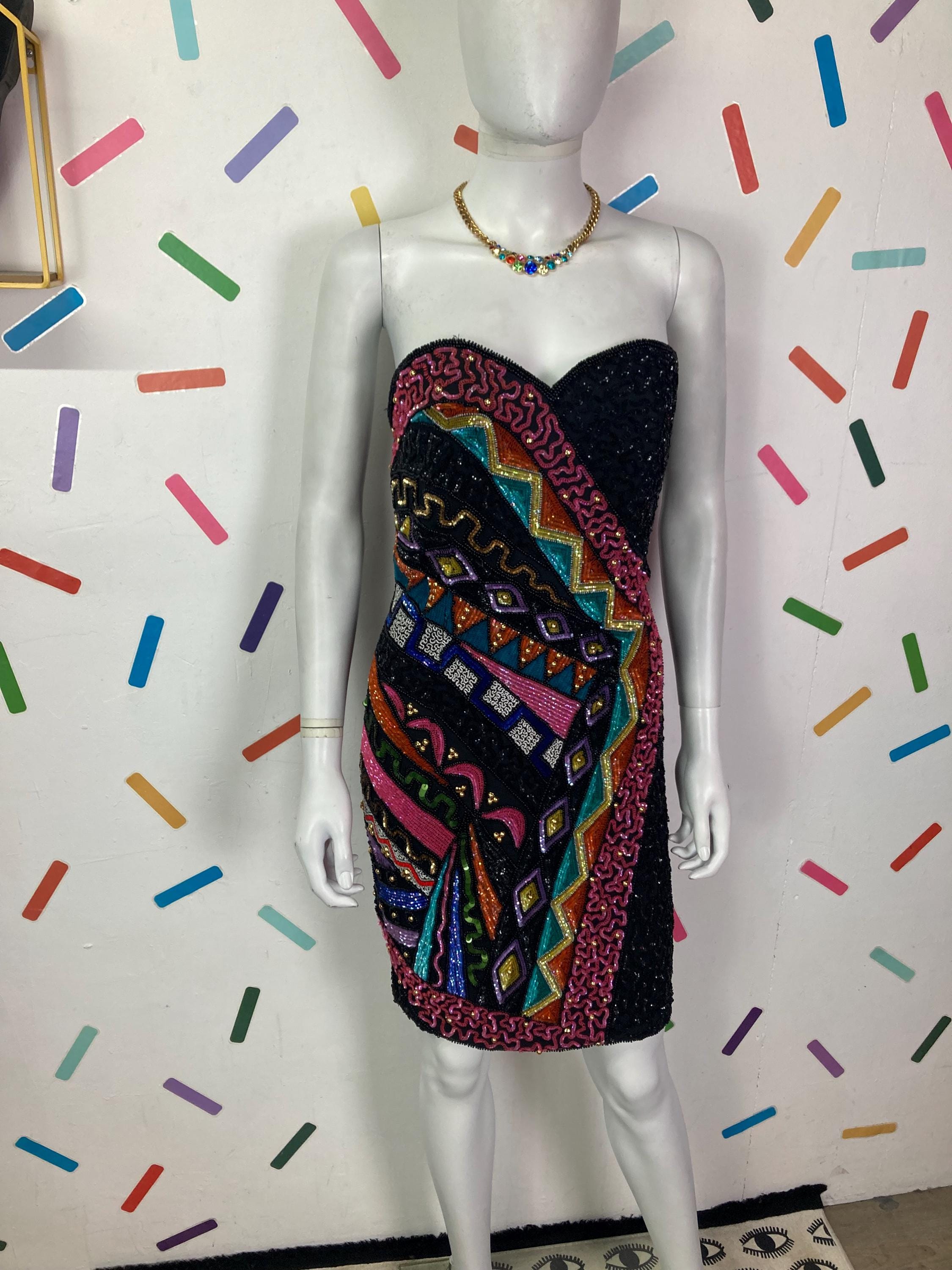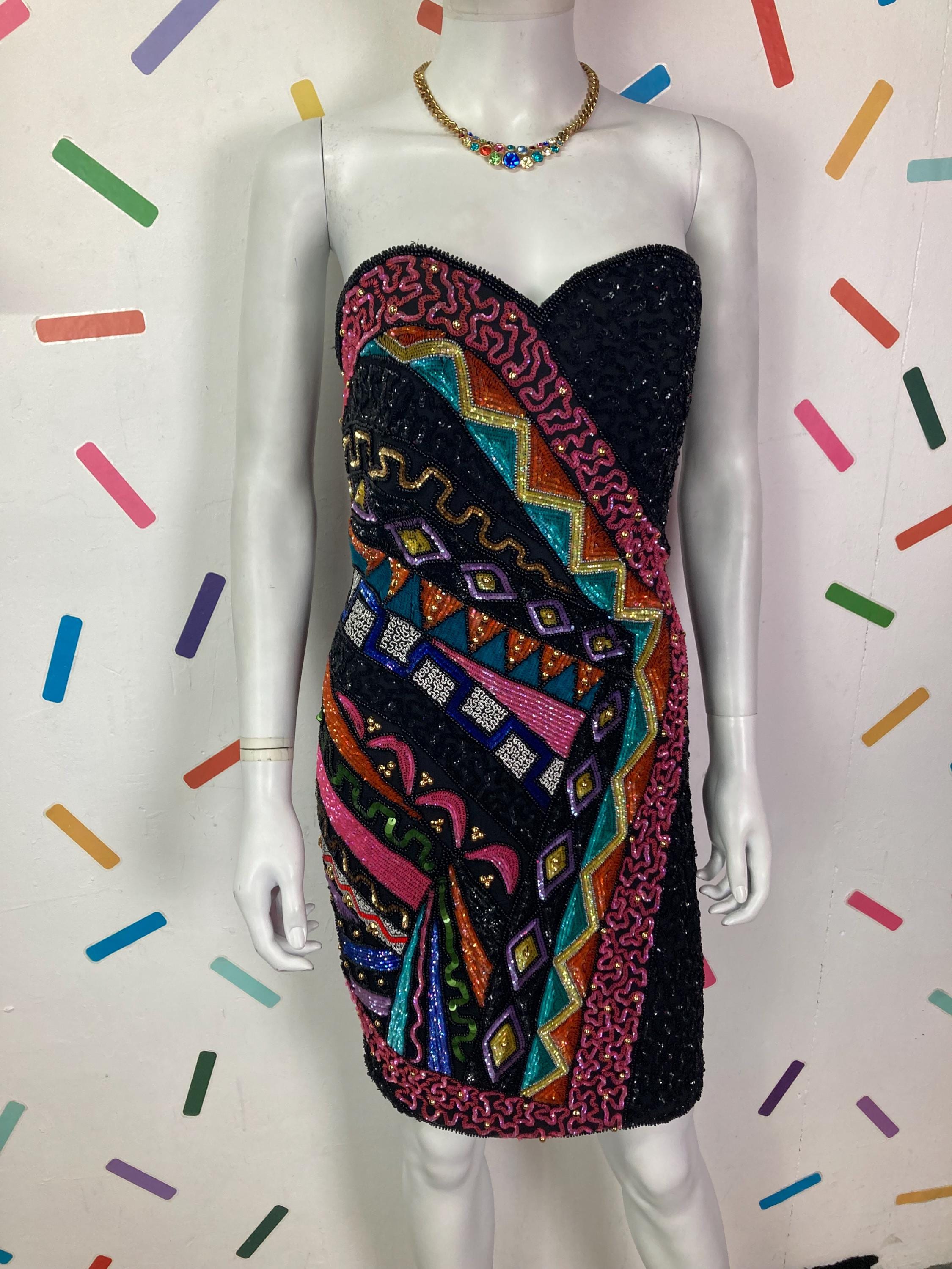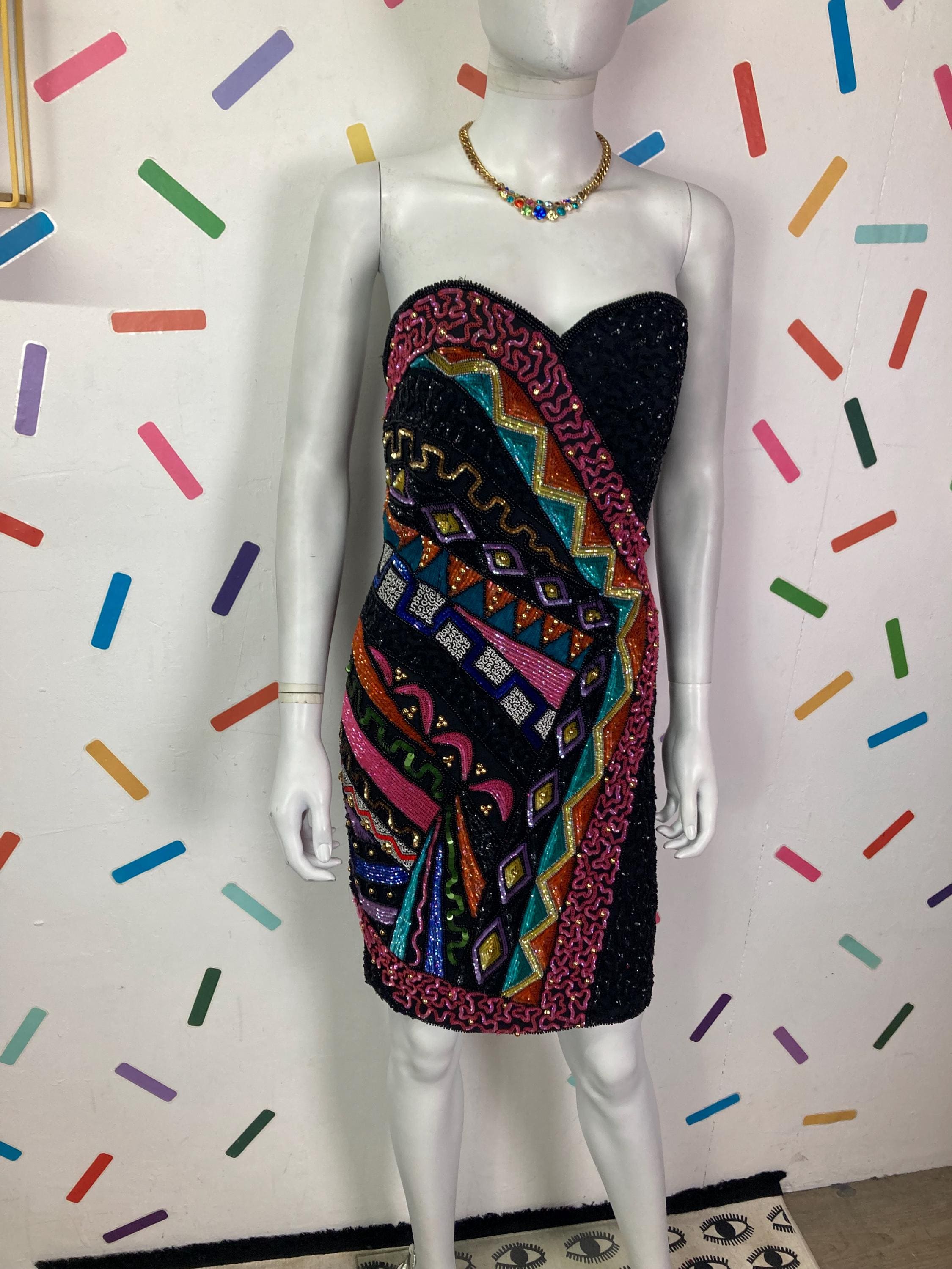 Other: This is a great 80s sequined dress with the most amazing geo design. Inbuilt support.