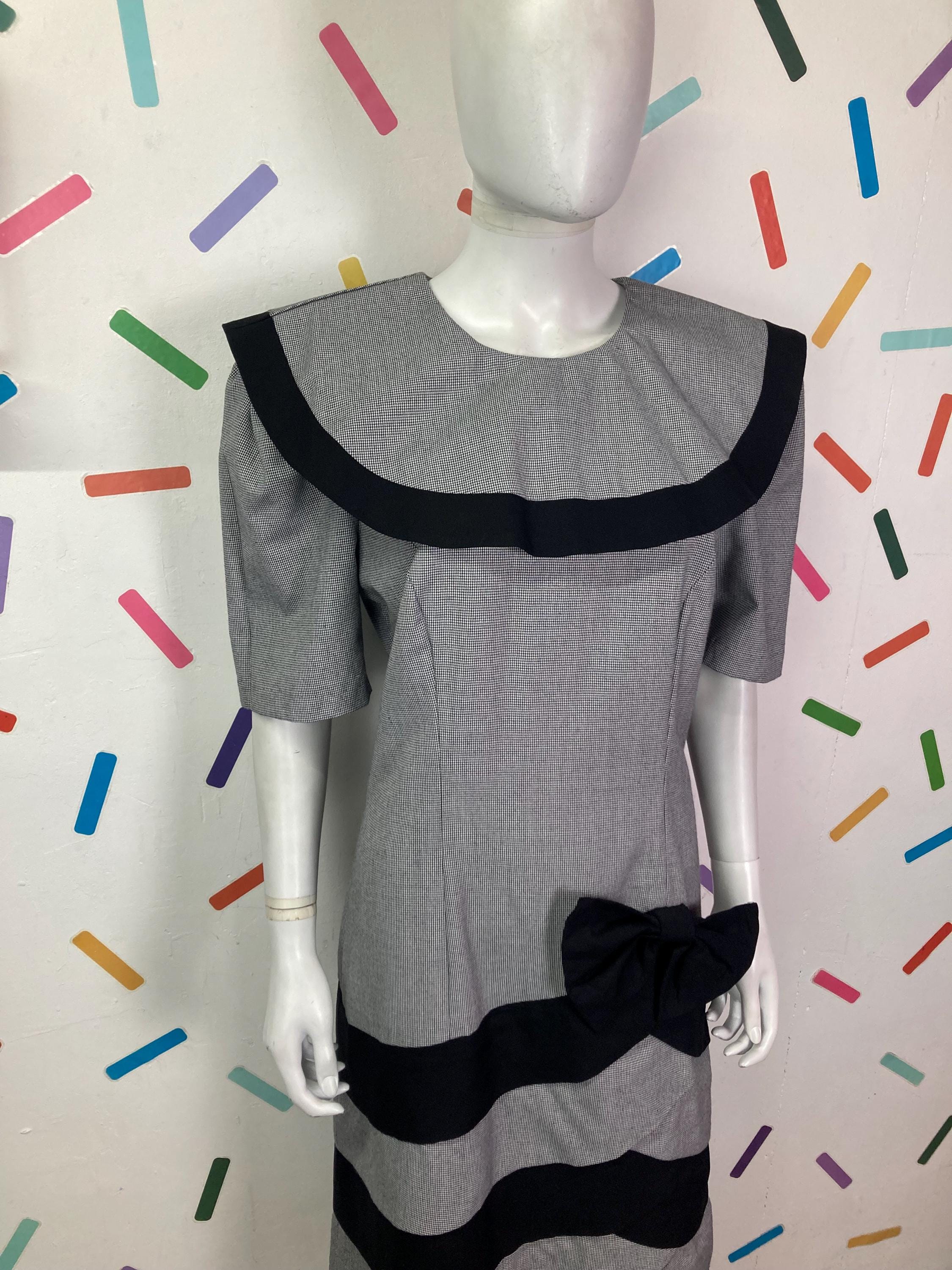 Other: This is a fabulous 80s bow detail dress with the most amazing shiloette. Very flatterimg shape.