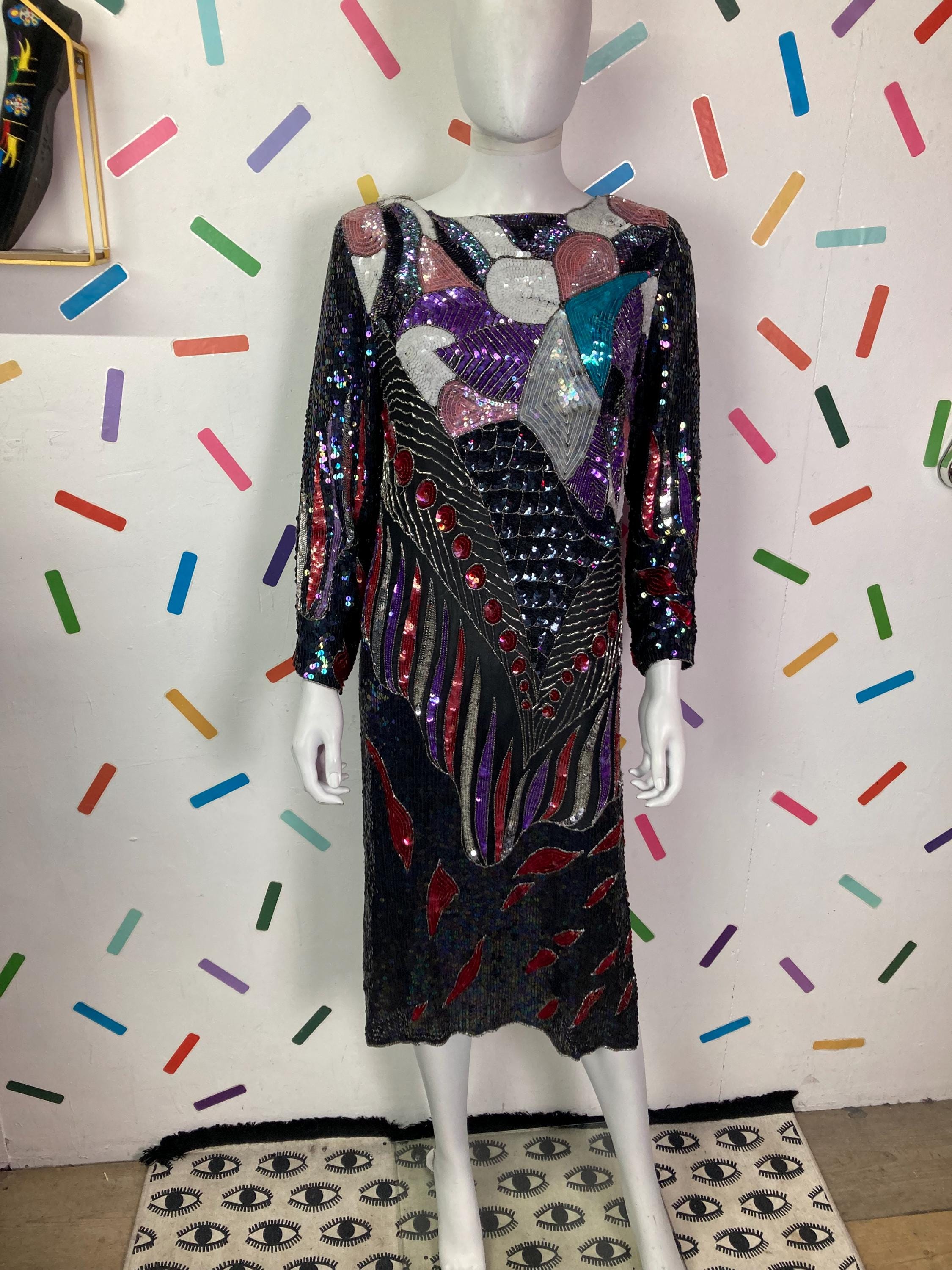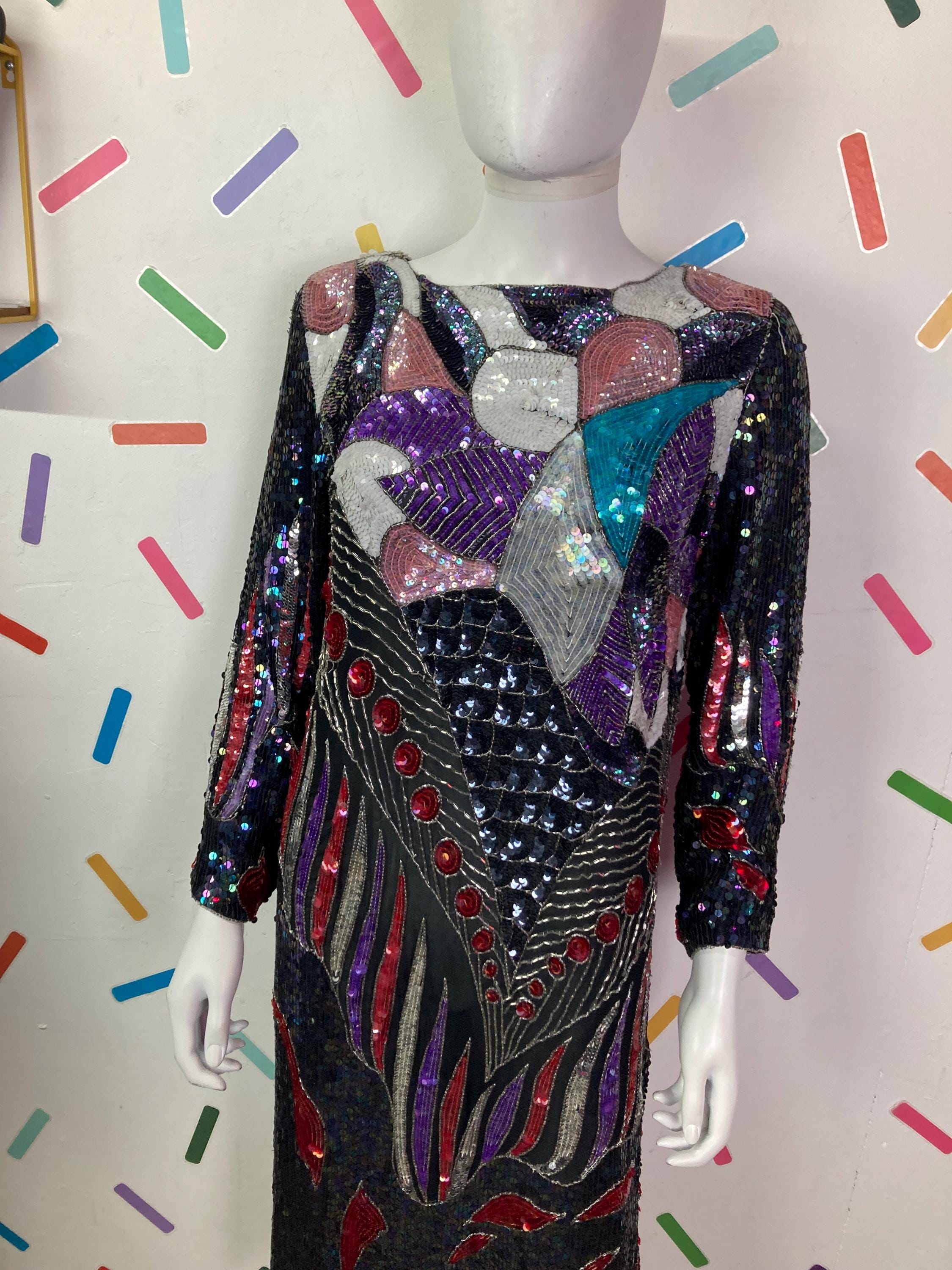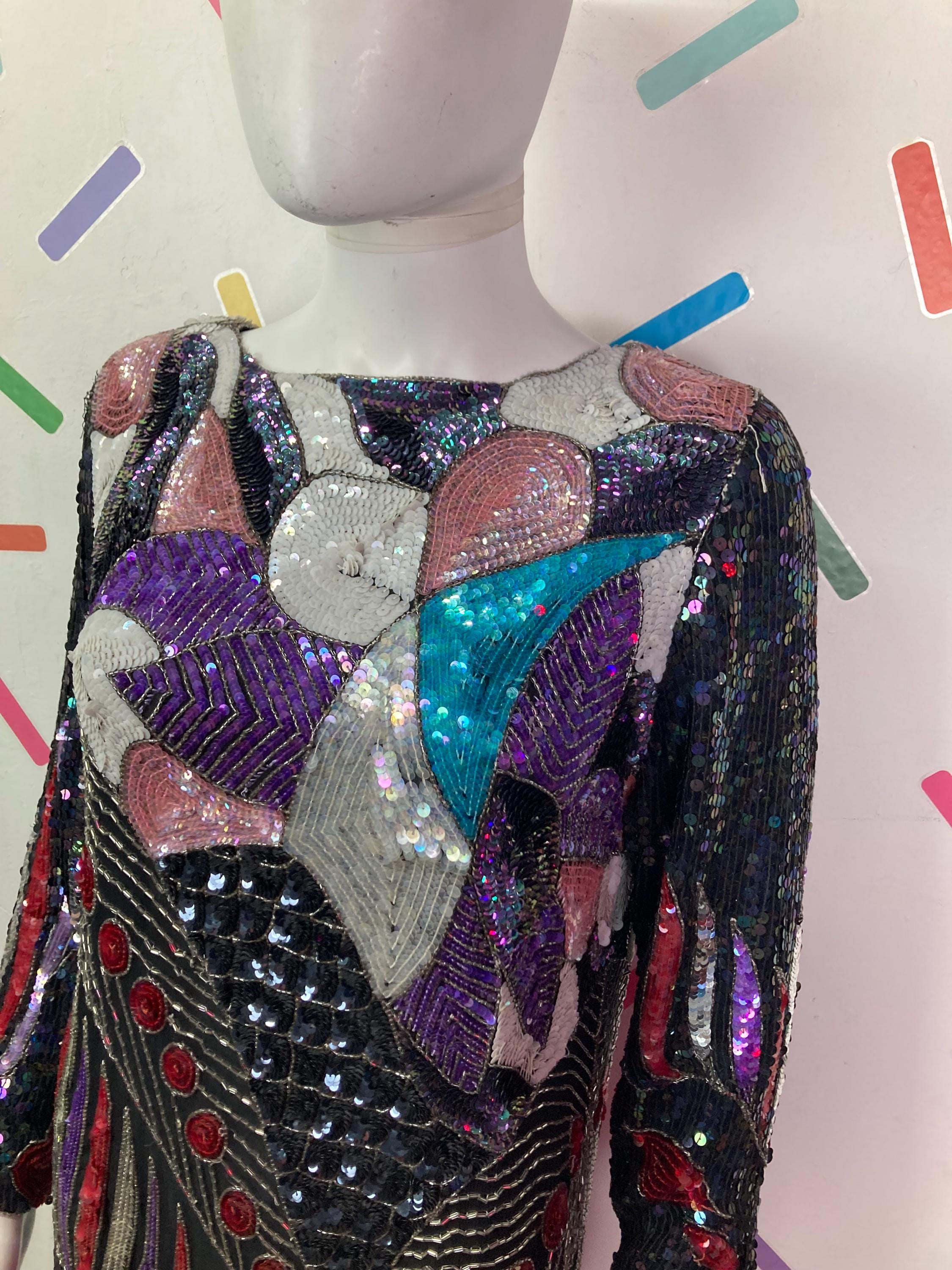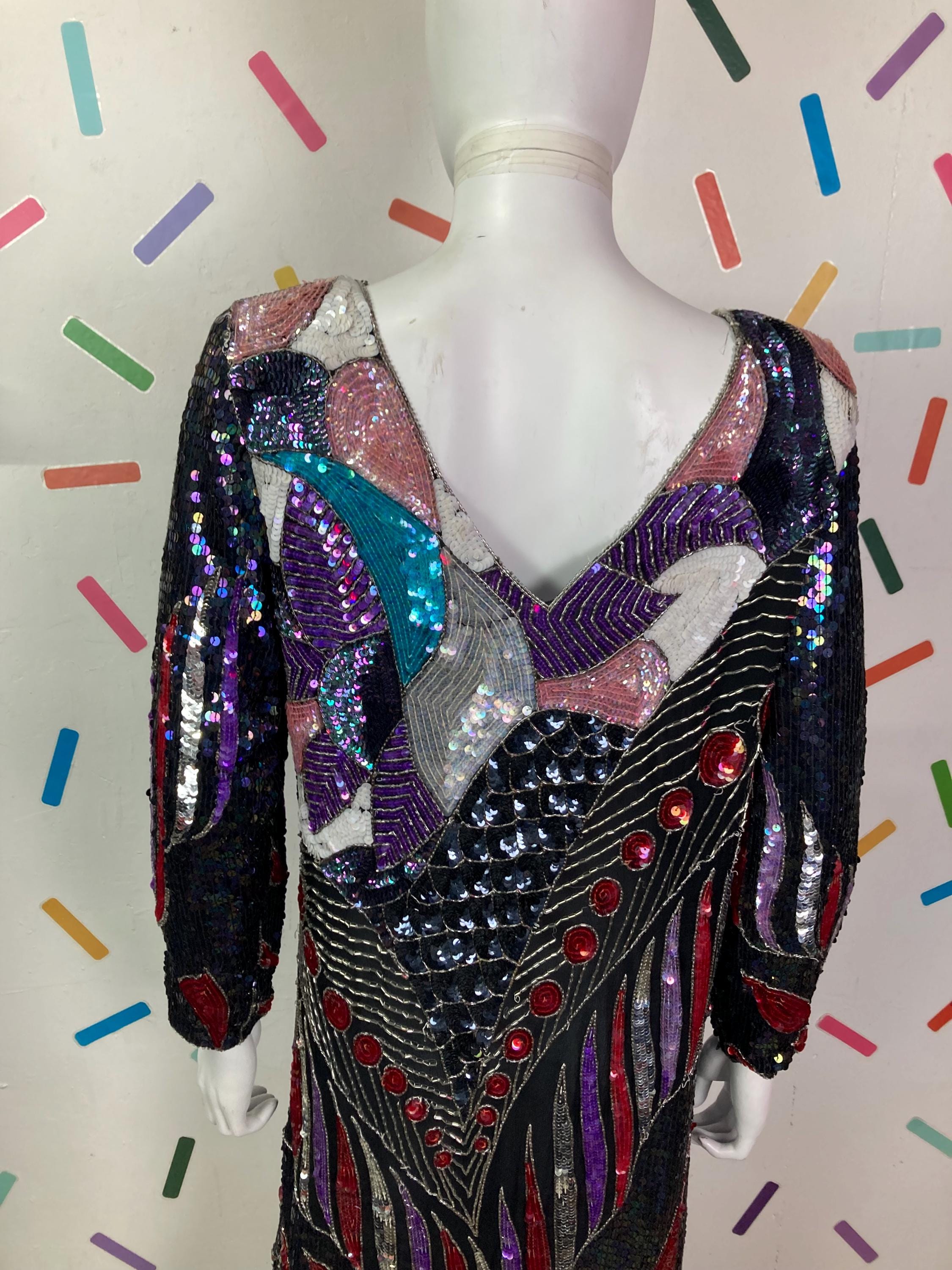 Other: This is a fabulous 80s long sleeve sequin geometric design dress. Silk lining.