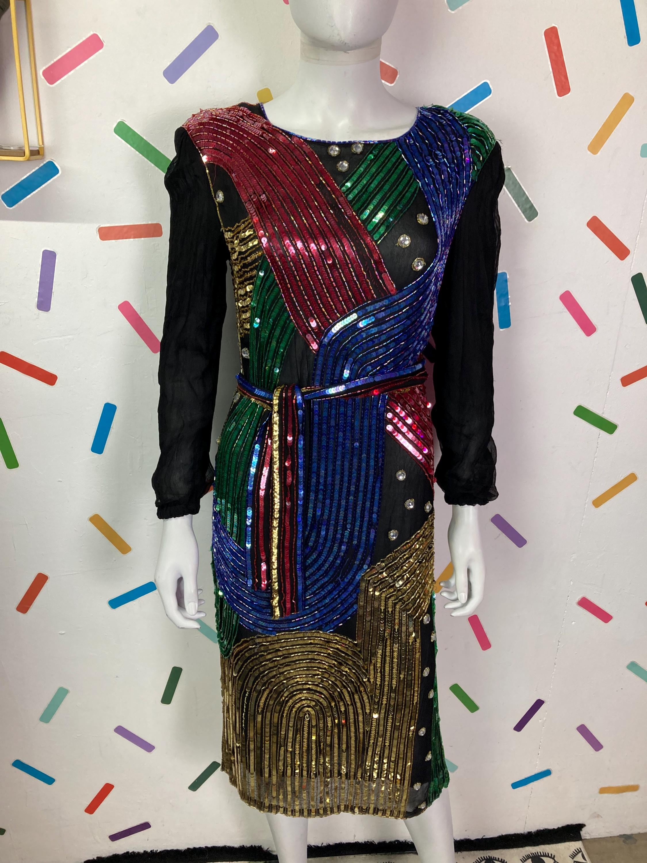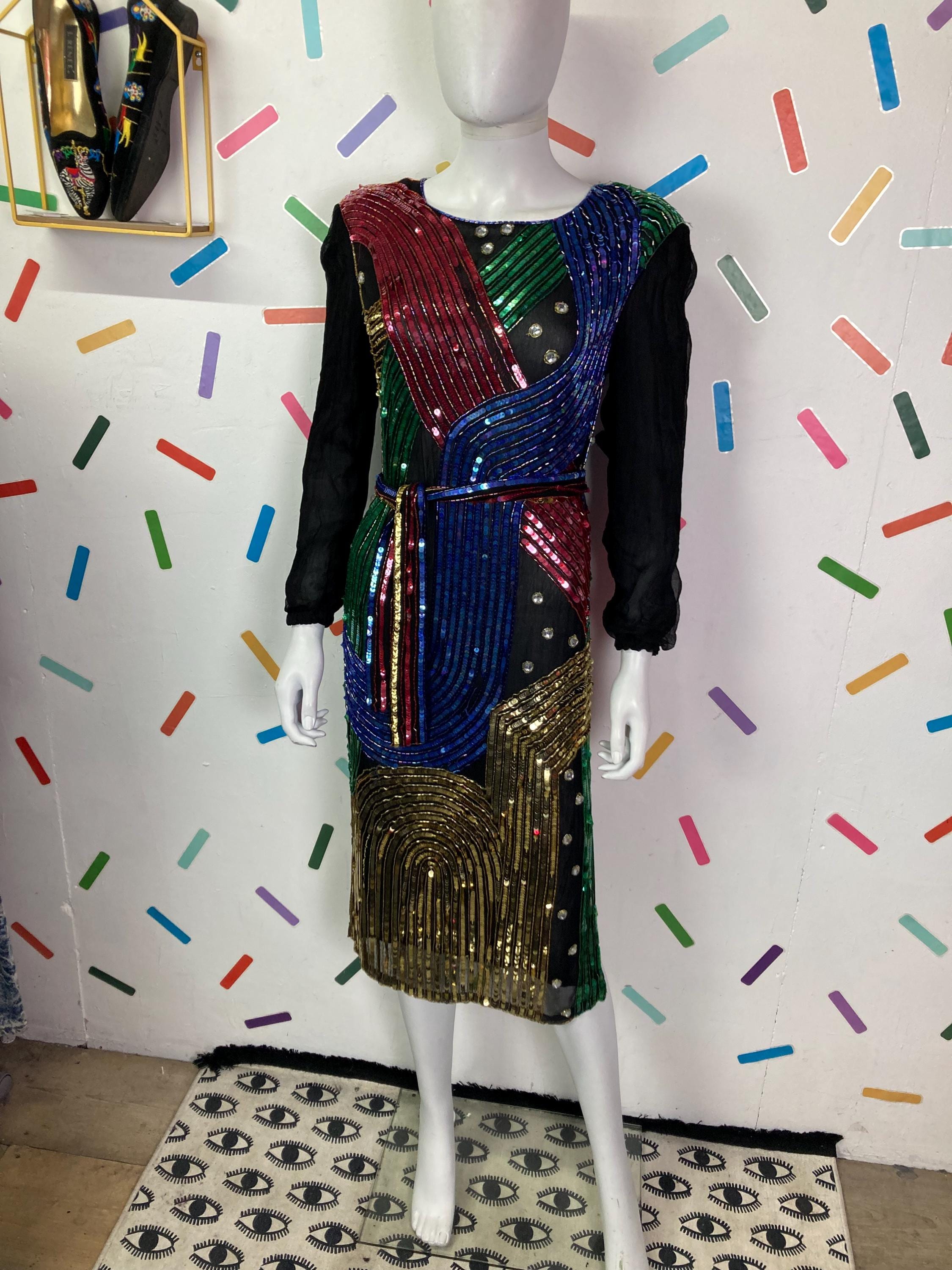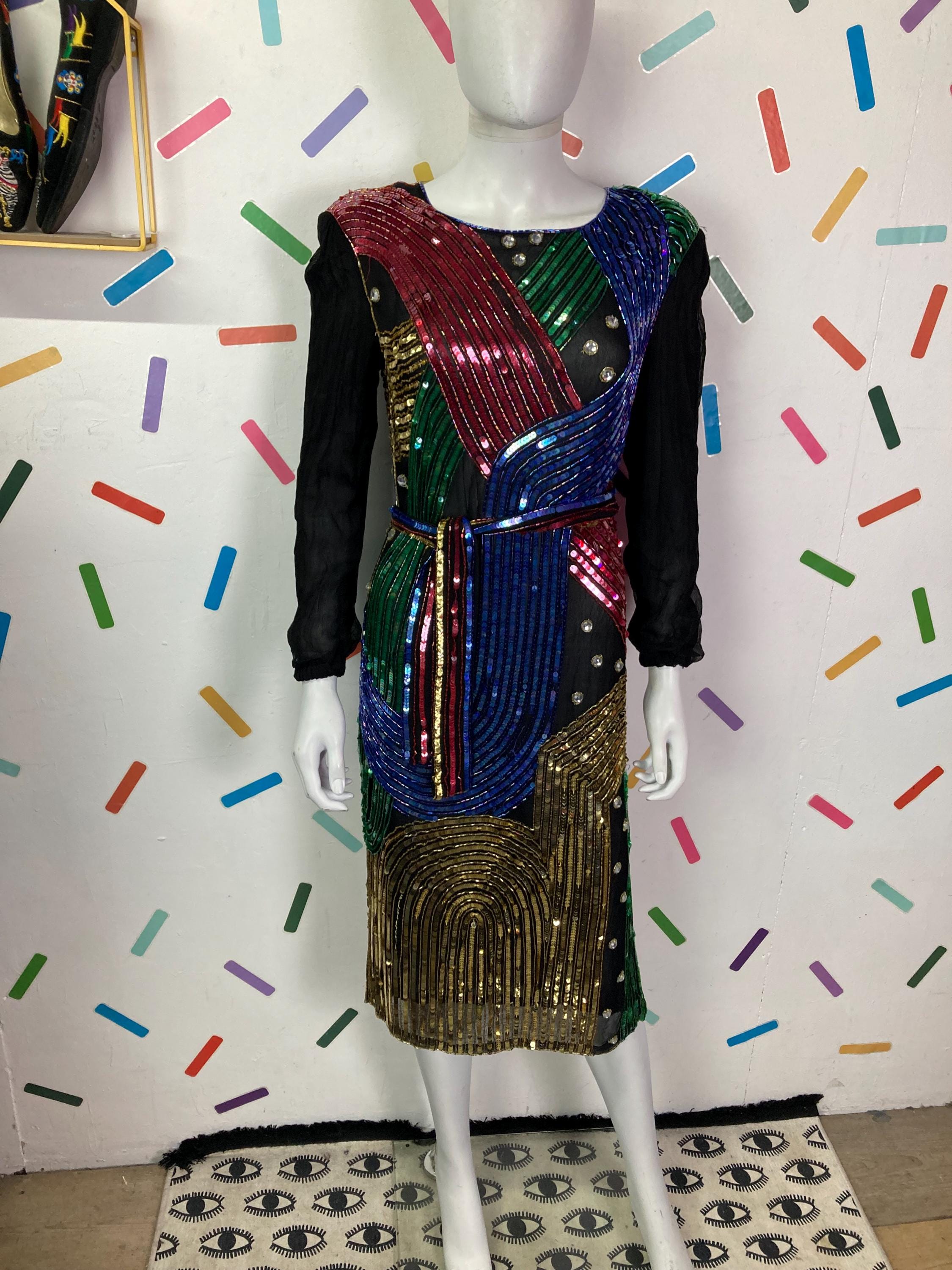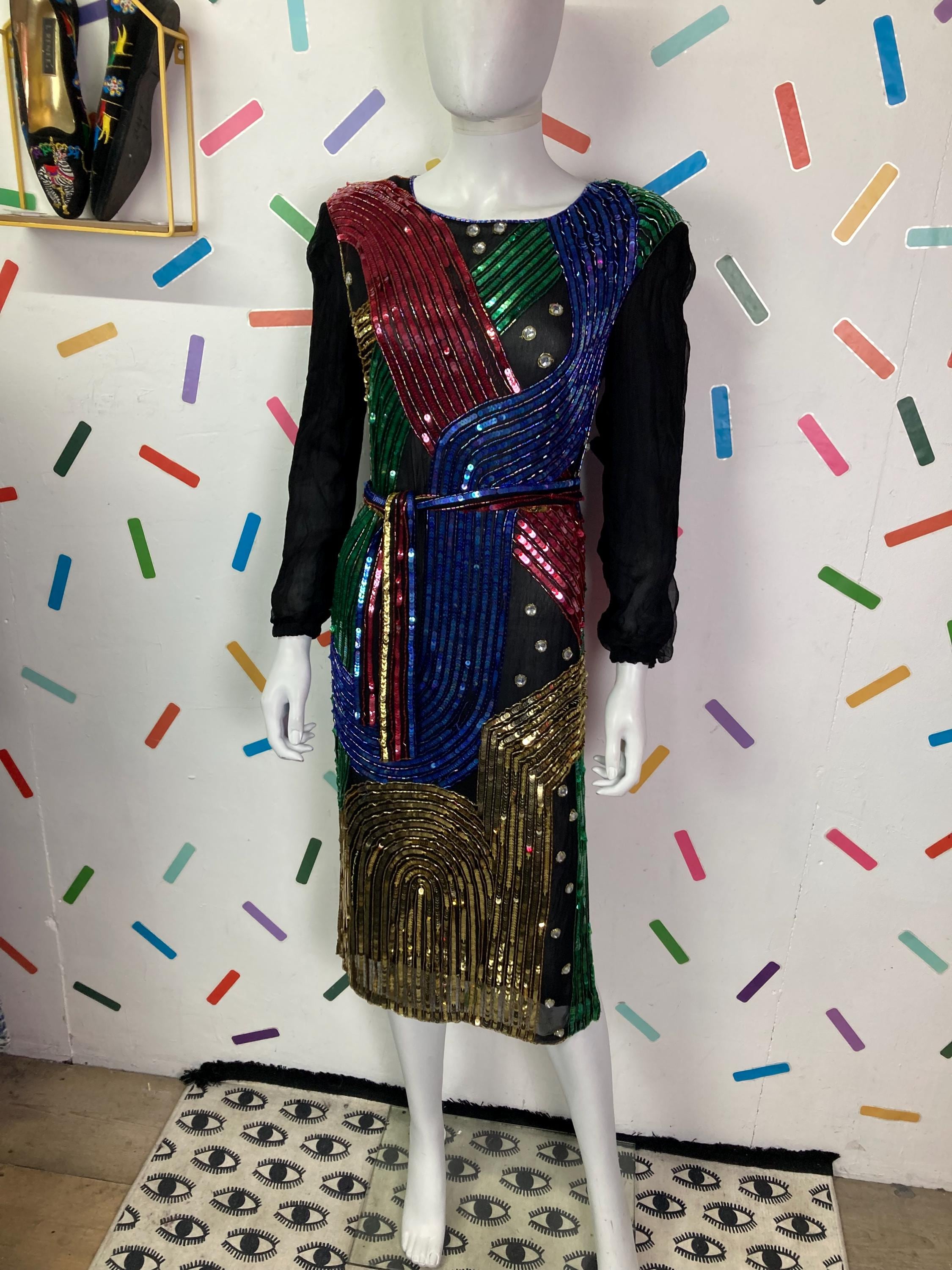 Other: This is a fabulous 80s long sleeve sequin geometric design dress. Silk lining.