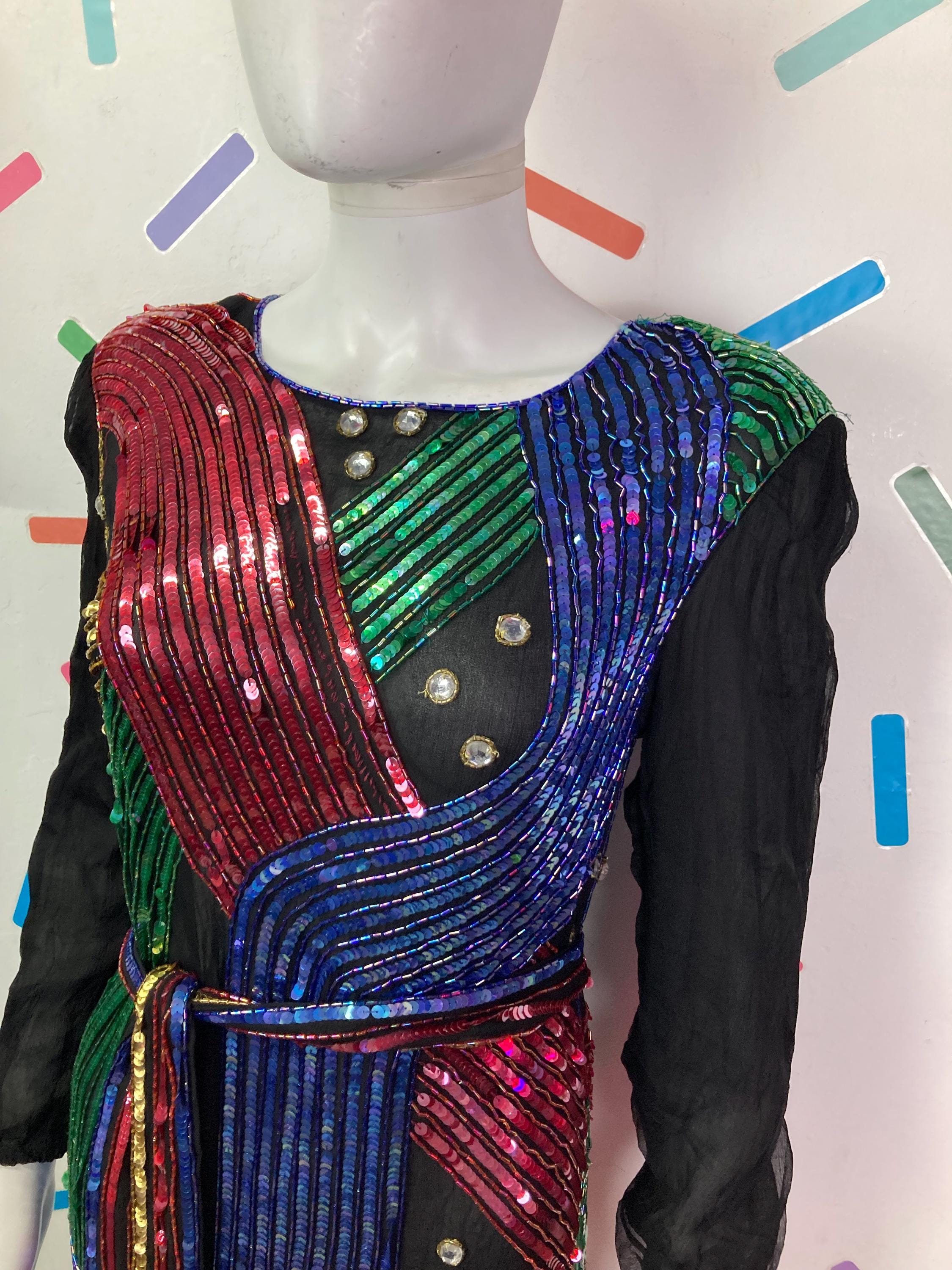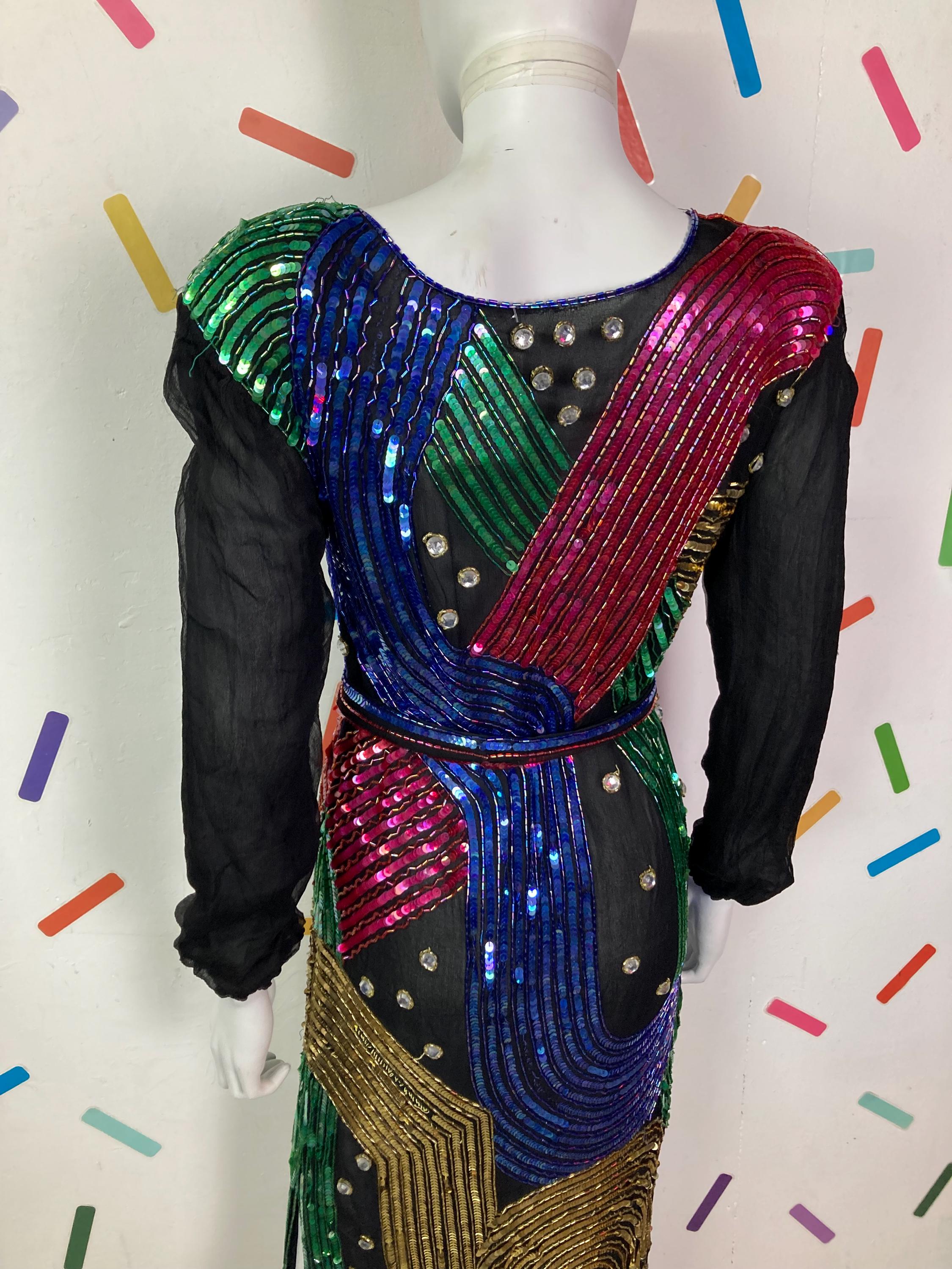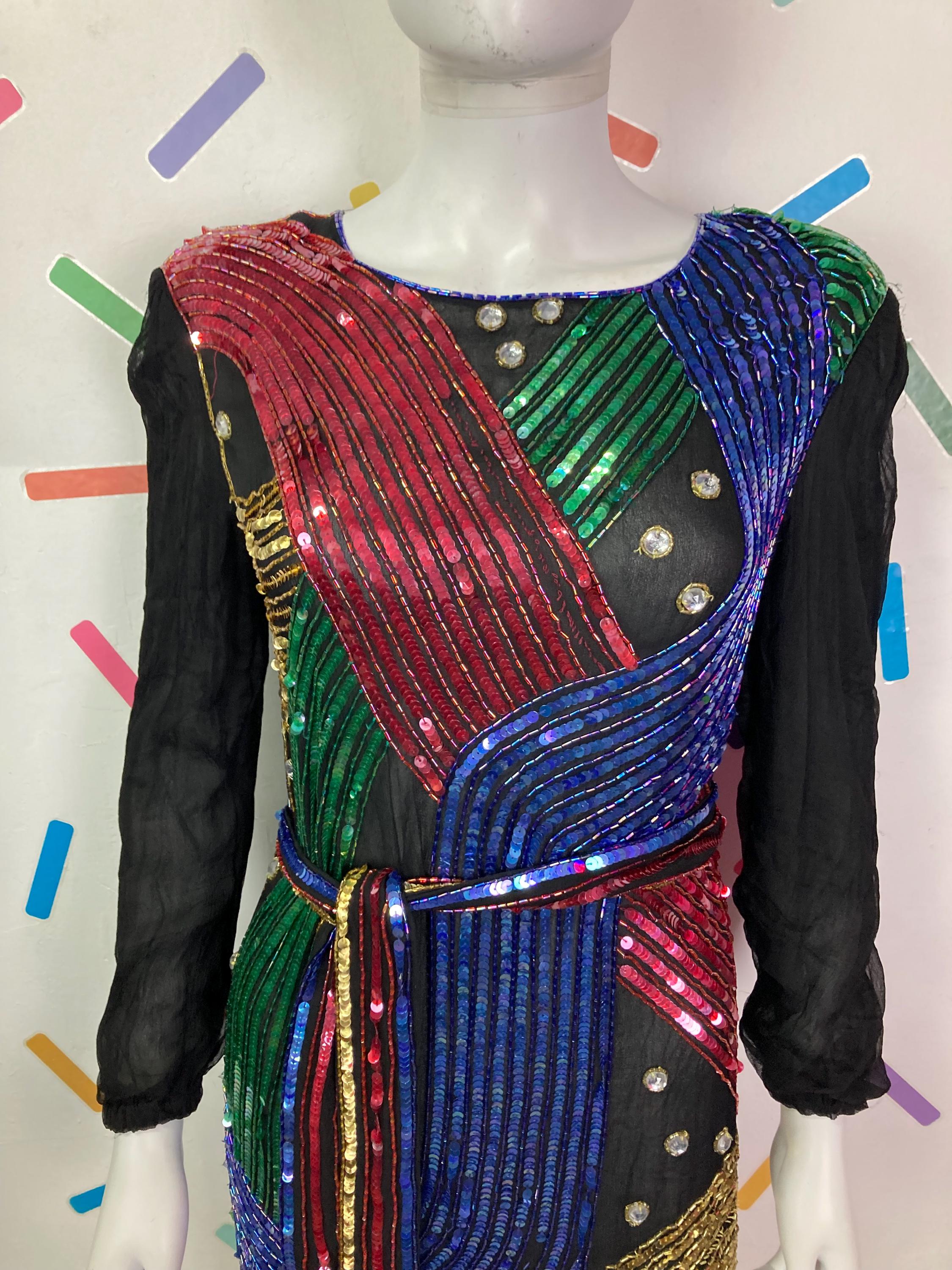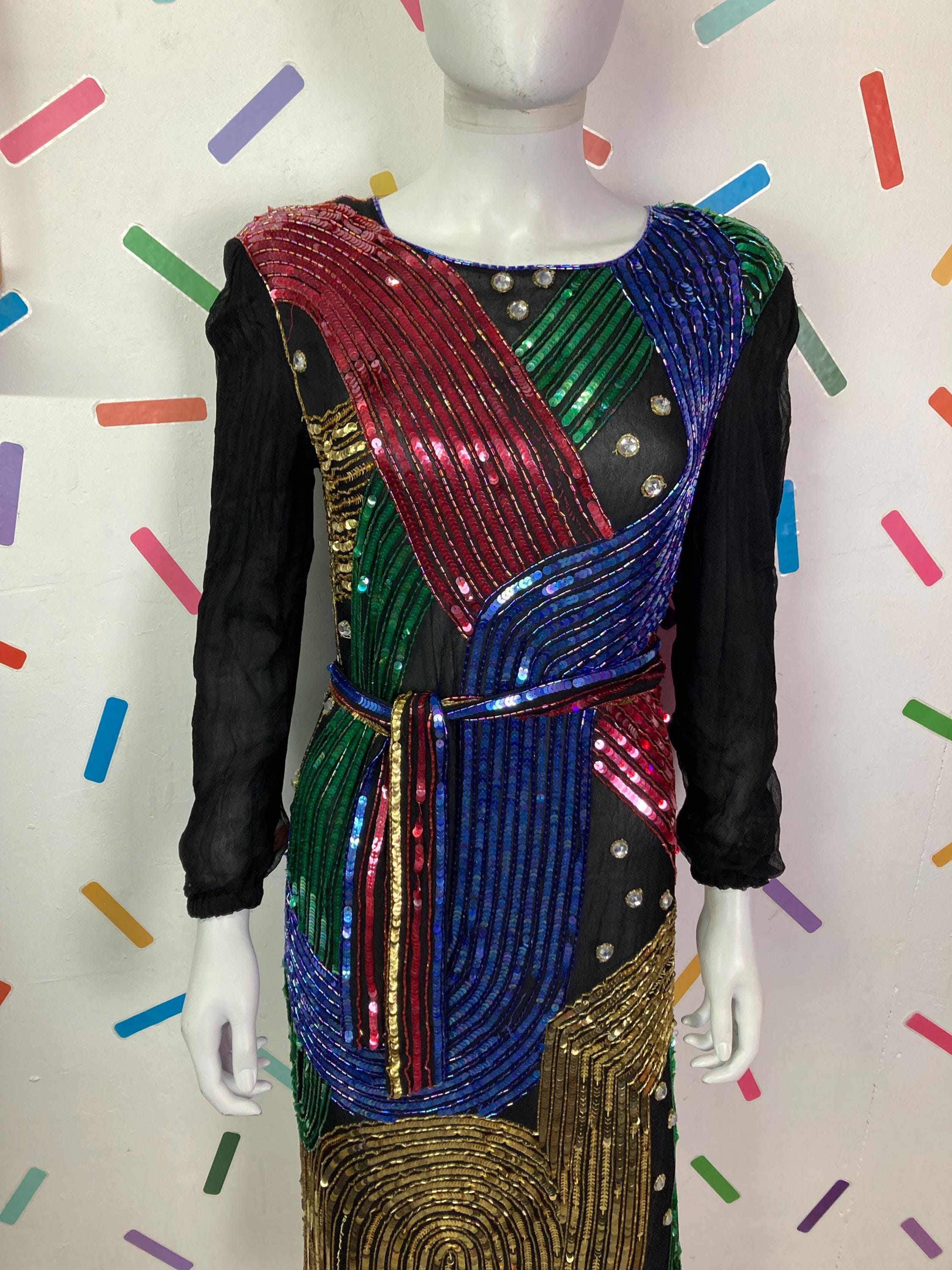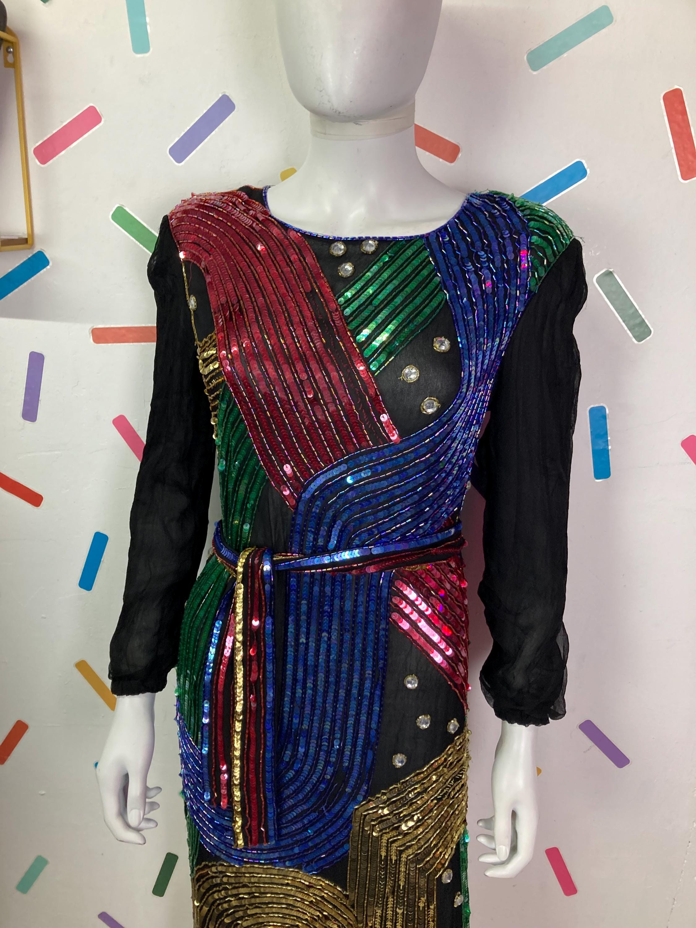 Other: This is a fabulous 80s long sleeve sequin geometric design dress. Silk lining.