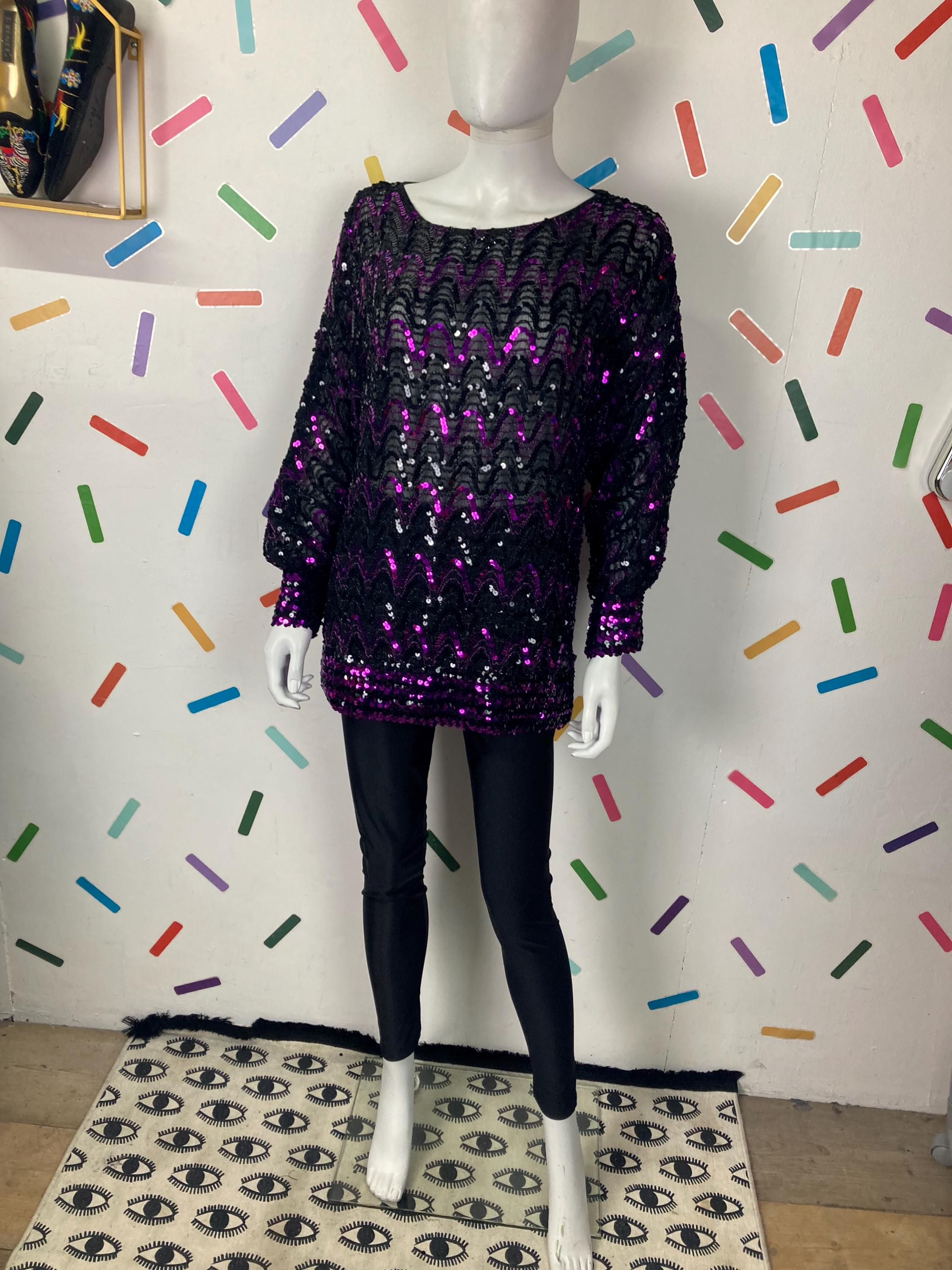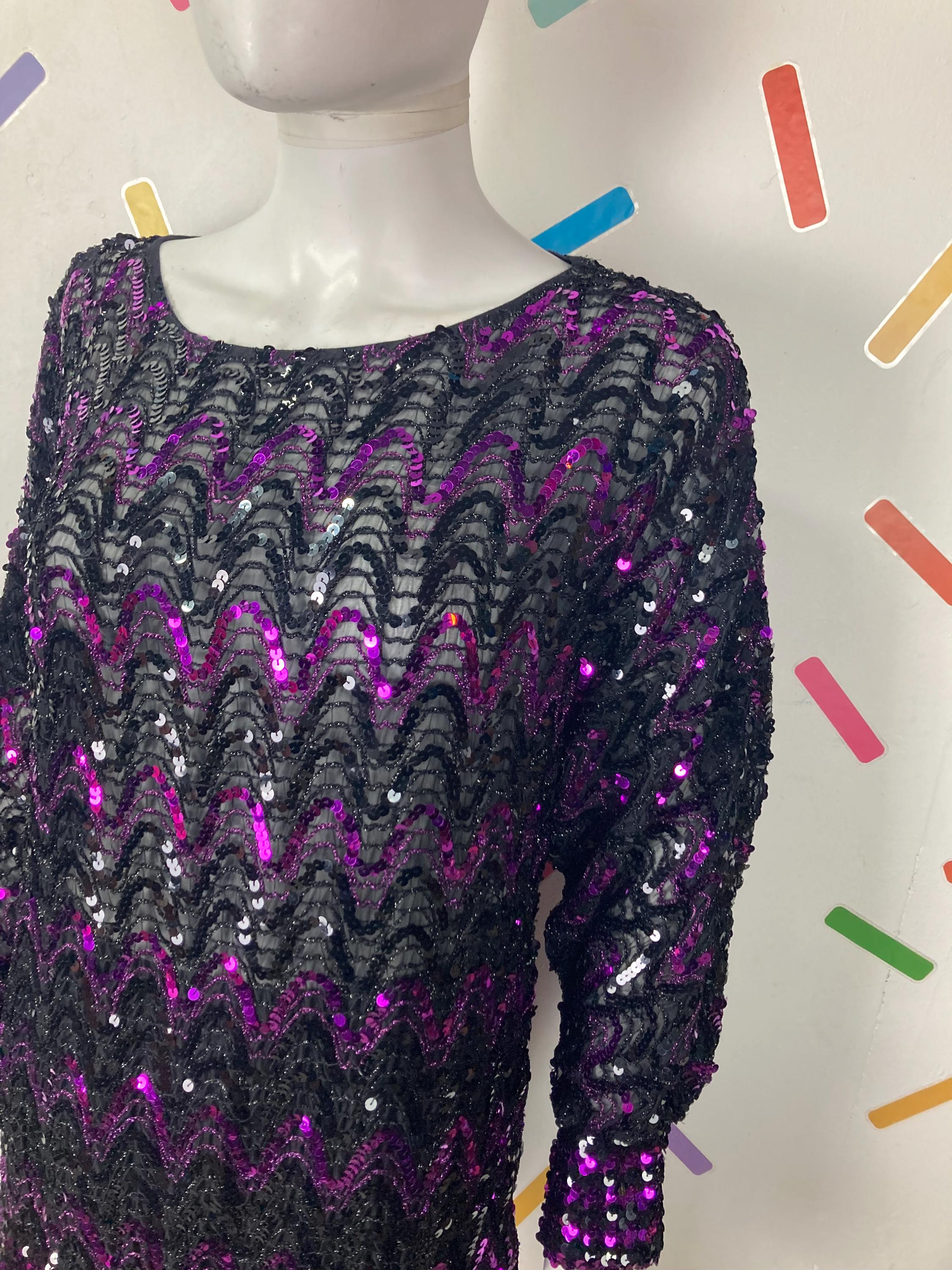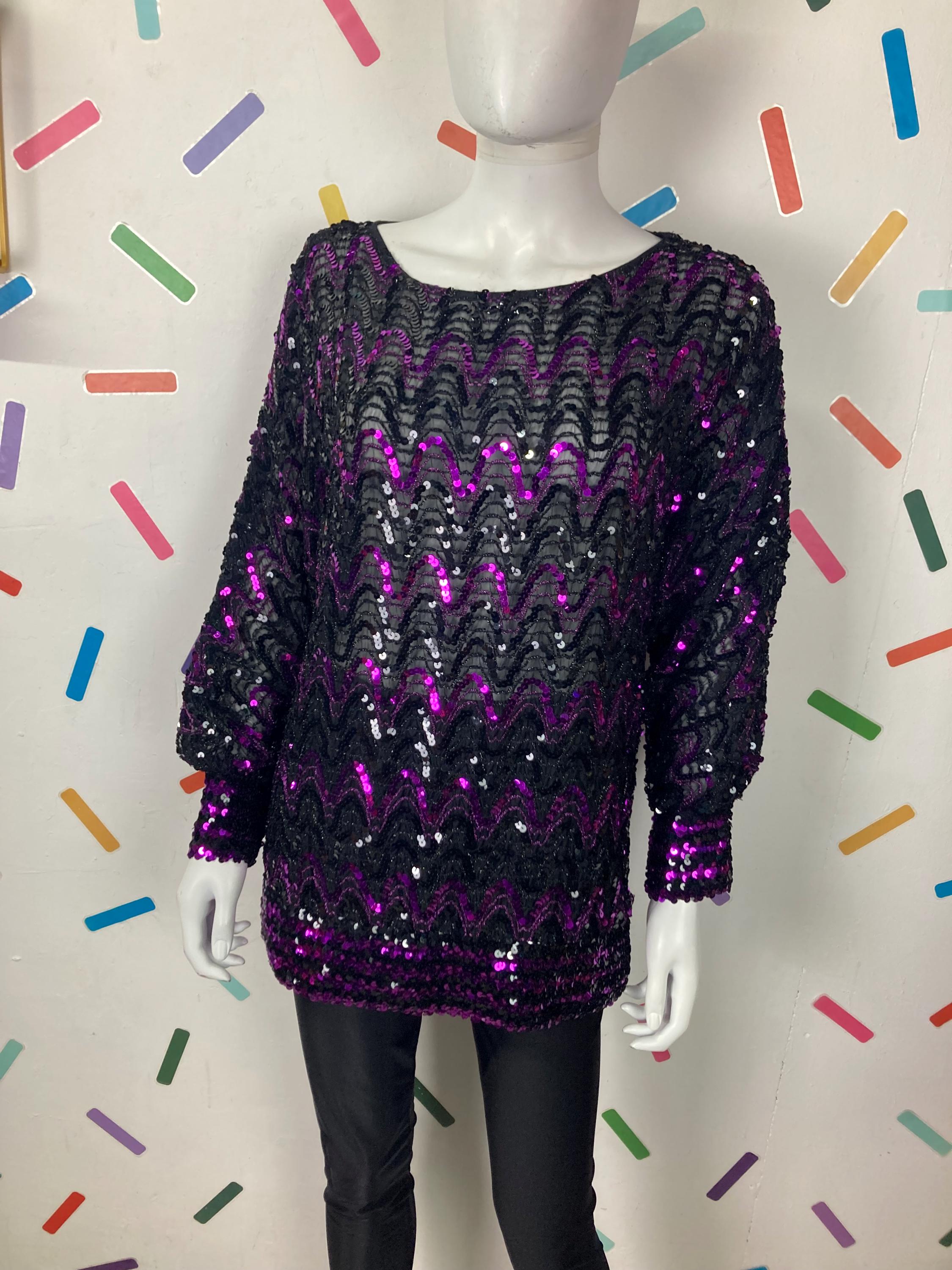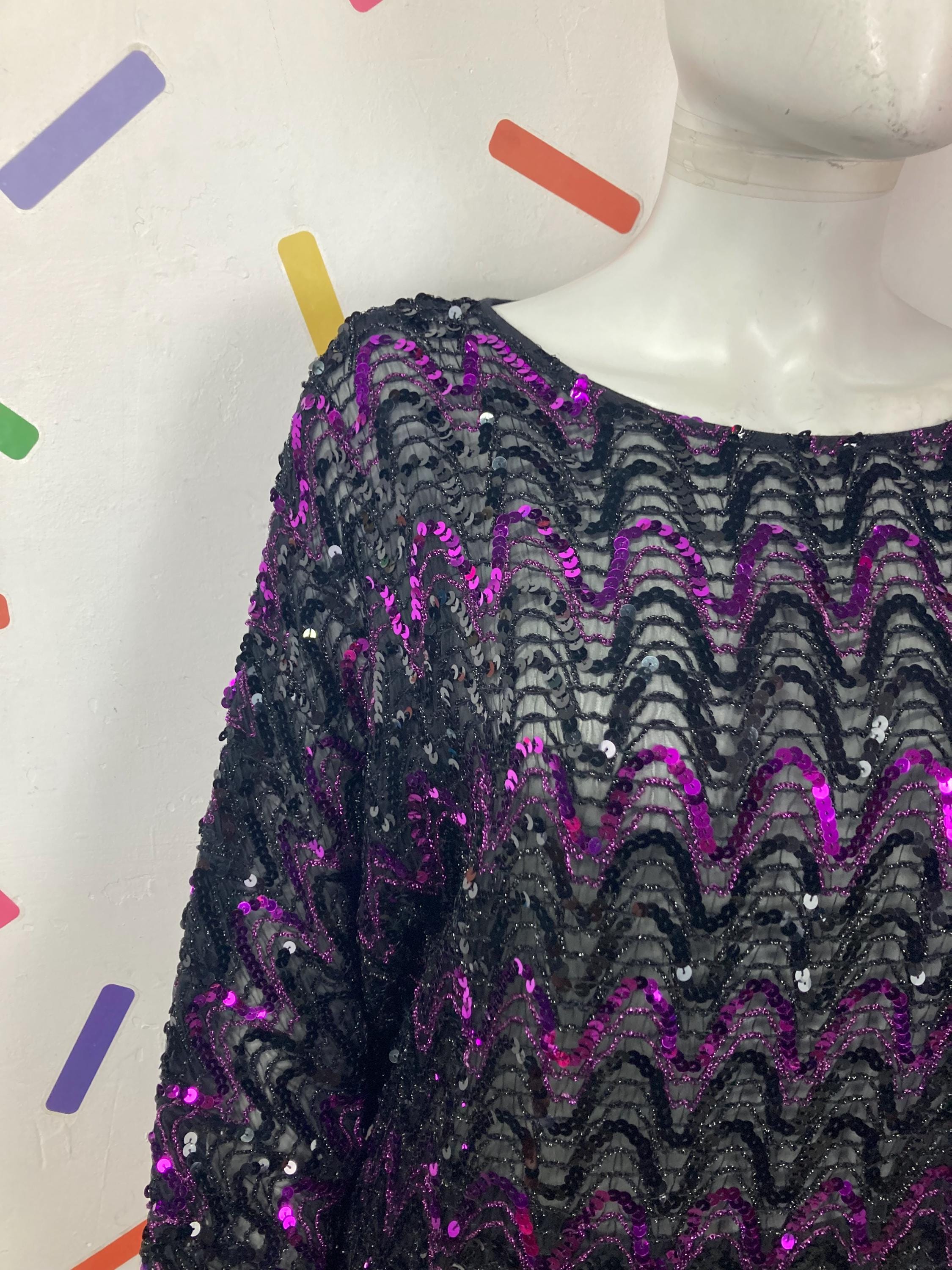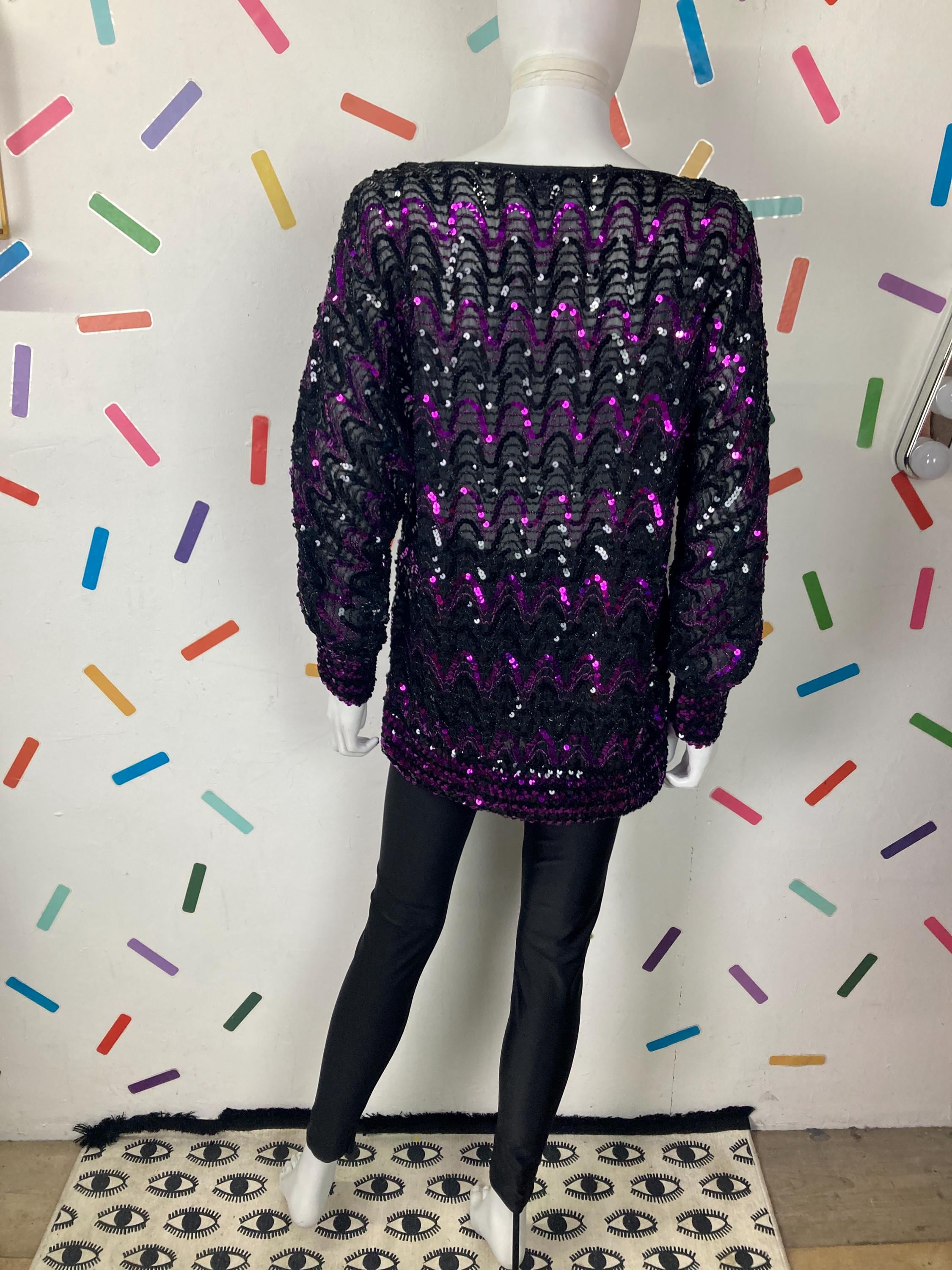 Other: This is a fabulous 80s sequin batwing top with pink details running through.