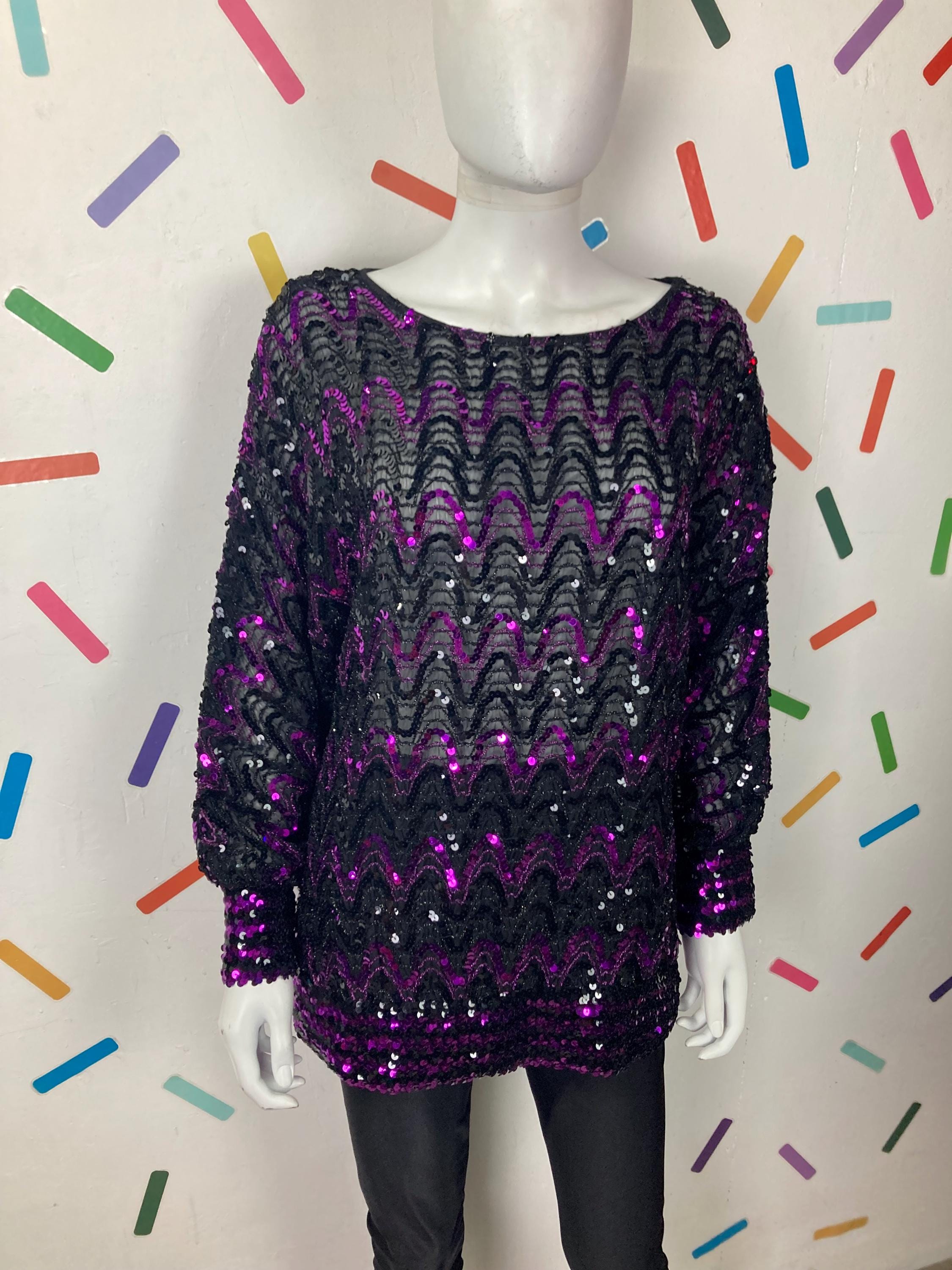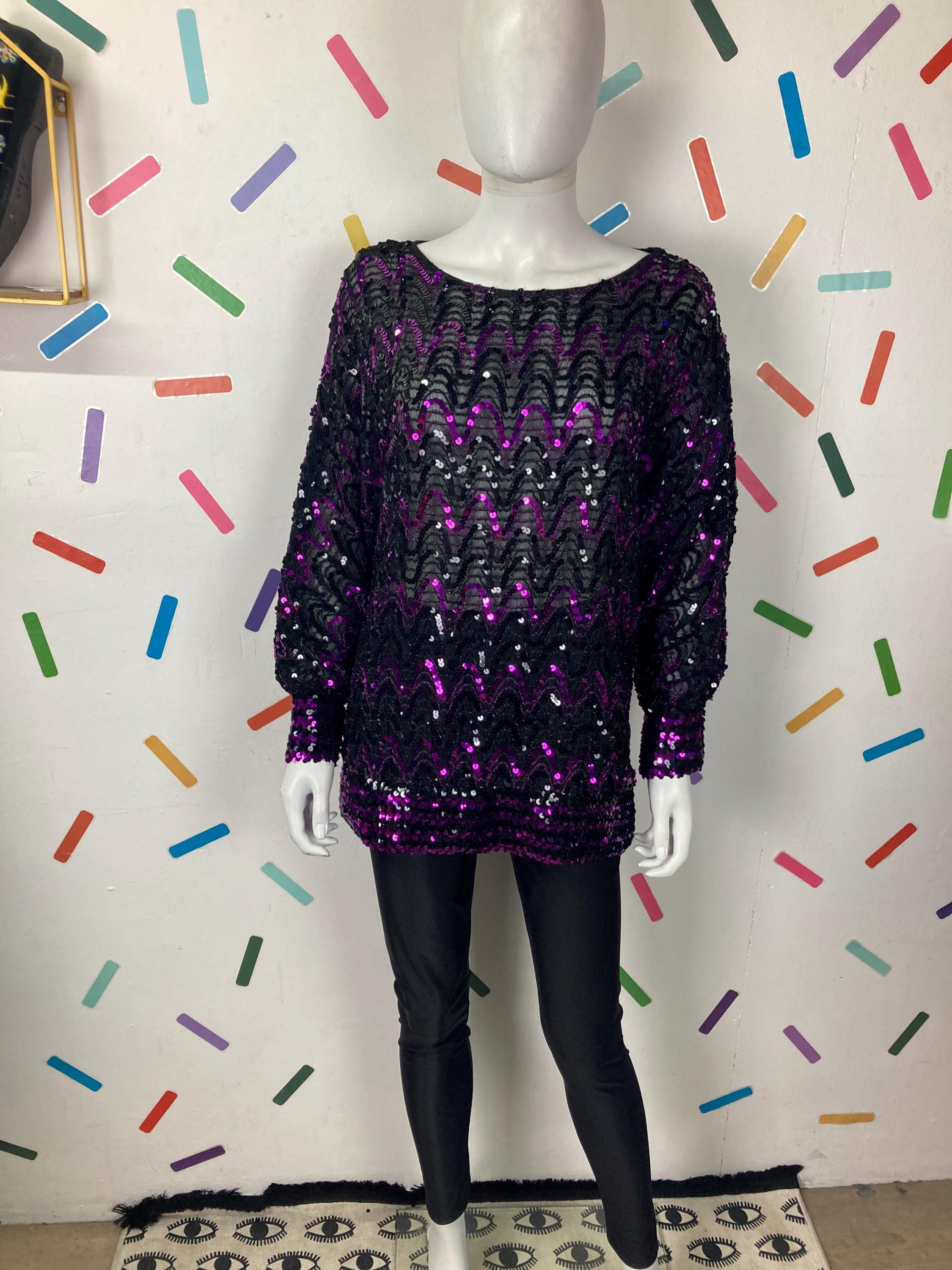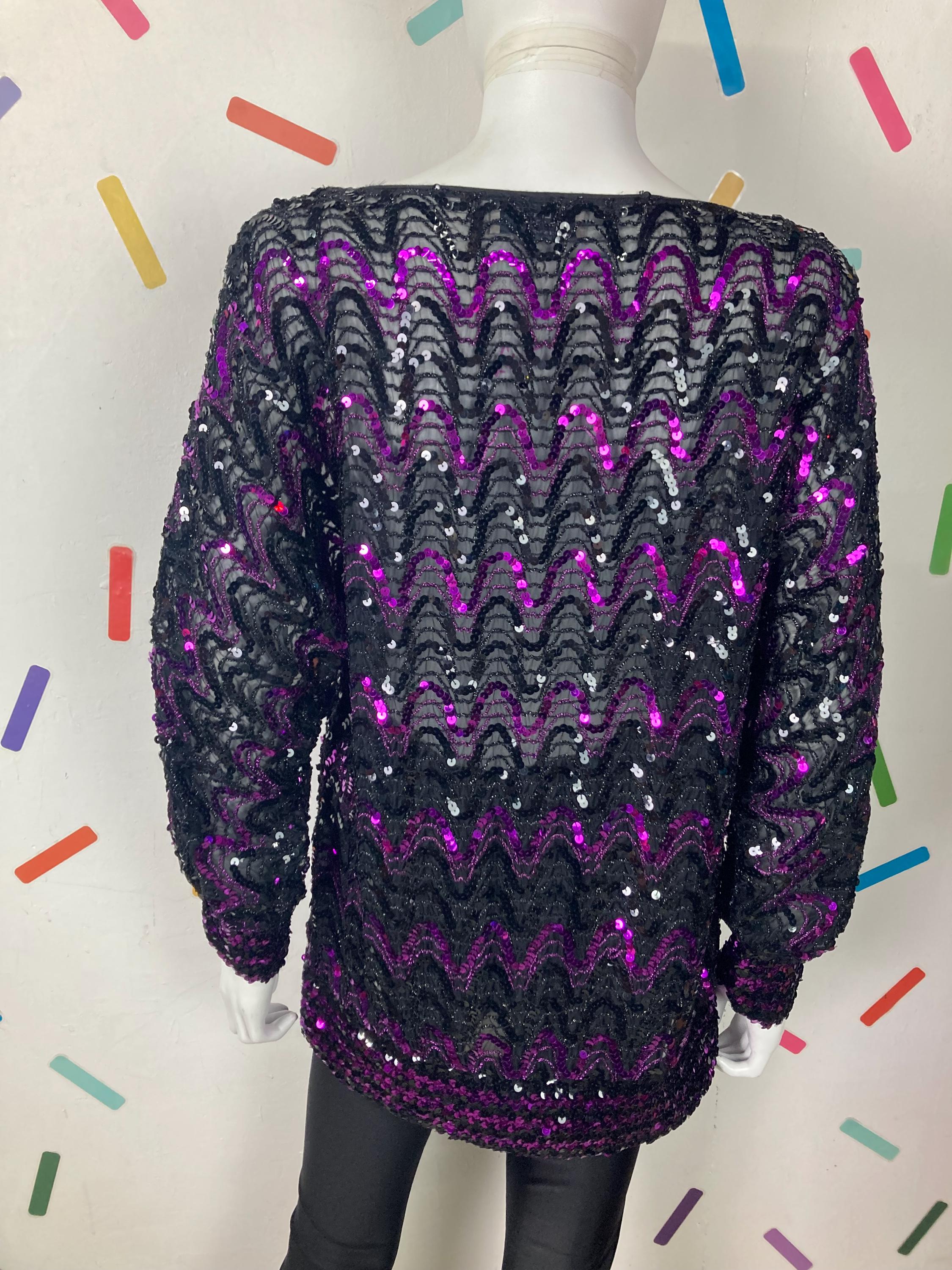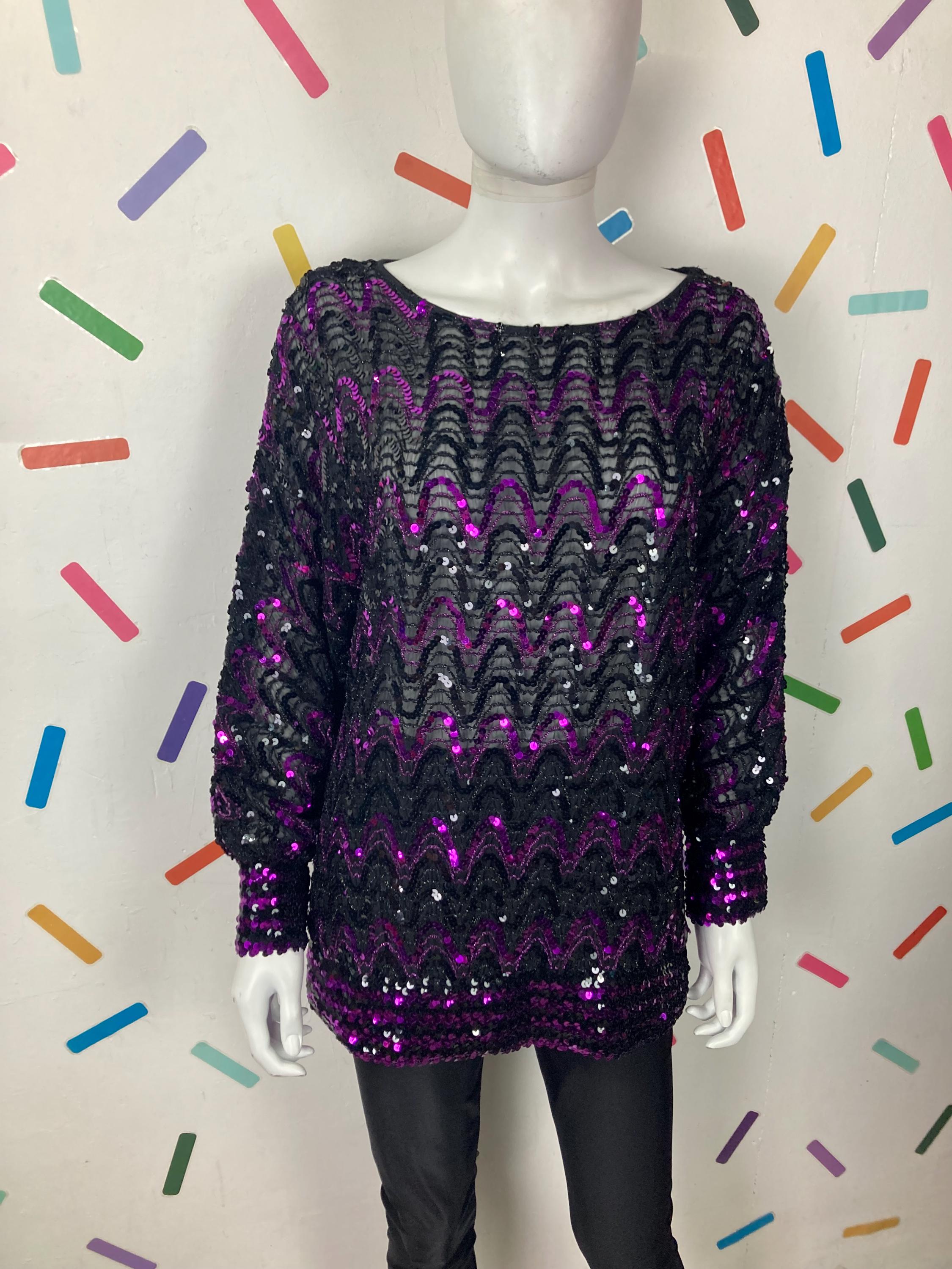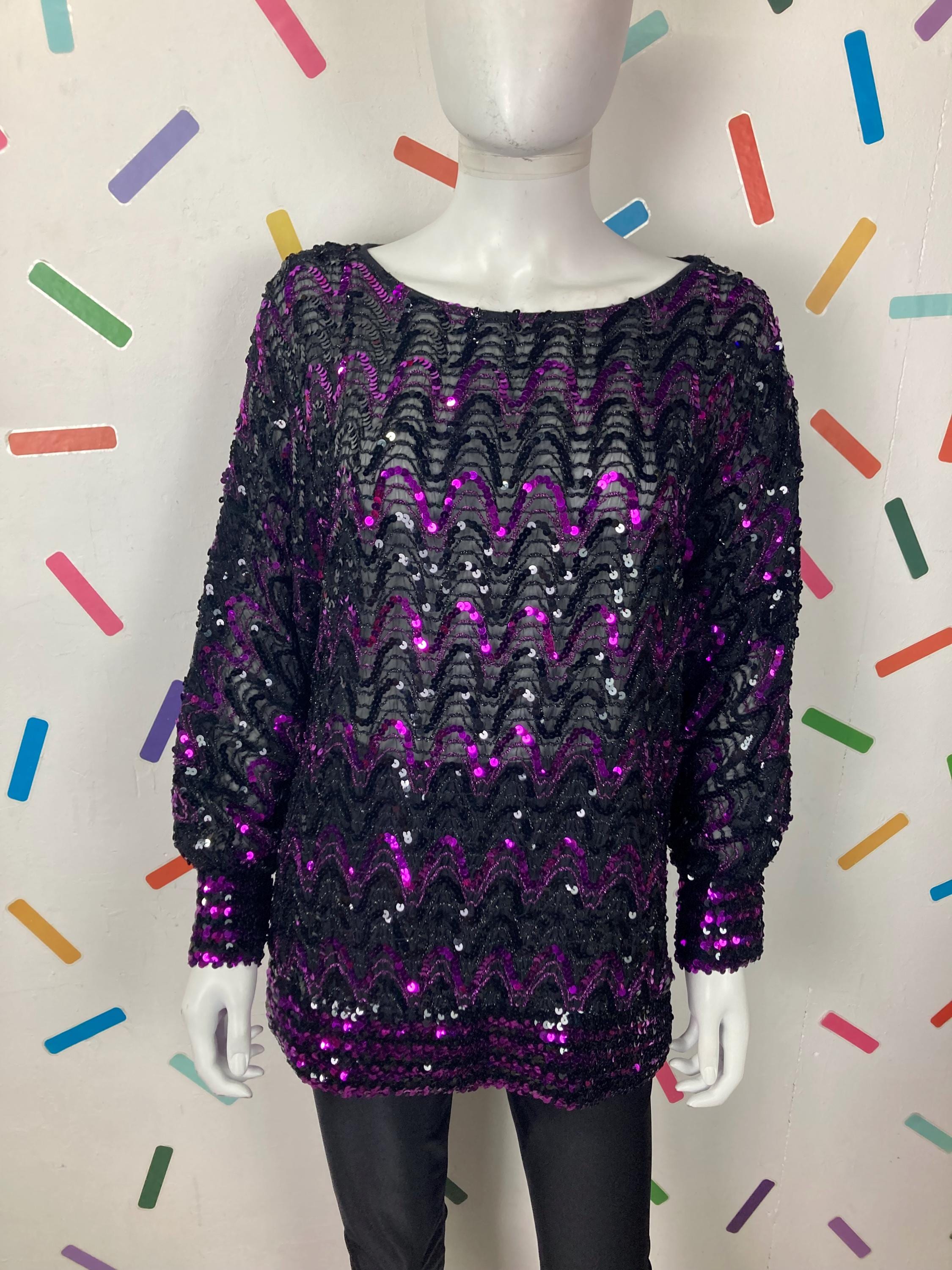 Other: This is a fabulous 80s sequin batwing top with pink details running through.