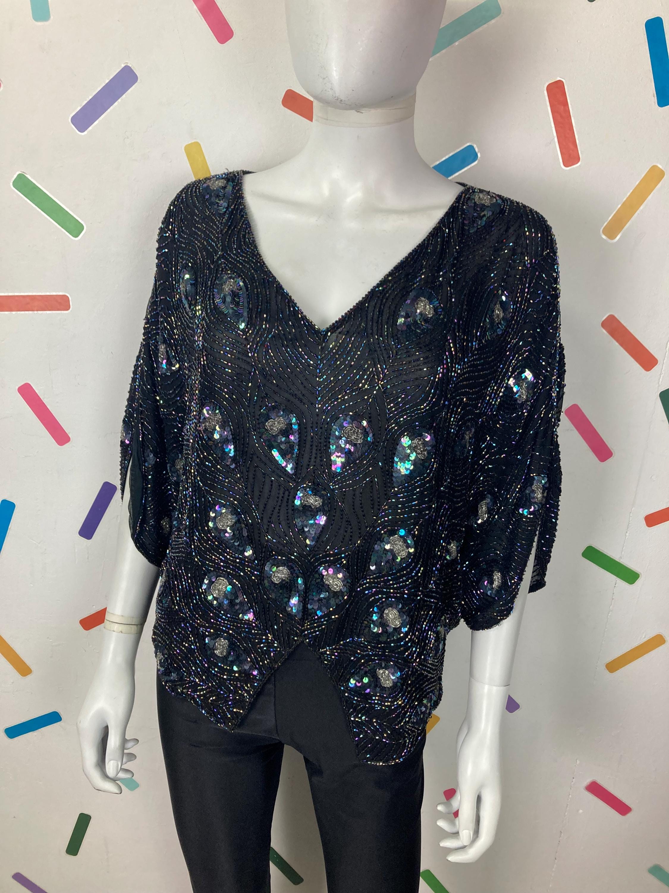 Other: This is a fabulous 80s sequin / bead cape design top.