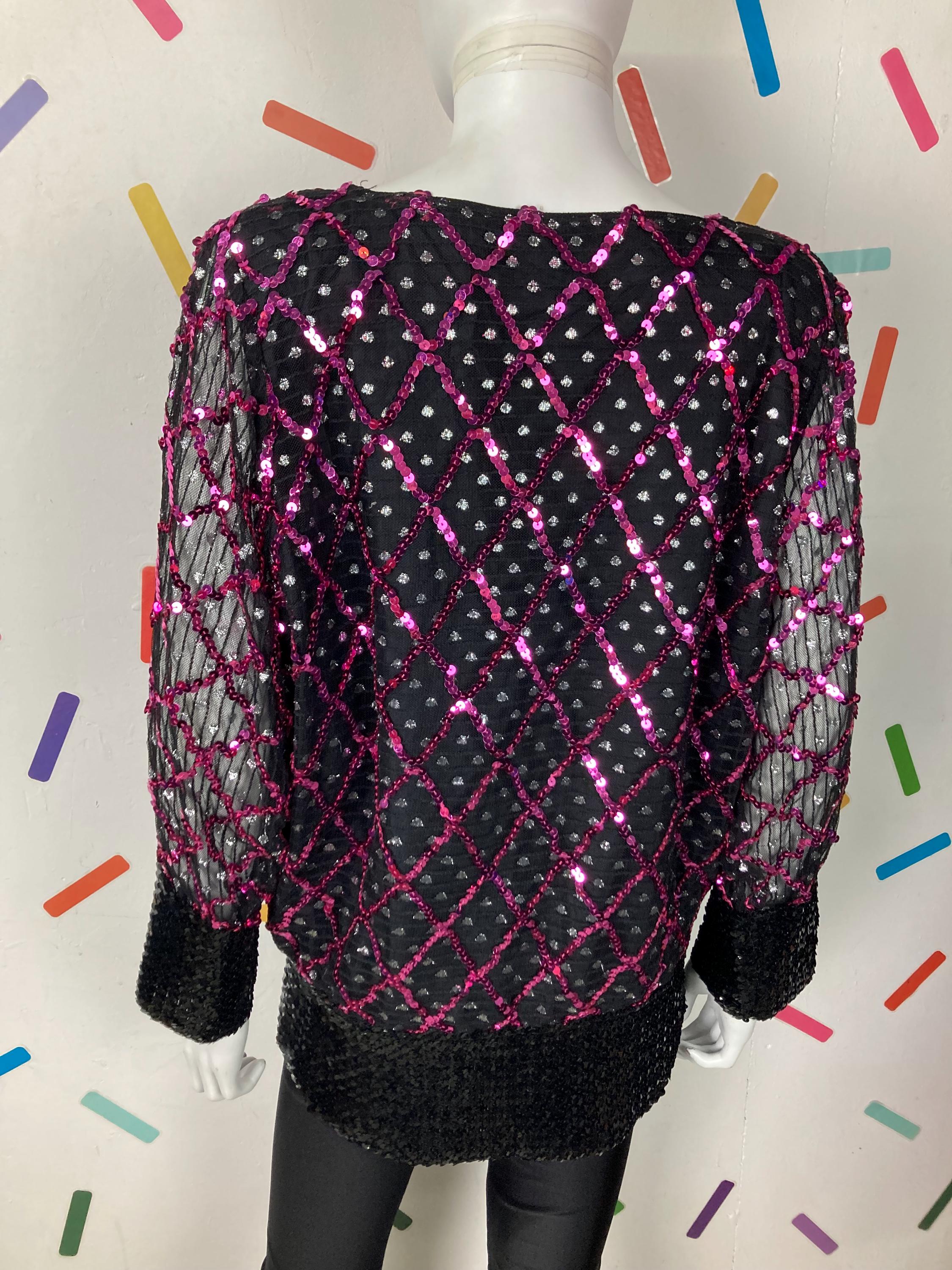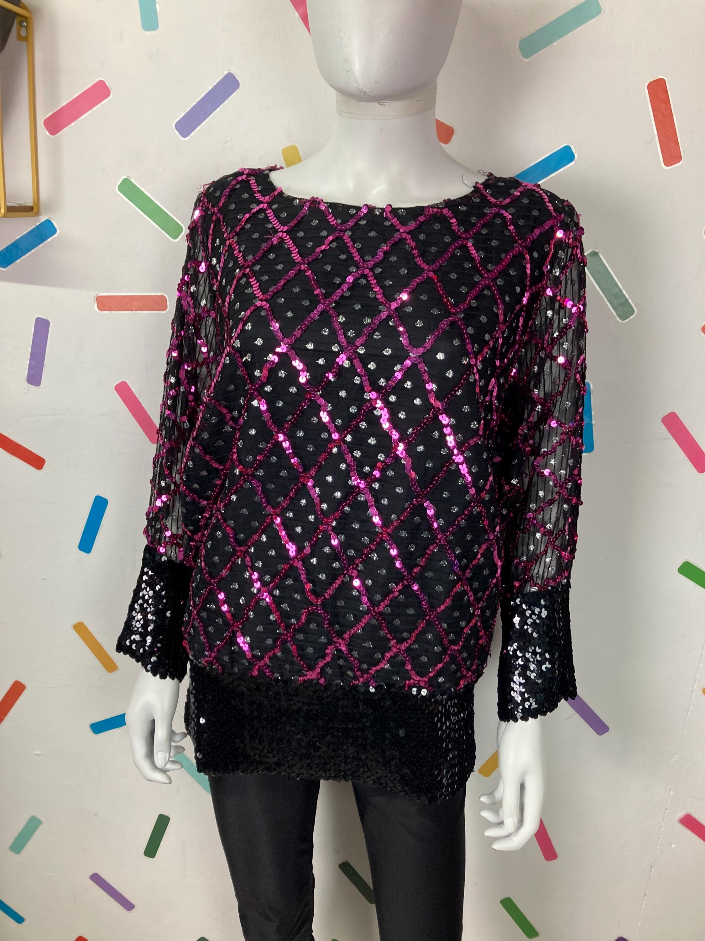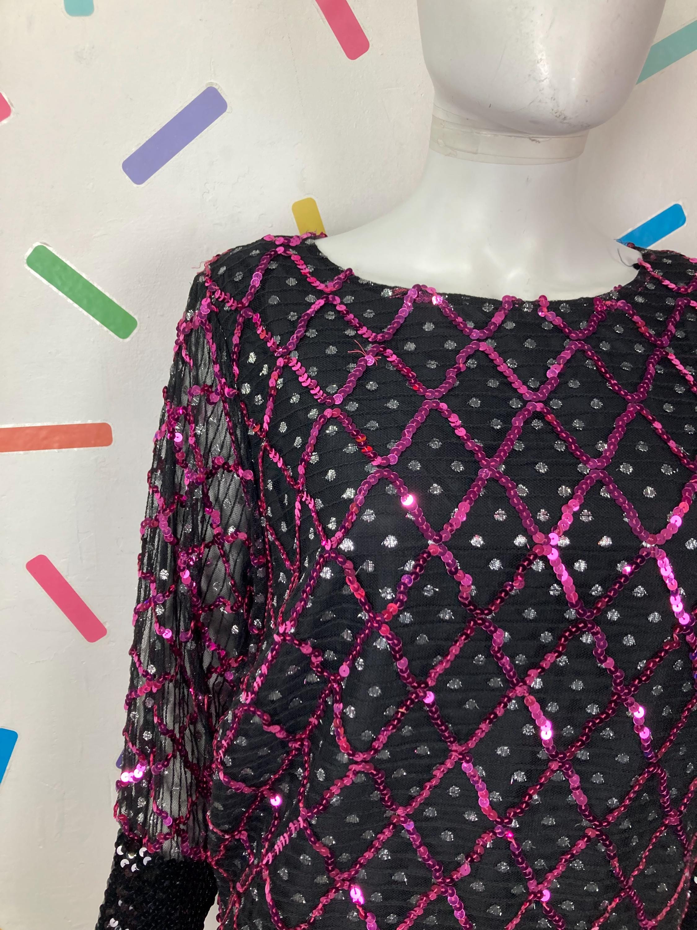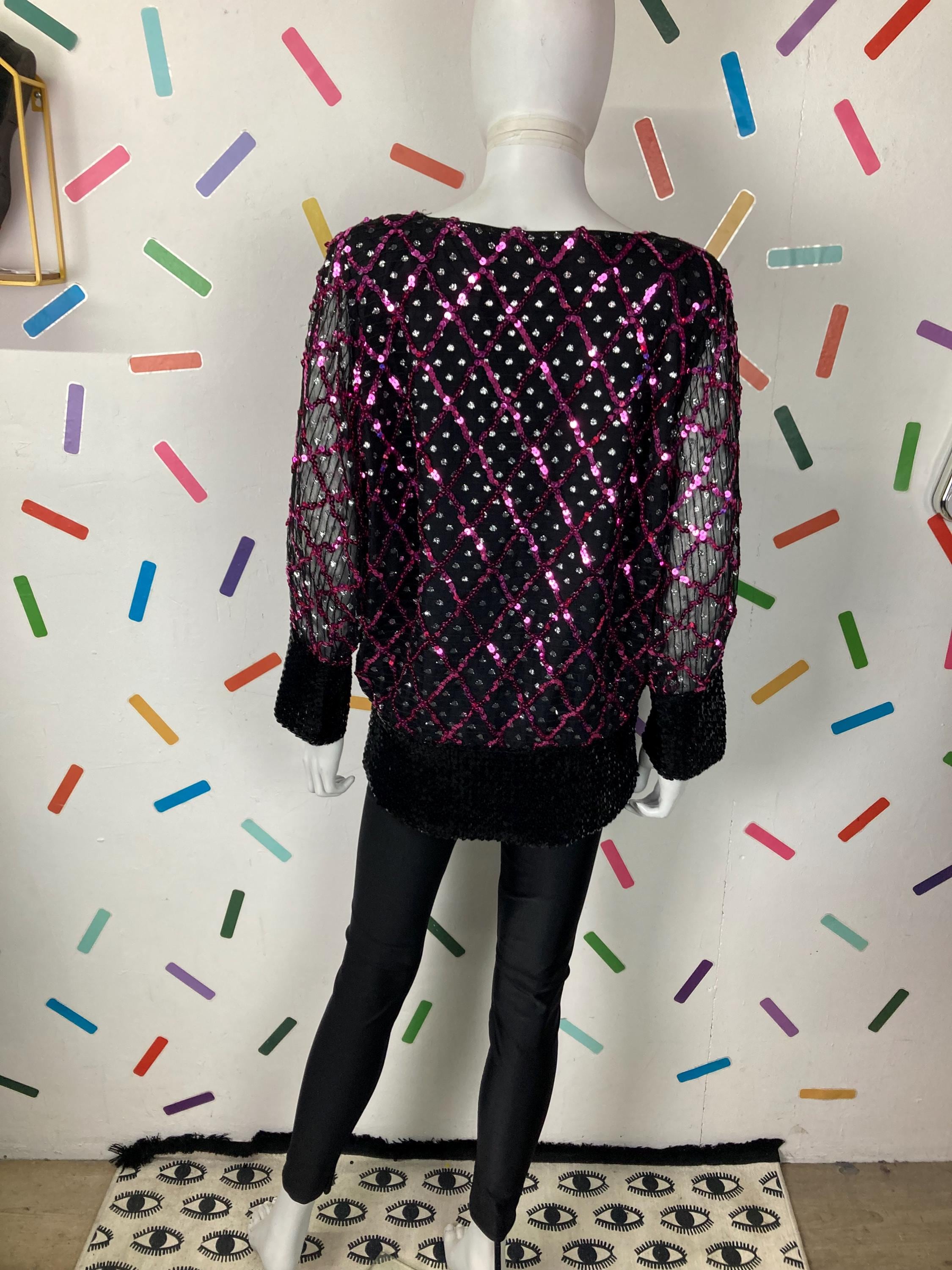Other: This is a fabulous 80s sequin batwing top with pink details running through.