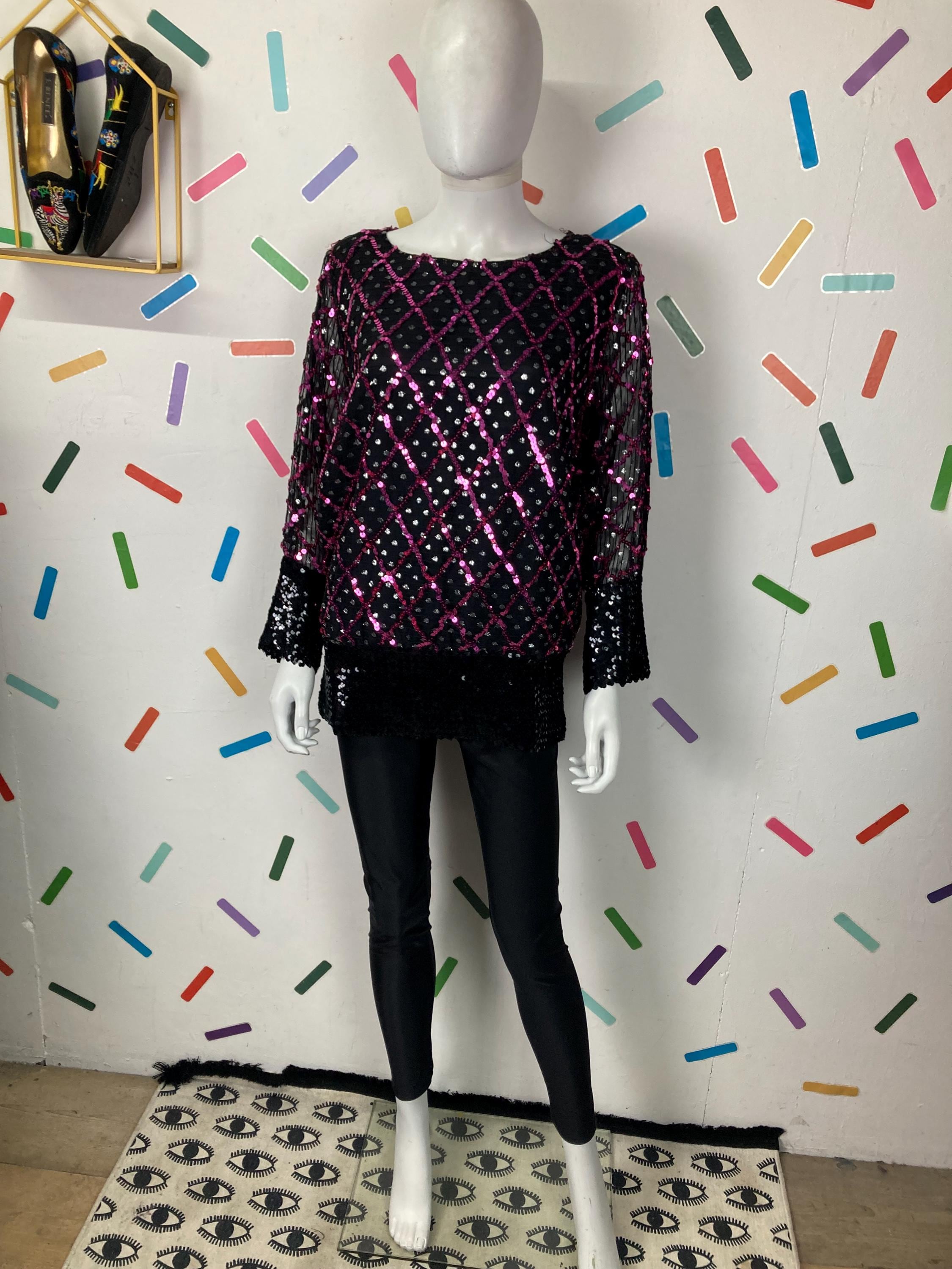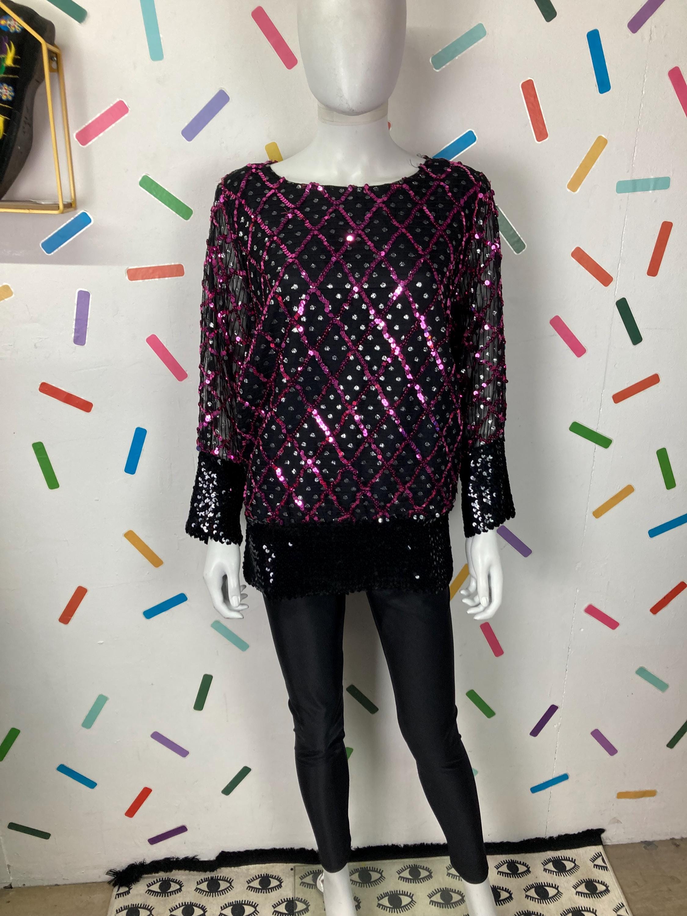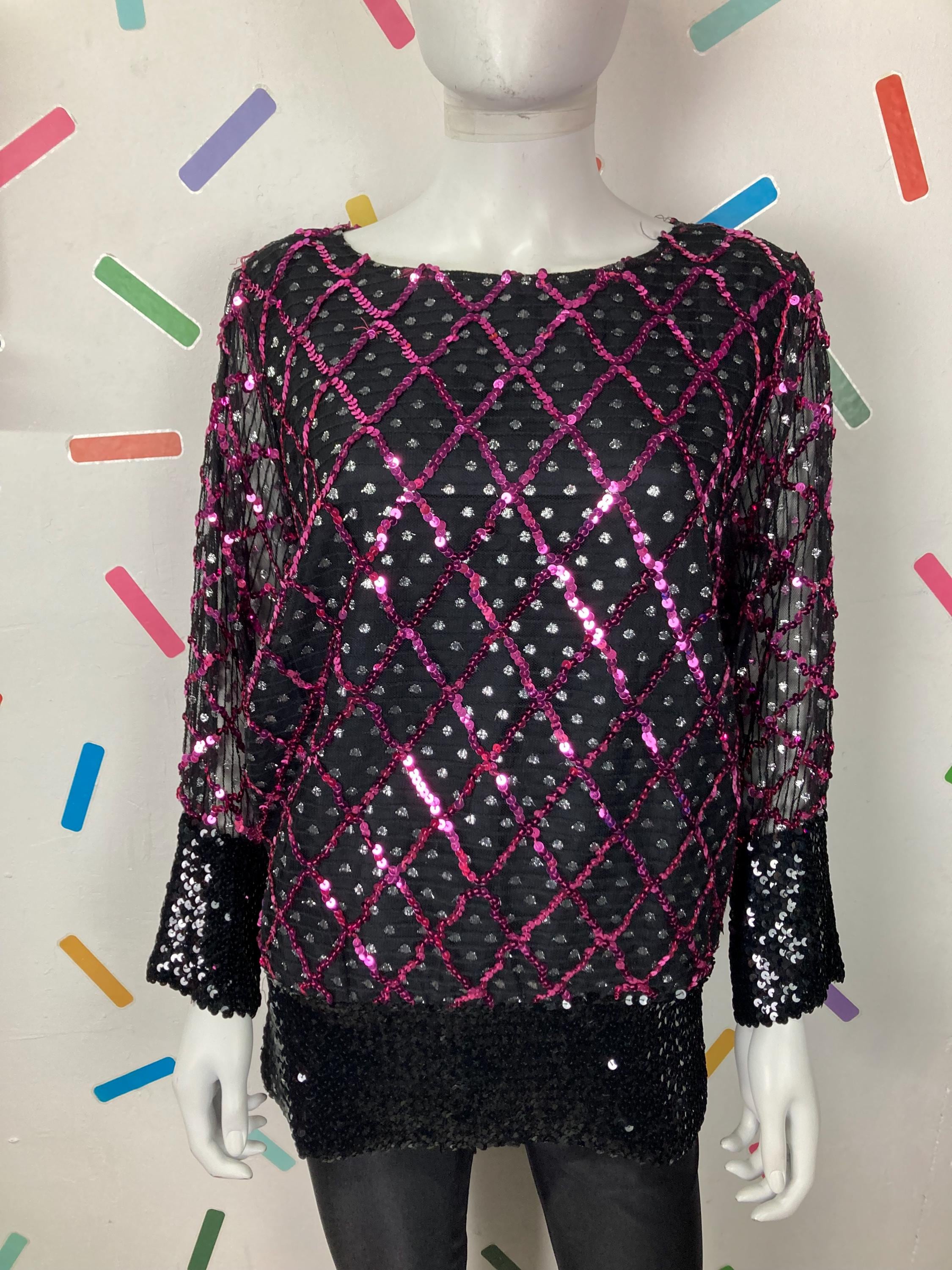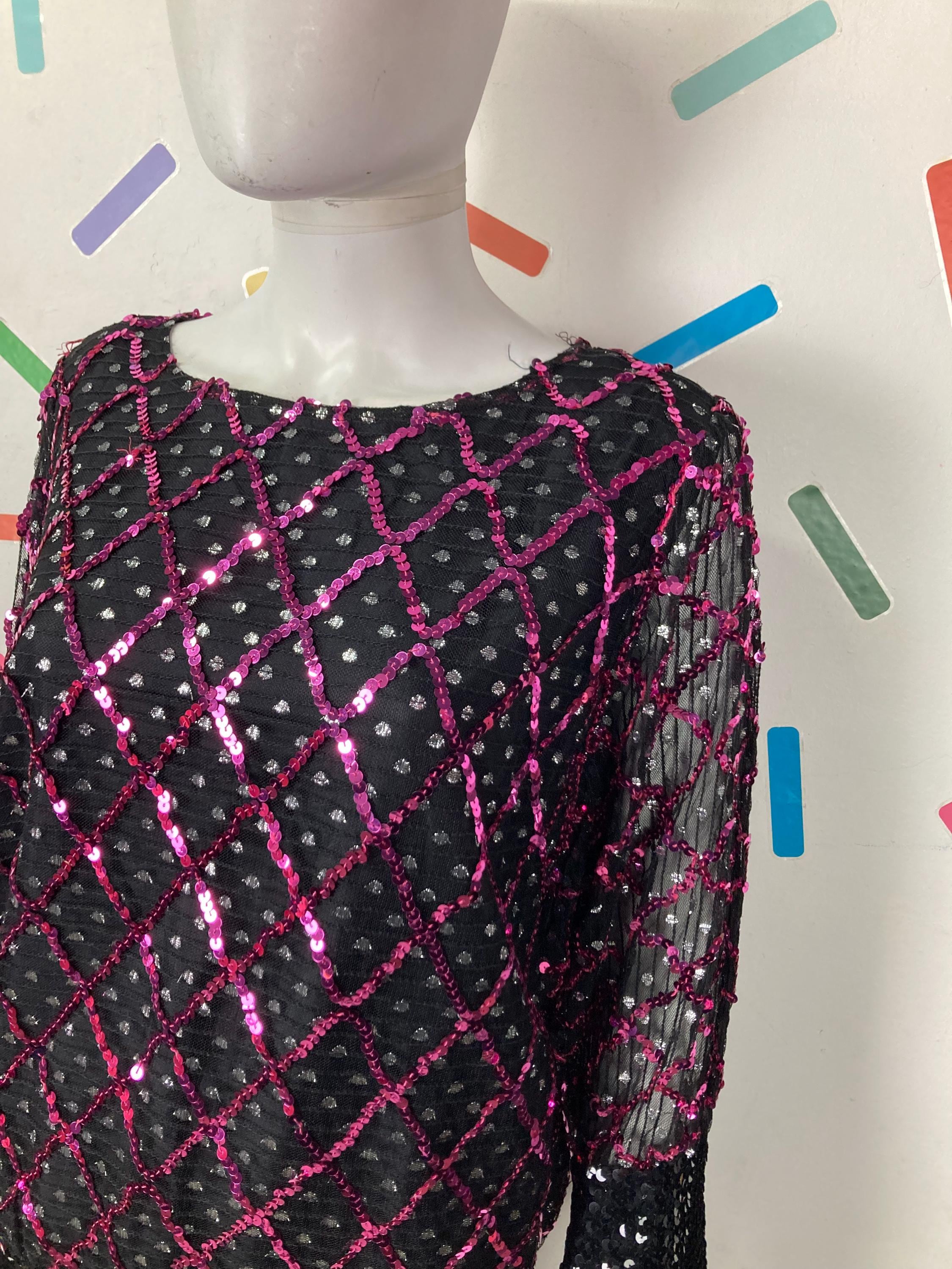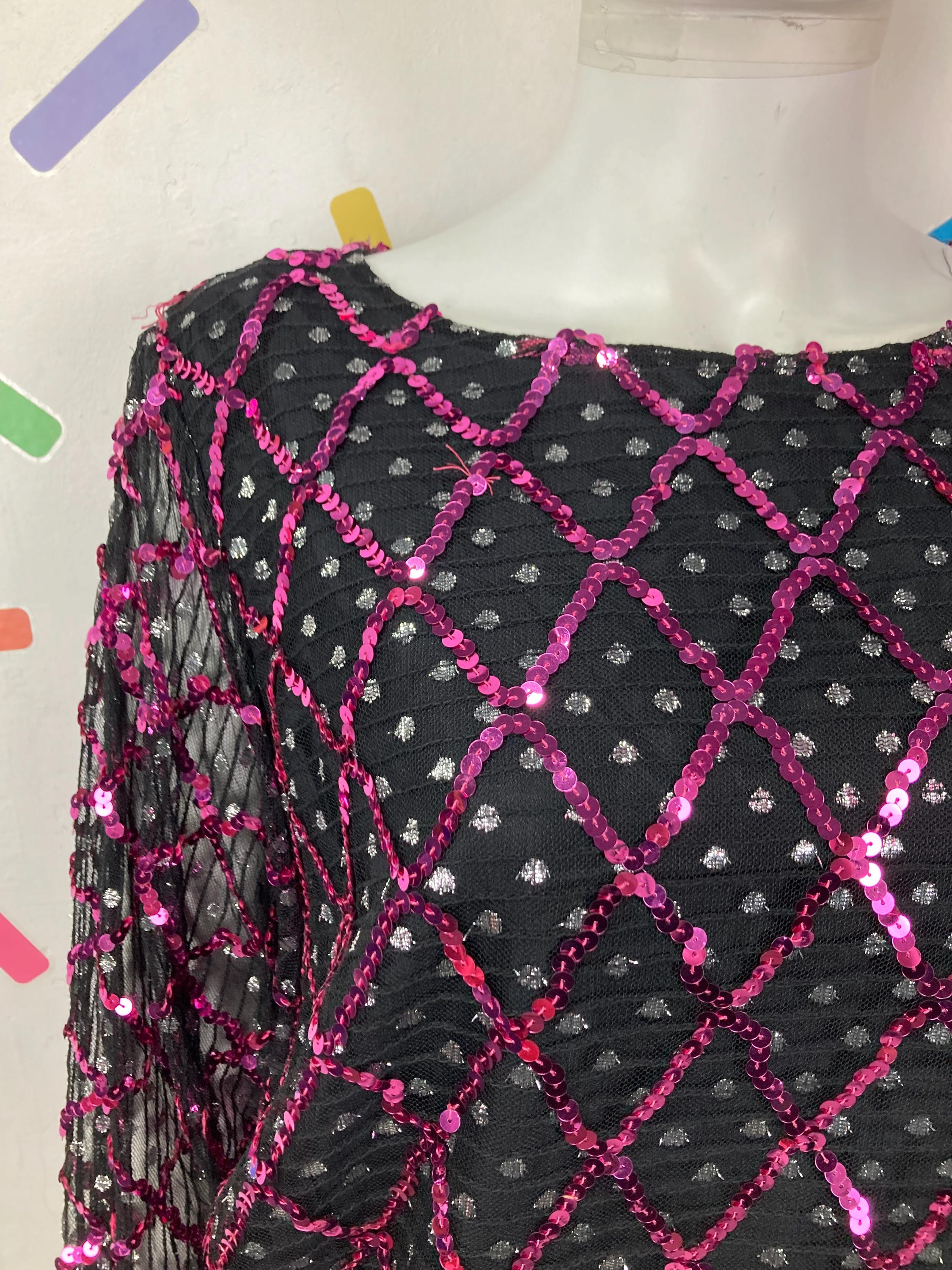 Other: This is a fabulous 80s sequin batwing top with pink details running through.