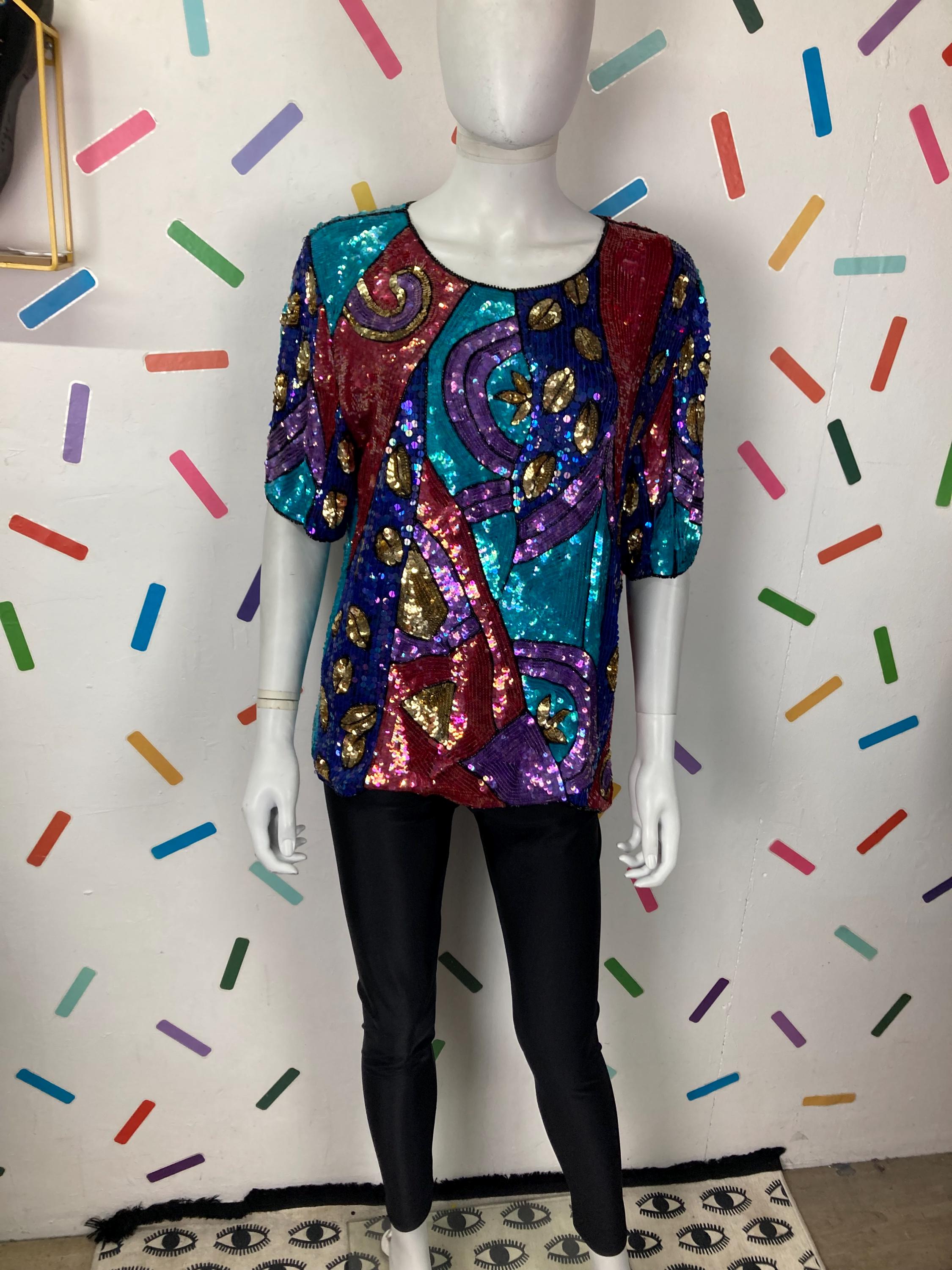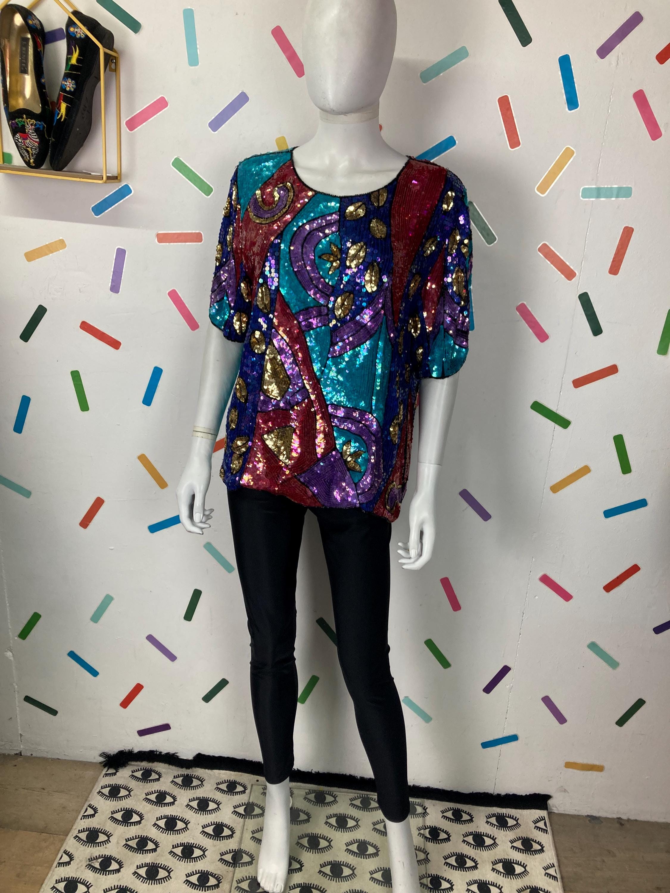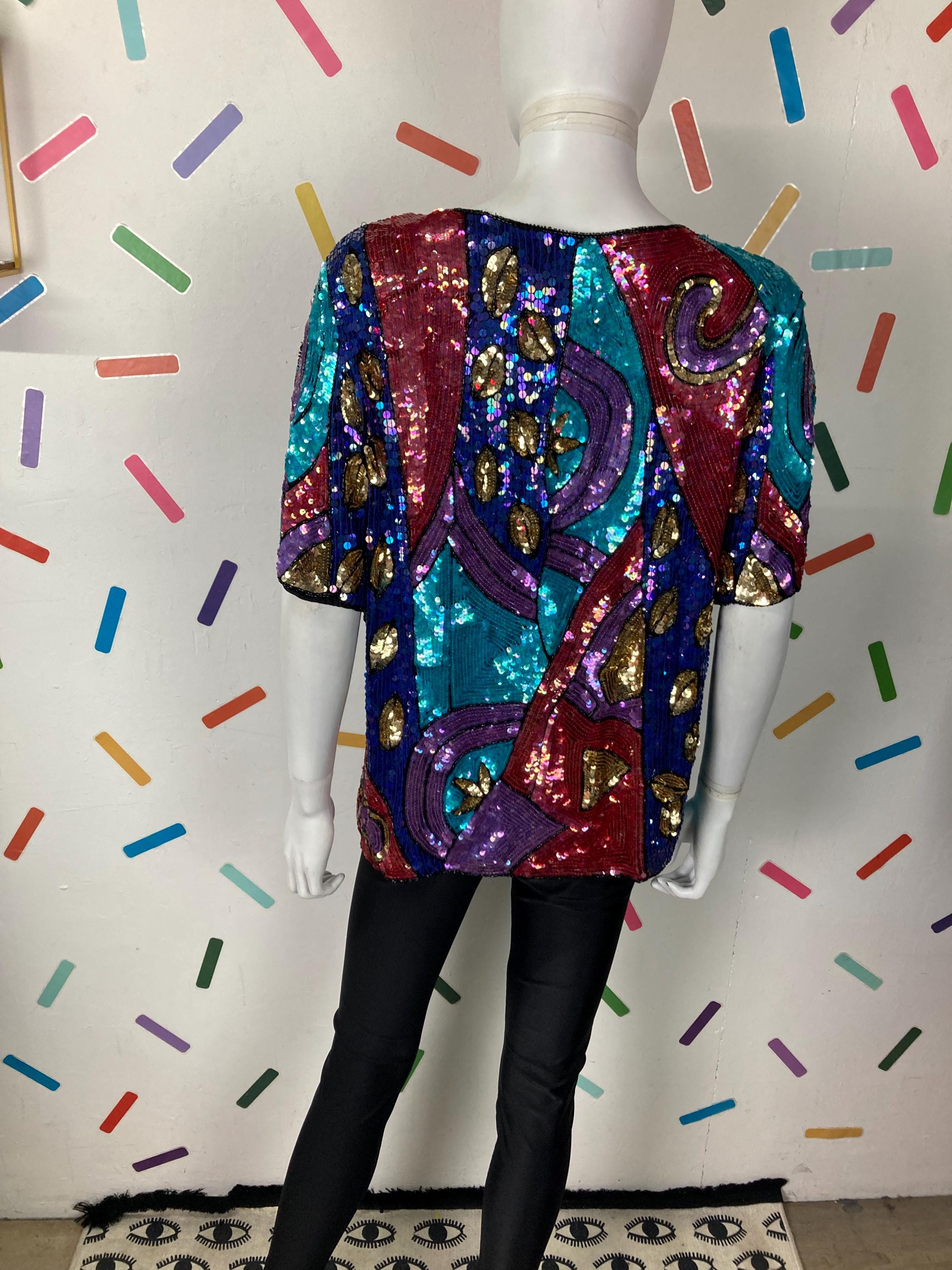 Other: This is a fabulous 80s sequin geometric design top. Fab item!