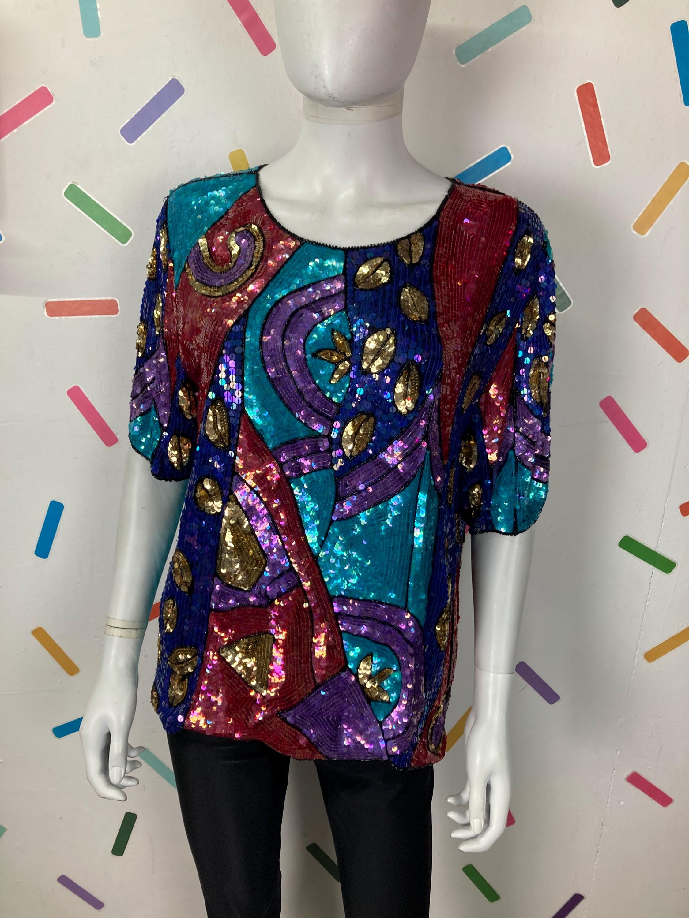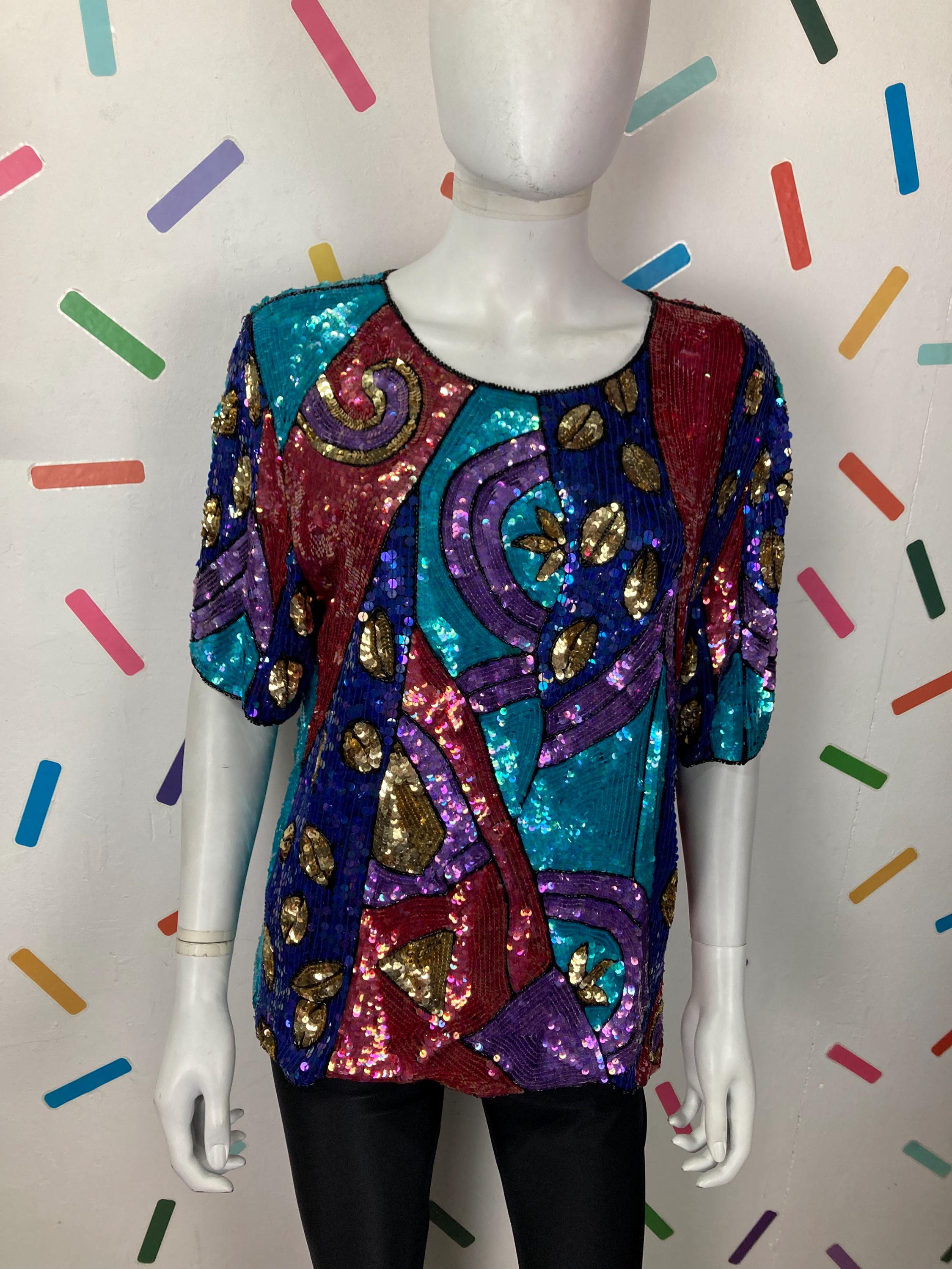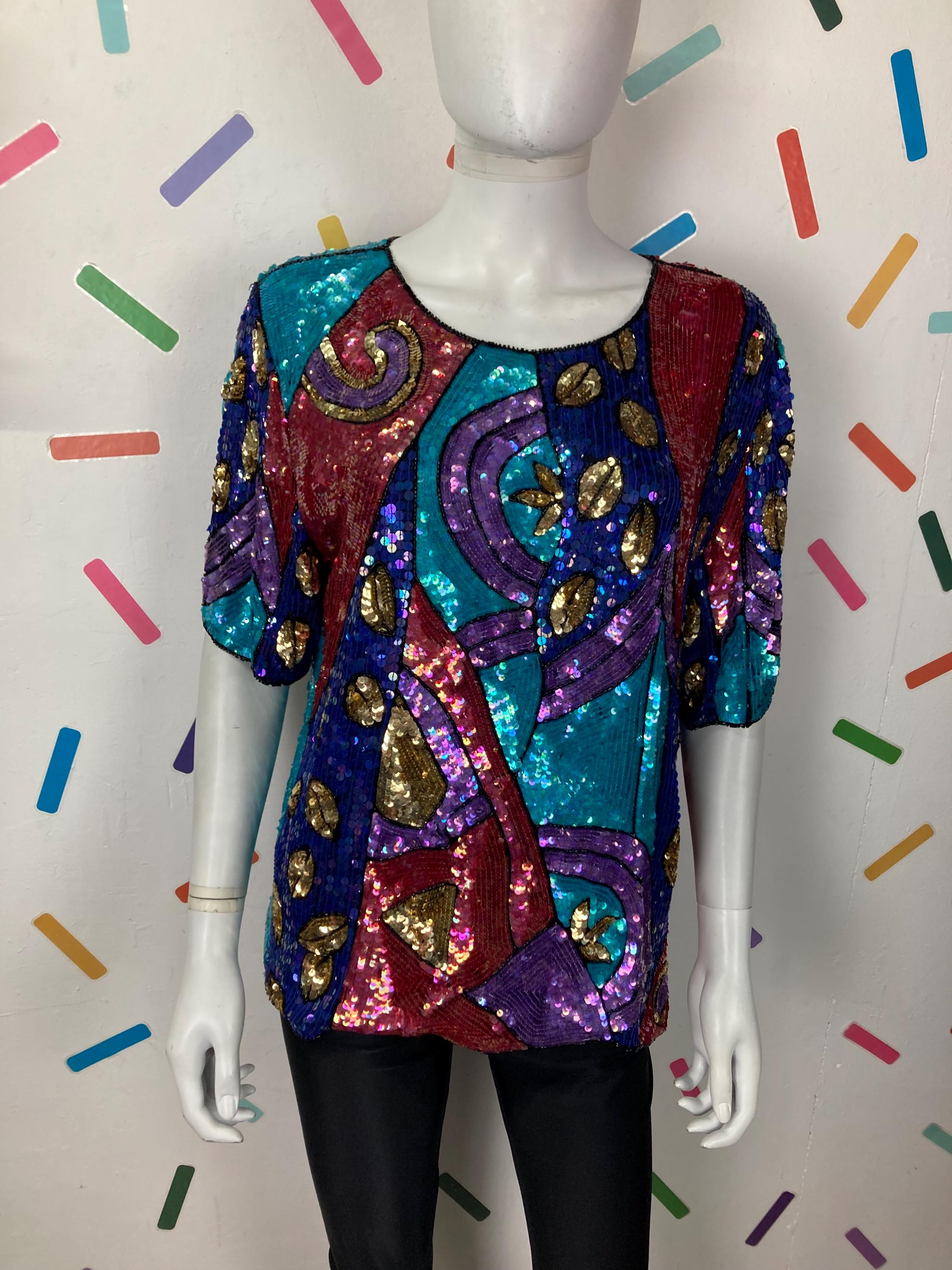 Other: This is a fabulous 80s sequin geometric design top. Fab item!