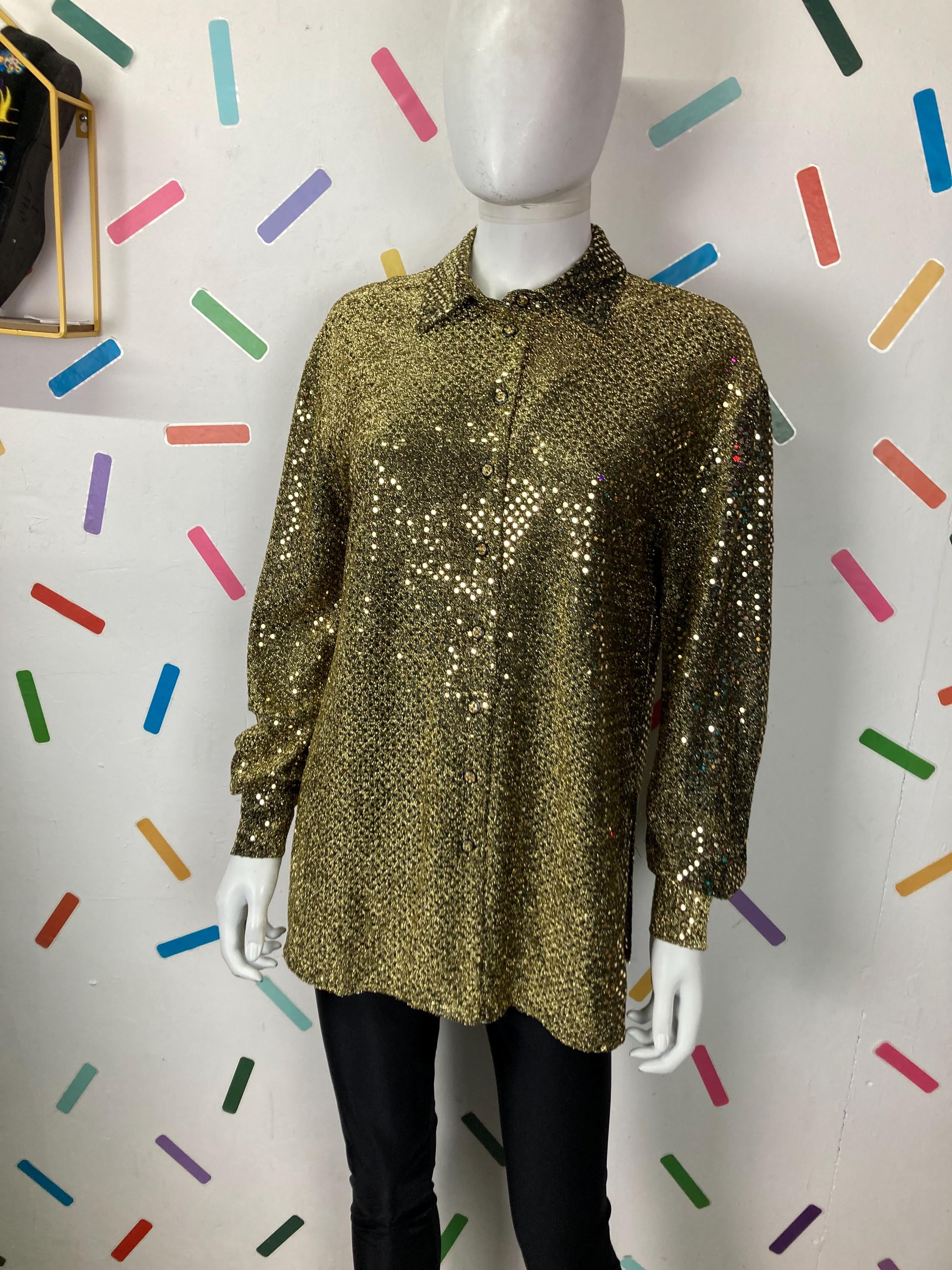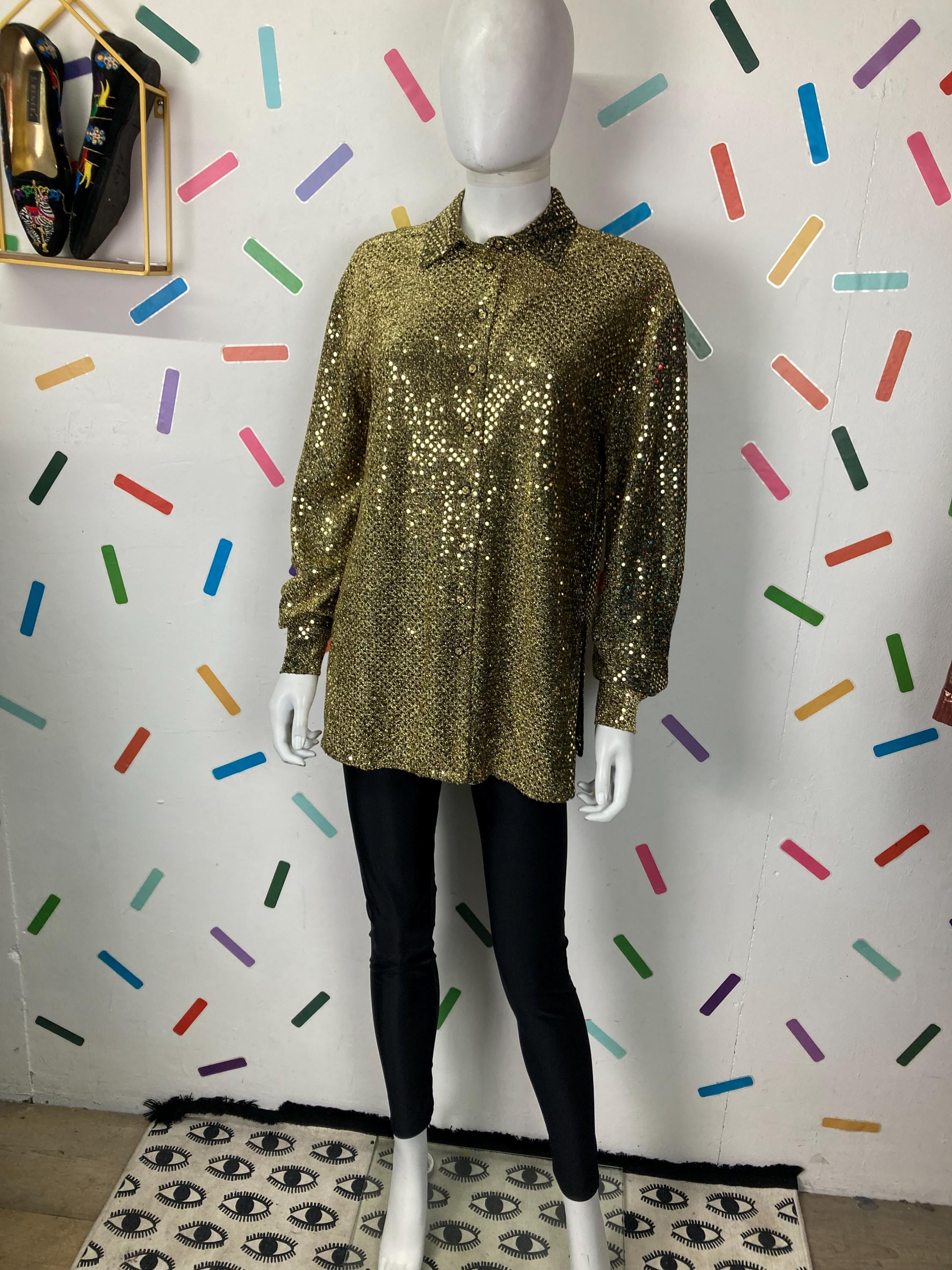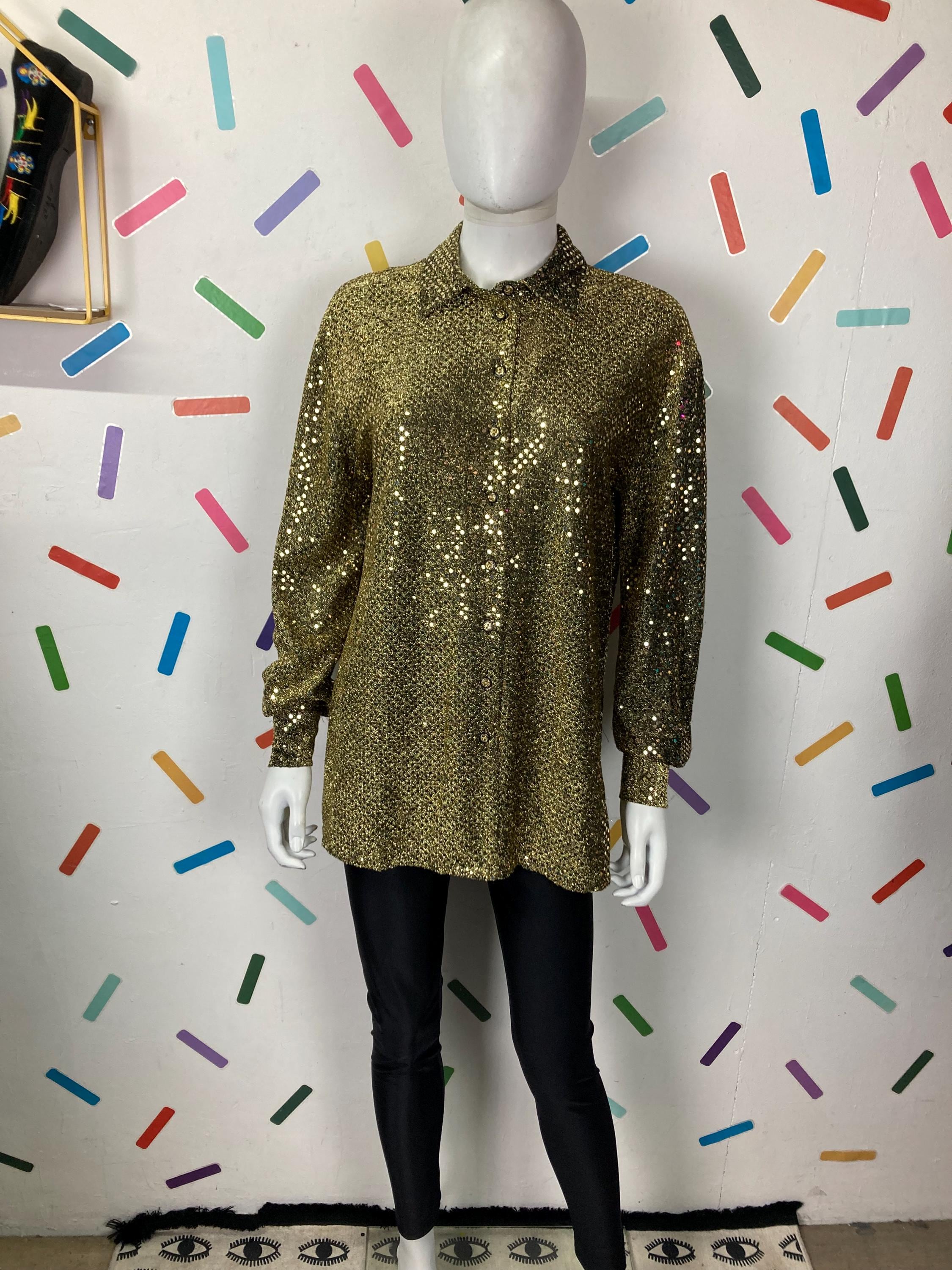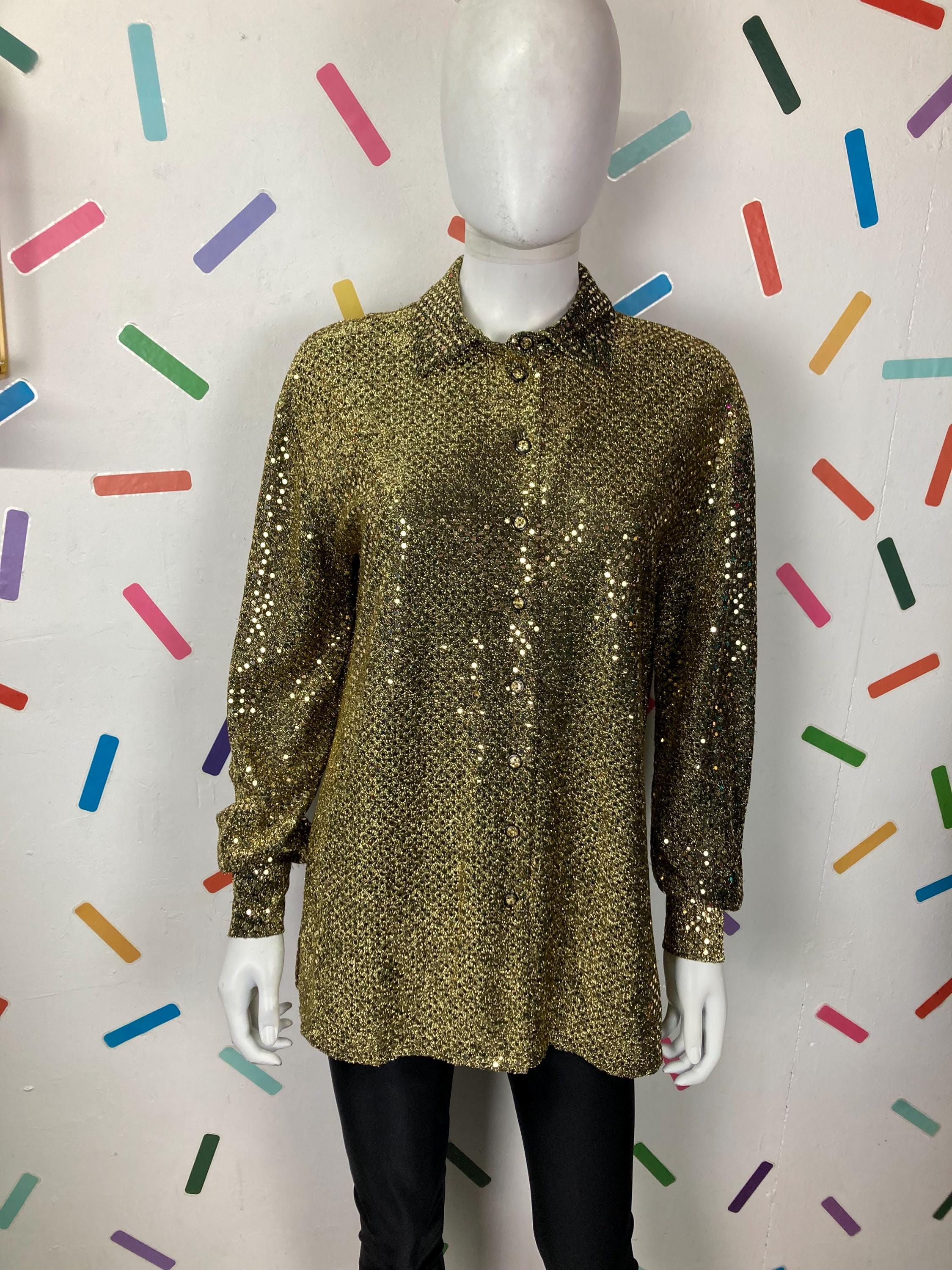 Other: This is a fabulous 80s yellow matellic sequin blouse.