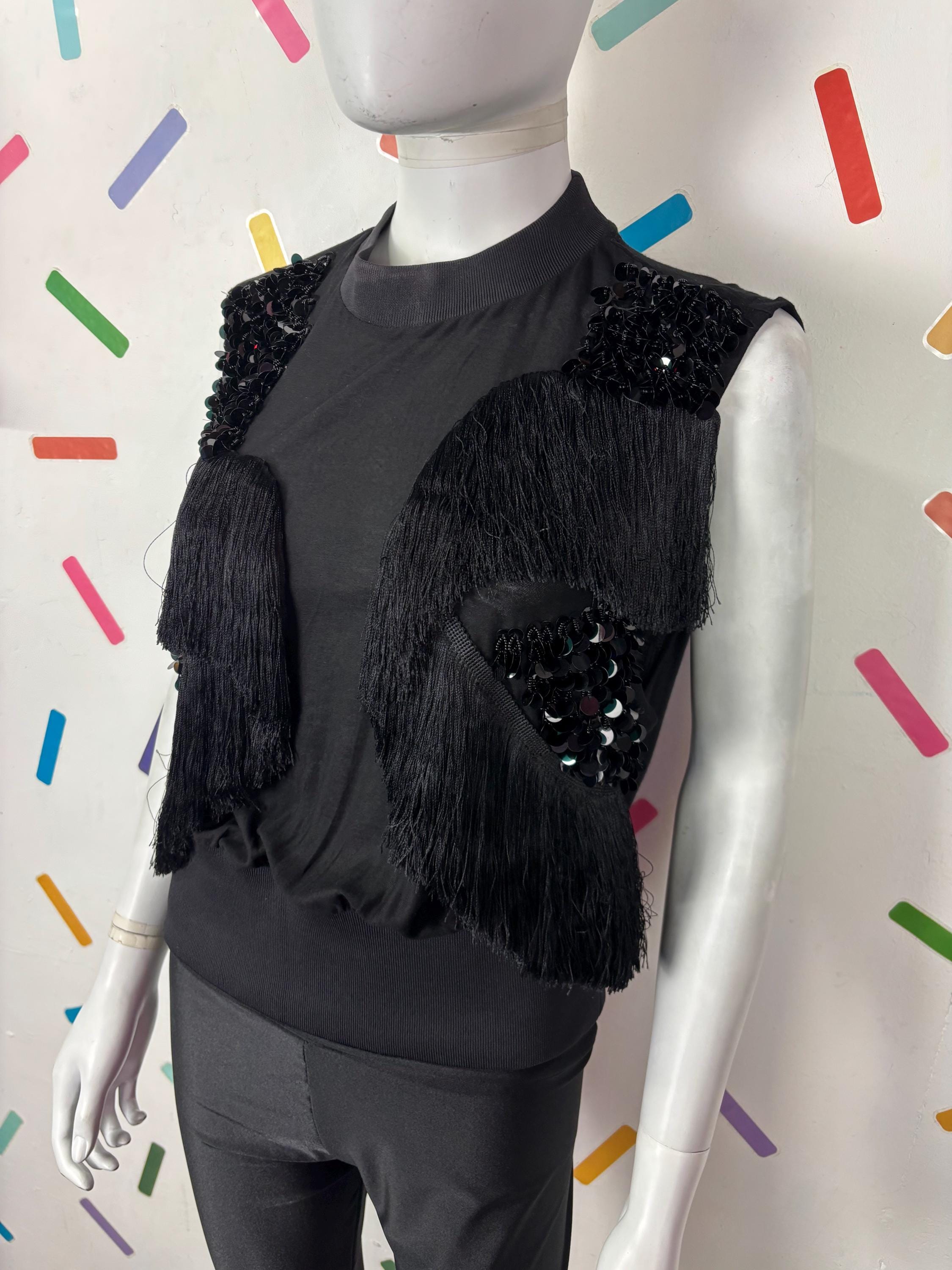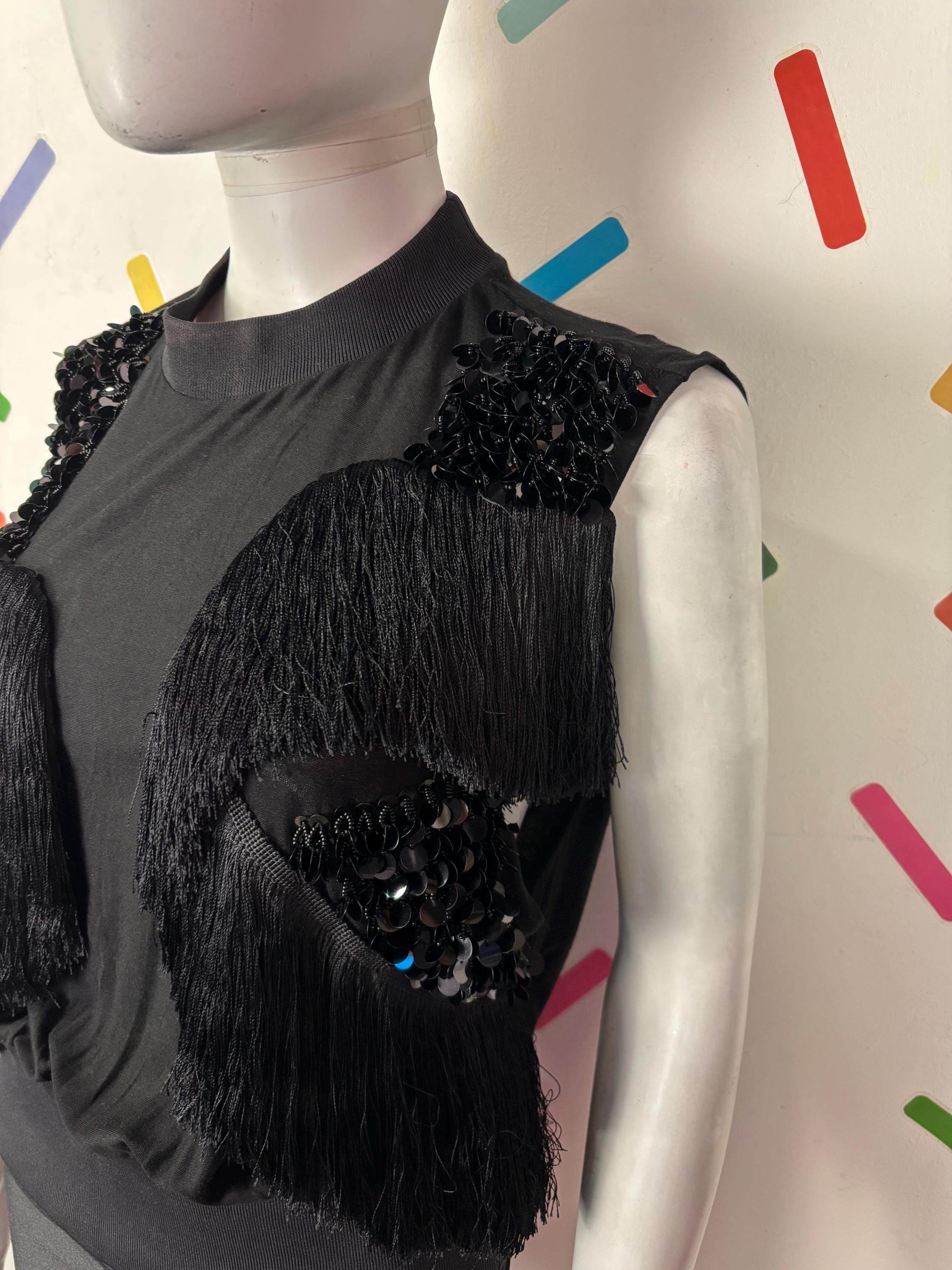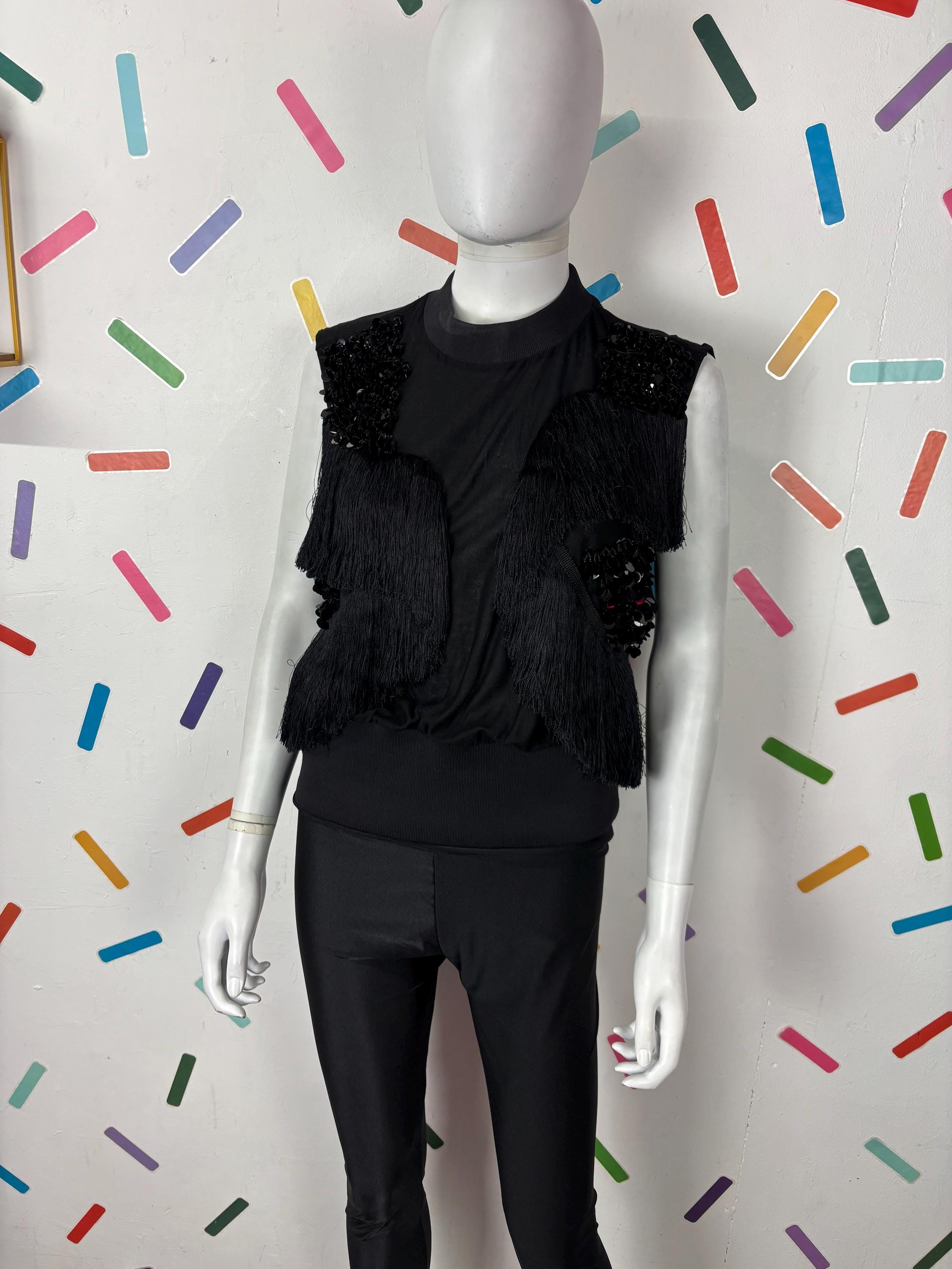 Other: This is a fabulous 80s top with the most amazing sequin / tassel design. The sides of the top are an open cut.