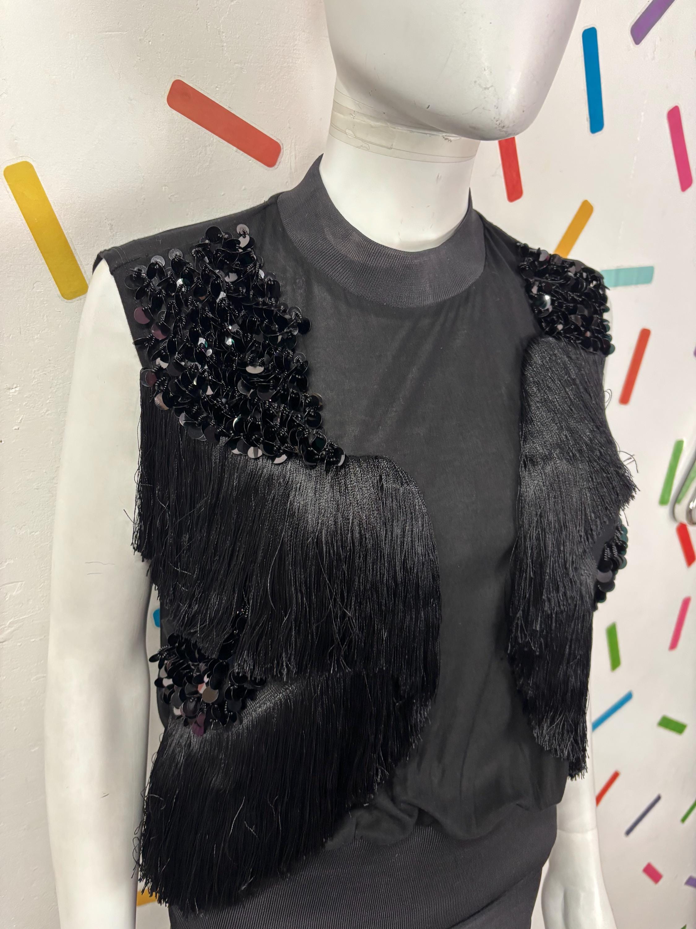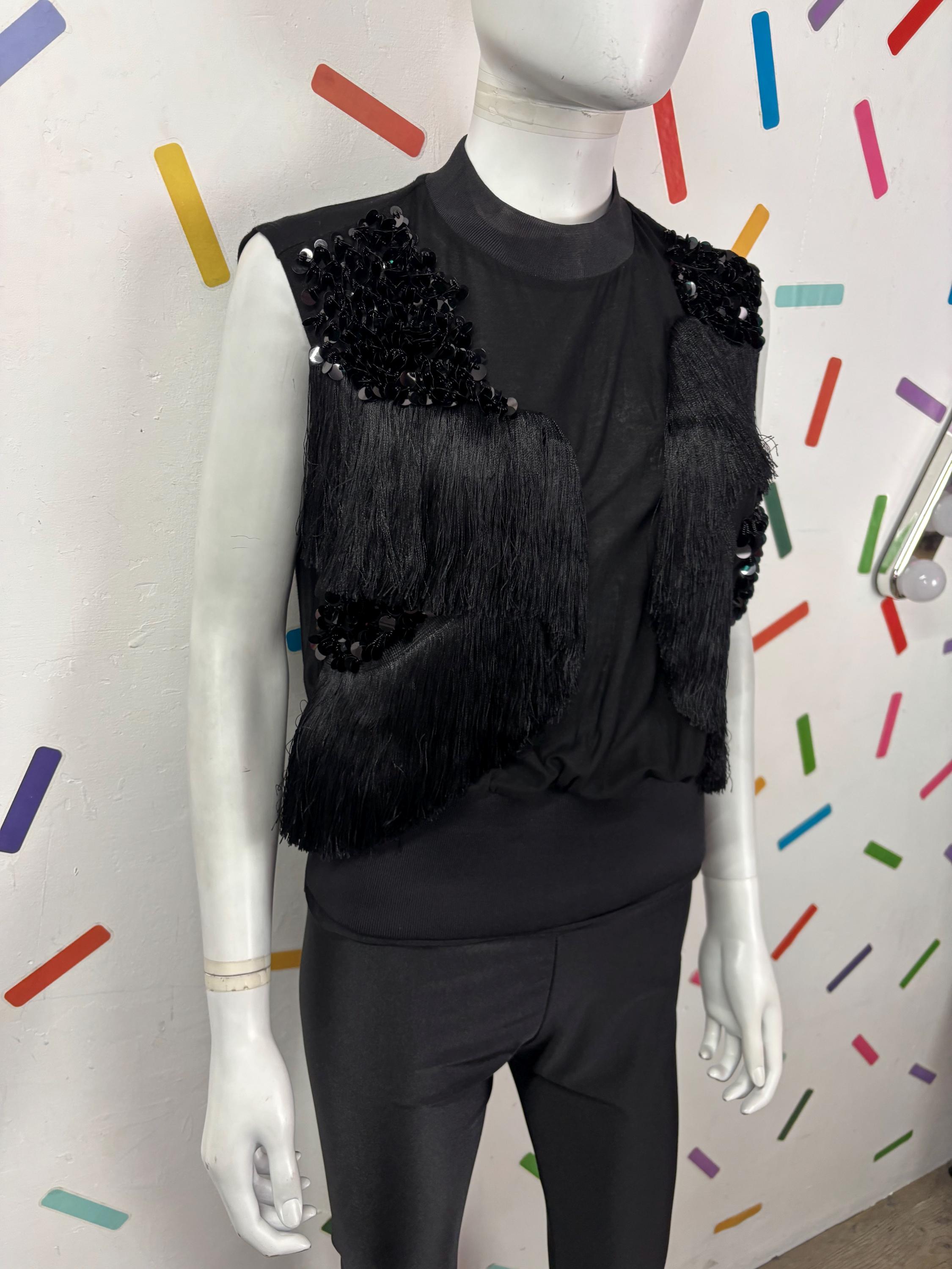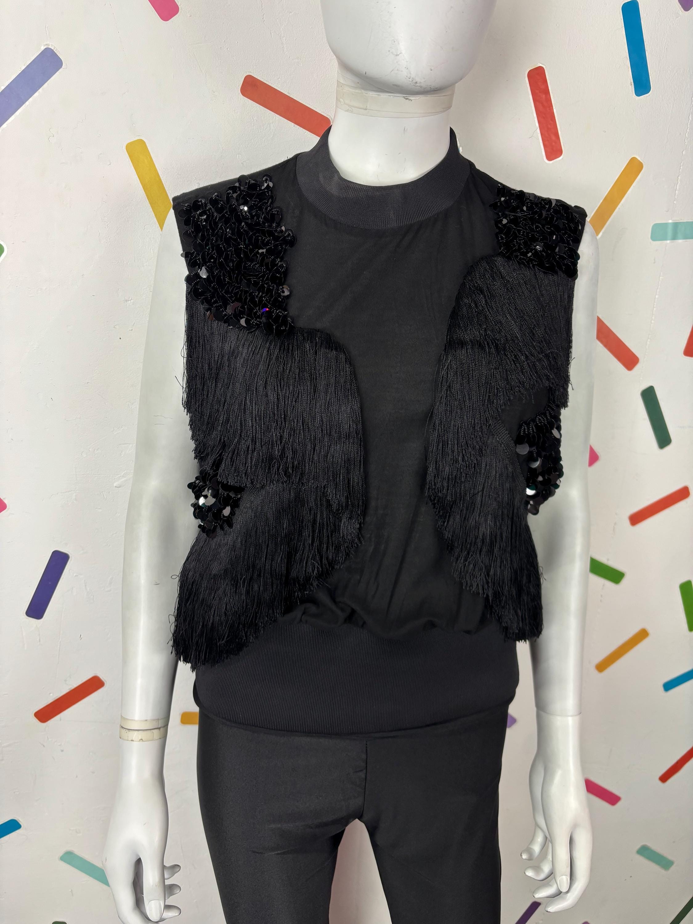 Other: This is a fabulous 80s top with the most amazing sequin / tassel design. The sides of the top are an open cut.