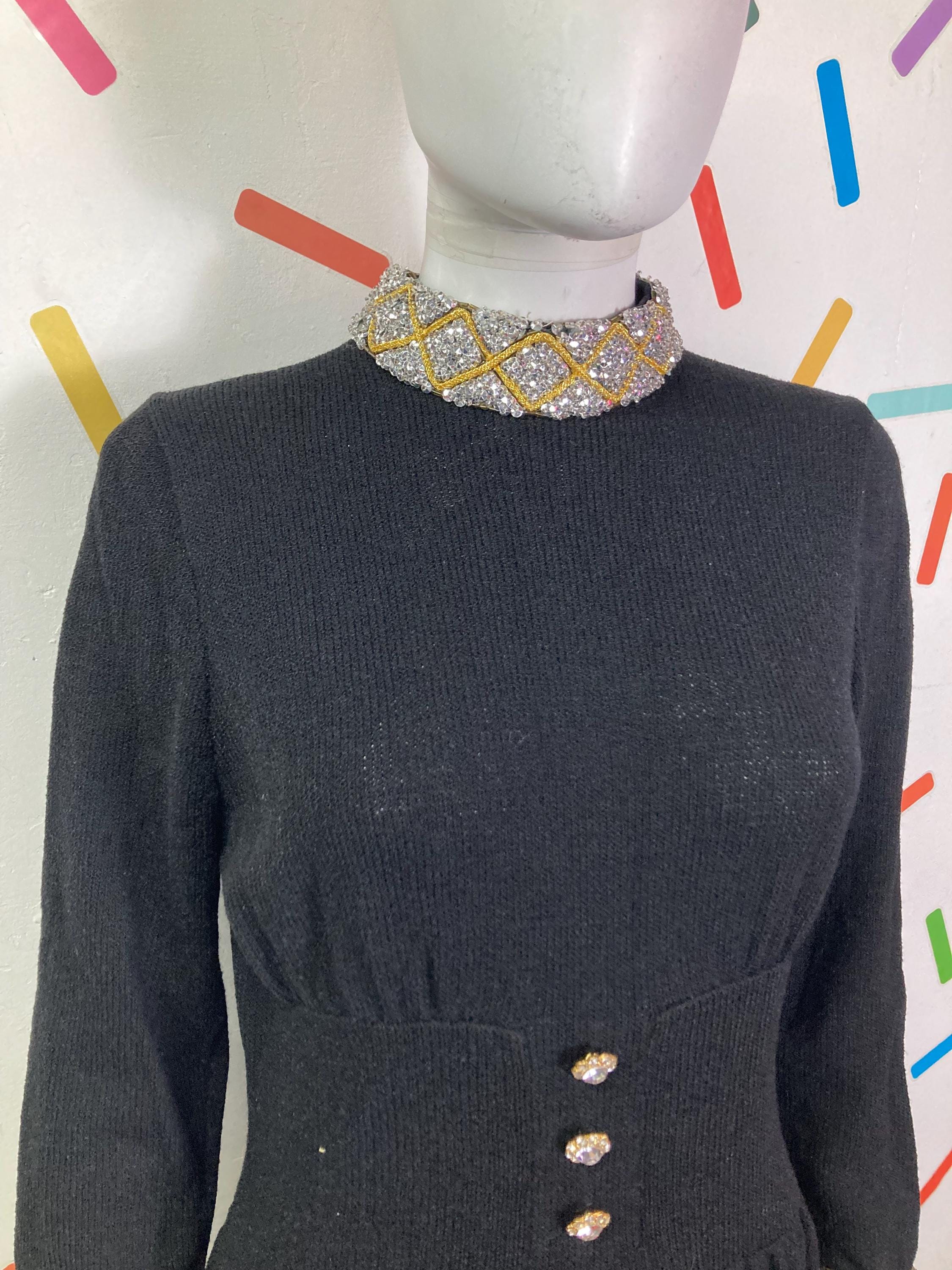 Other: This is the most amazing 80s knitted dress with fab jewel detail on the neck and cuffs and fab button detail. Zip backing fastening.