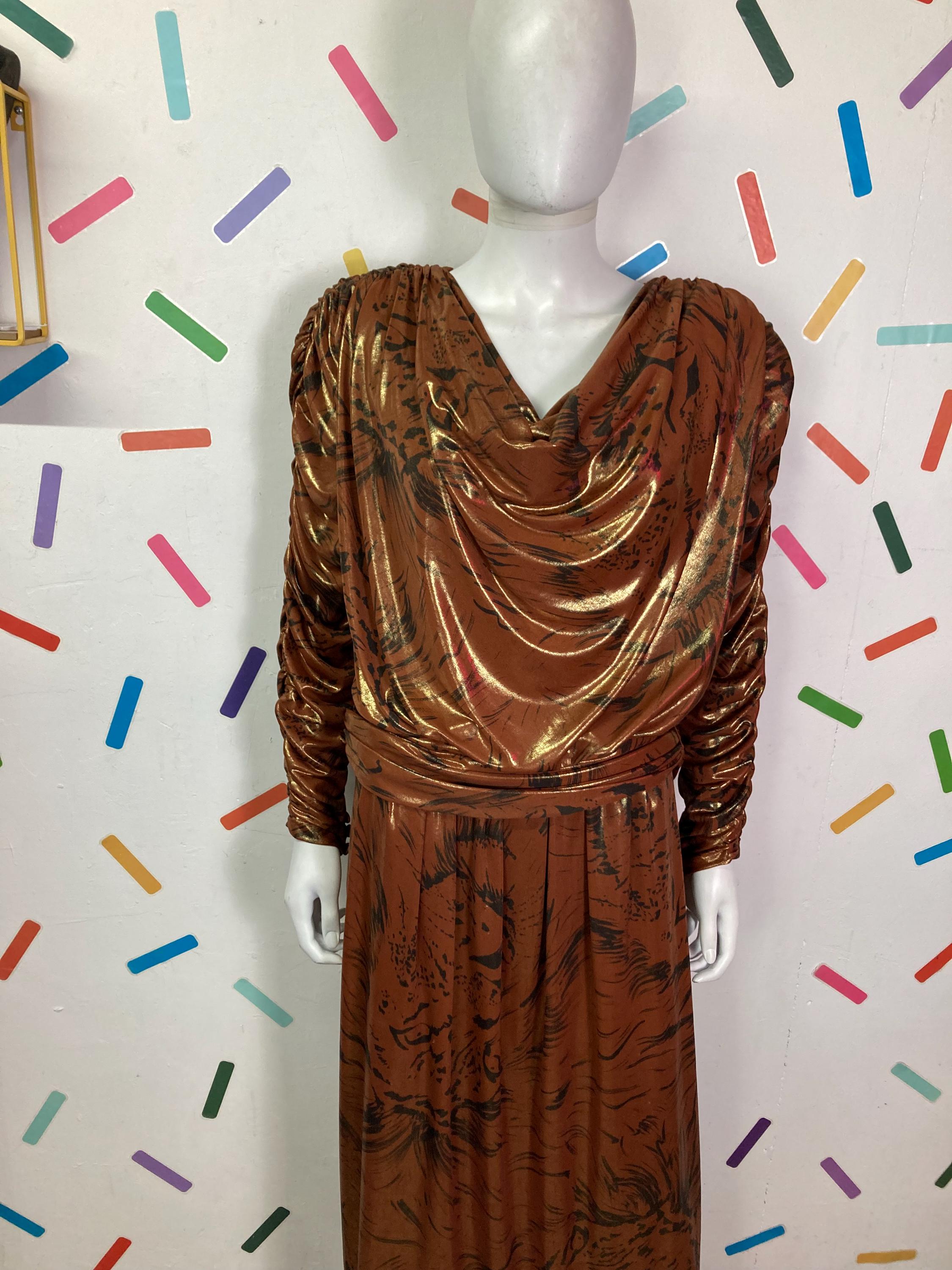 Other: This is the most amazing 80s metallic bronze maxi dress. Utterly stunning. Zip back fastening.