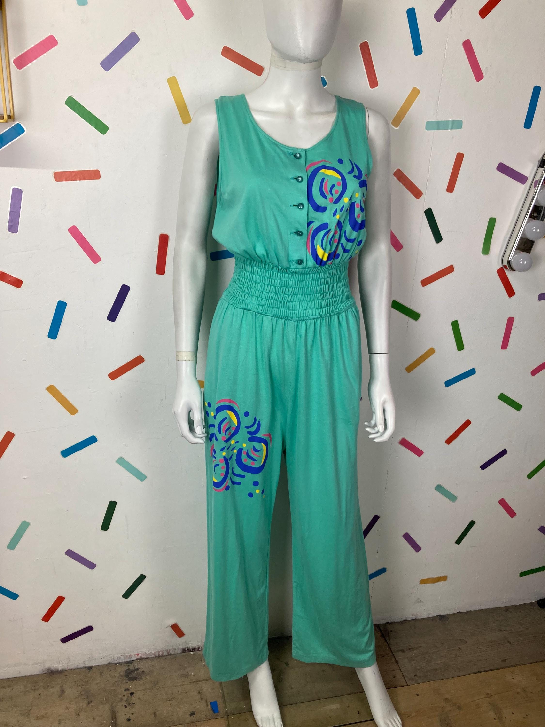 Other: This is a fab vintage teal geo design jersey cotton jumpsuit with pockets. By the fab Scandi brand FENNO.