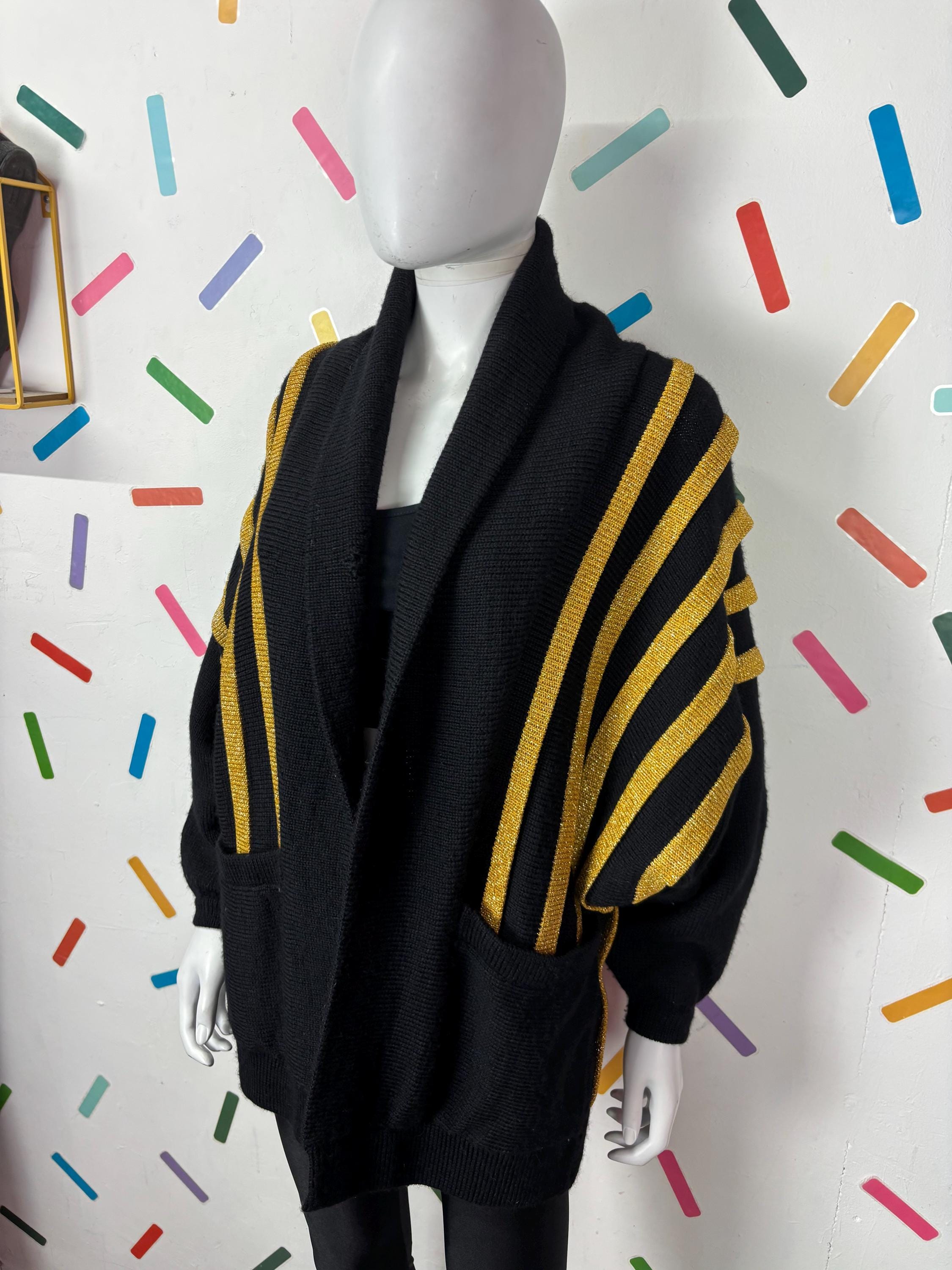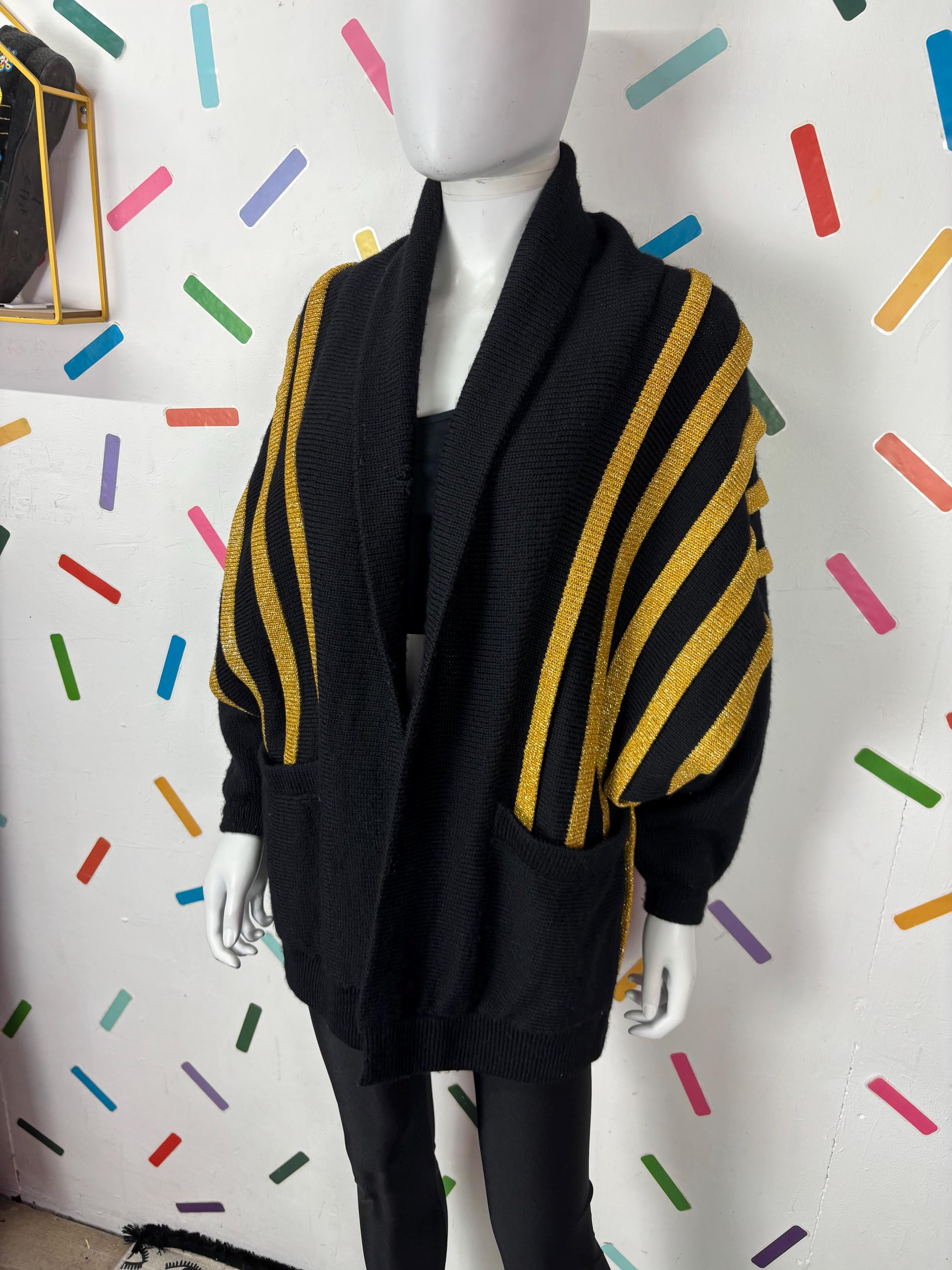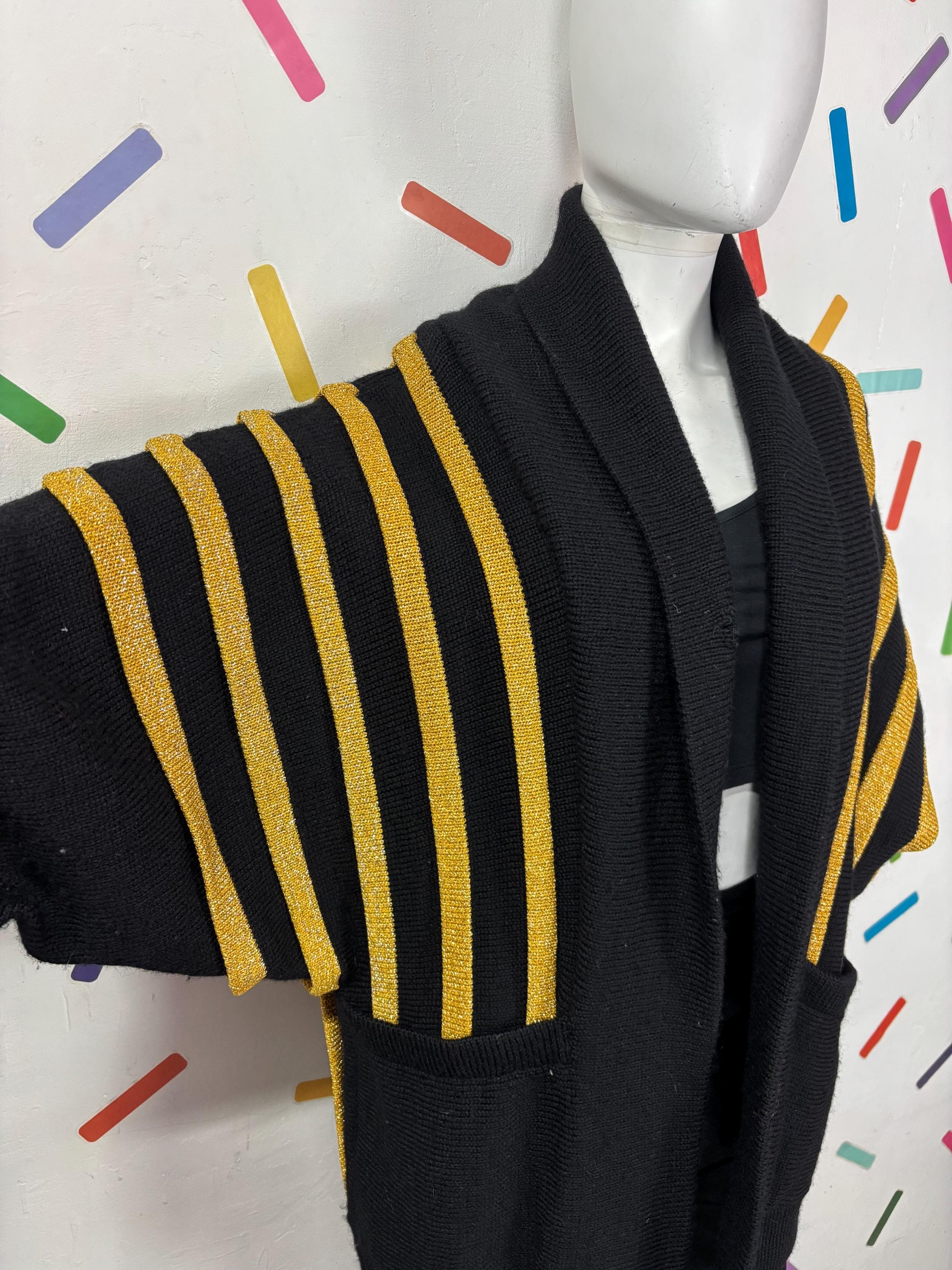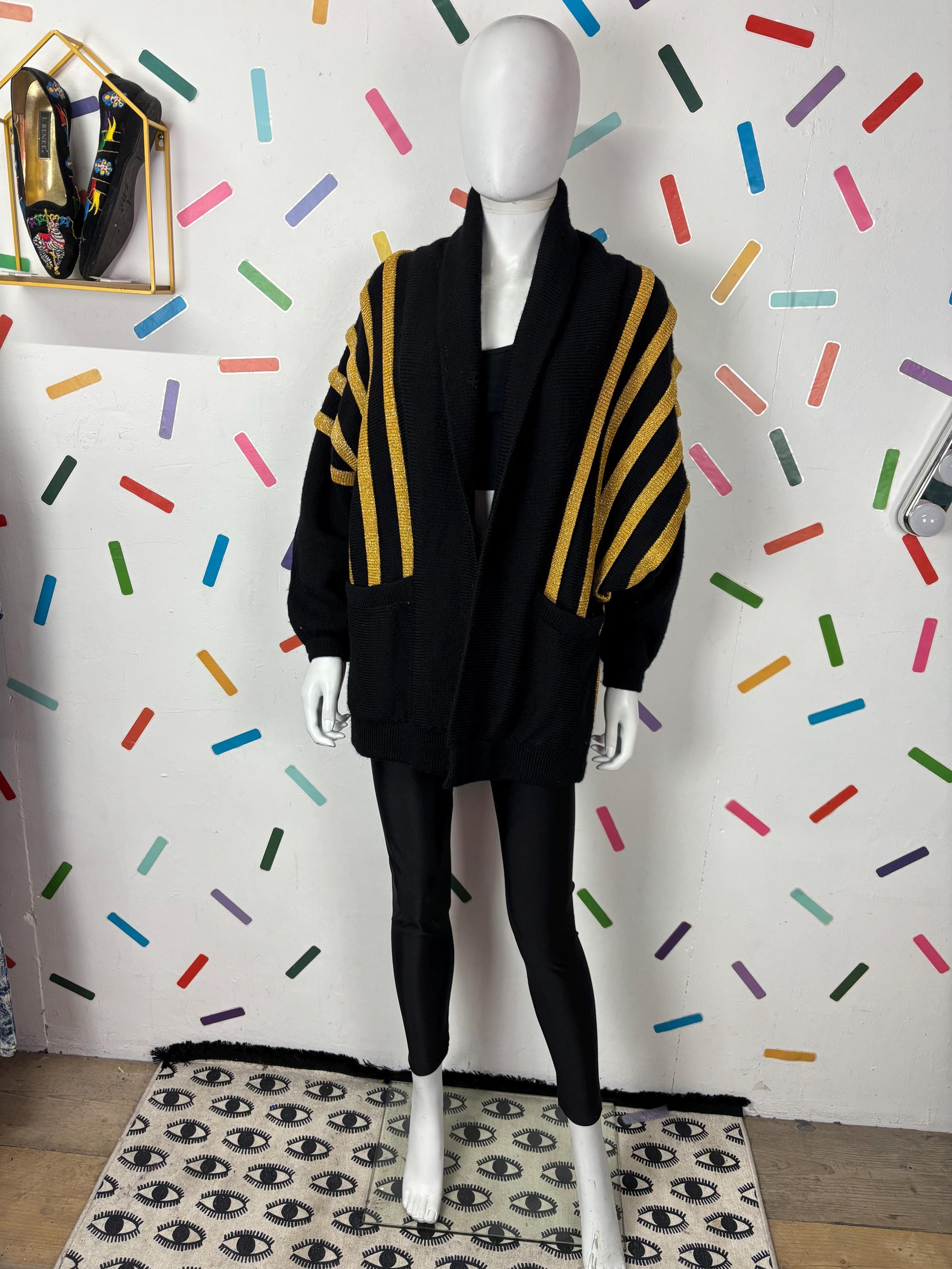 Other: This is a fabulous 80s black and gold batwing knitted cardigan with the most amazing sparkle in the gold knit.