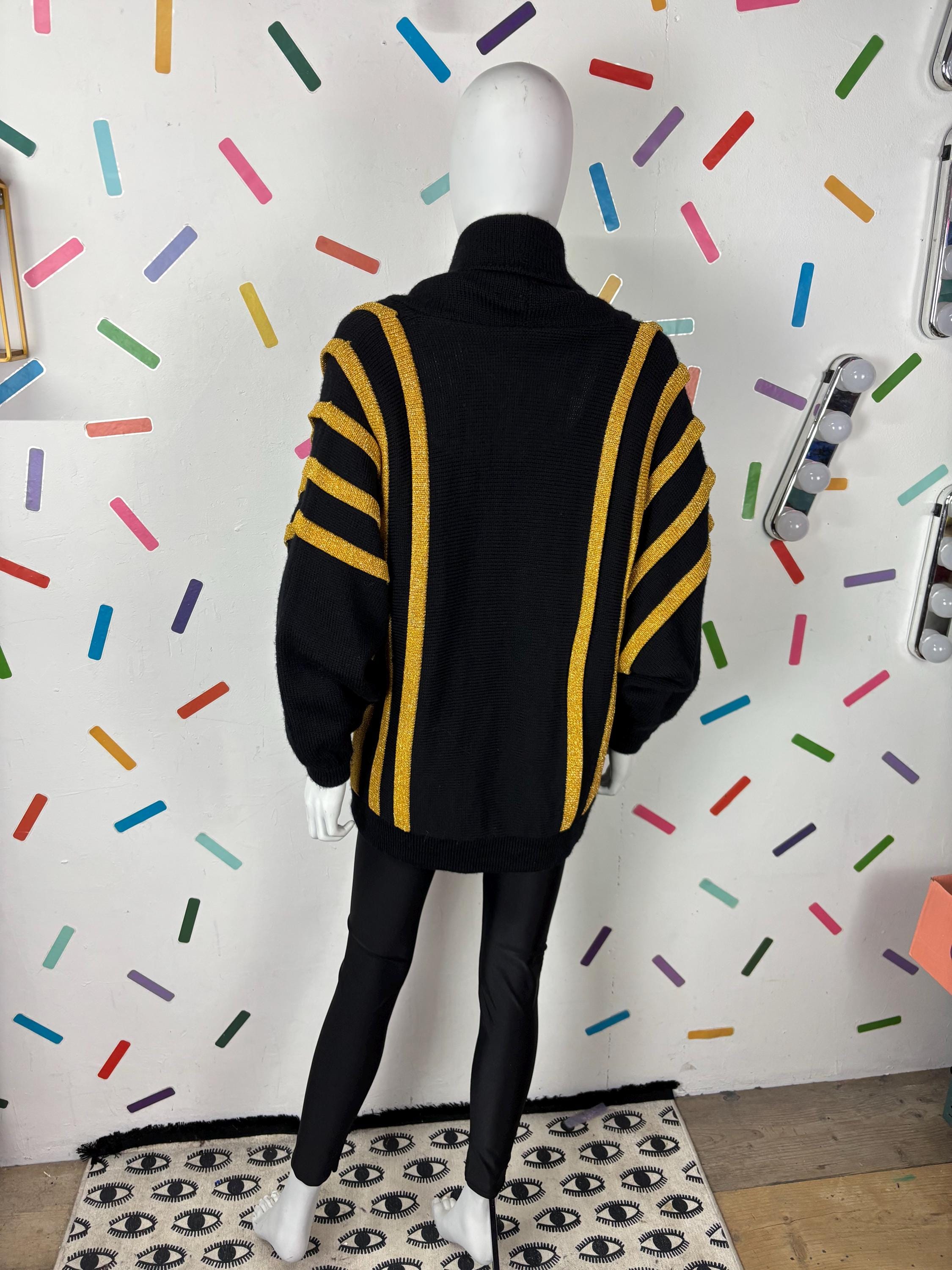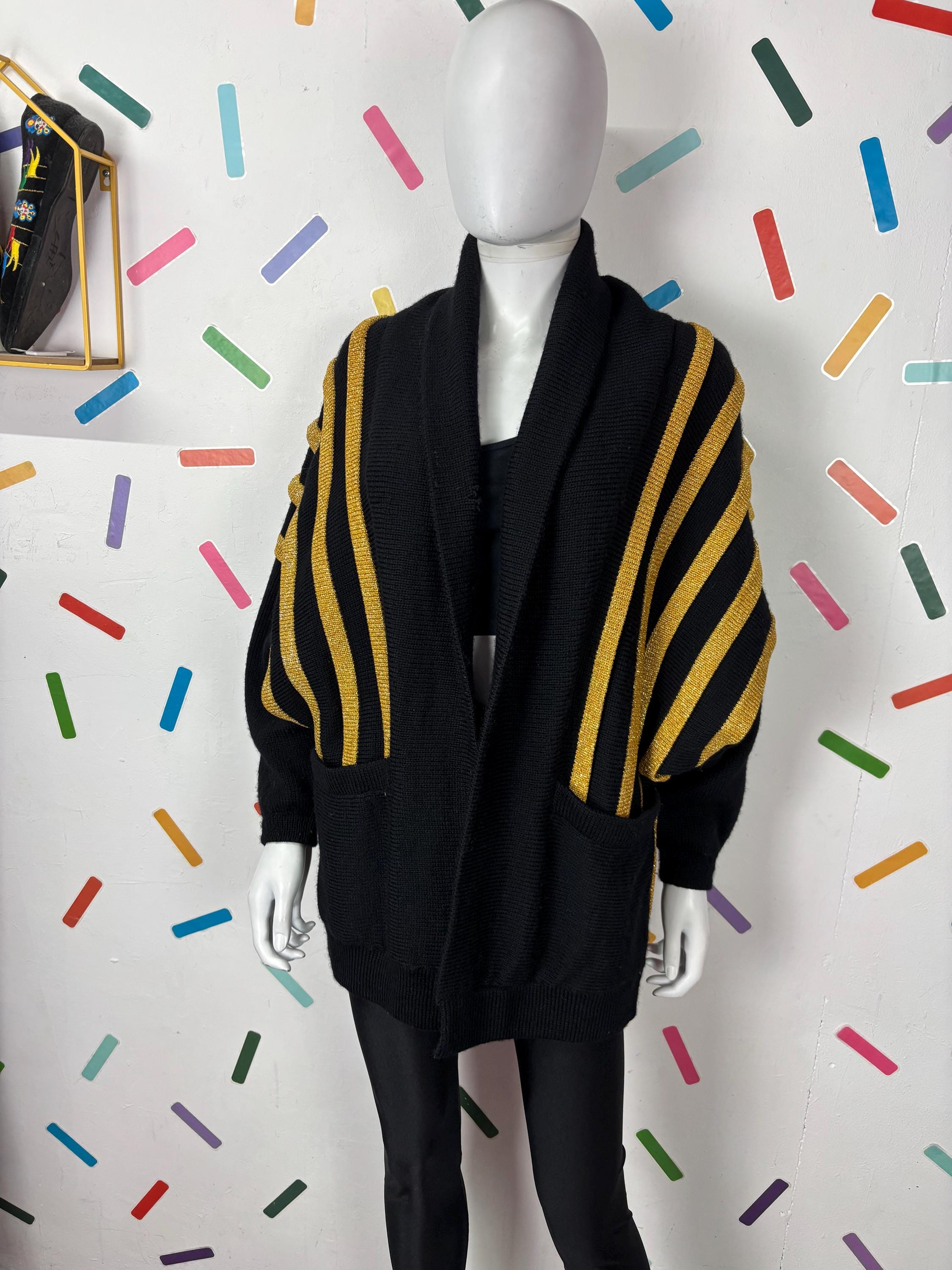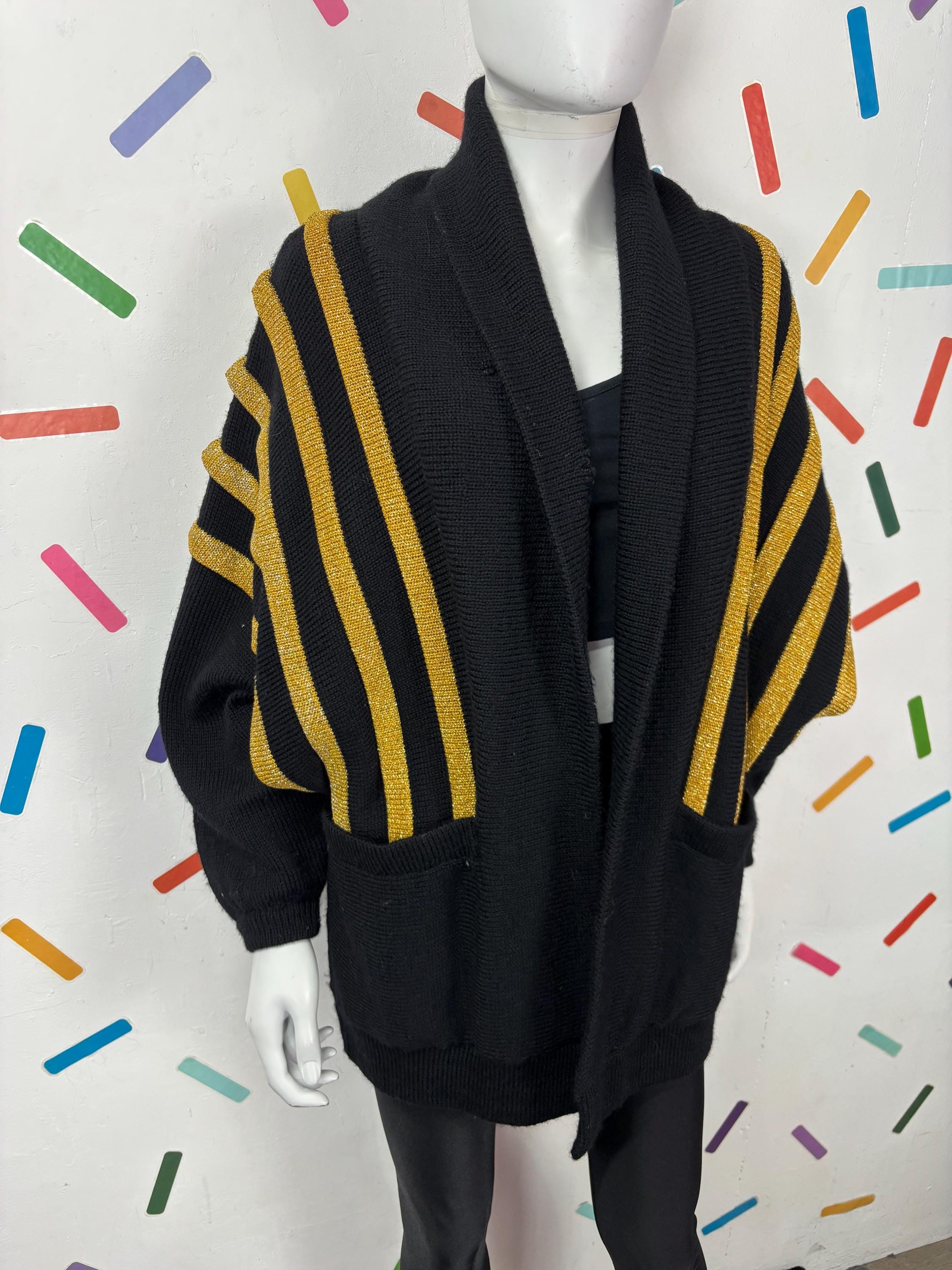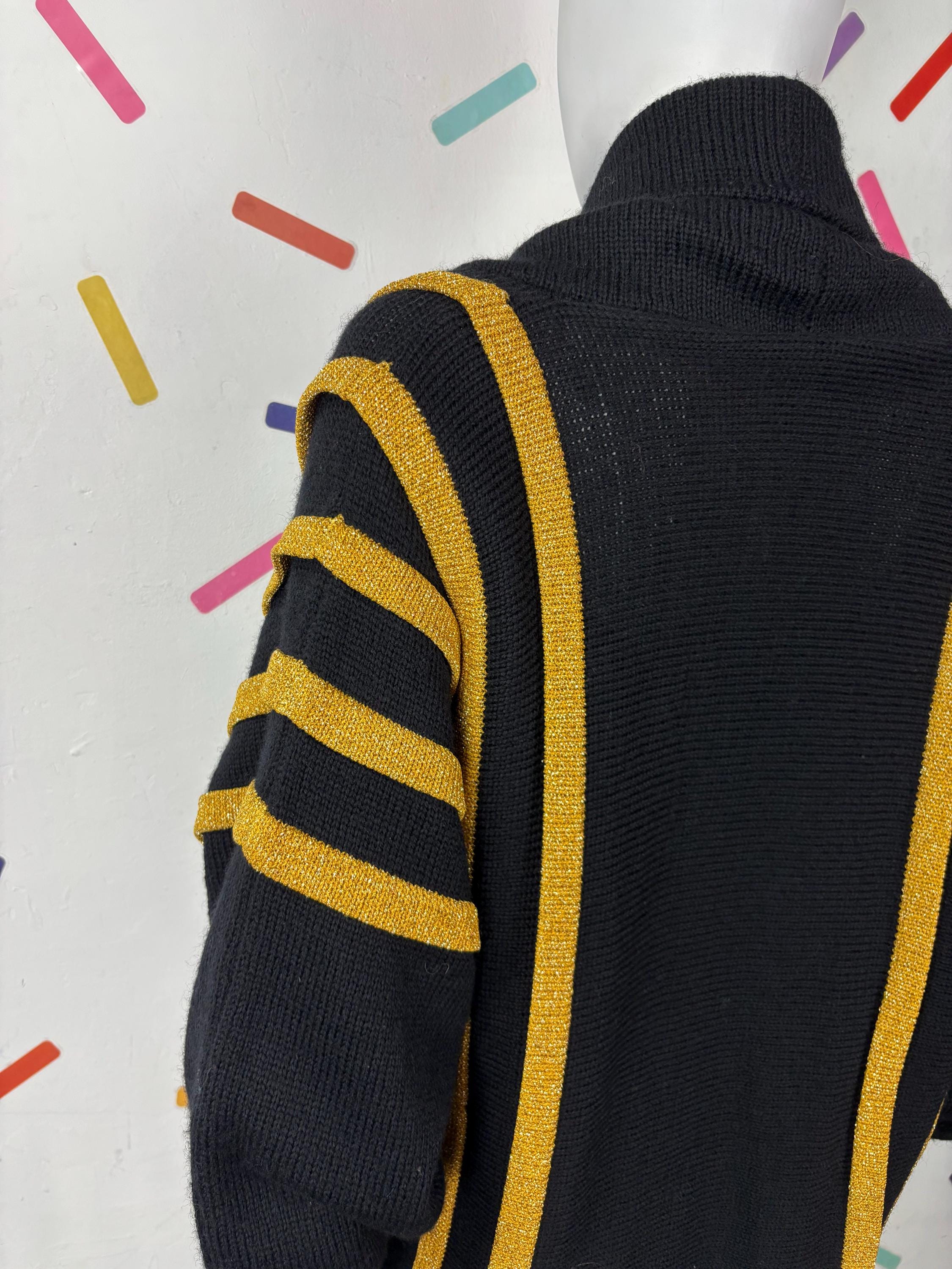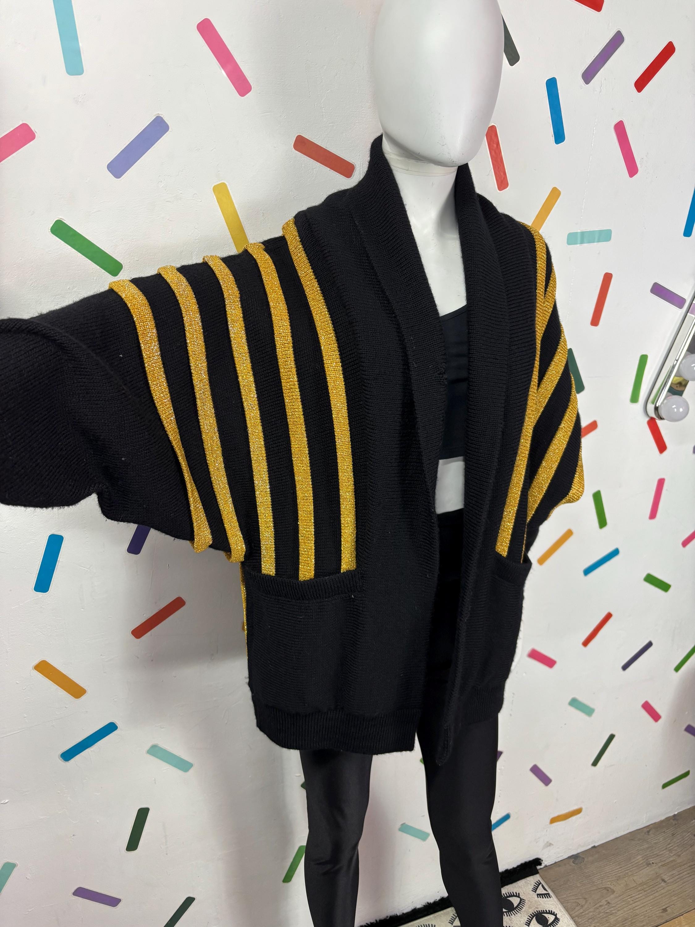 Other: This is a fabulous 80s black and gold batwing knitted cardigan with the most amazing sparkle in the gold knit.