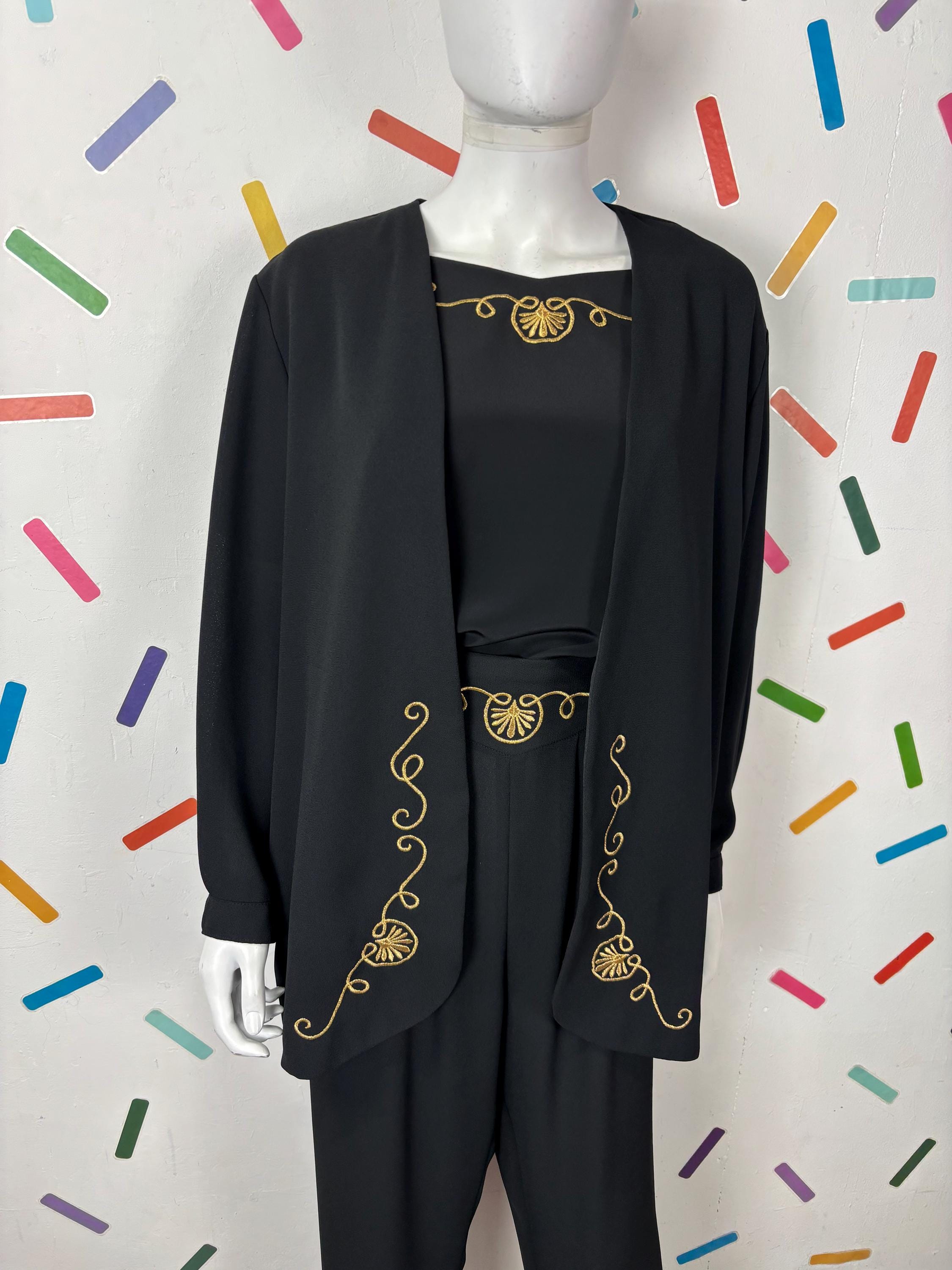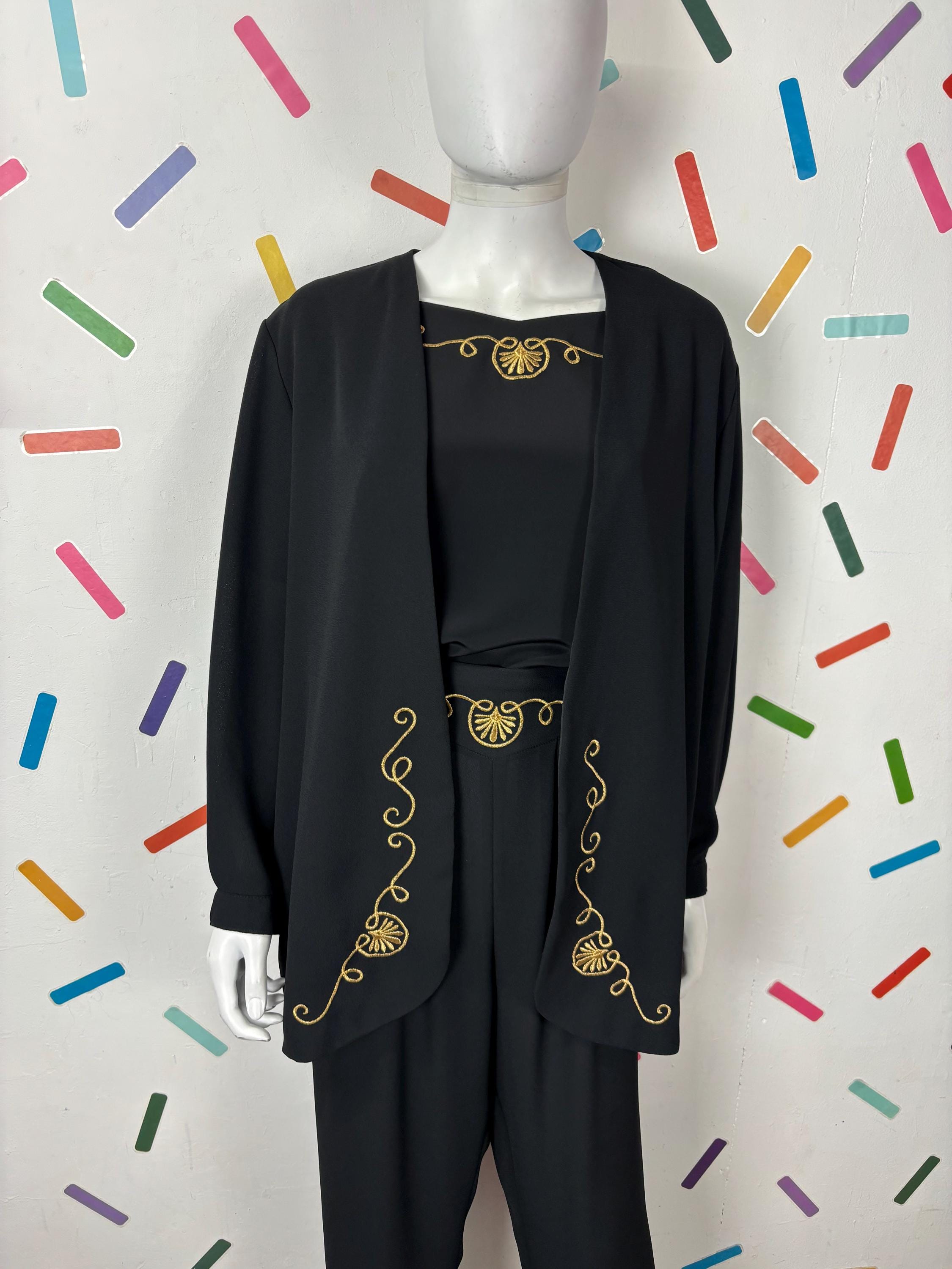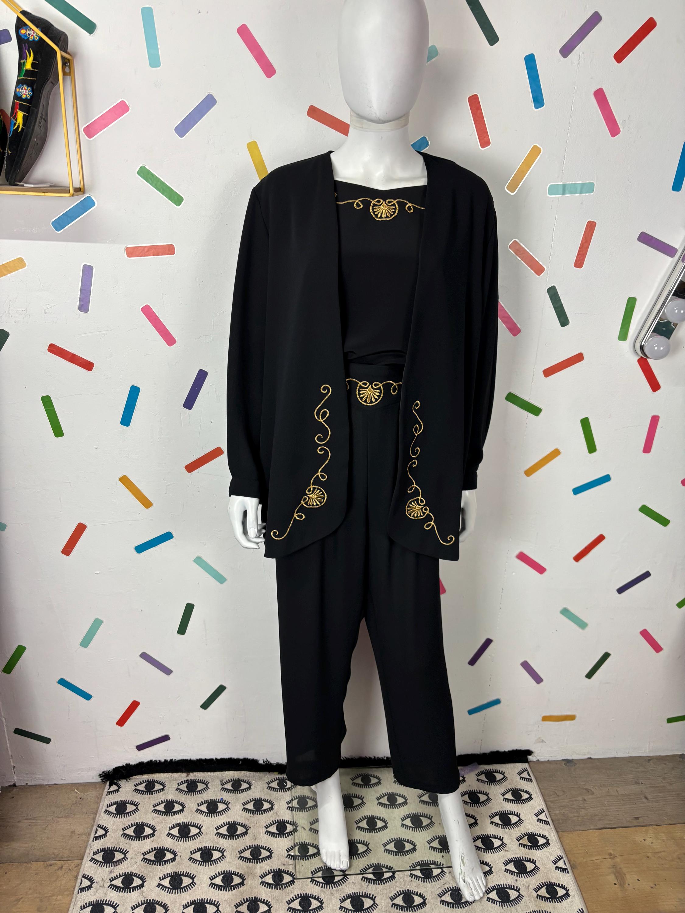 Other: This is a great 80s 3 piece set consisting of a long sleeve slouch jacket, short sleeve top and trousers.