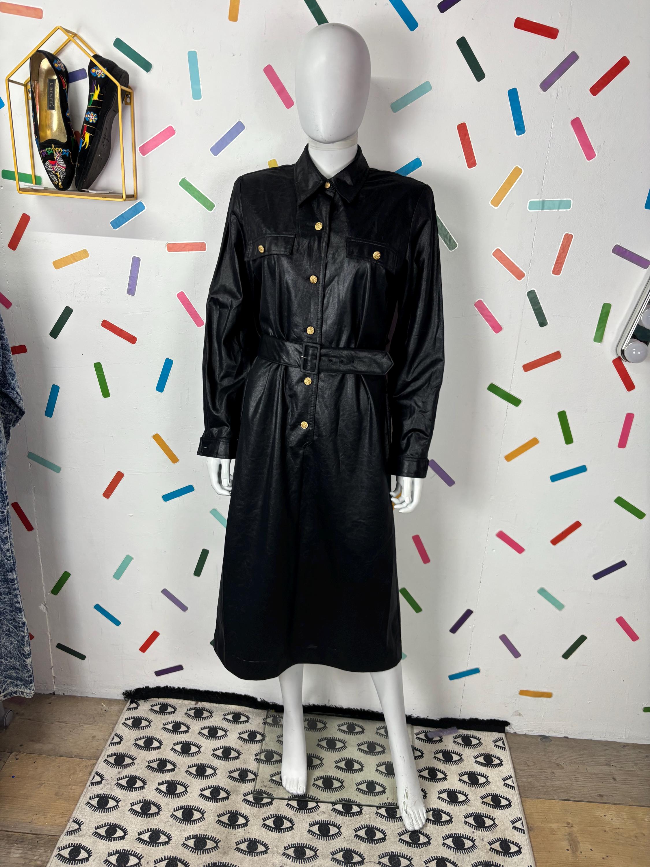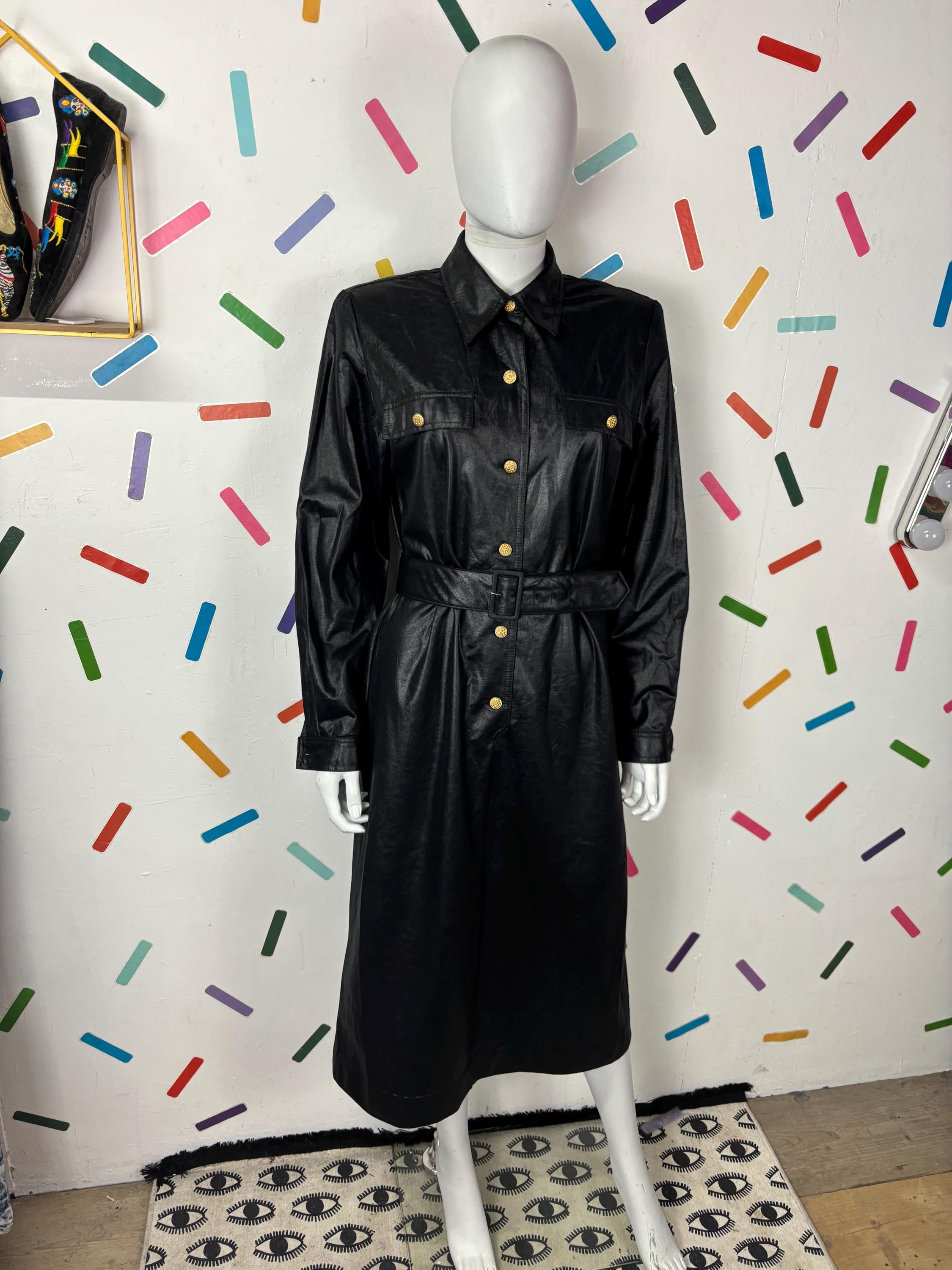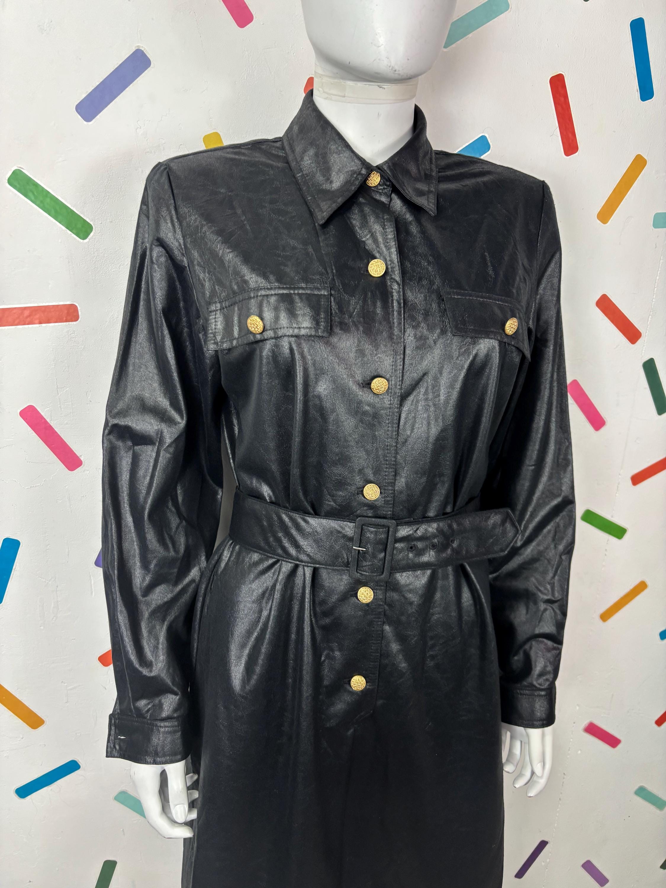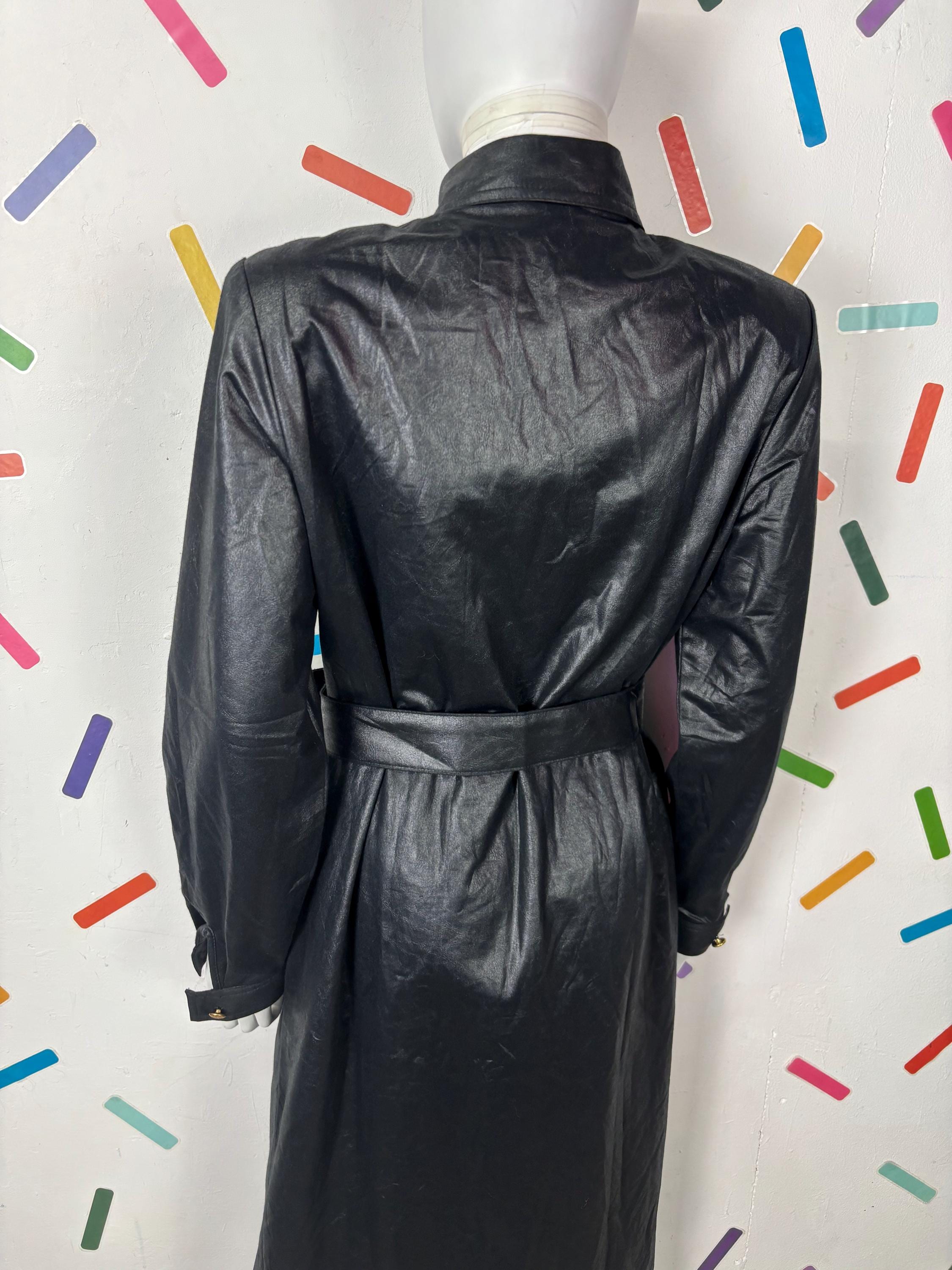 Other: This is the most amazing 80s faux leather wet look midi dress with pockets and matching belt.