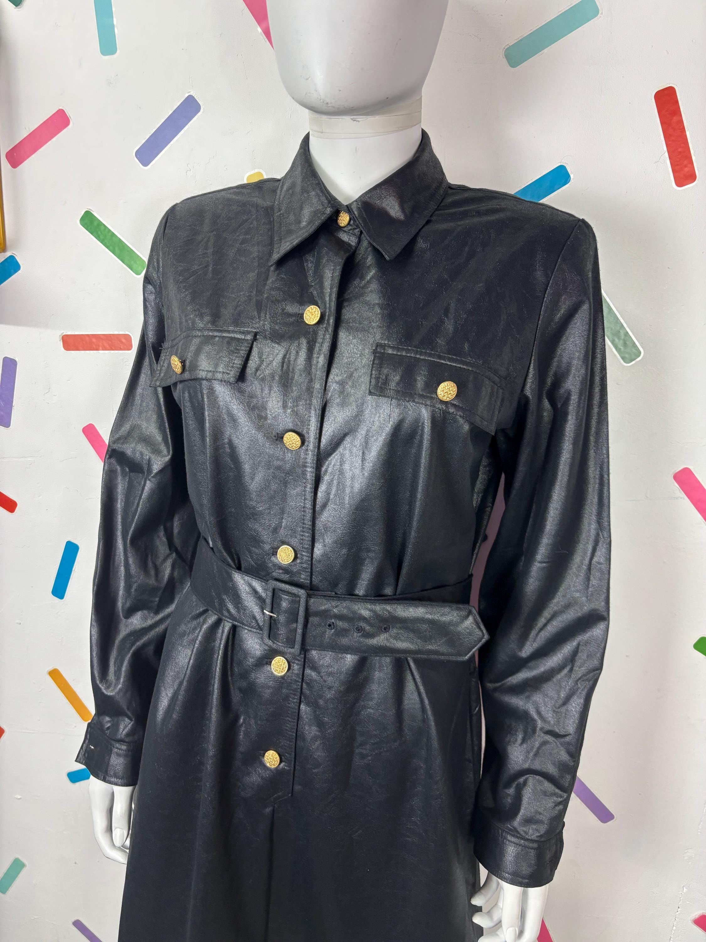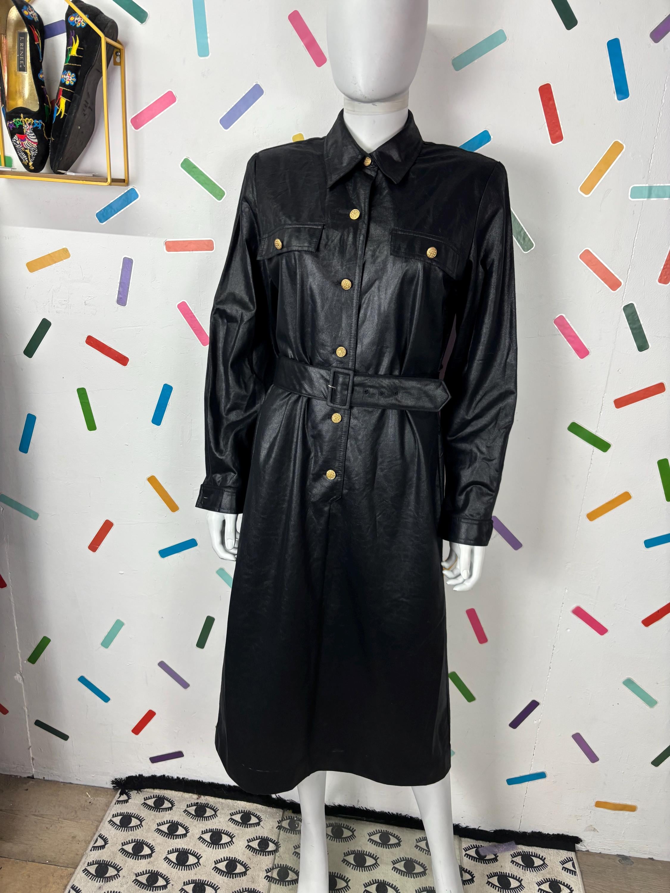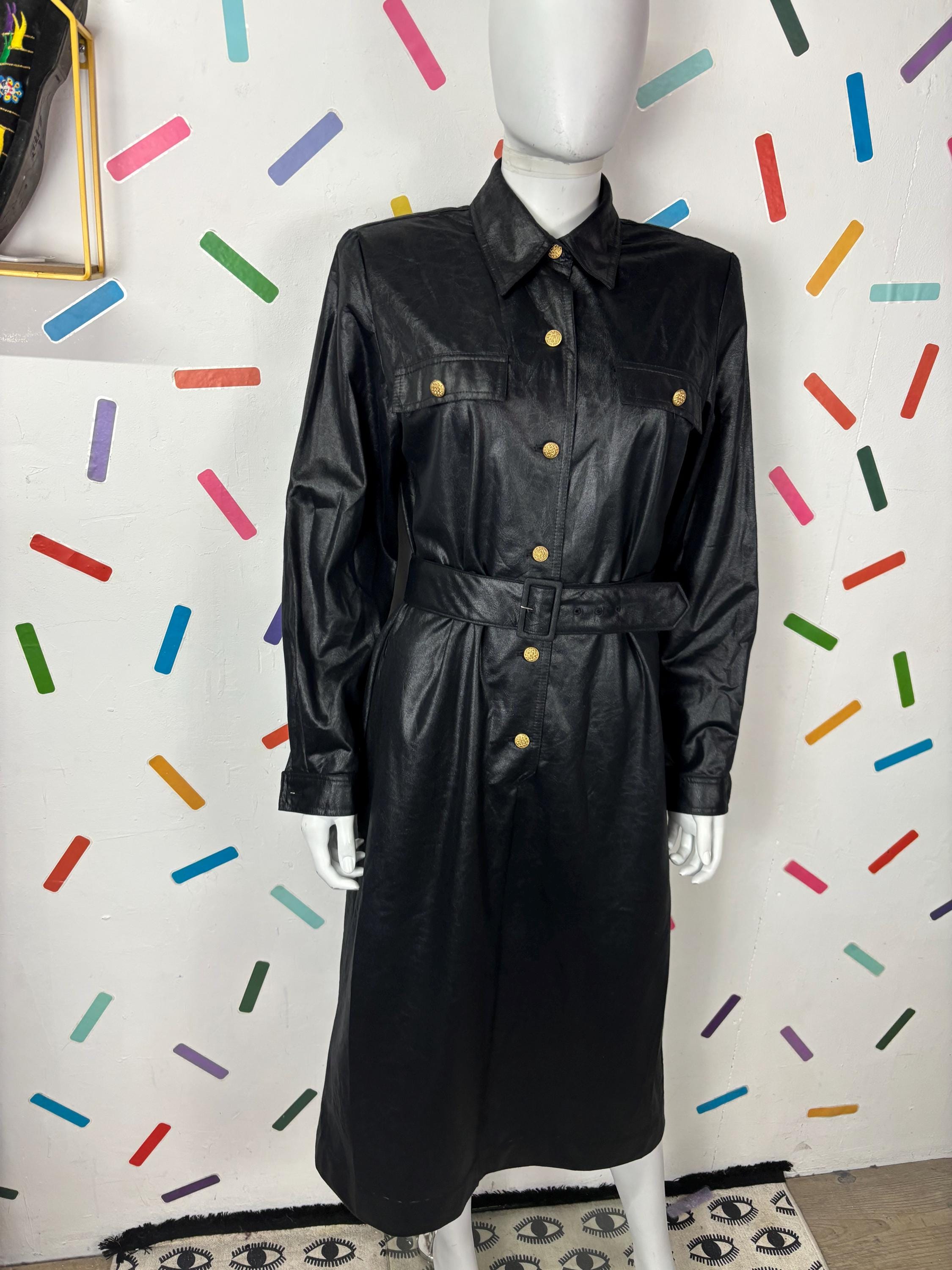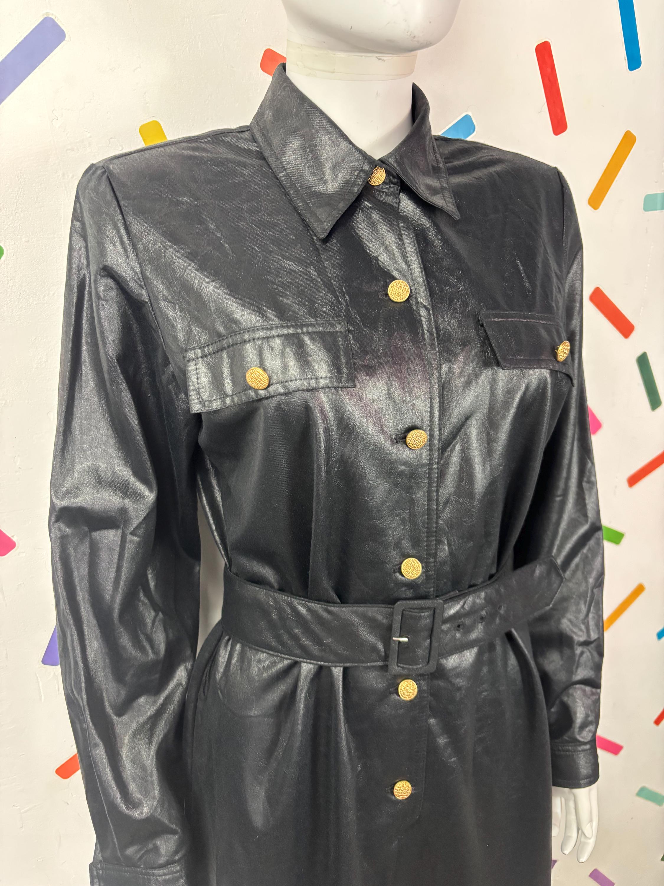 Other: This is the most amazing 80s faux leather wet look midi dress with pockets and matching belt.