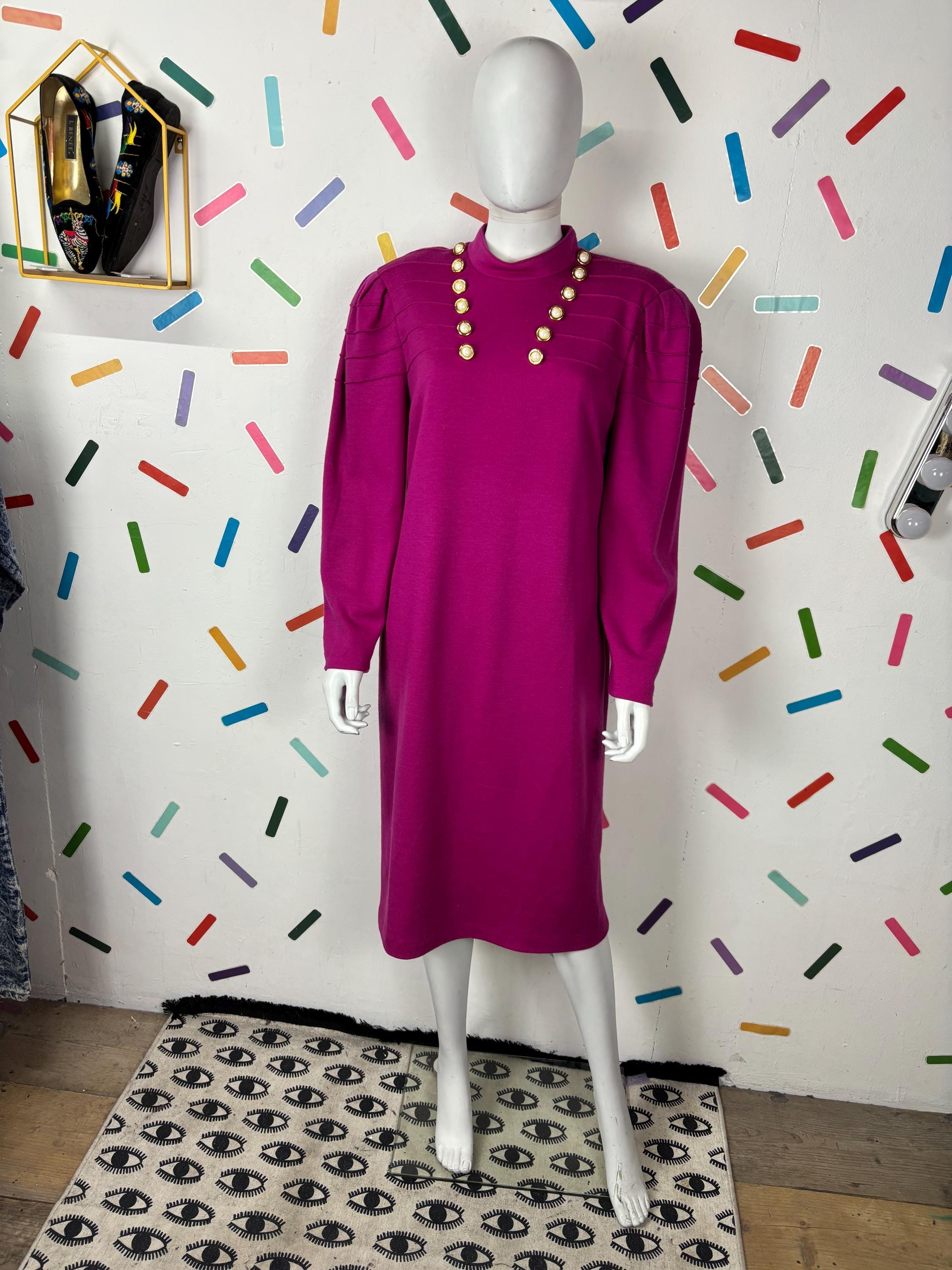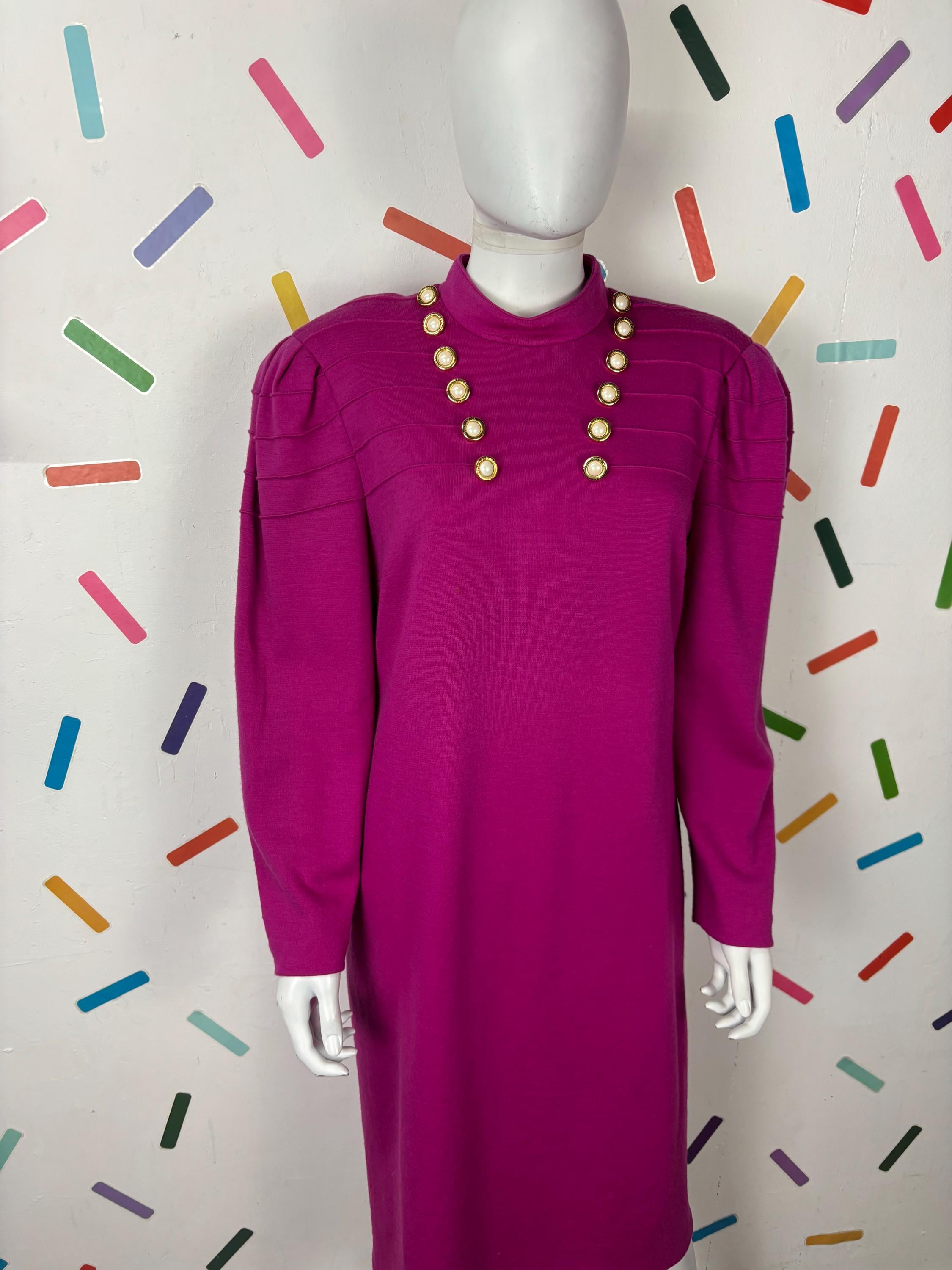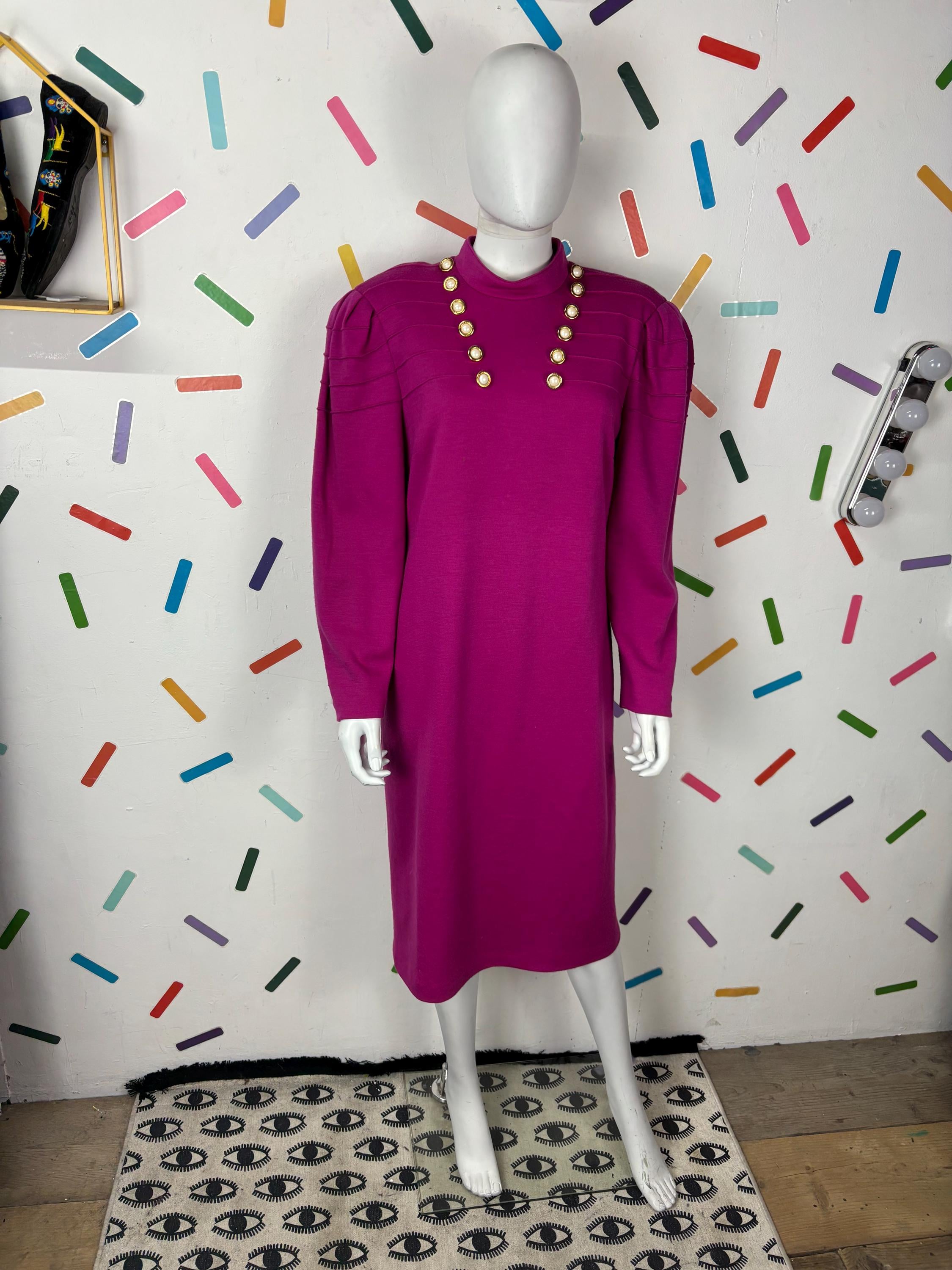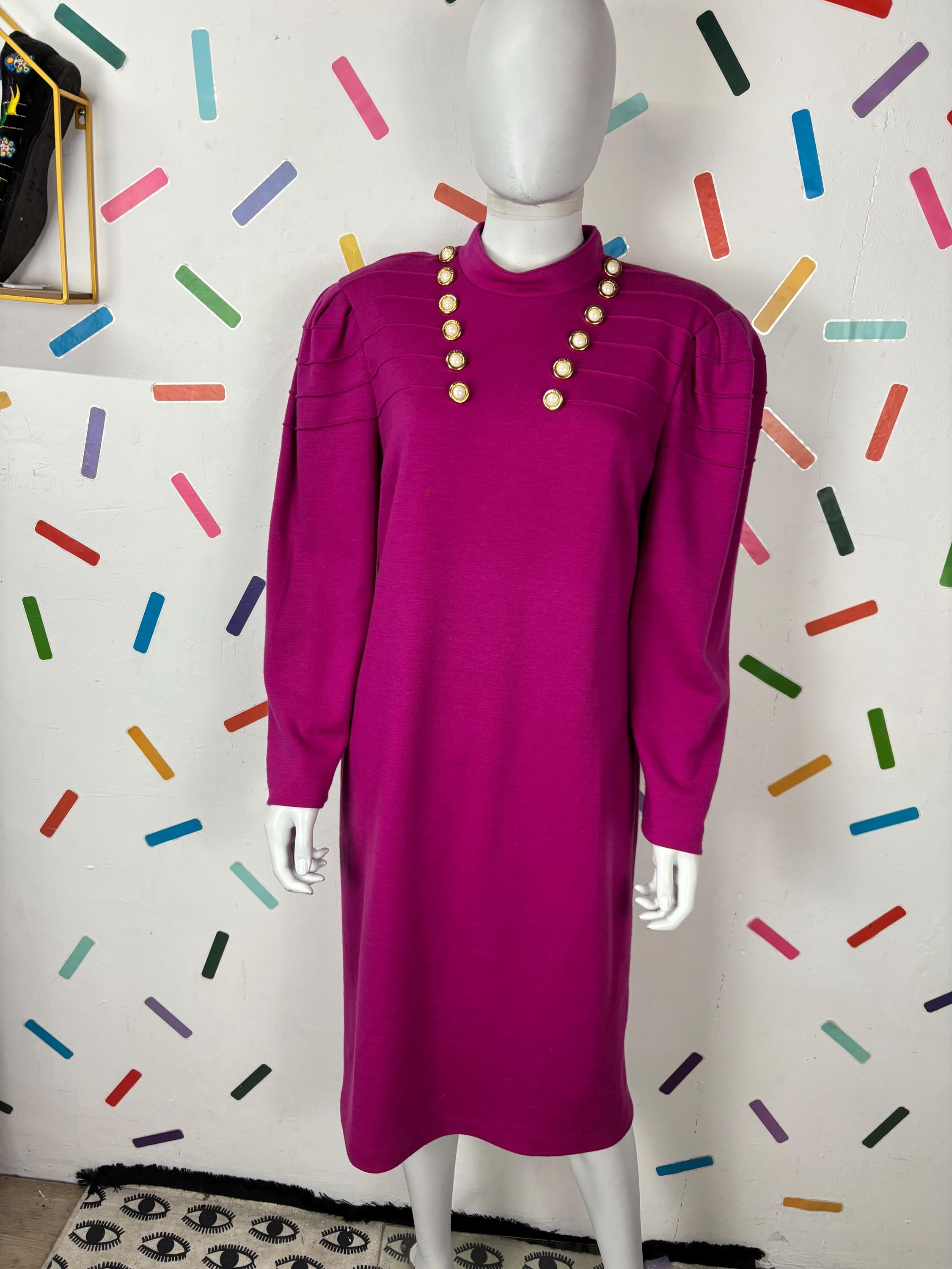 Other: This is a fab vintage 80s block colour bright pink dress with gold button details.