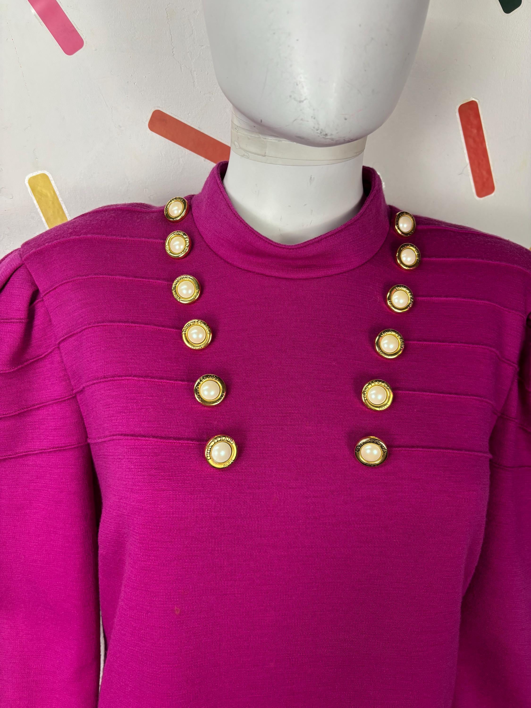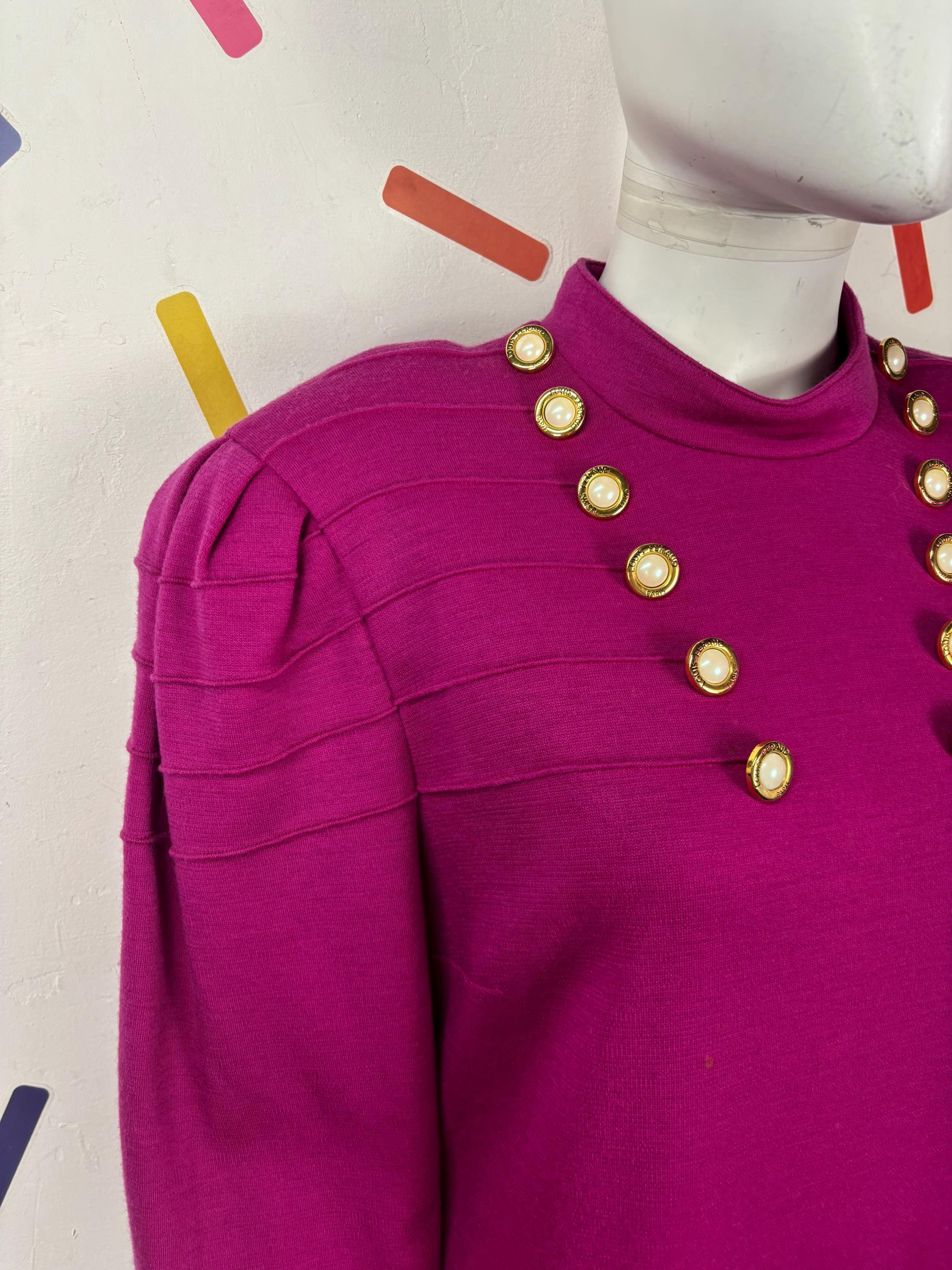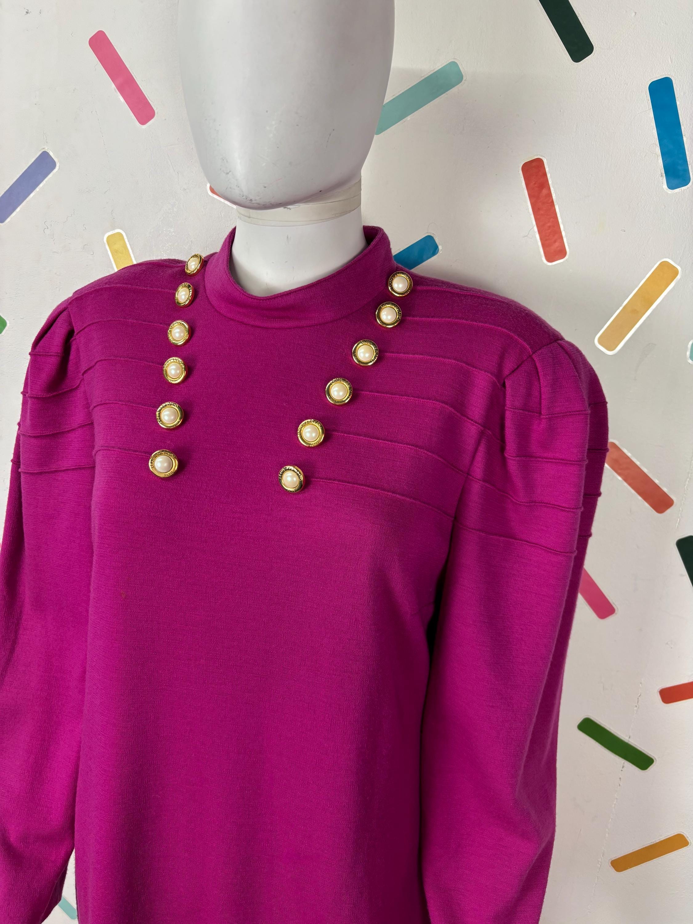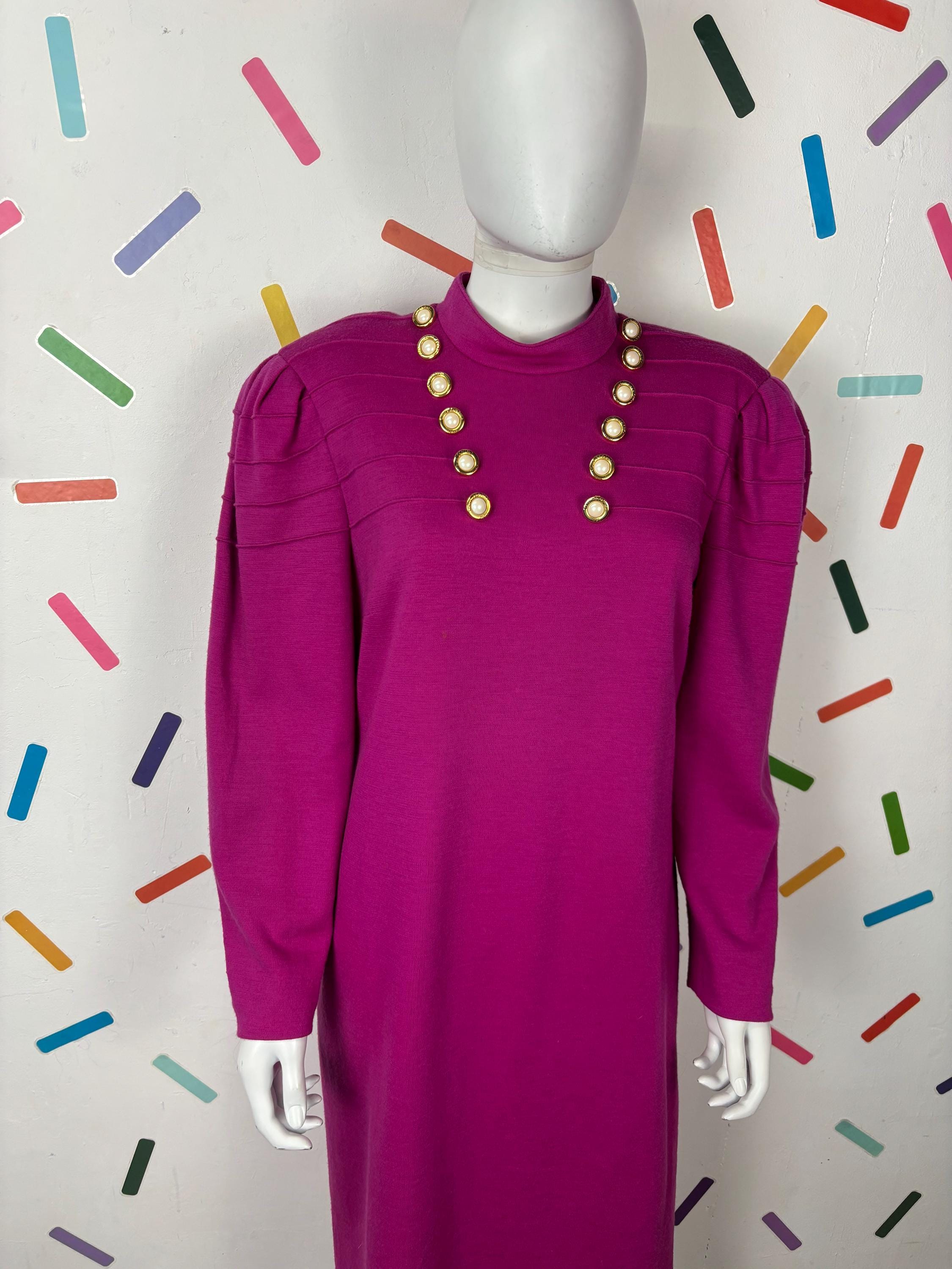 Other: This is a fab vintage 80s block colour bright pink dress with gold button details.