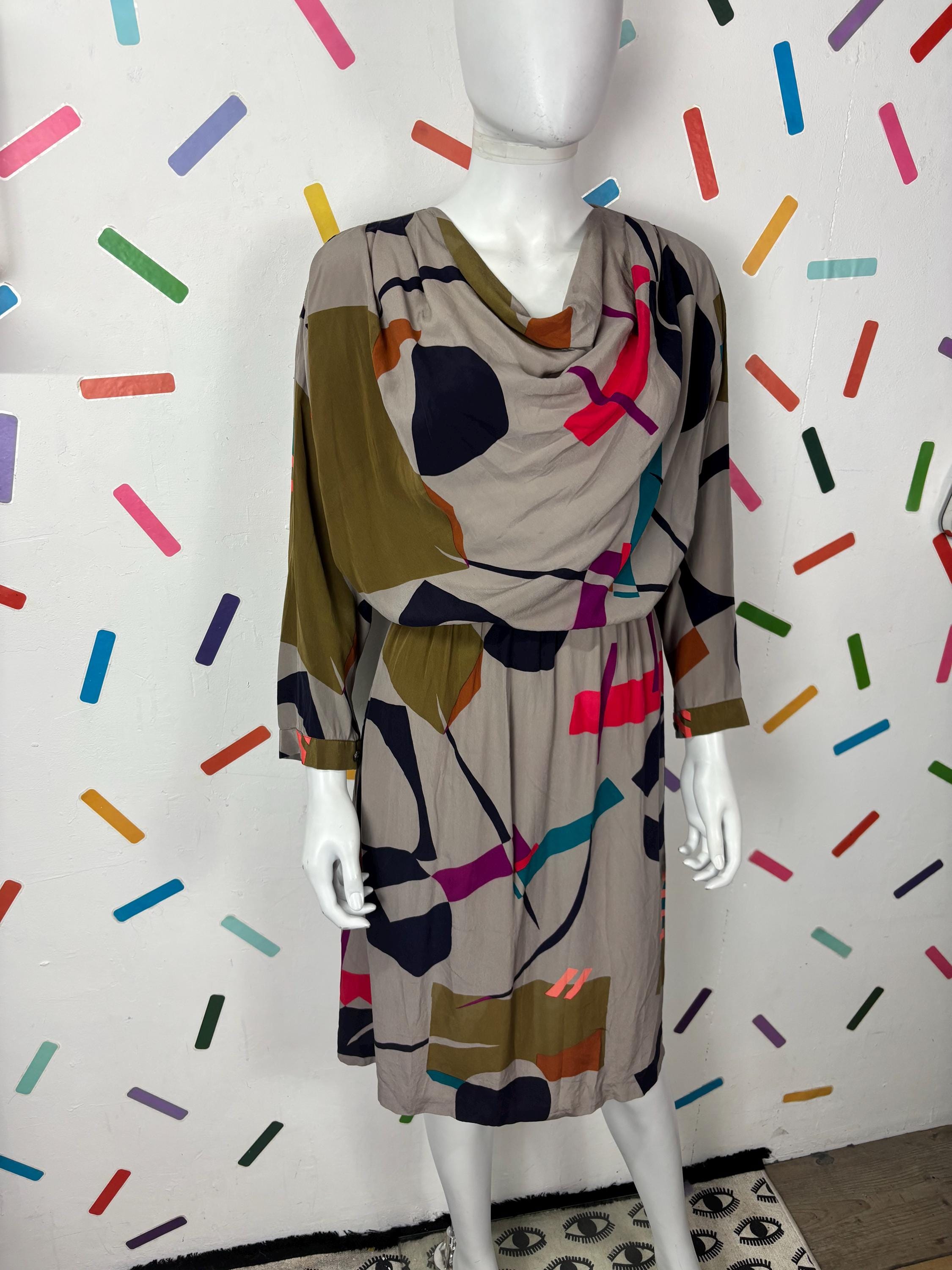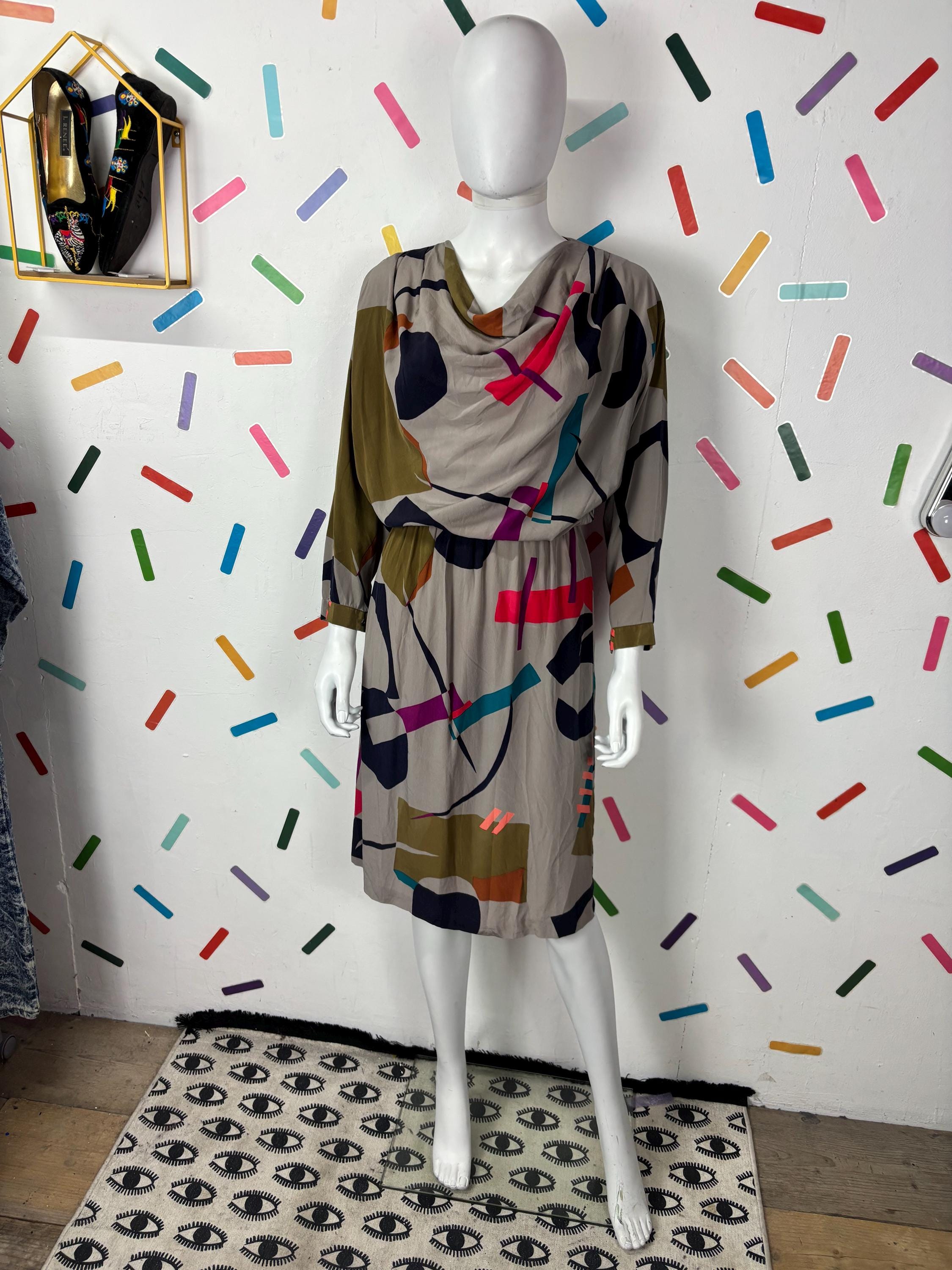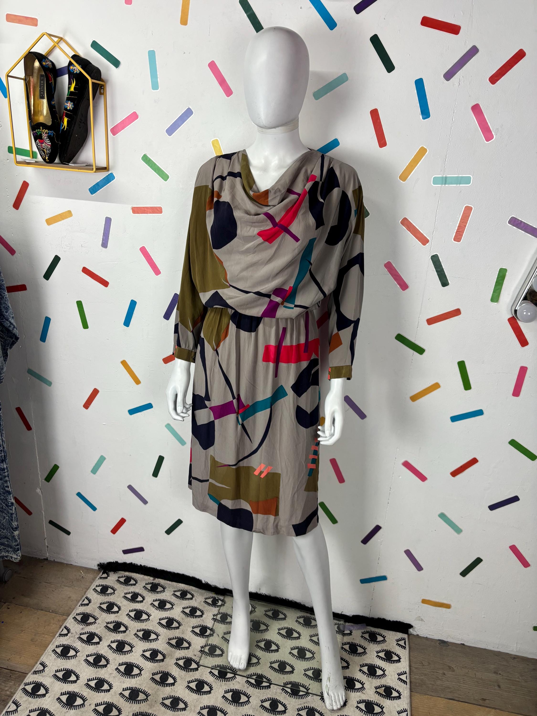 This is a fabulous vintage dress with the most amazing geo design. Overhead design