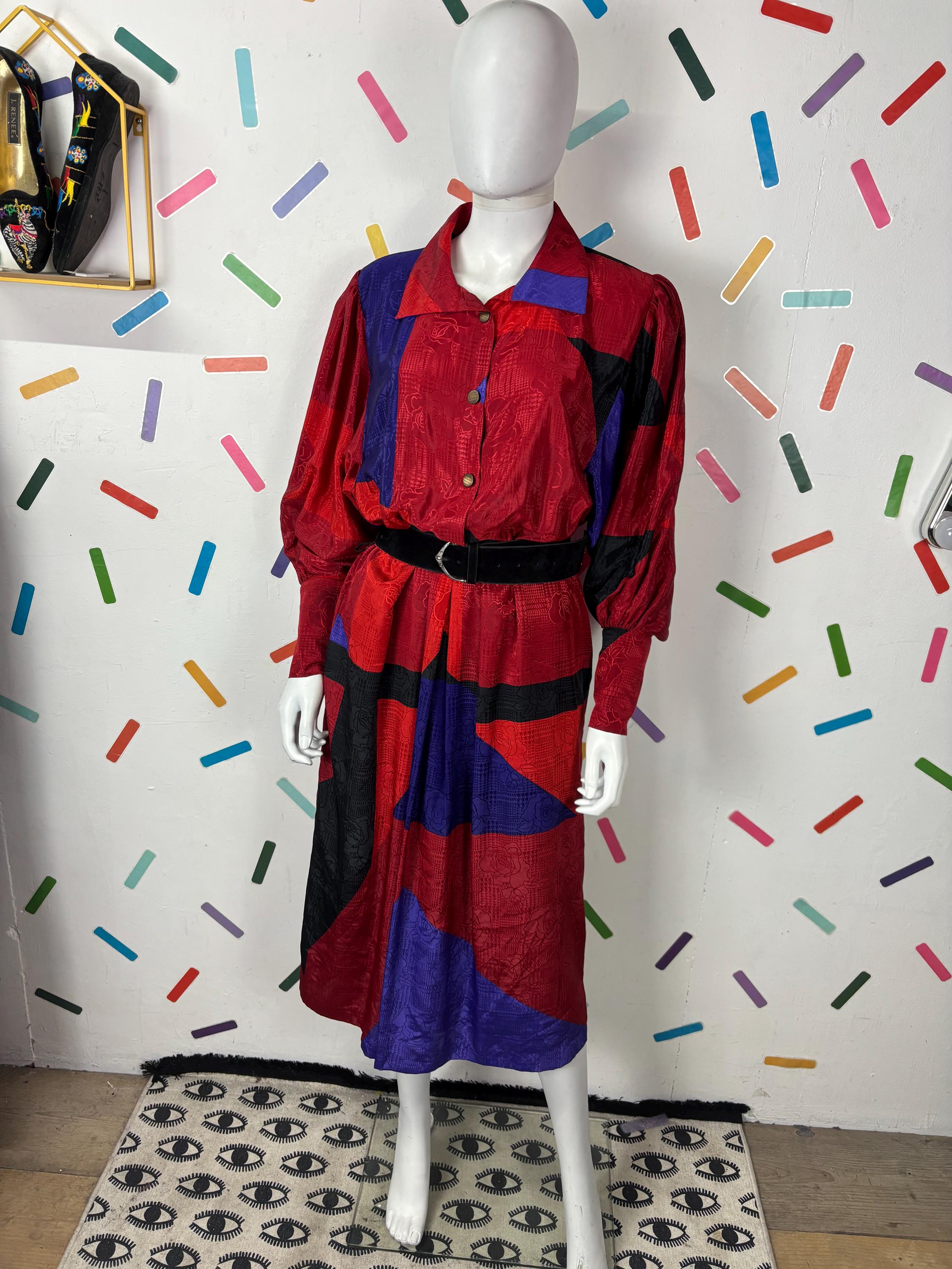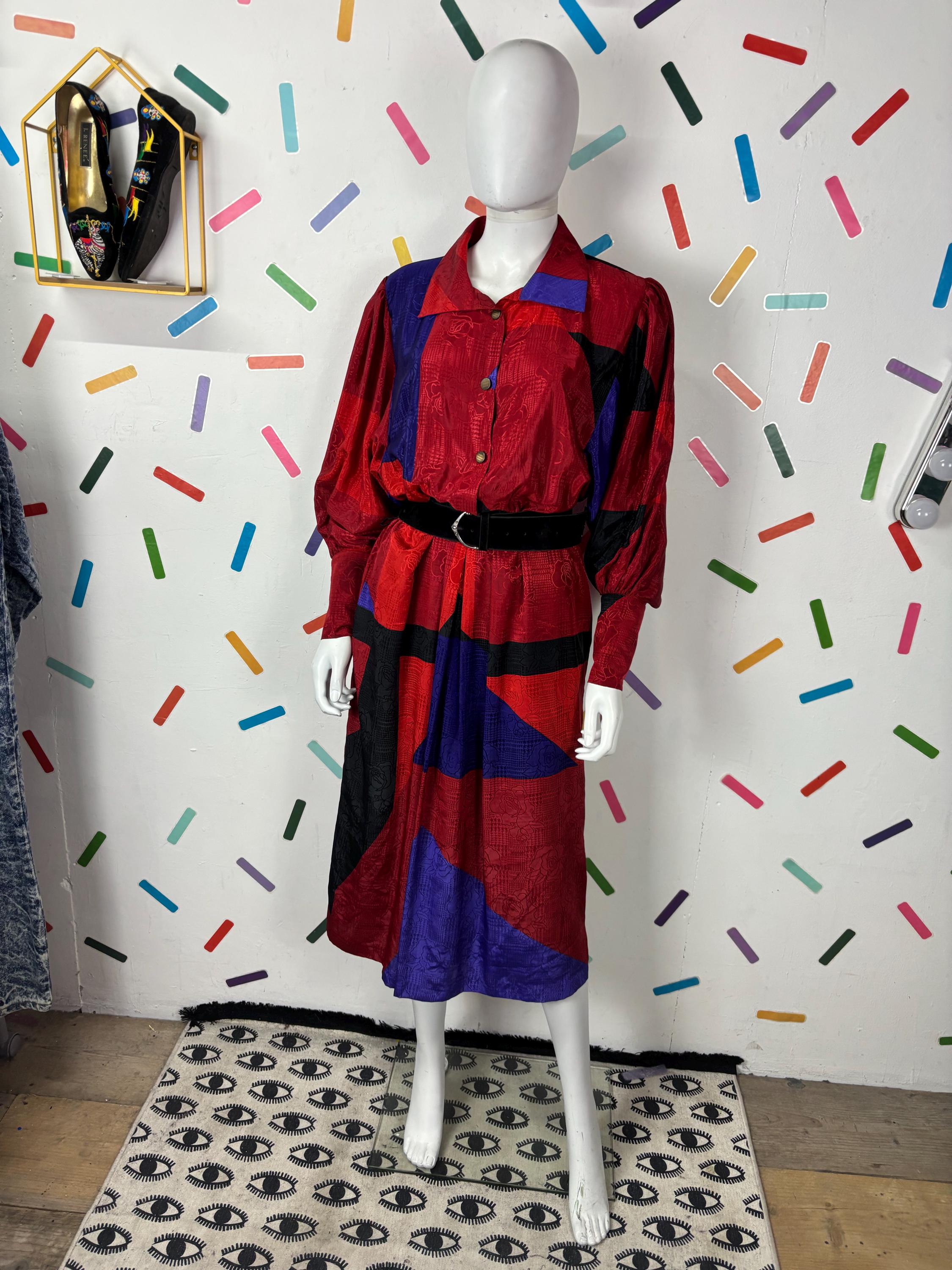 This is a fabulous vintage dress with the most amazing geo design. Button front fastening.